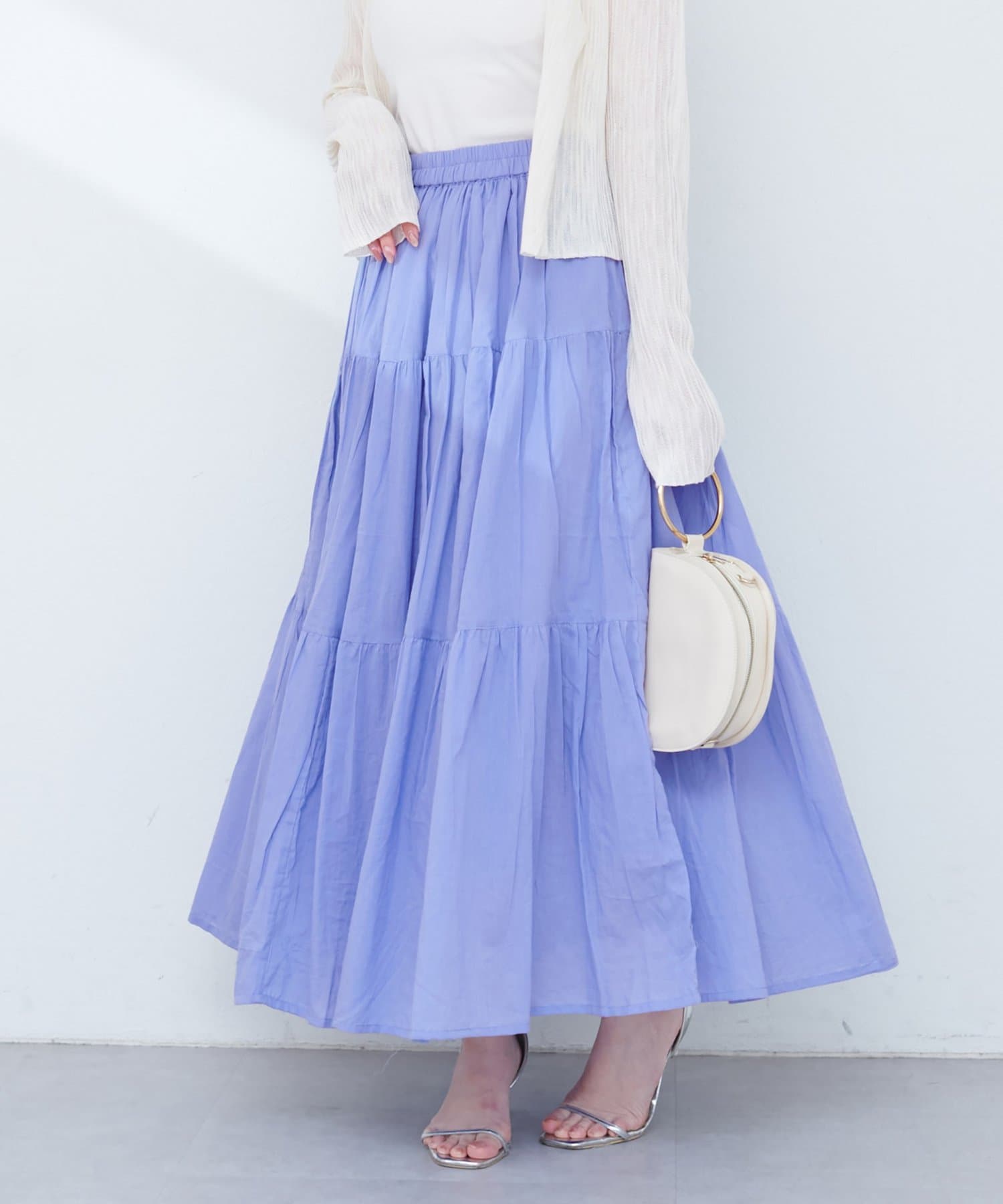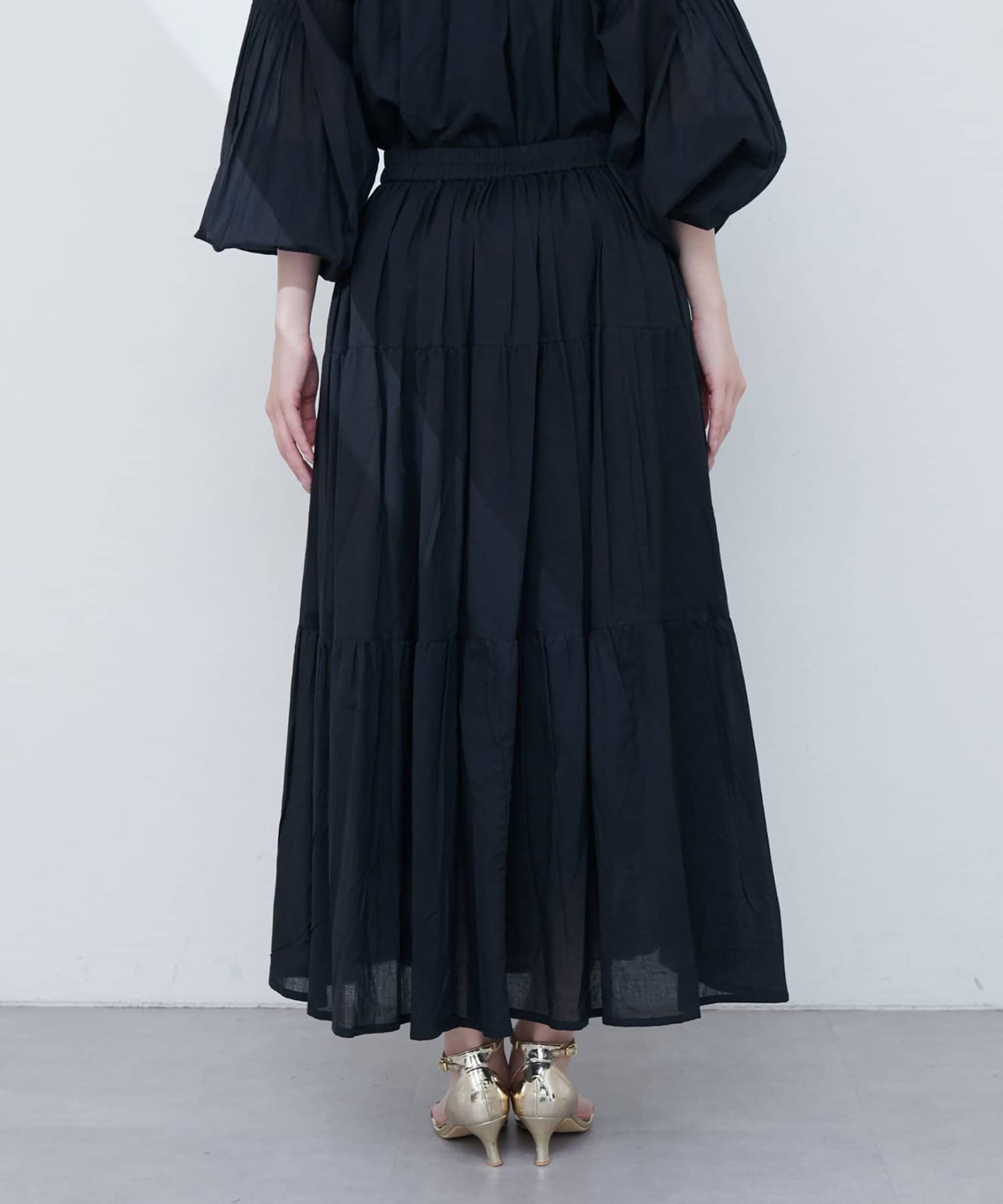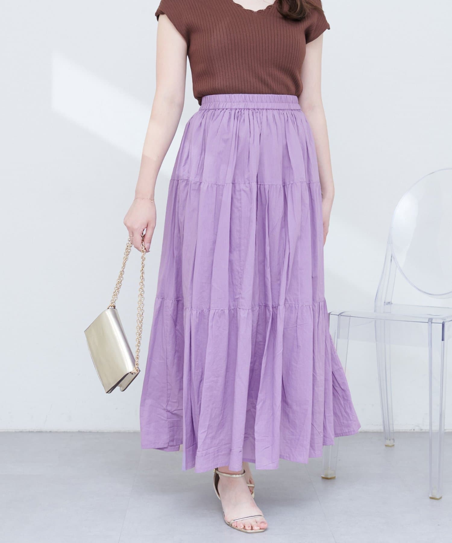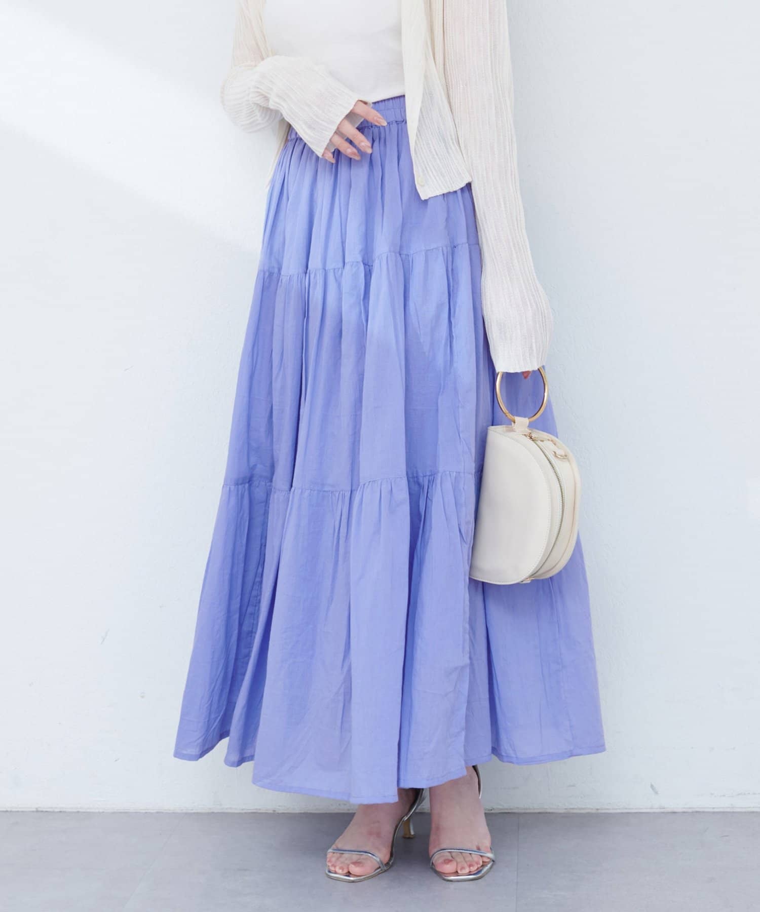 柔らかくさらさらとした感触で、肌触りの良いインド綿を使用したティアードスカート。