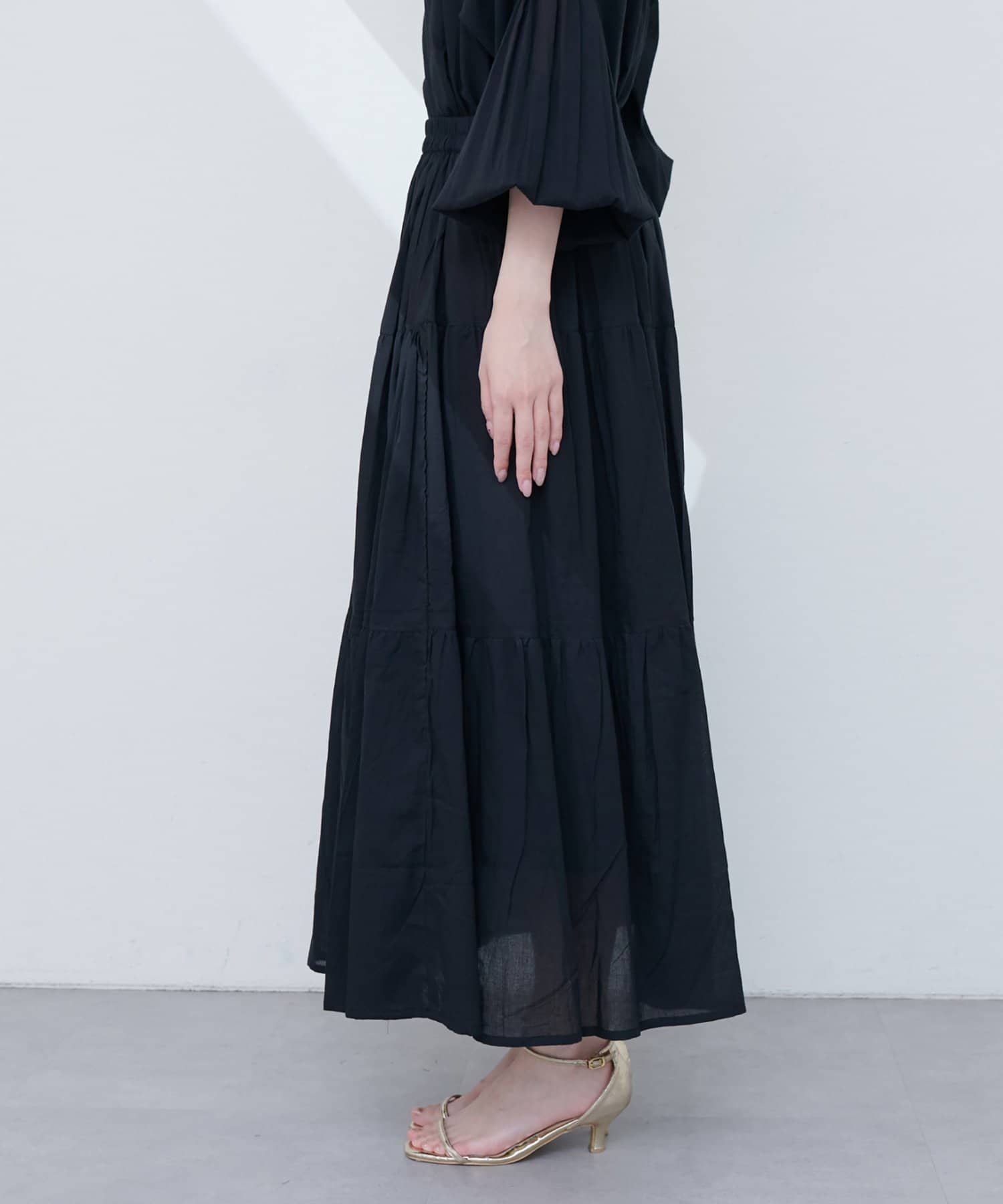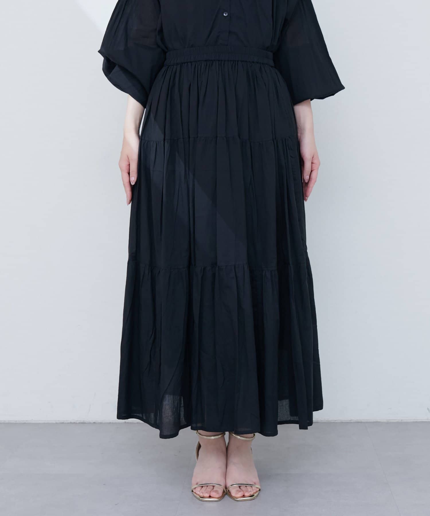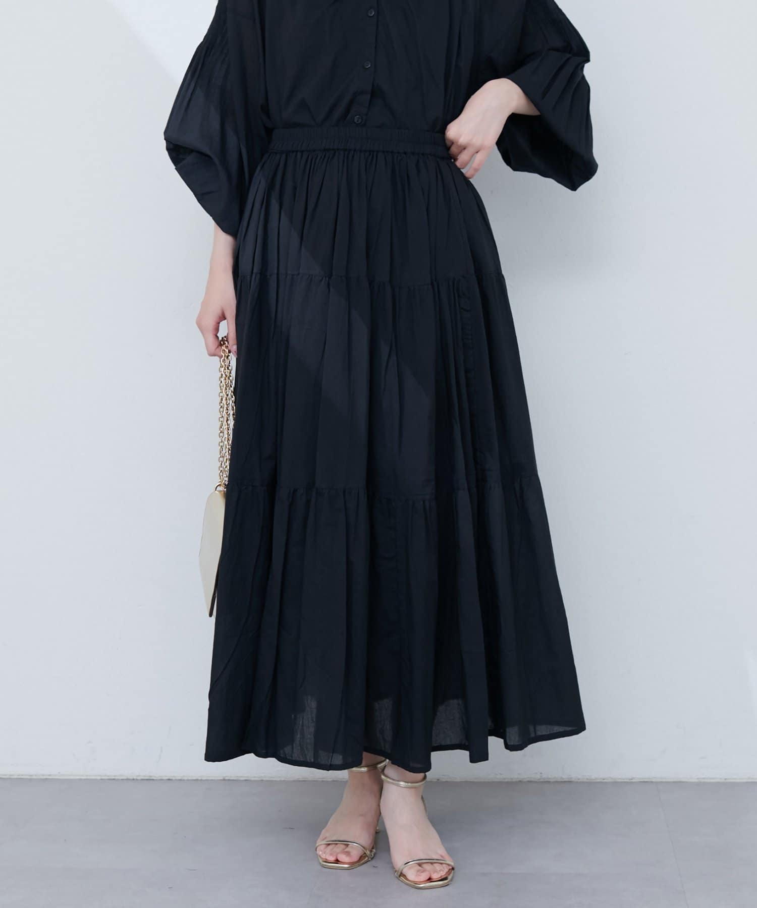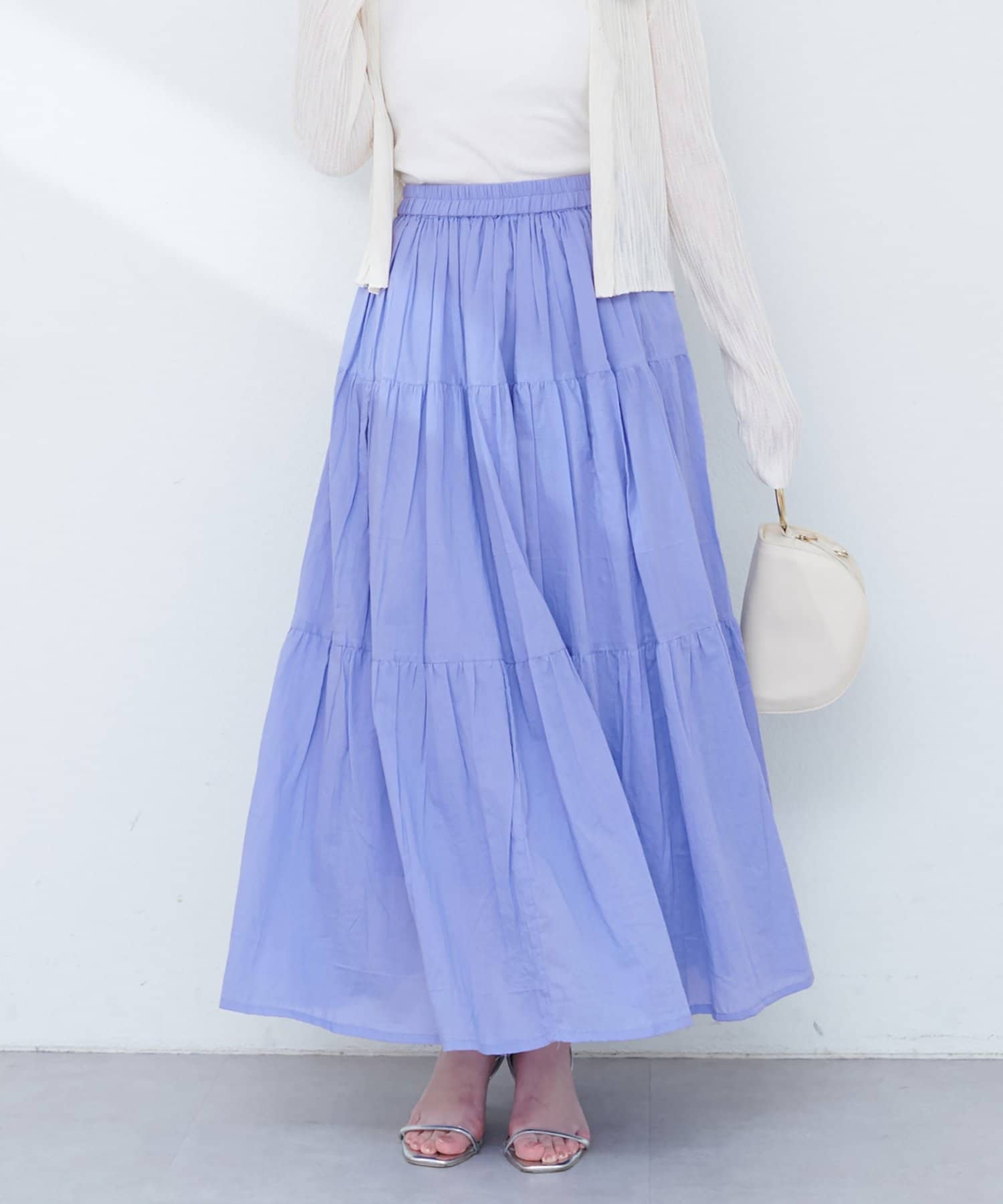 柔らかくさらさらとした感触で、肌触りの良いインド綿を使用したティアードスカート。