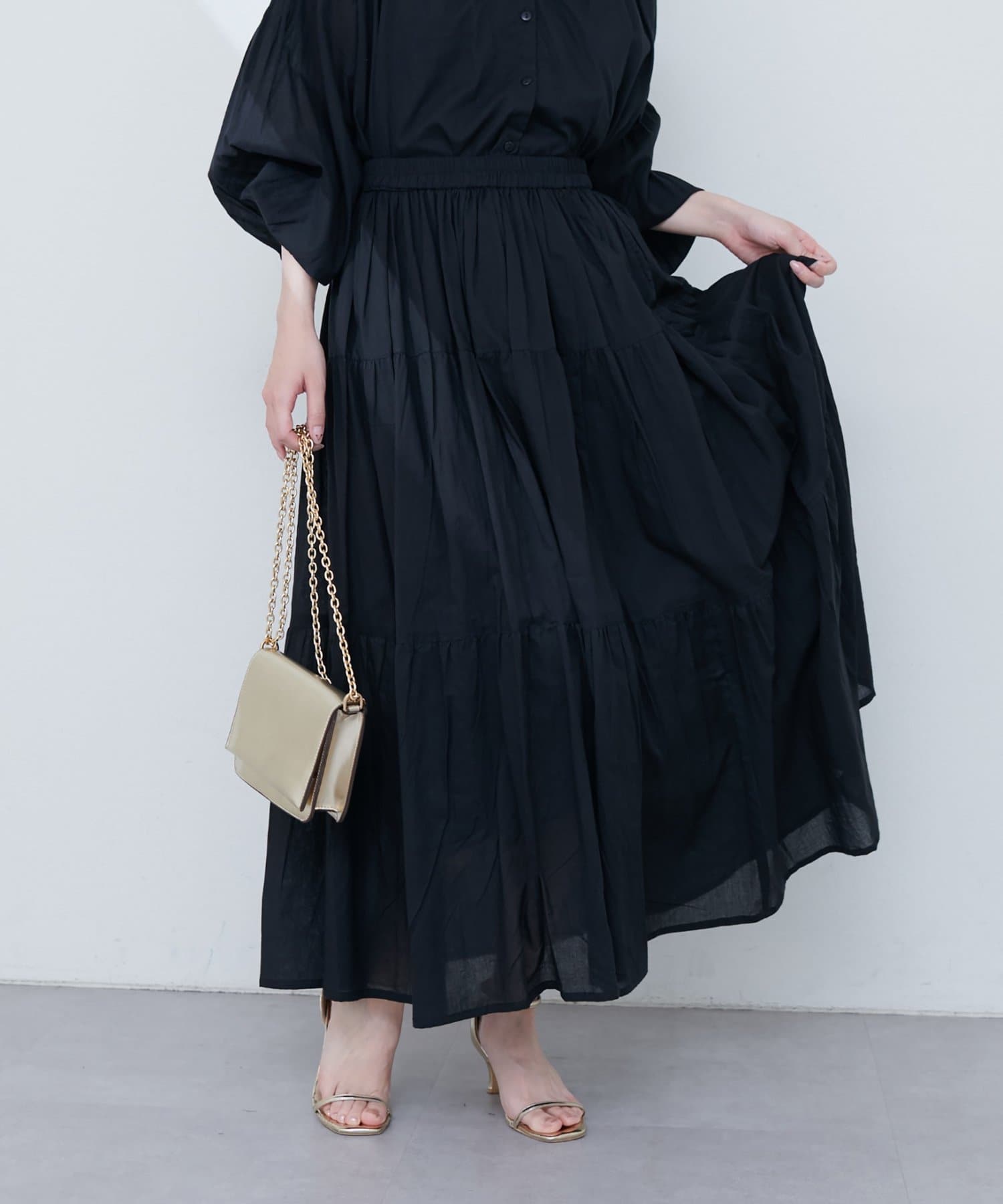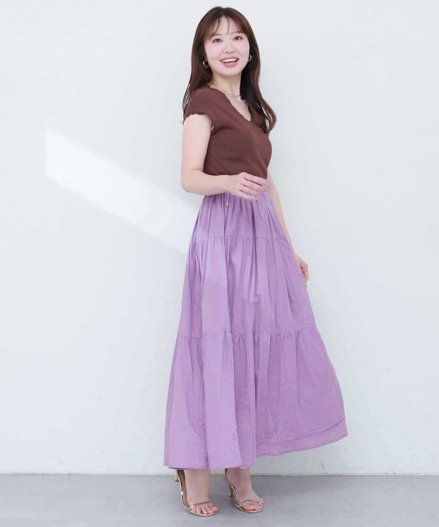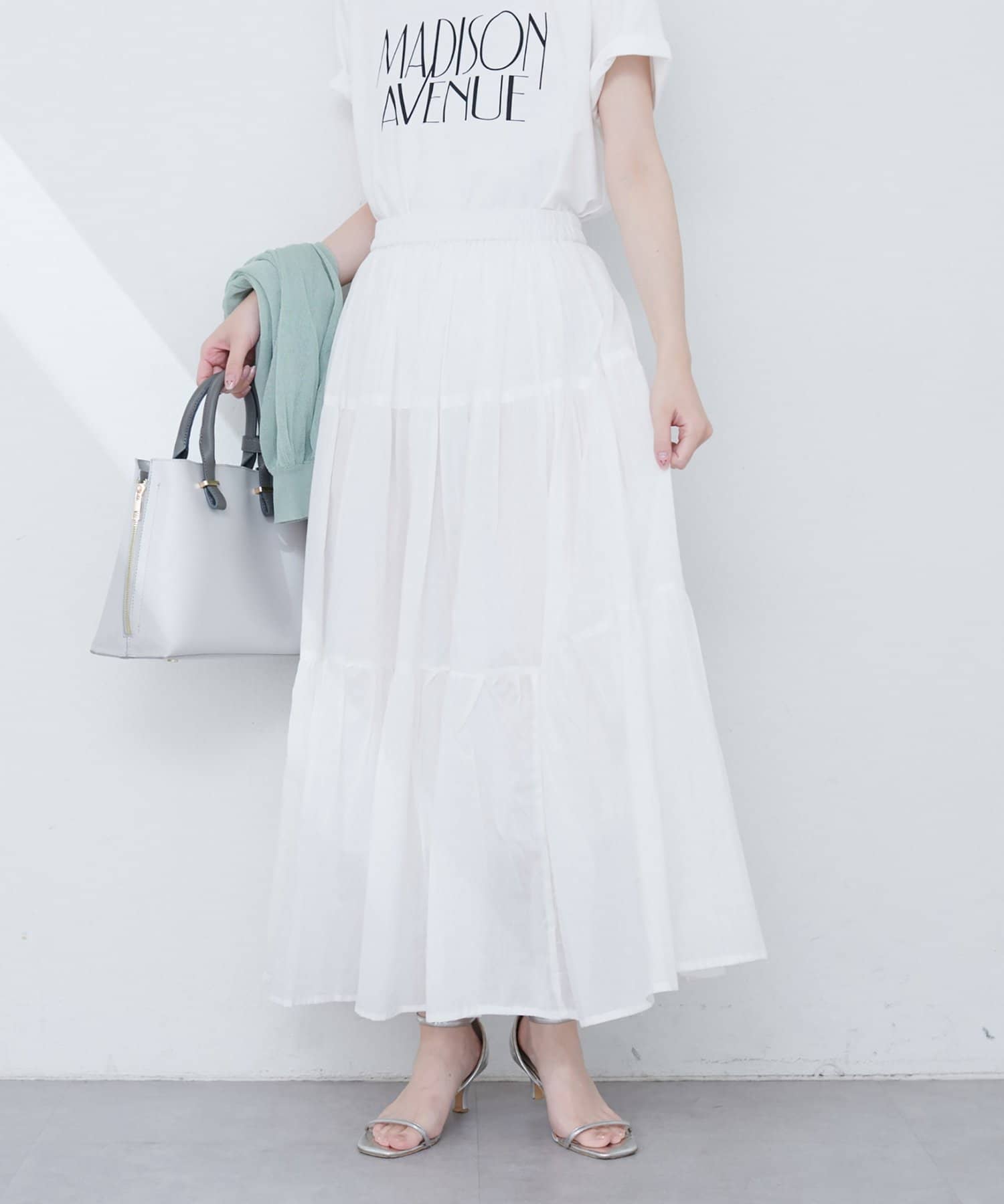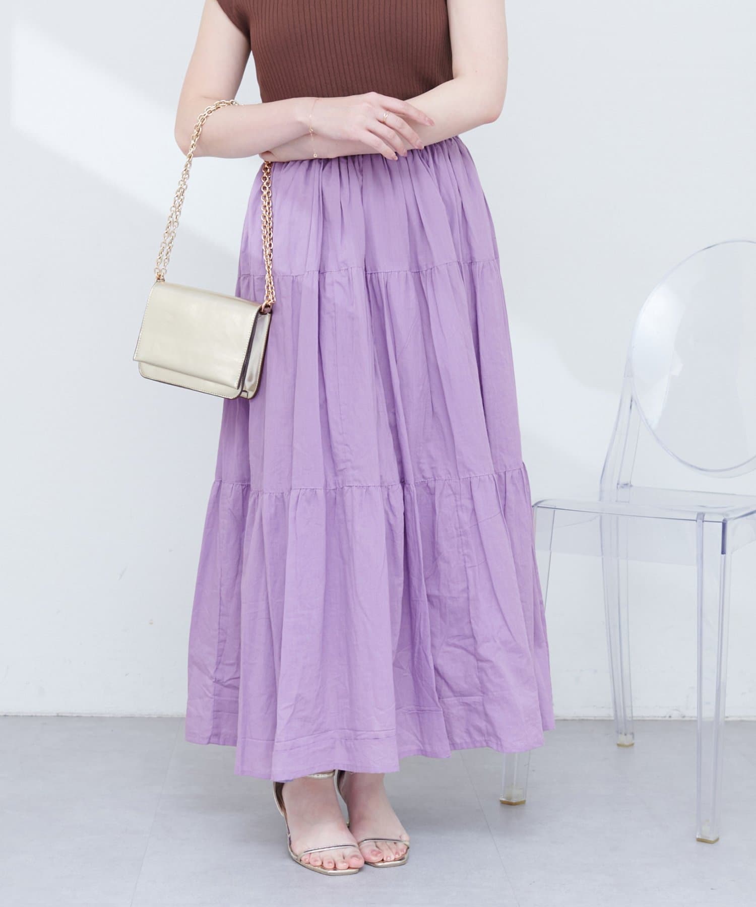 柔らかくさらさらとした感触で、肌触りの良いインド綿を使用したティアードスカート。