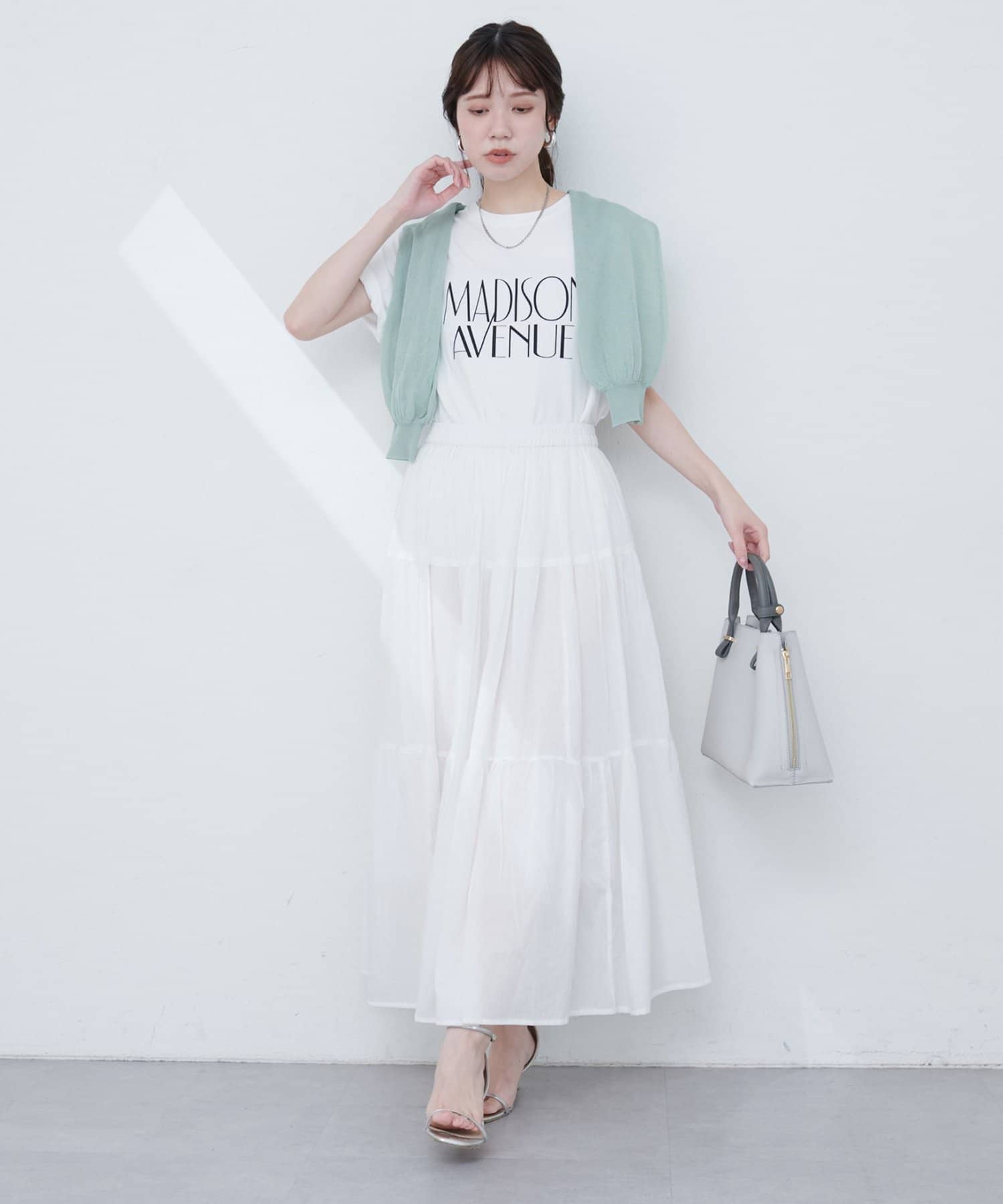 きれいめブラウスと合わせたフェミニンコーデから、Tシャツと合わせたカジュアルミックスコーデまで、幅広く着回しが効くアイテム。