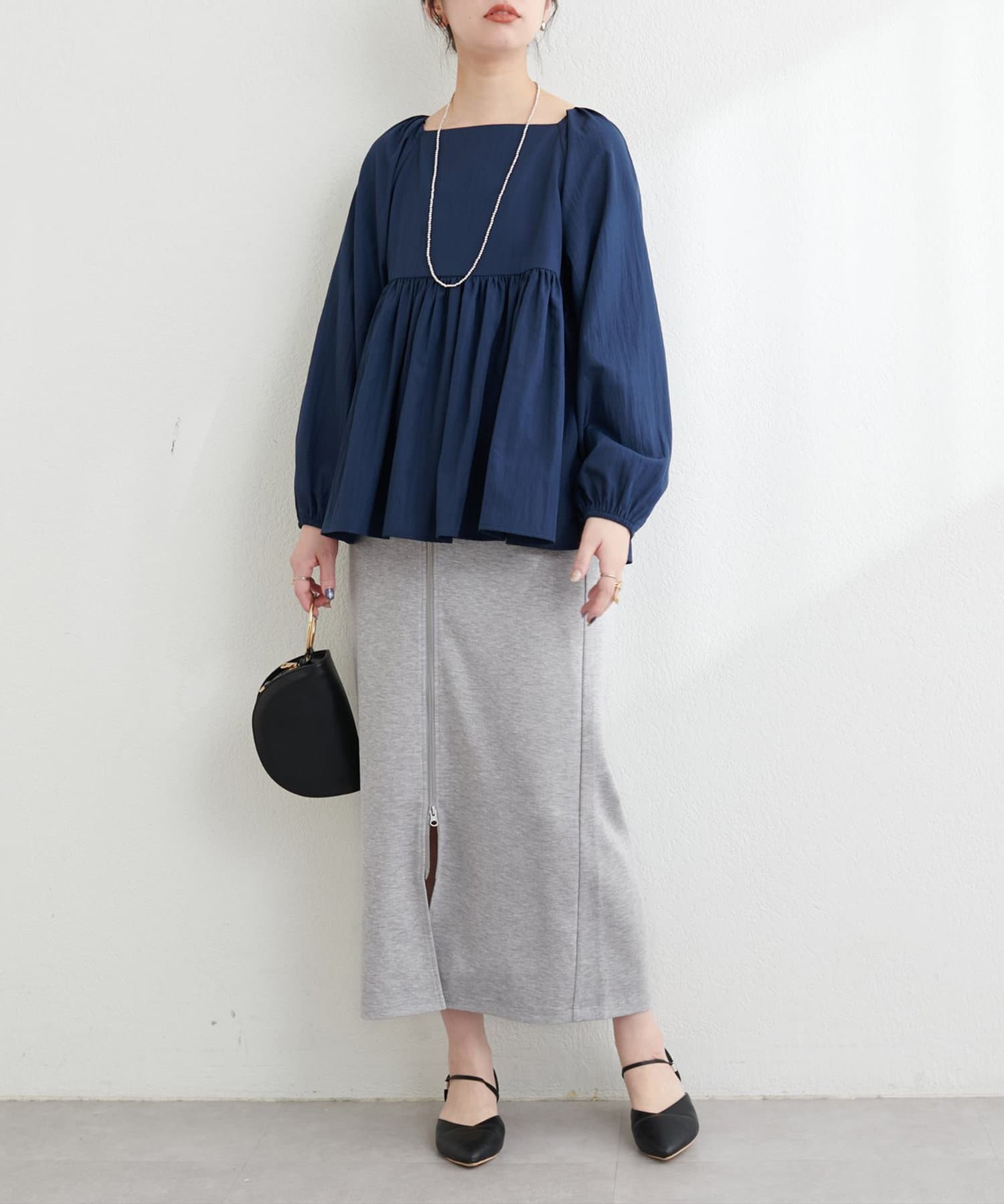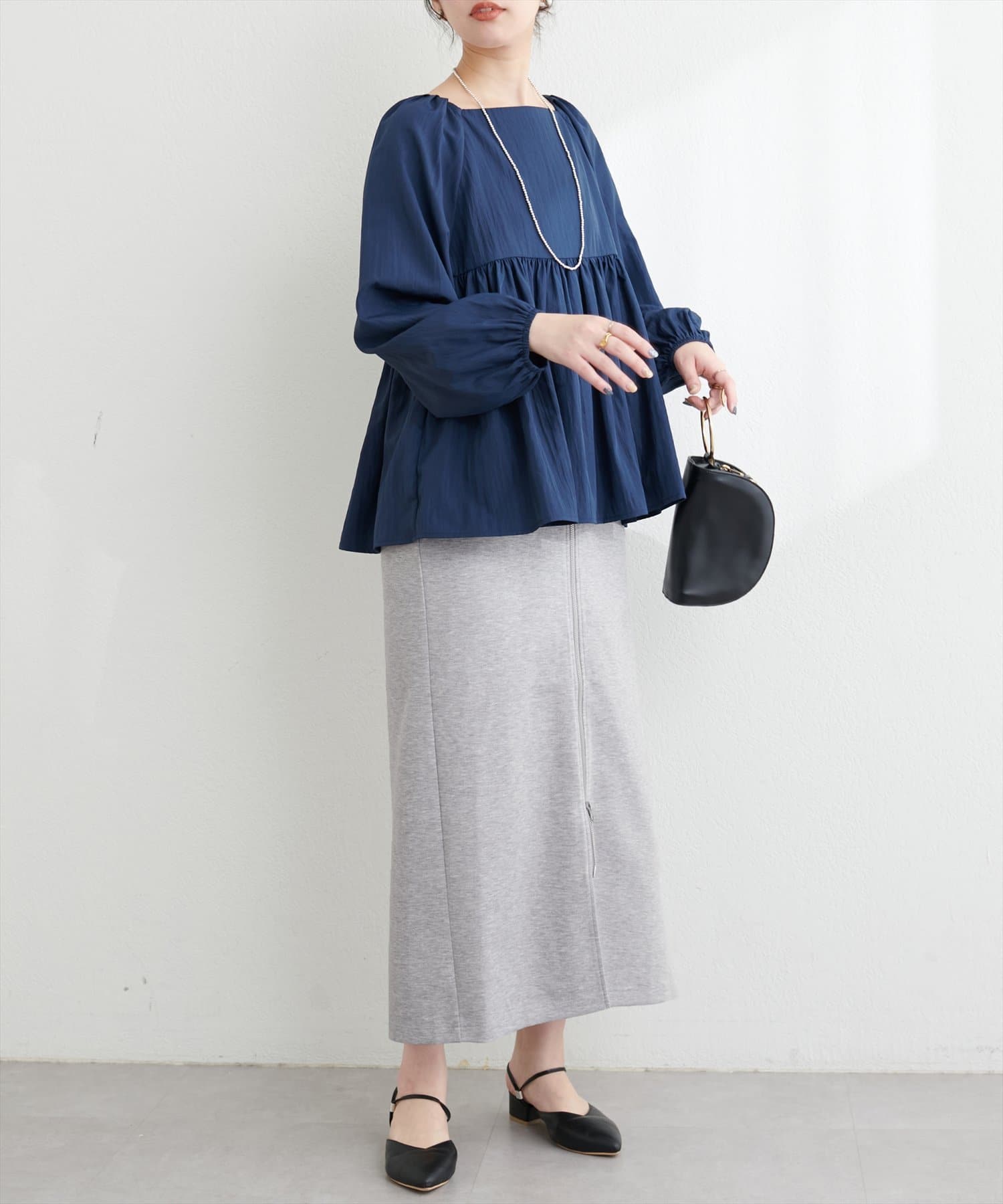 艶感のあるブラウスと合わせればきれいめな印象に。