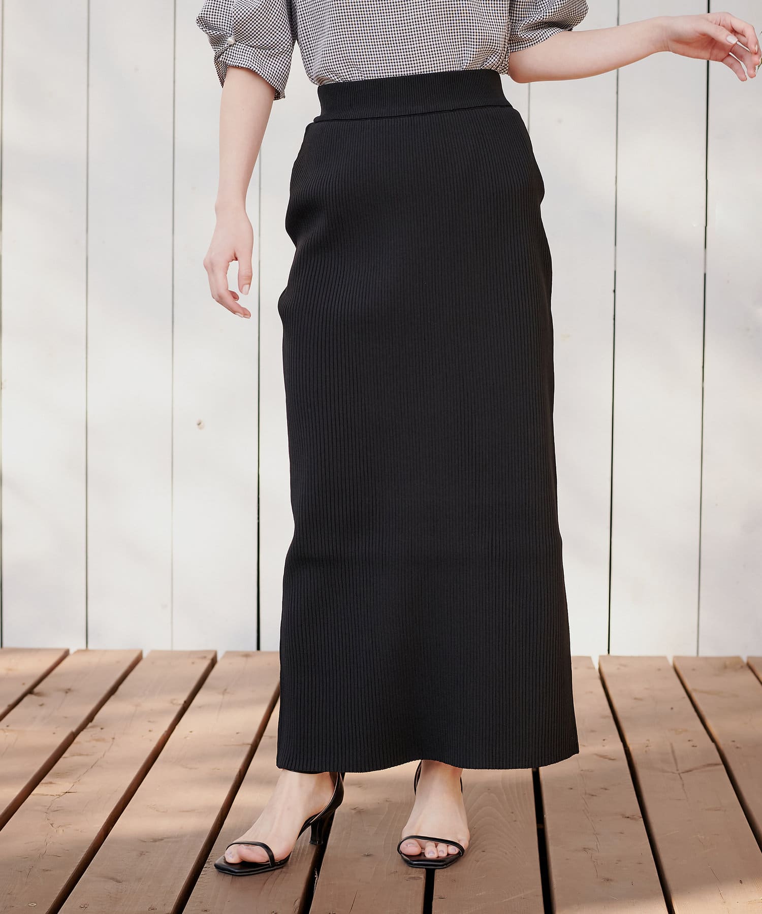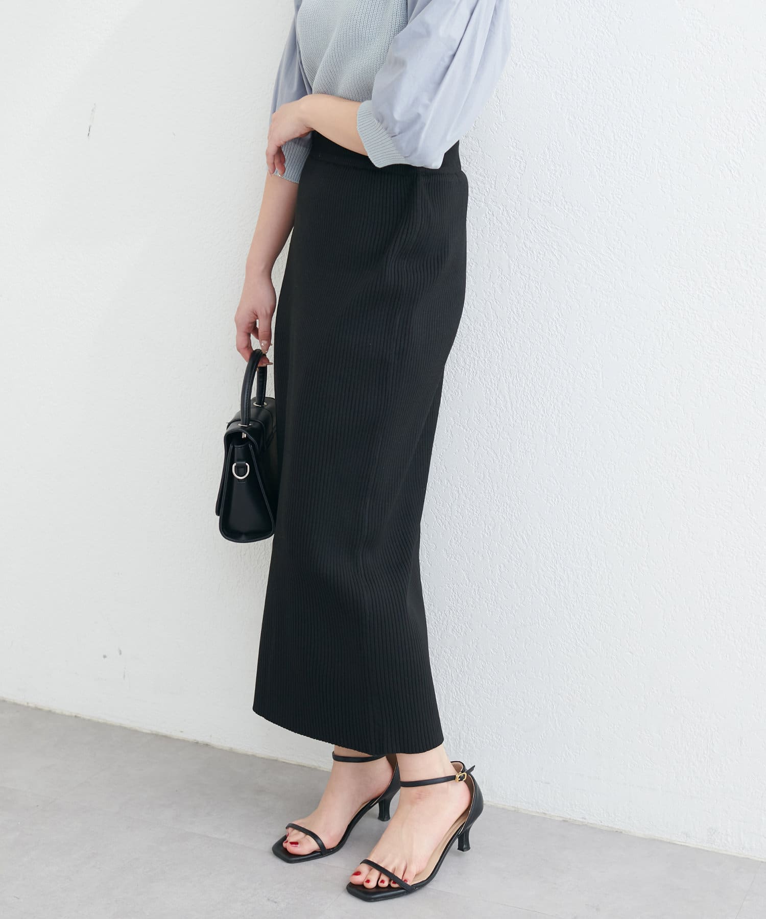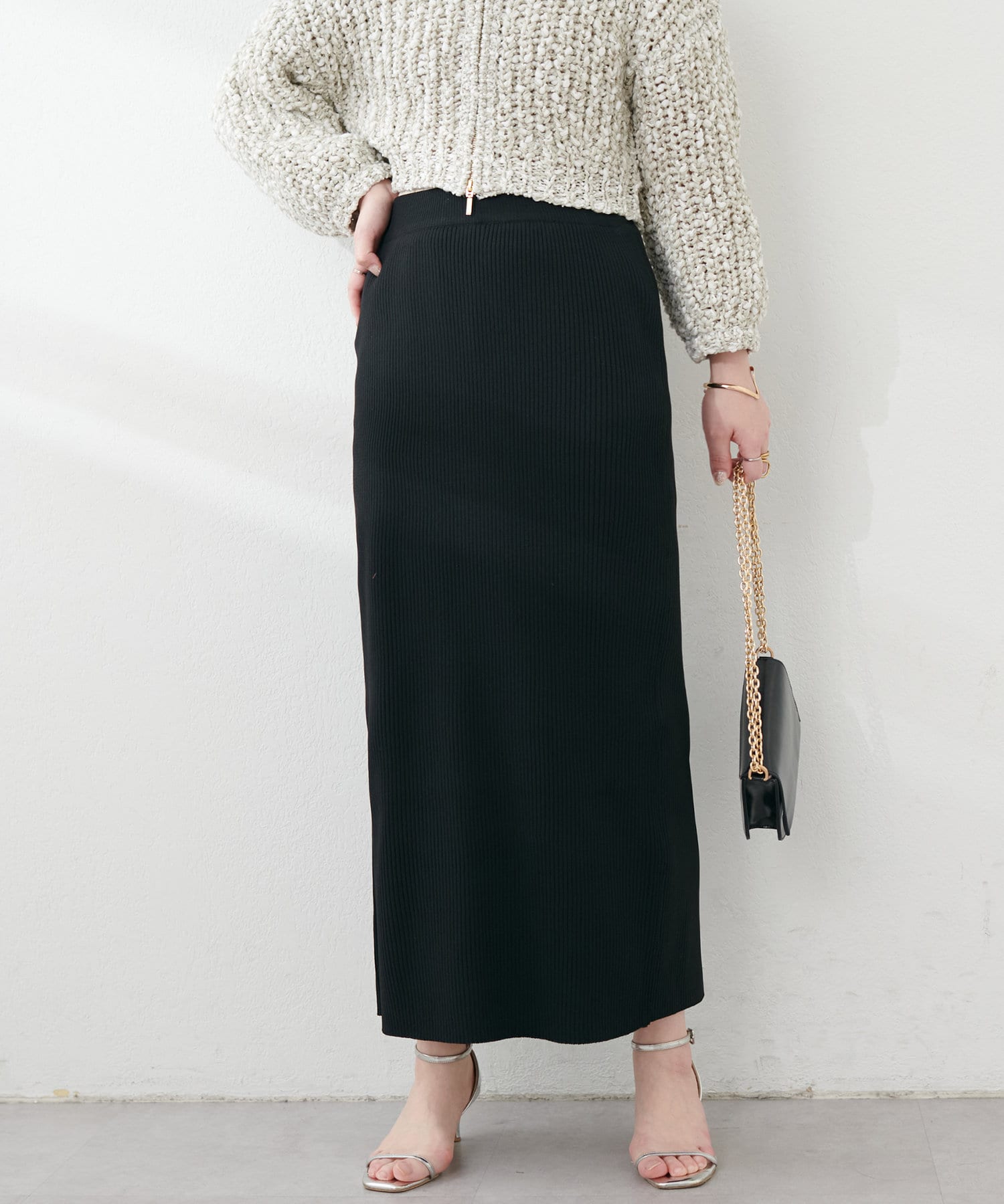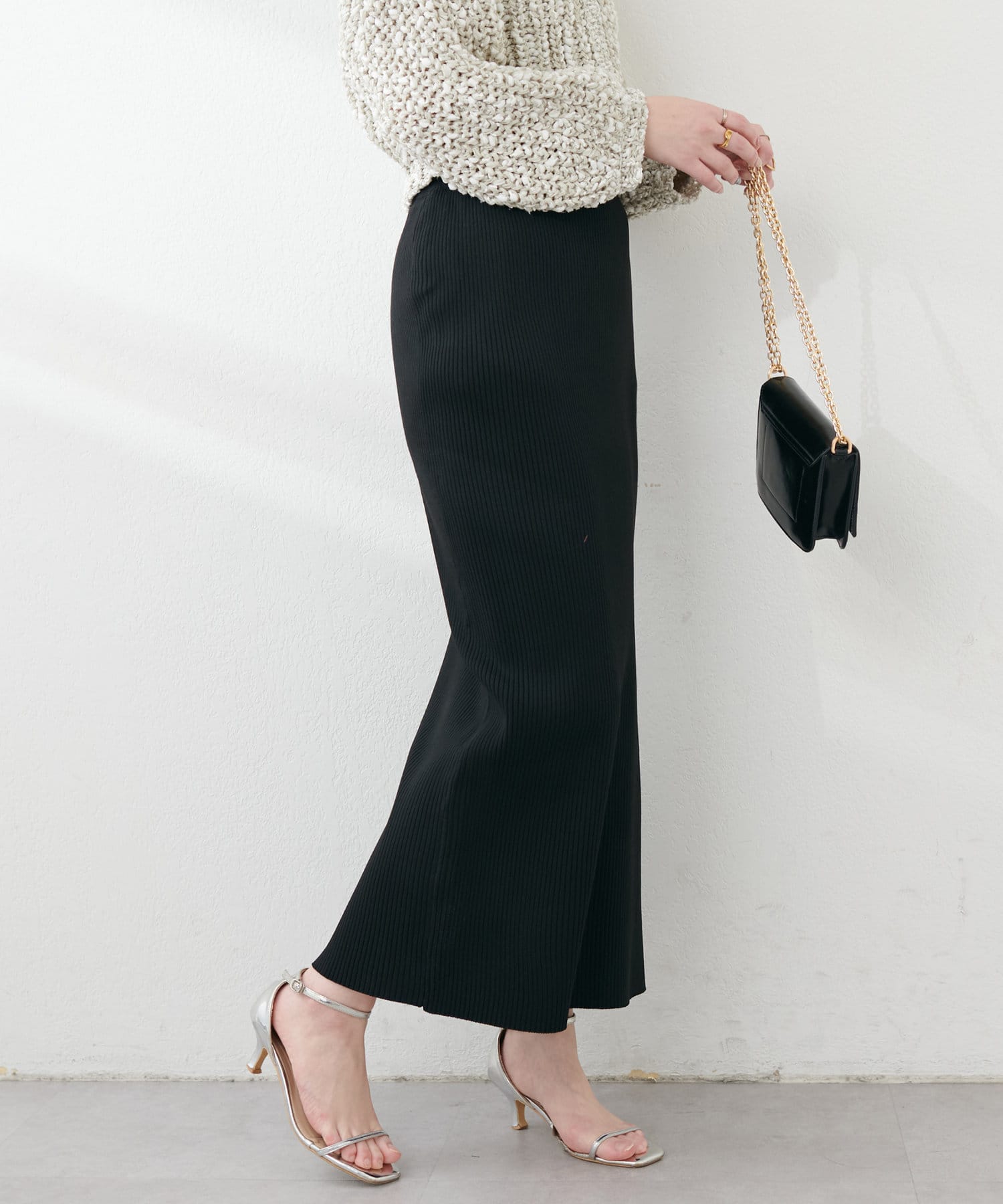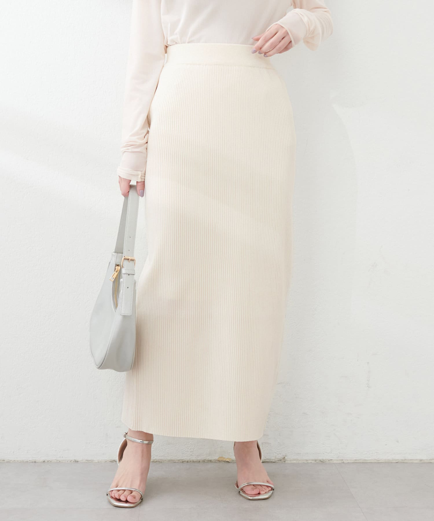Web限定 /【プチナチュ】スリット入り細リブニットタイトスカート