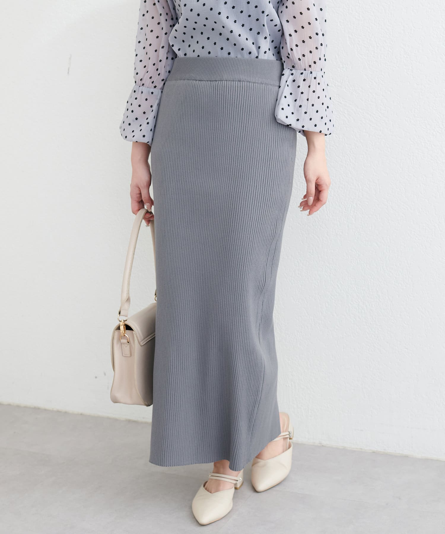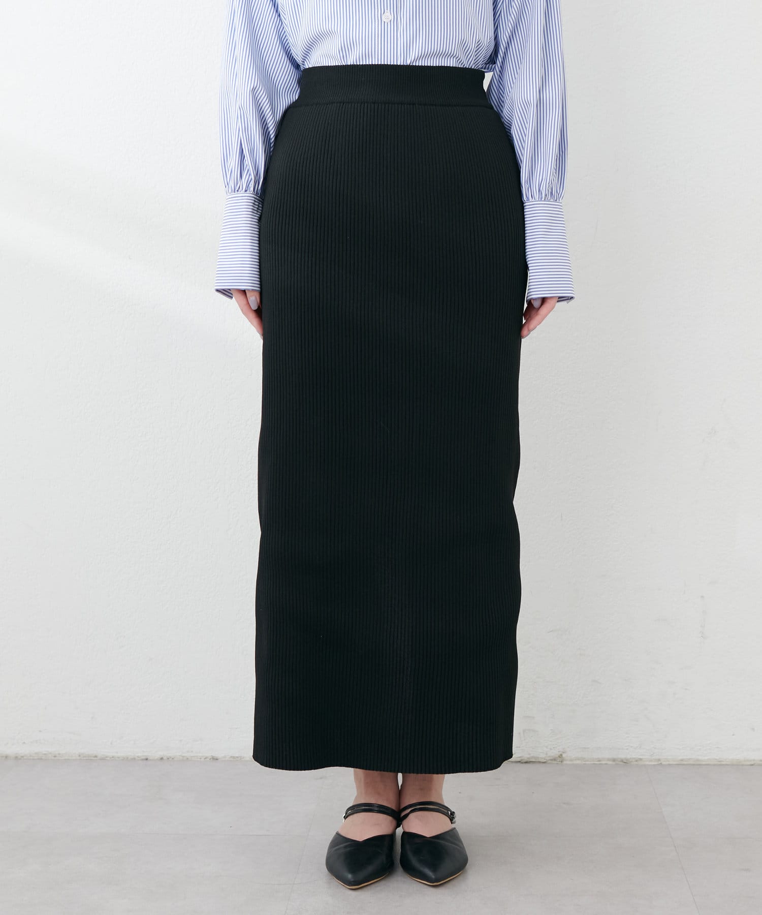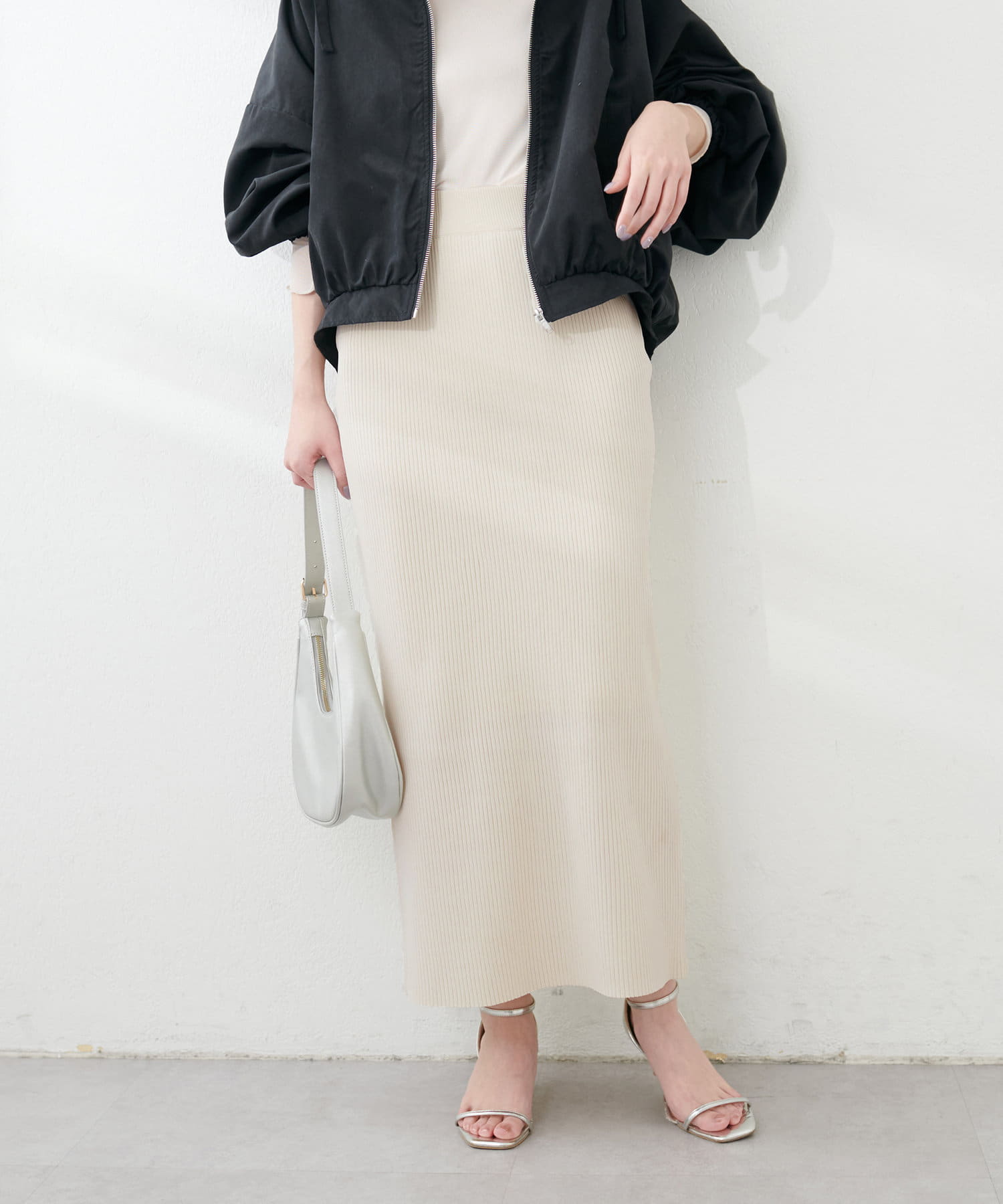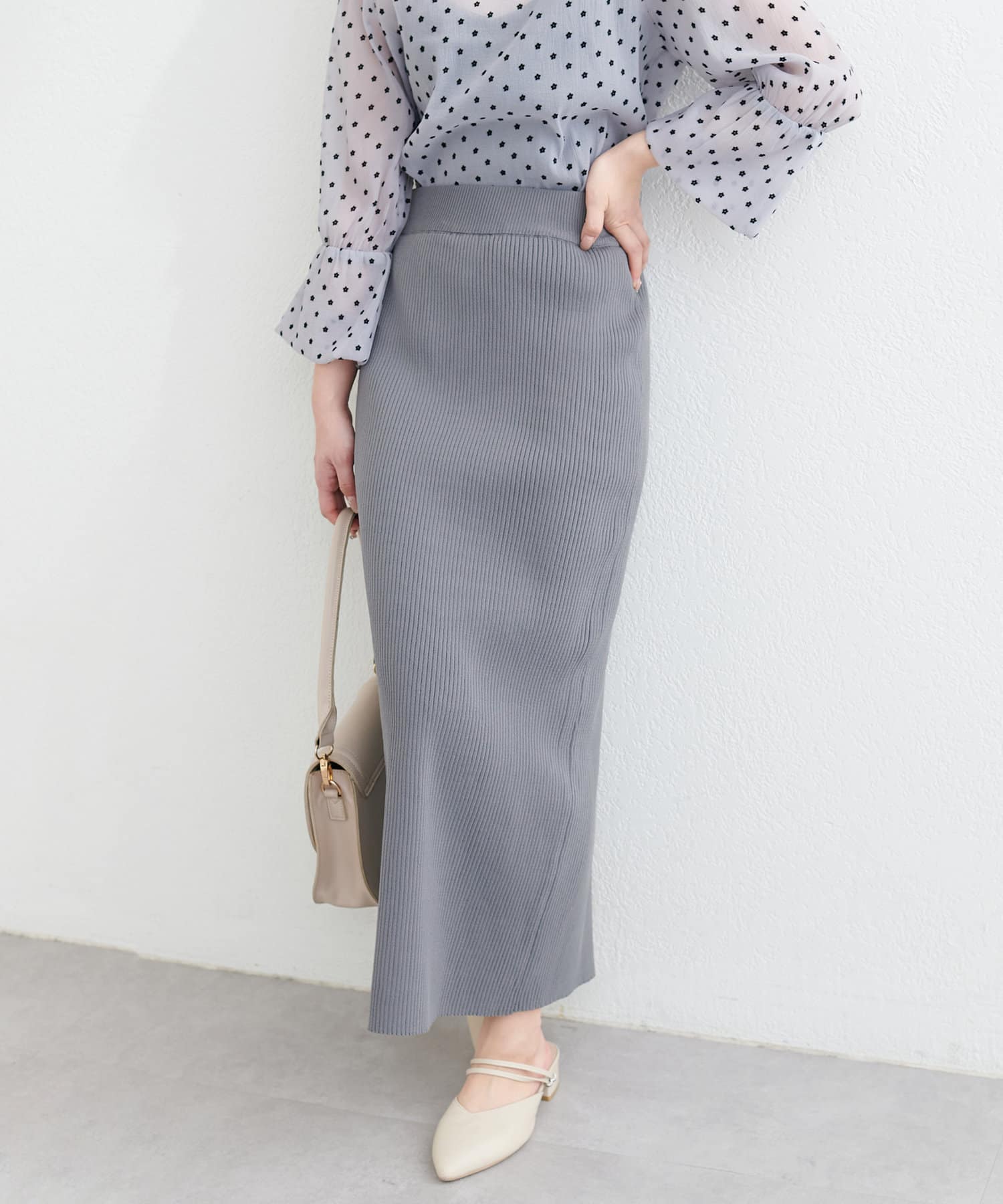 Web限定 /【プチナチュ】スリット入り細リブニットタイトスカート