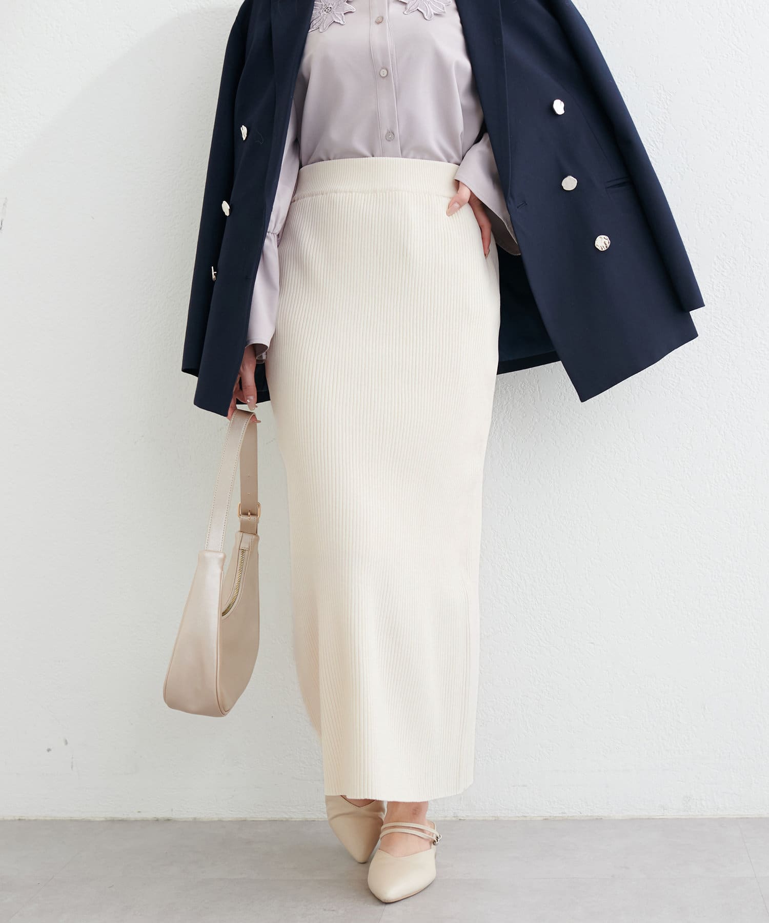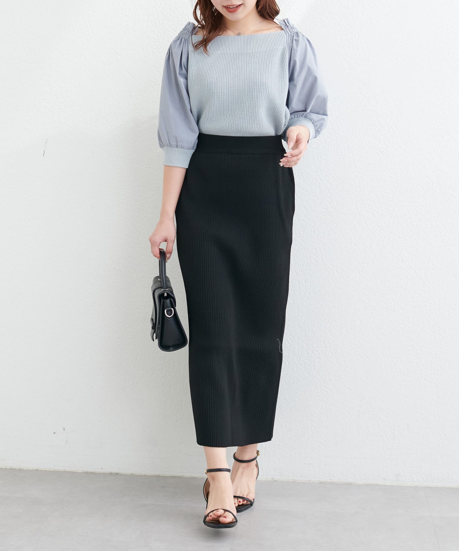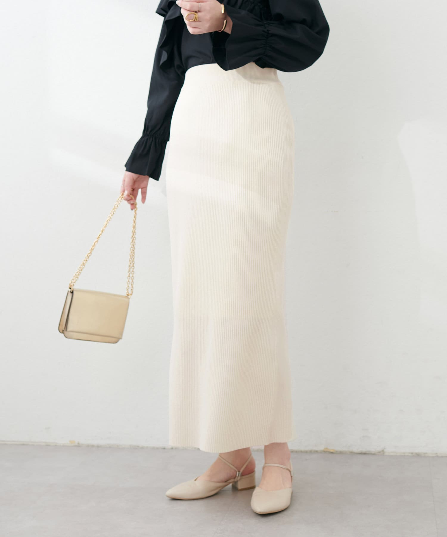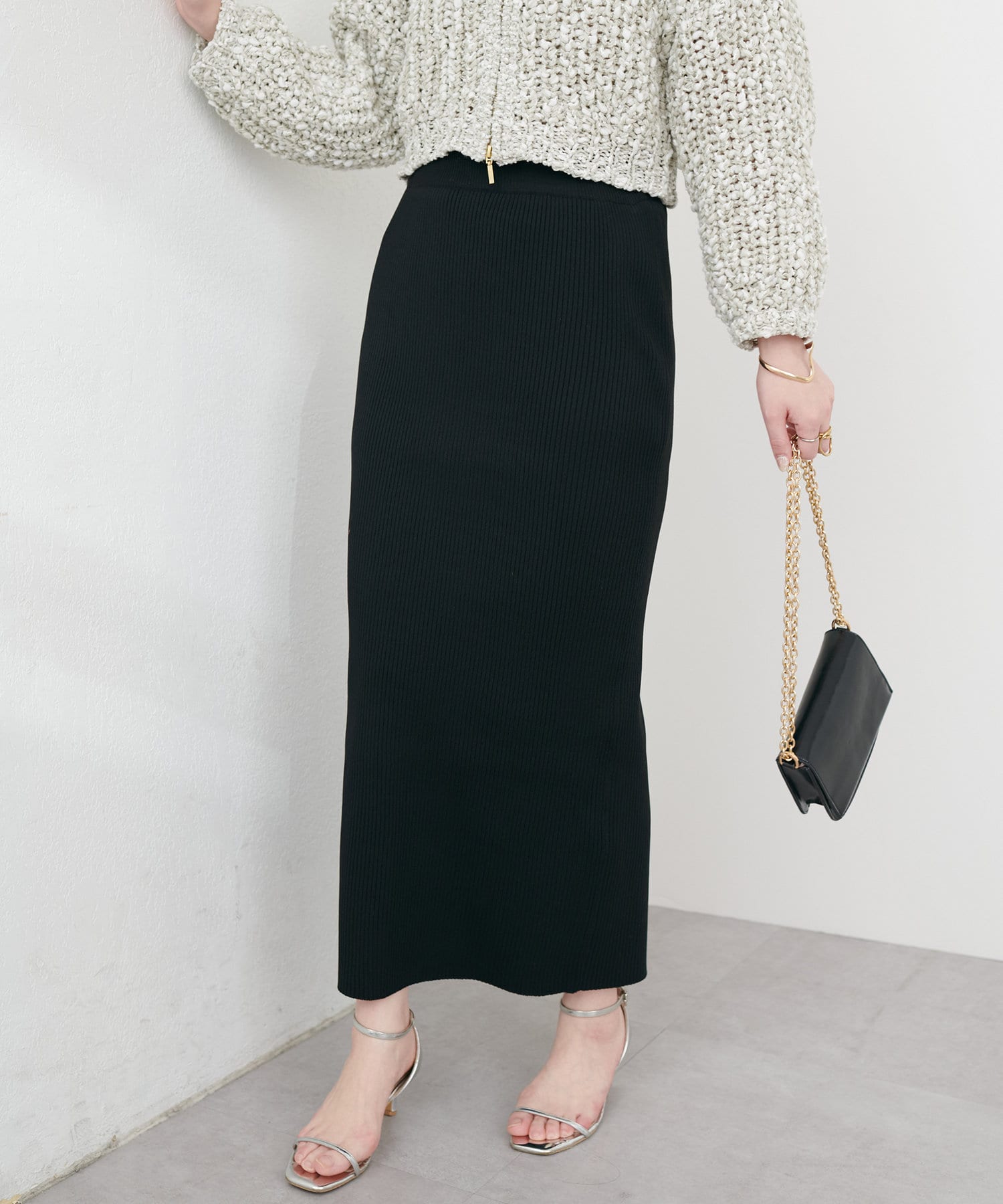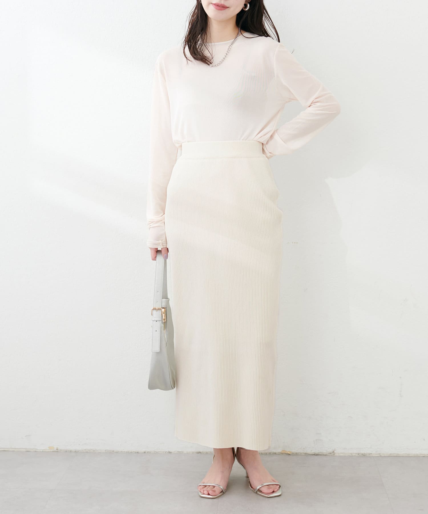 Web限定 /【プチナチュ】スリット入り細リブニットタイトスカート