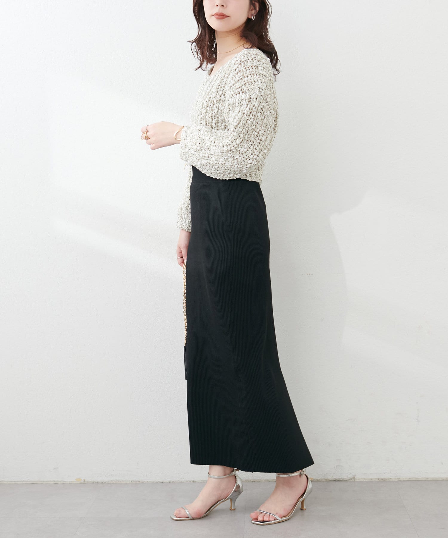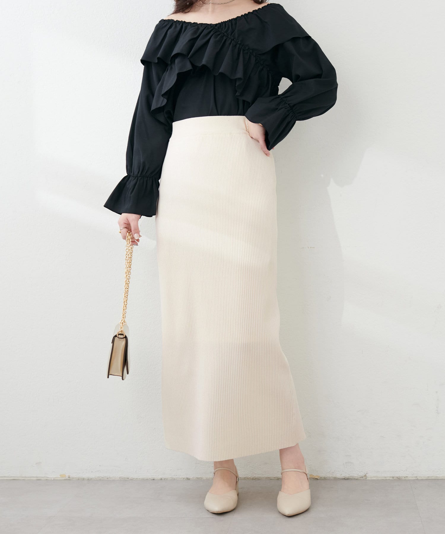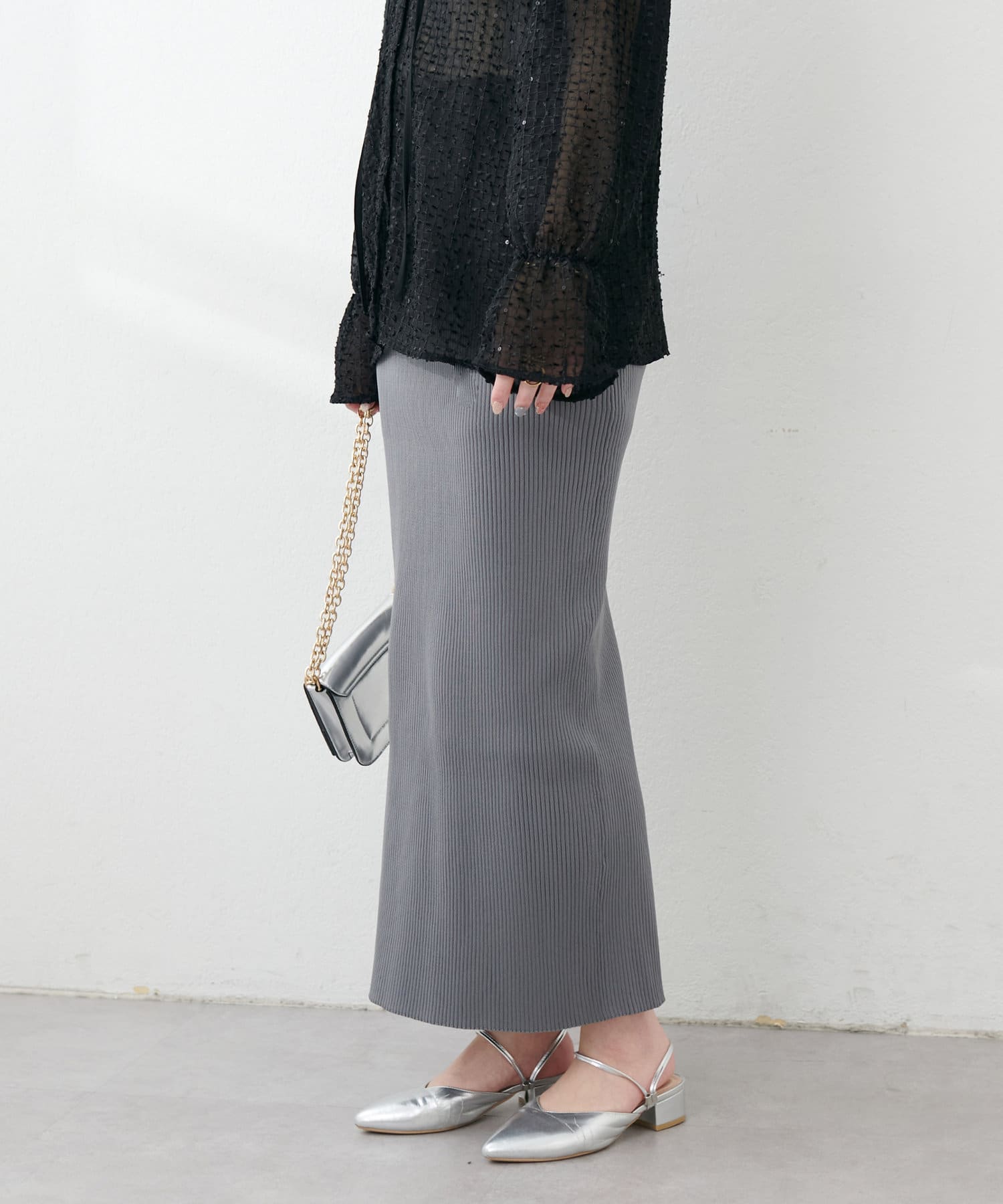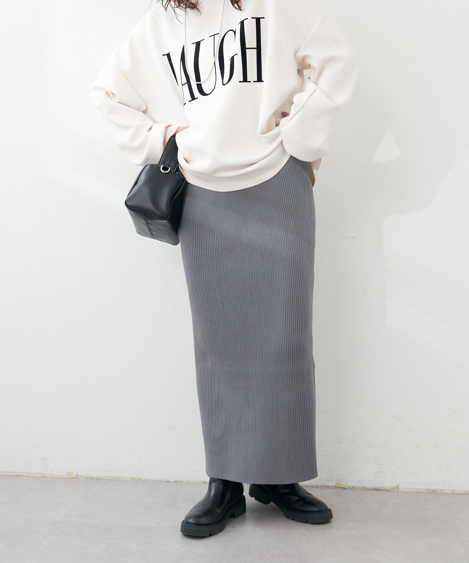 Web限定 /【プチナチュ】スリット入り細リブニットタイトスカート