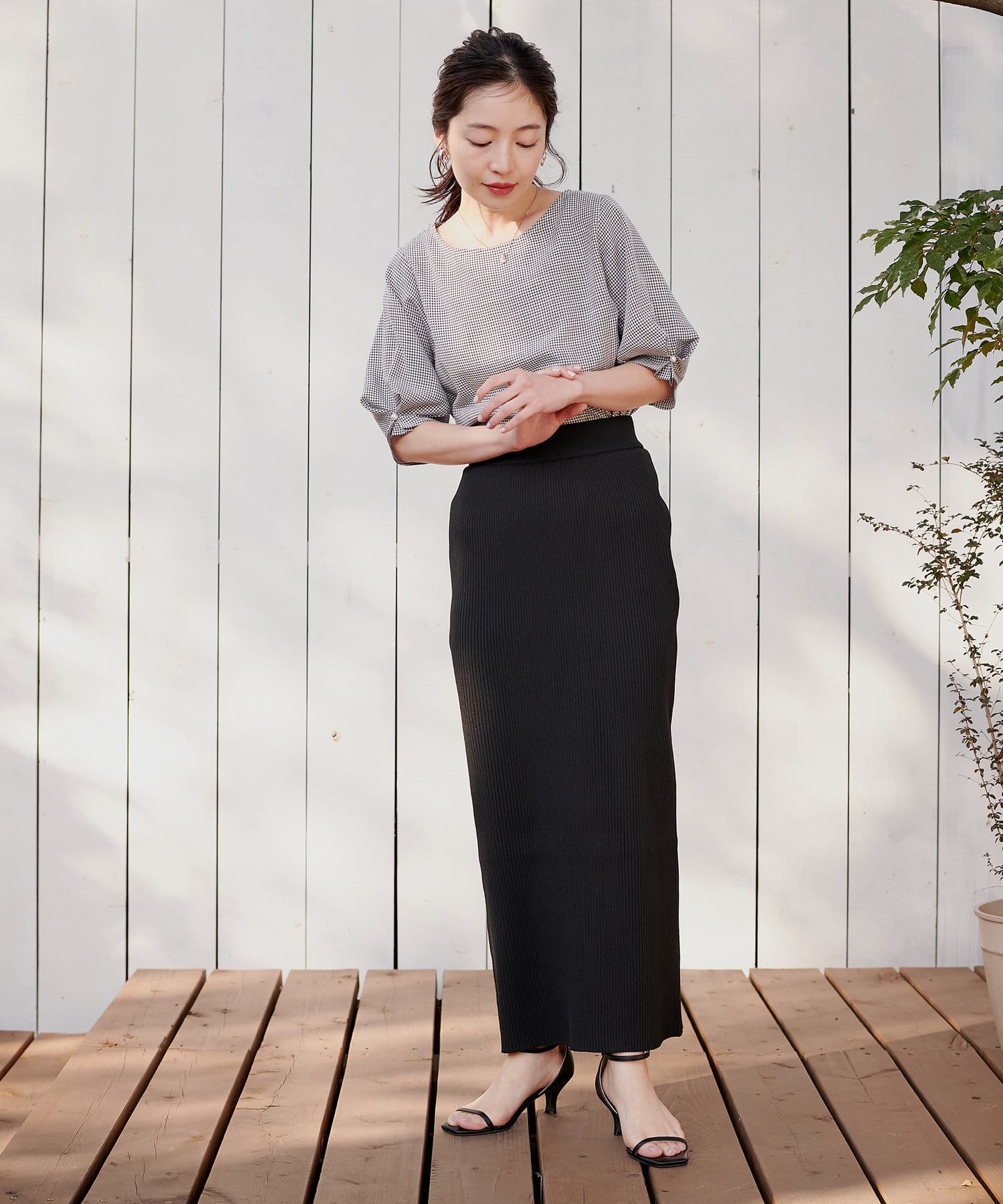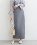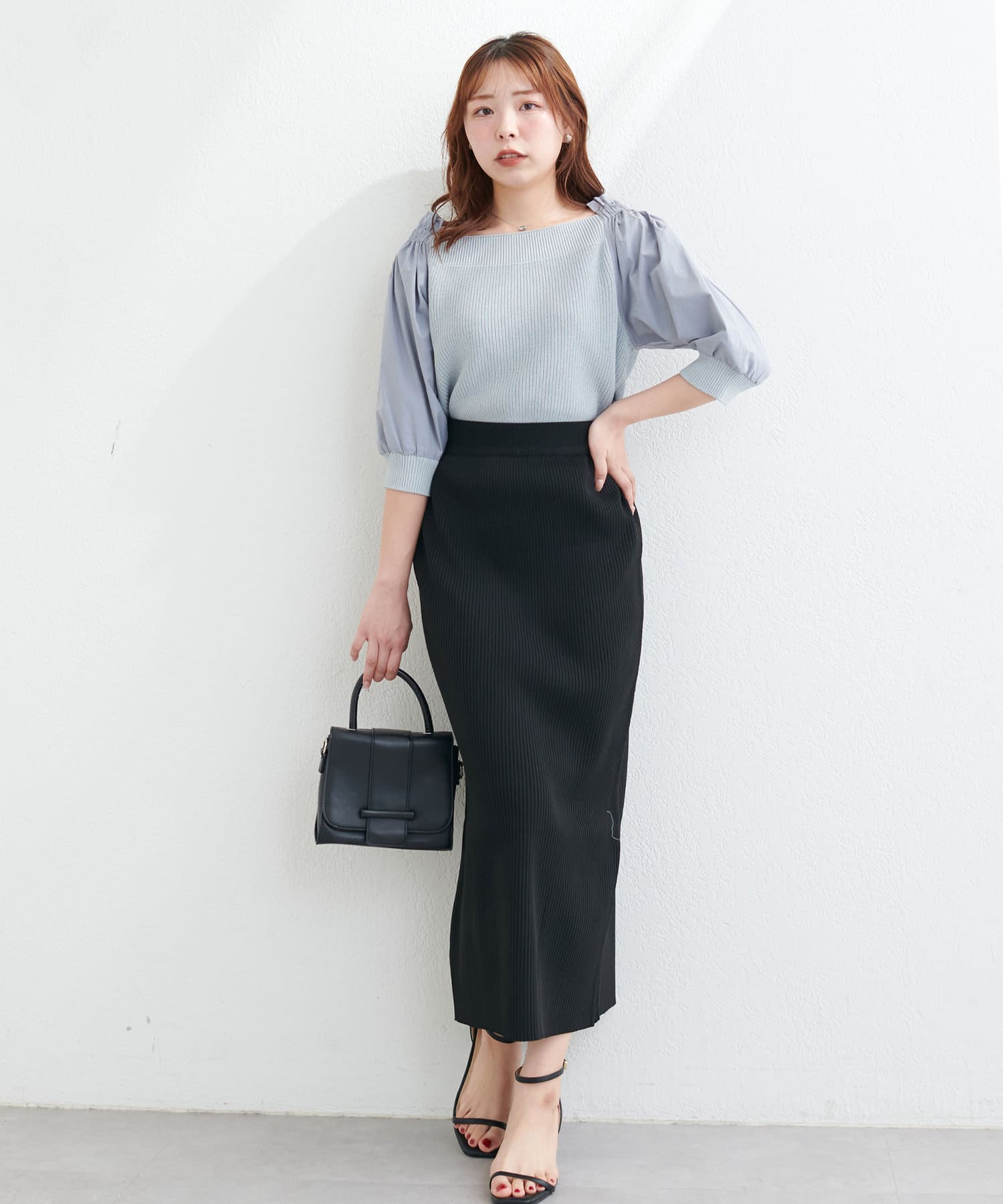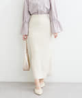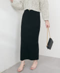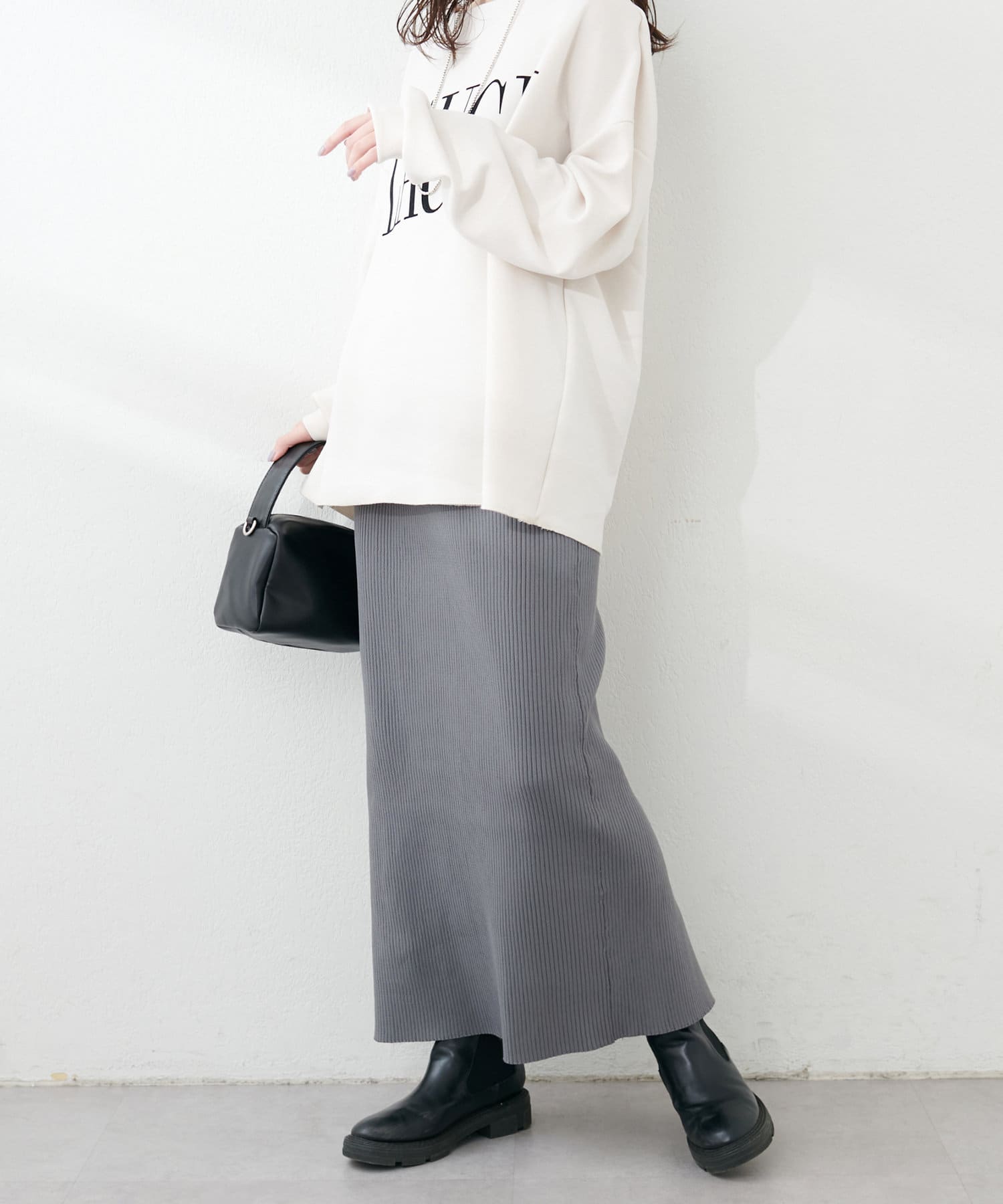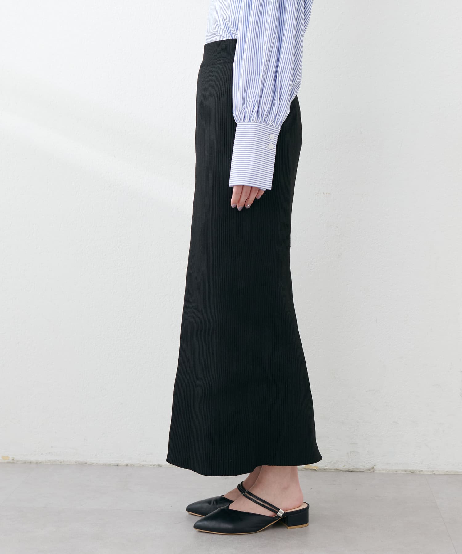 Web限定 /【プチナチュ】スリット入り細リブニットタイトスカート