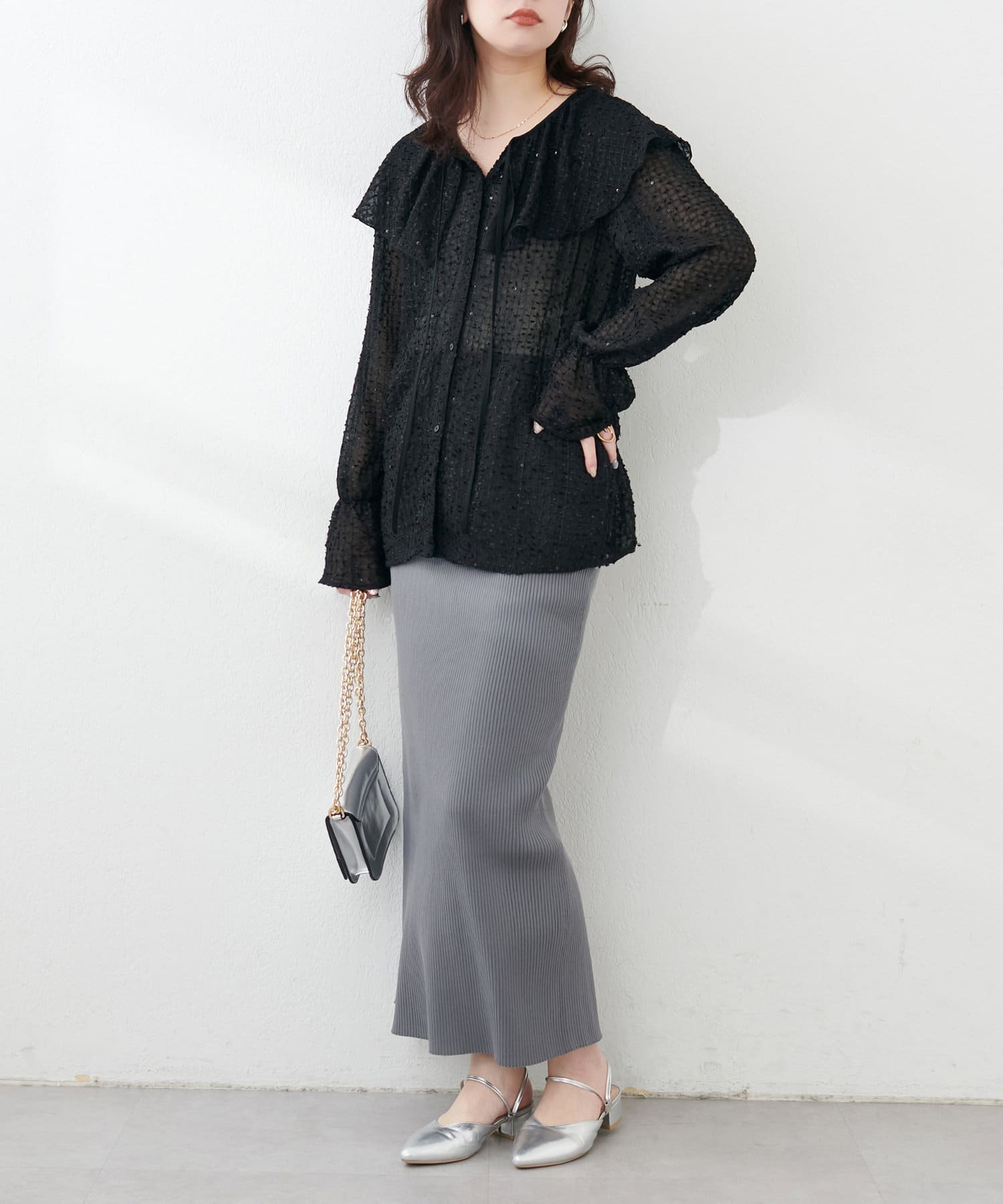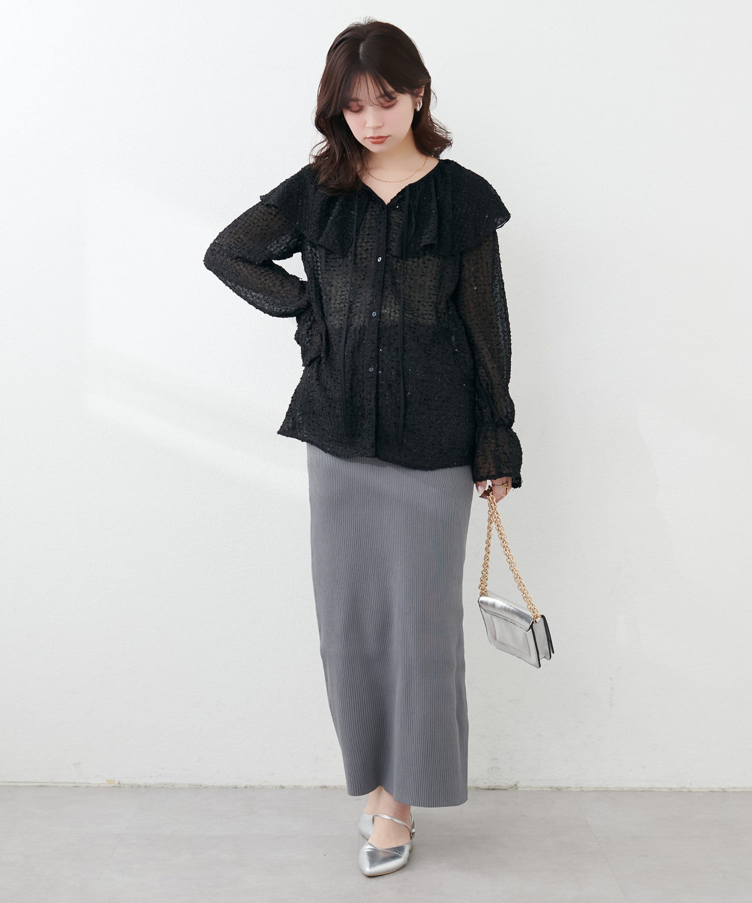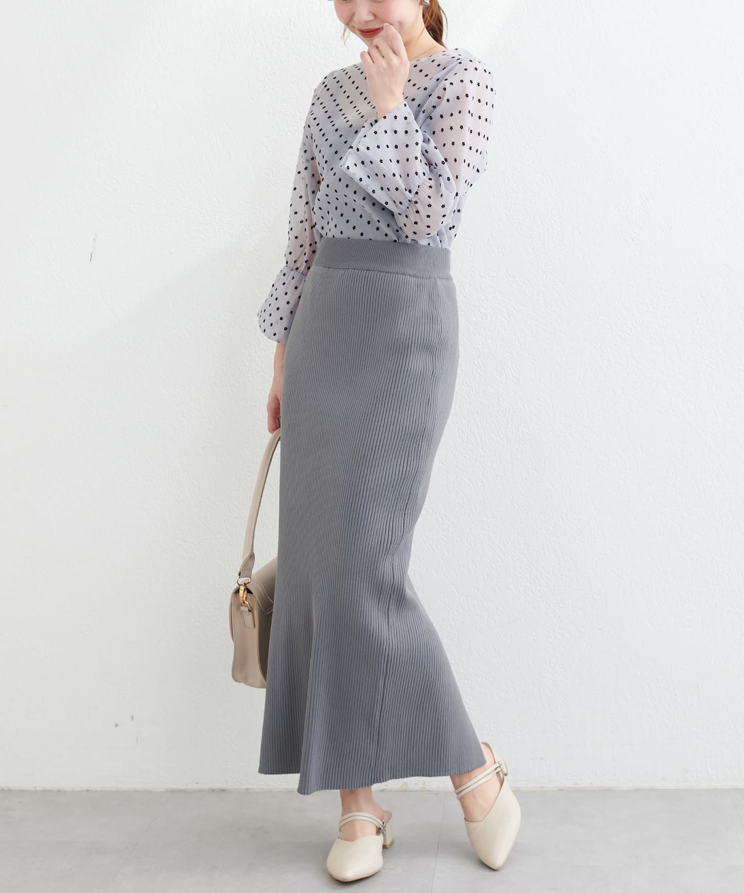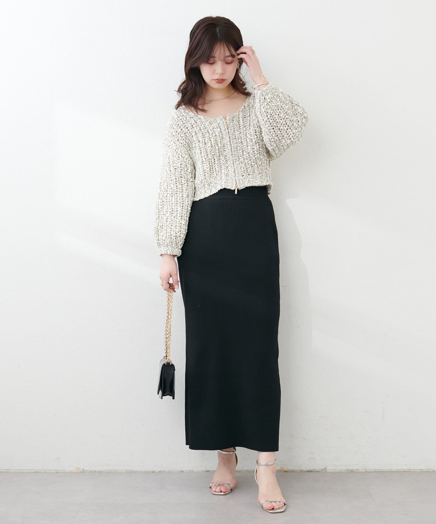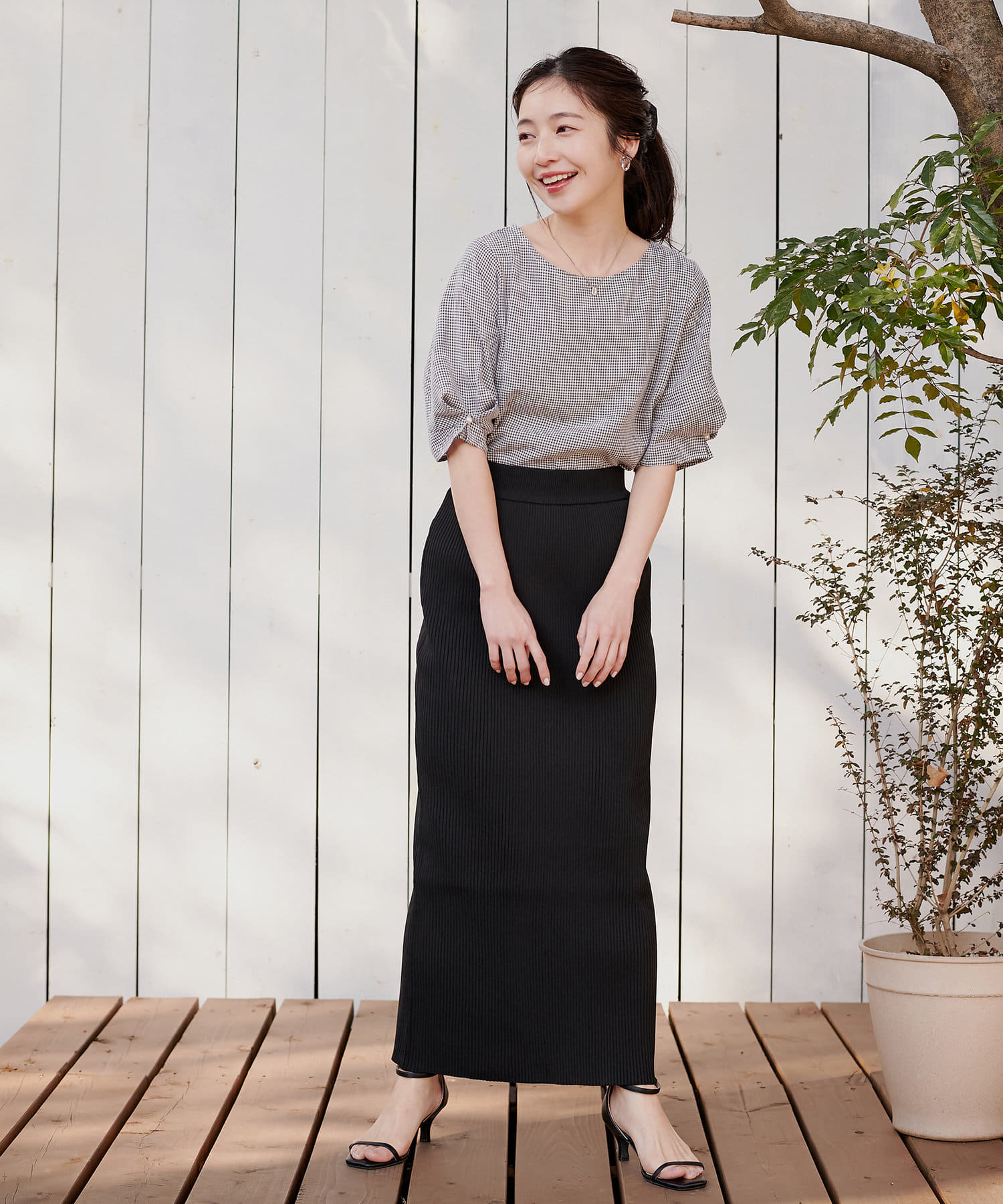 Web限定 /【プチナチュ】スリット入り細リブニットタイトスカート