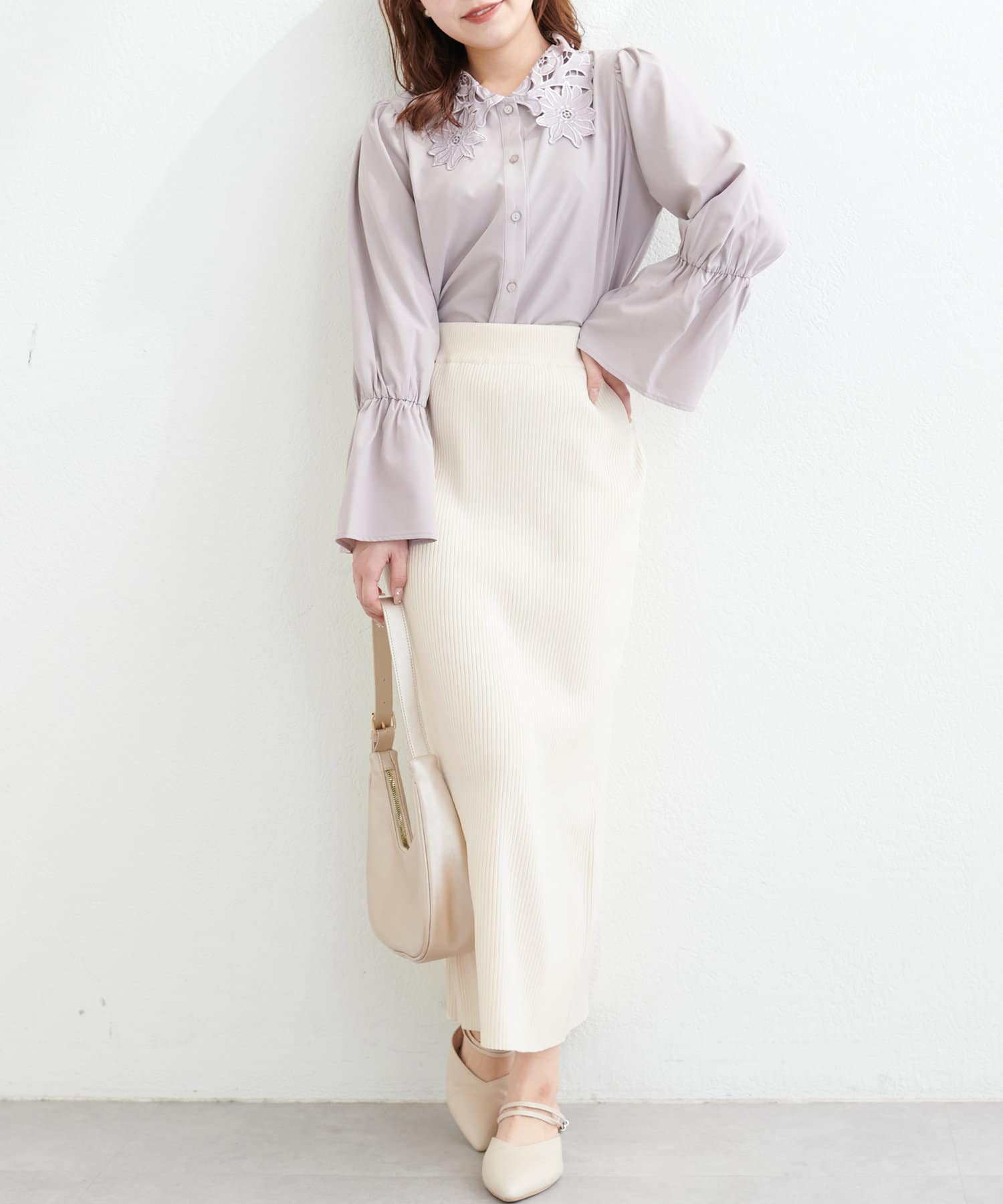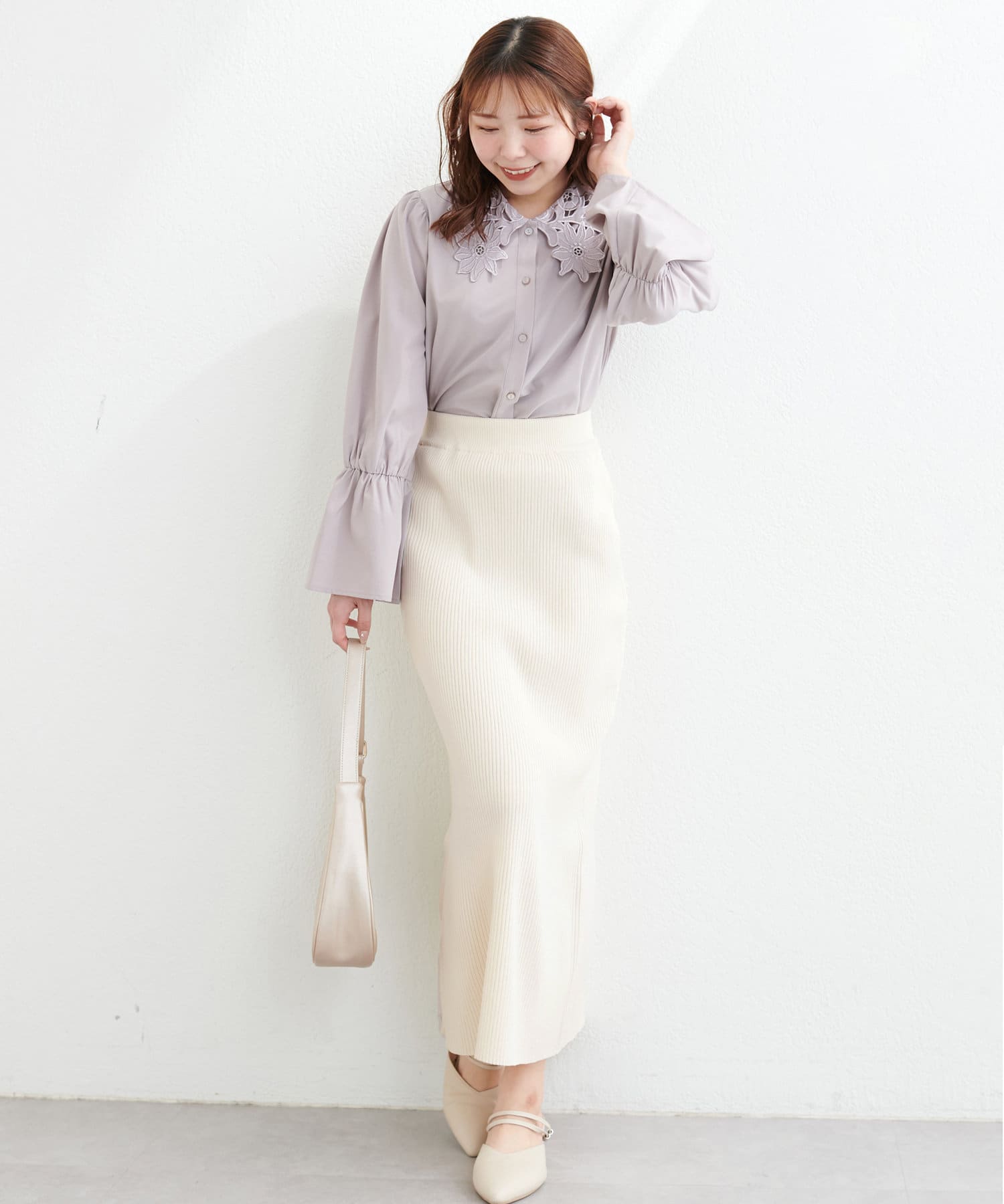 ブラウスをインして合わせてキレイめスタイルにも、スエットやゆるニットと合わせたカジュアルコーデとも合わせやすいスカートです。