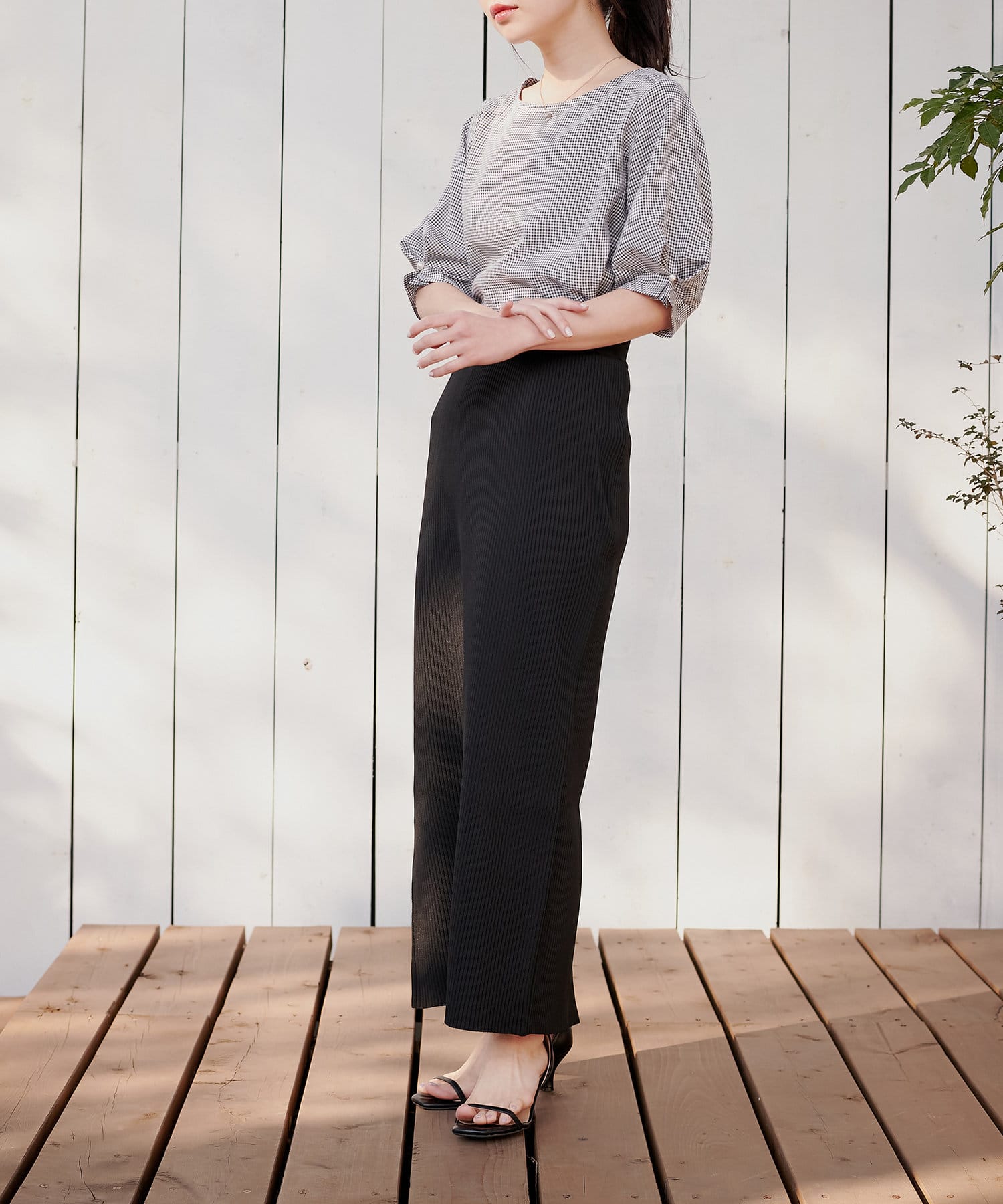 肌触りよく伸縮性もばっちりな細リブの素材になっており、ウエストもゴムでストレスフリー◎