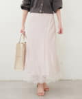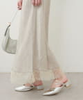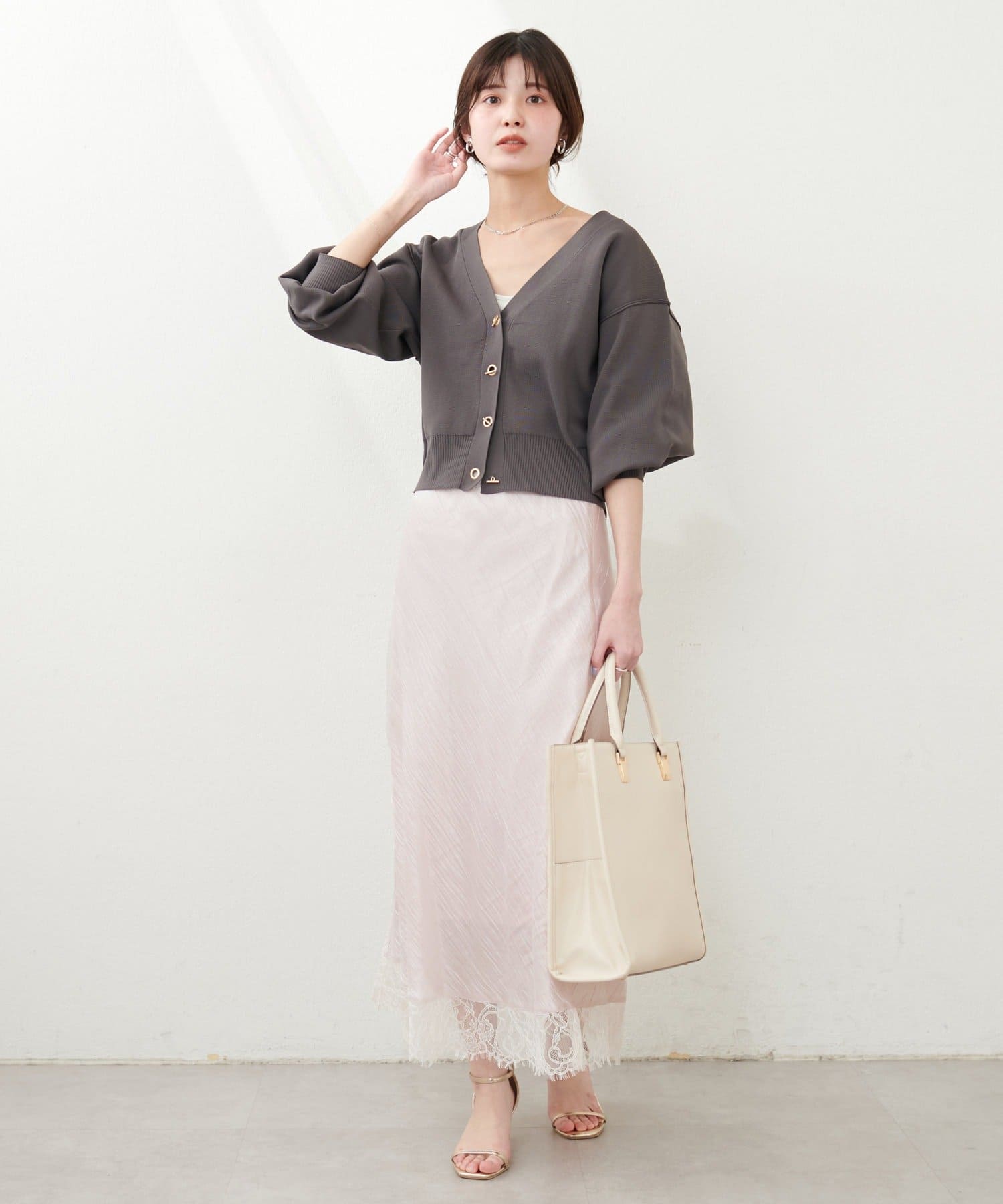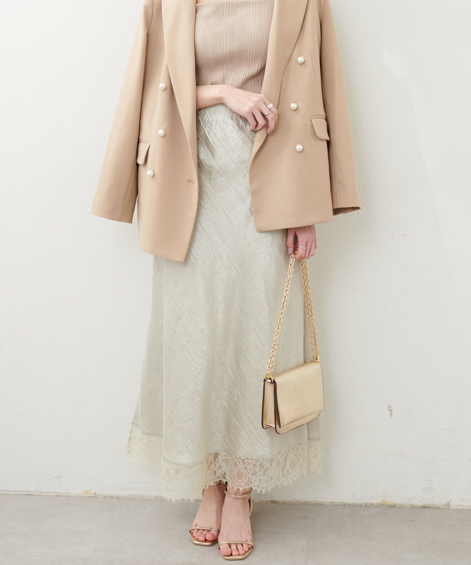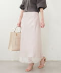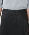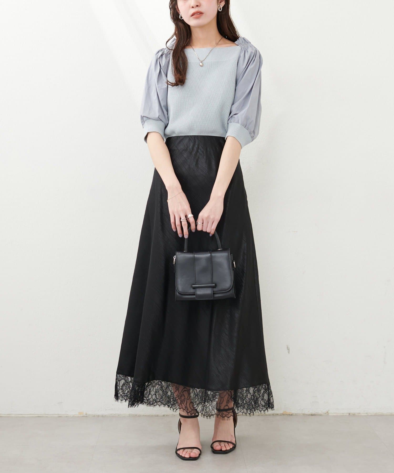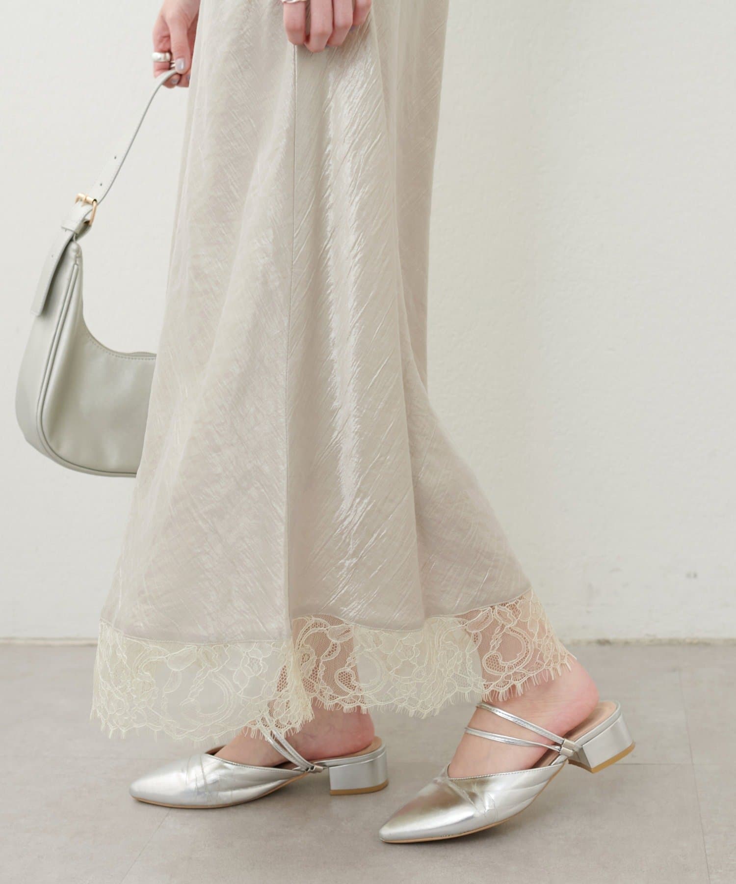 表面感のあるサテン素材に裾レースを合わせた大人フェミニンなスカート。