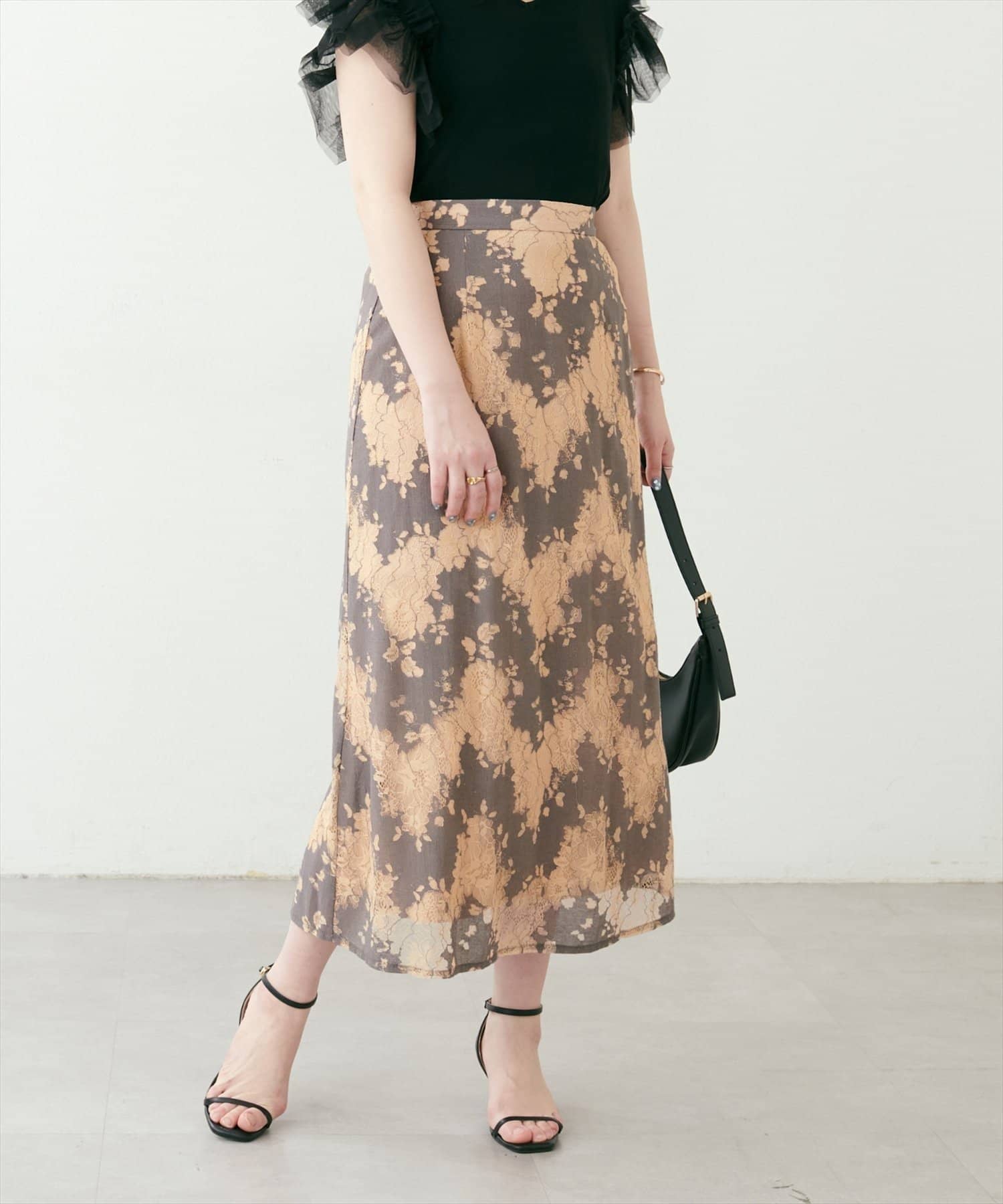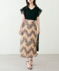 1枚で存在感のあるスカートなのでトップスはシンプルにまとめるのがおすすめです。