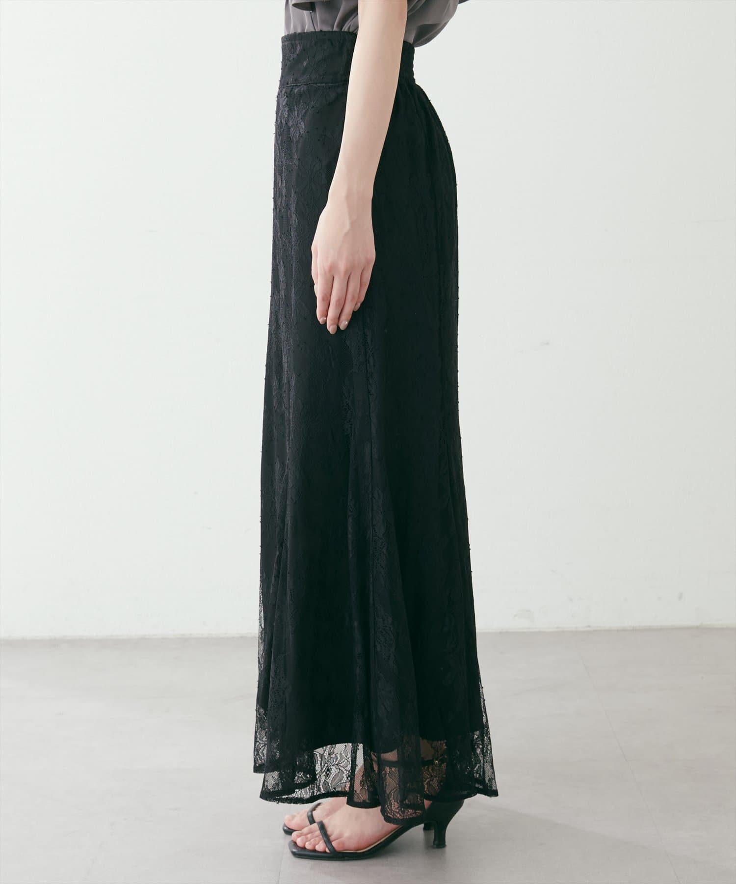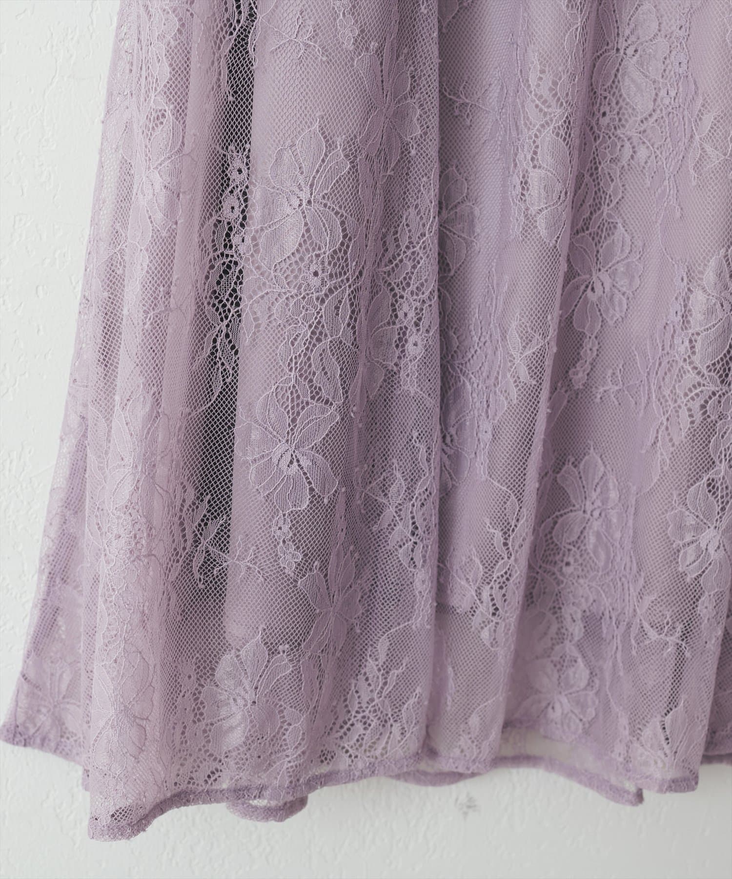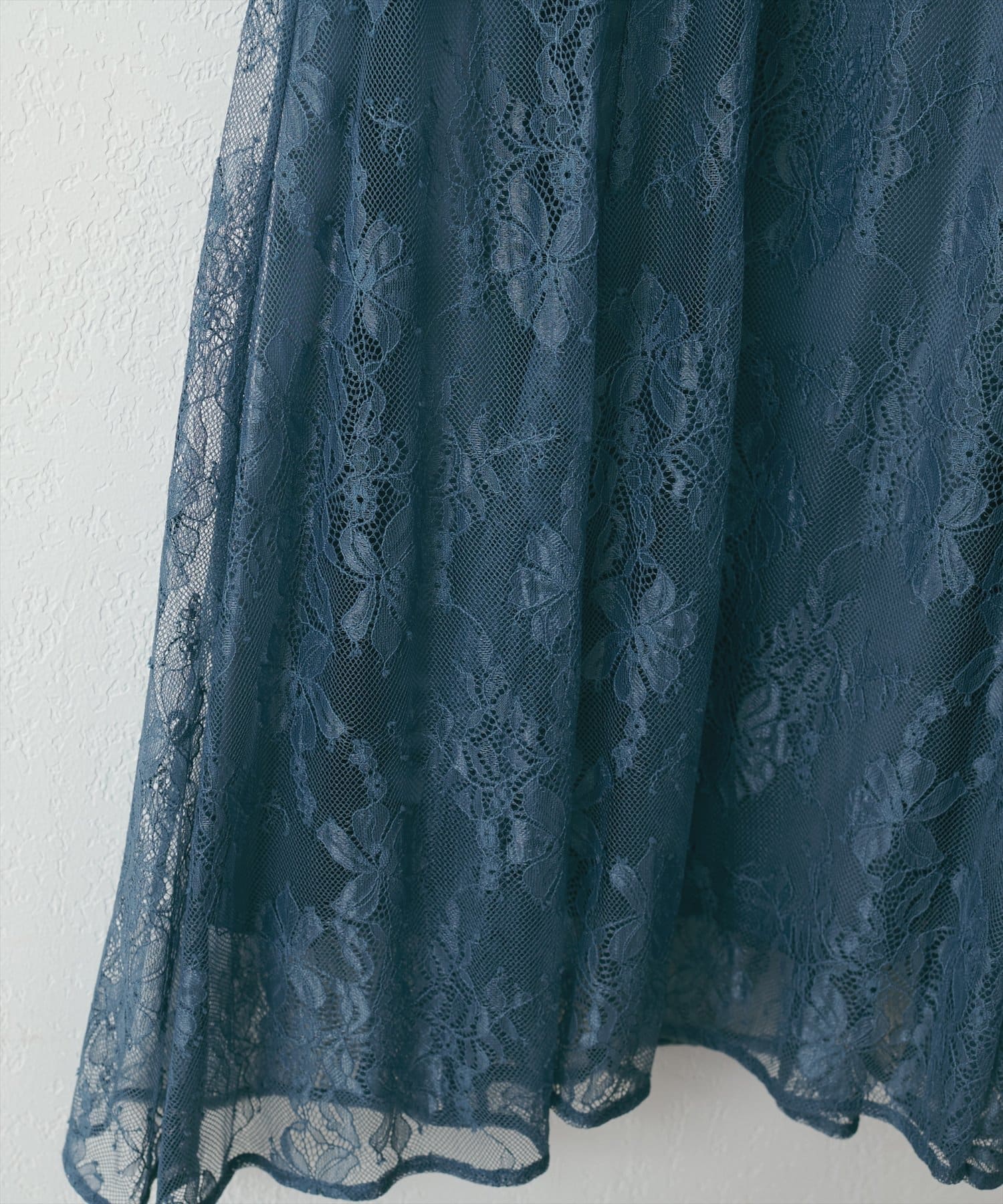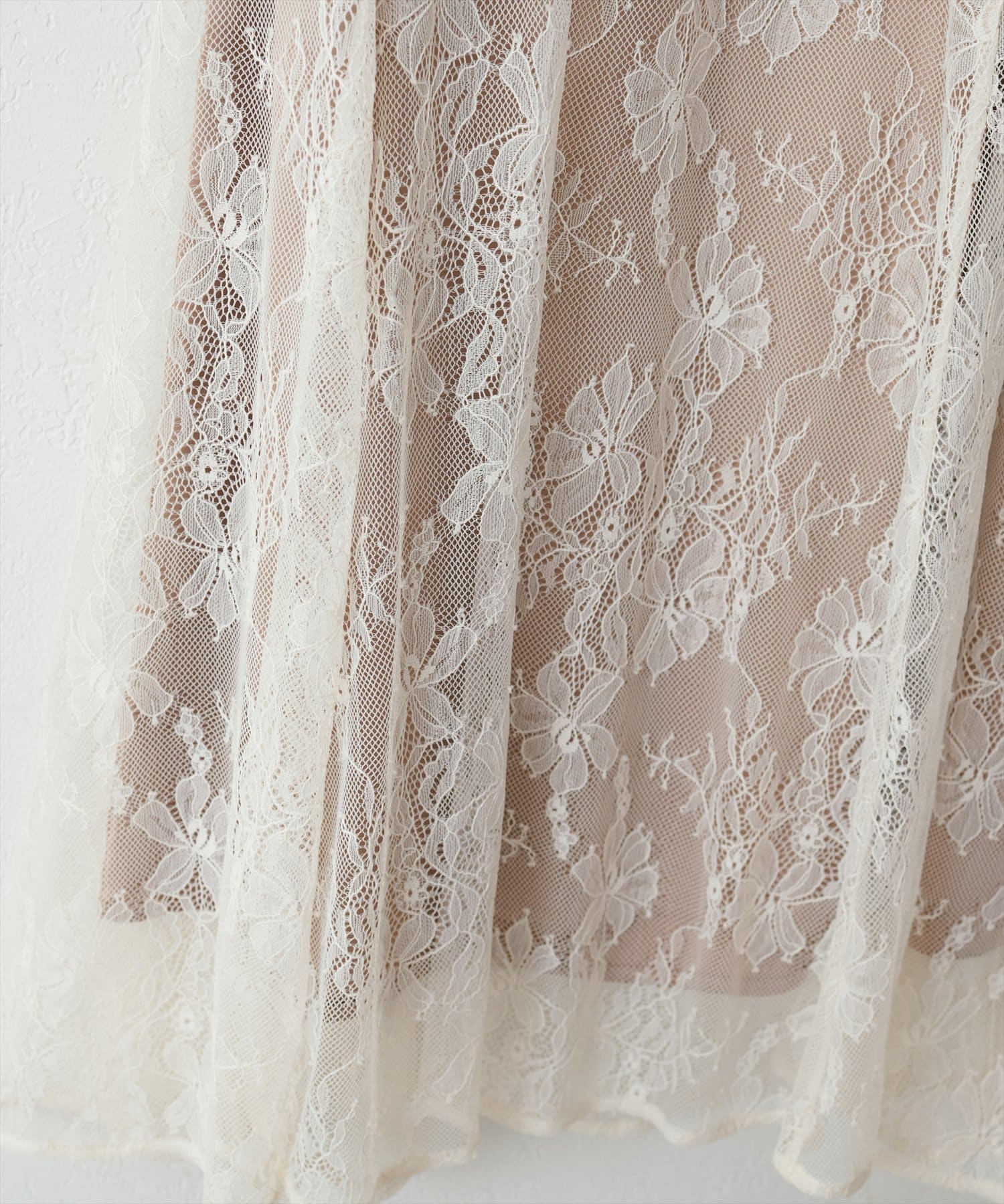 しなやかなスカートの動きと共に裾レースの透け感が上品且つ可愛らしい仕上がりになっています。