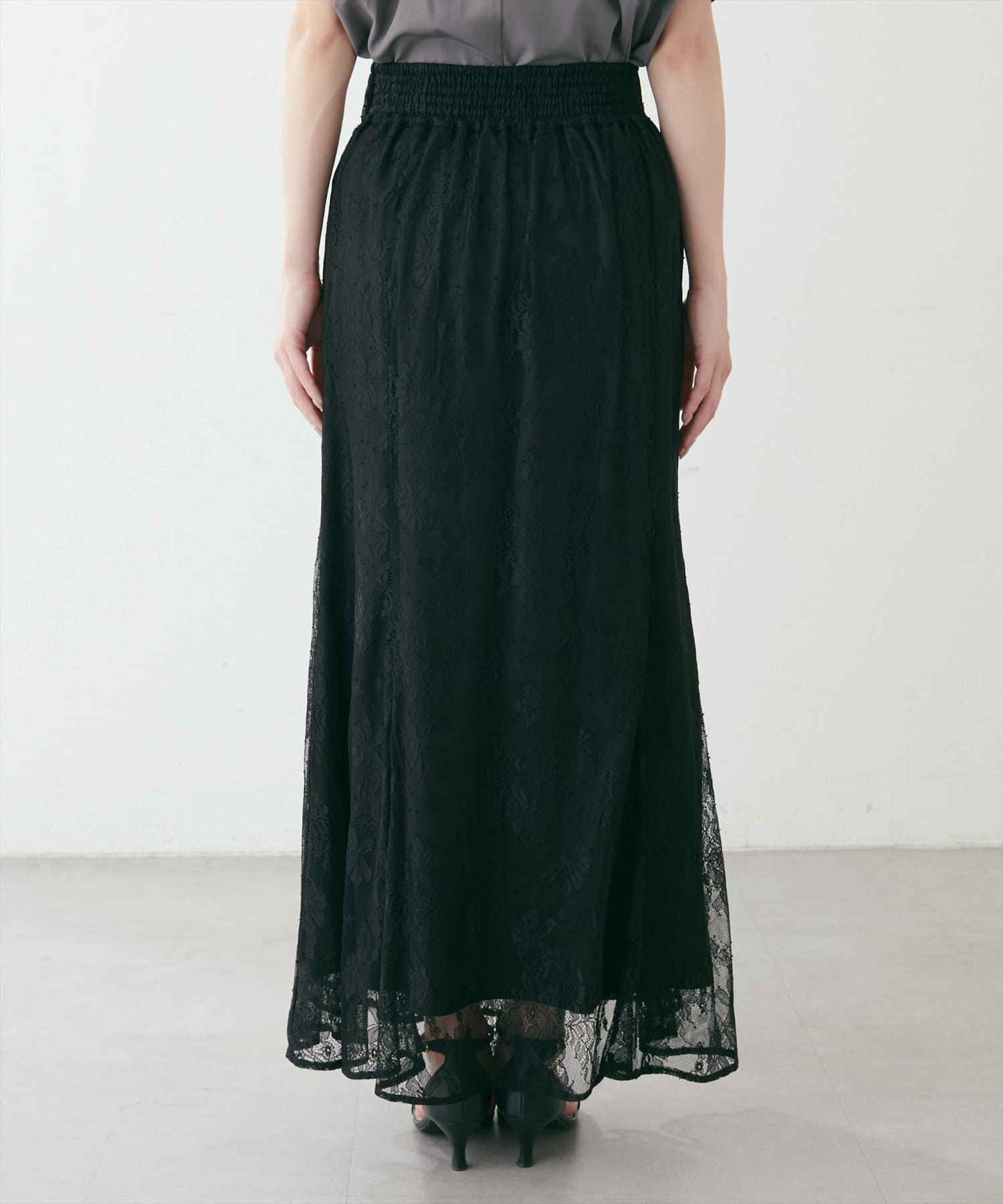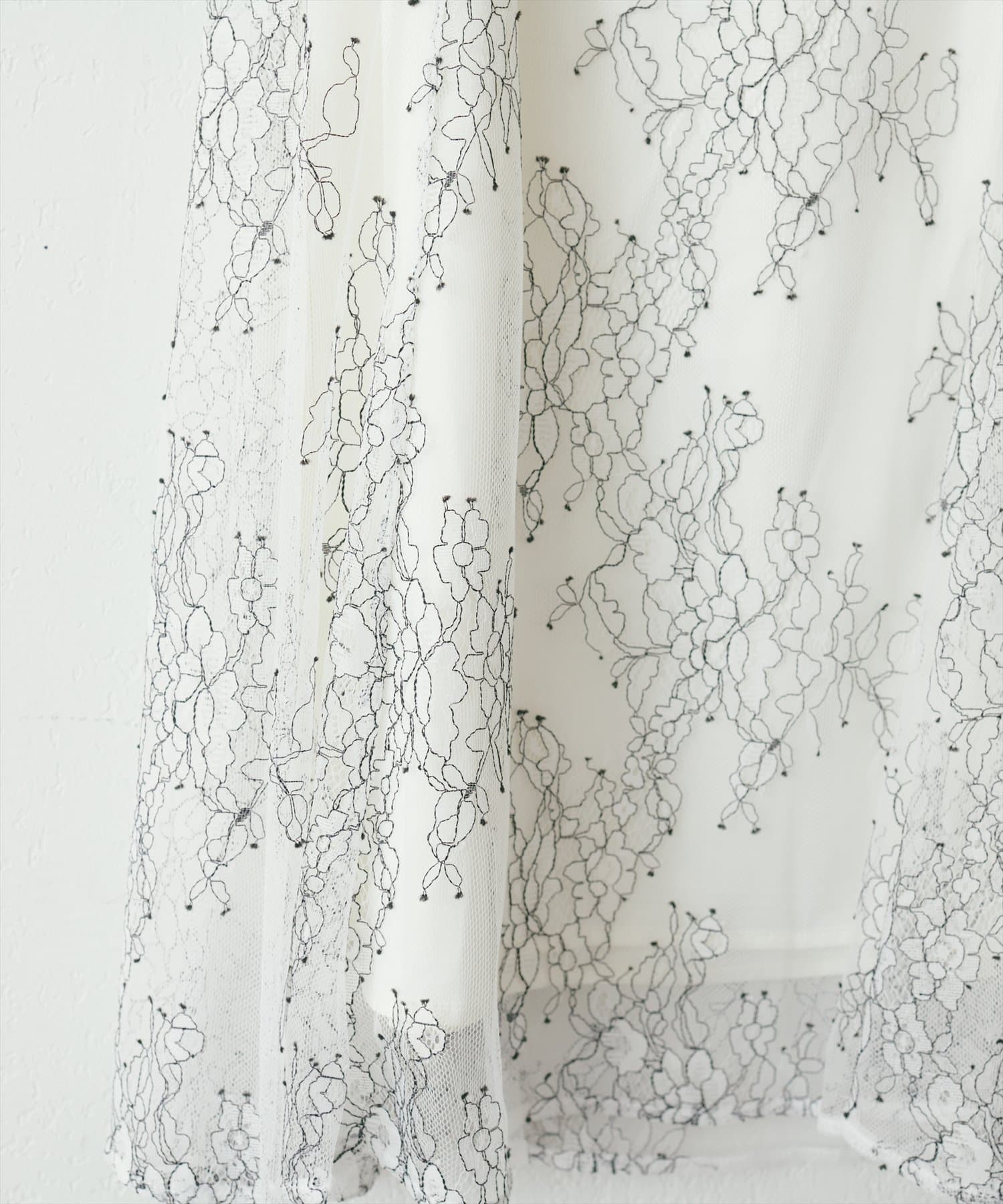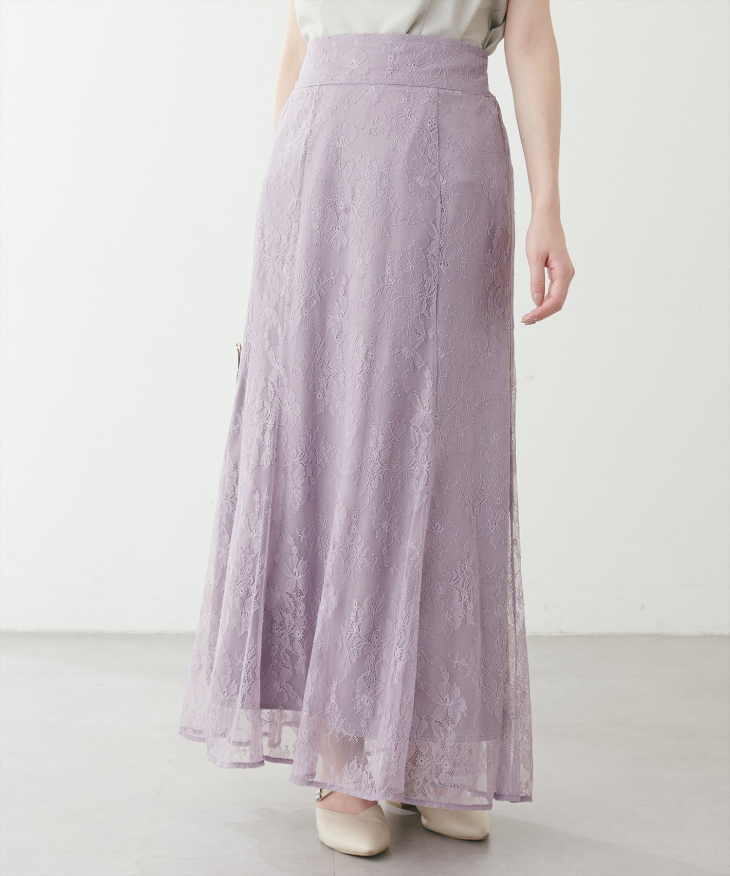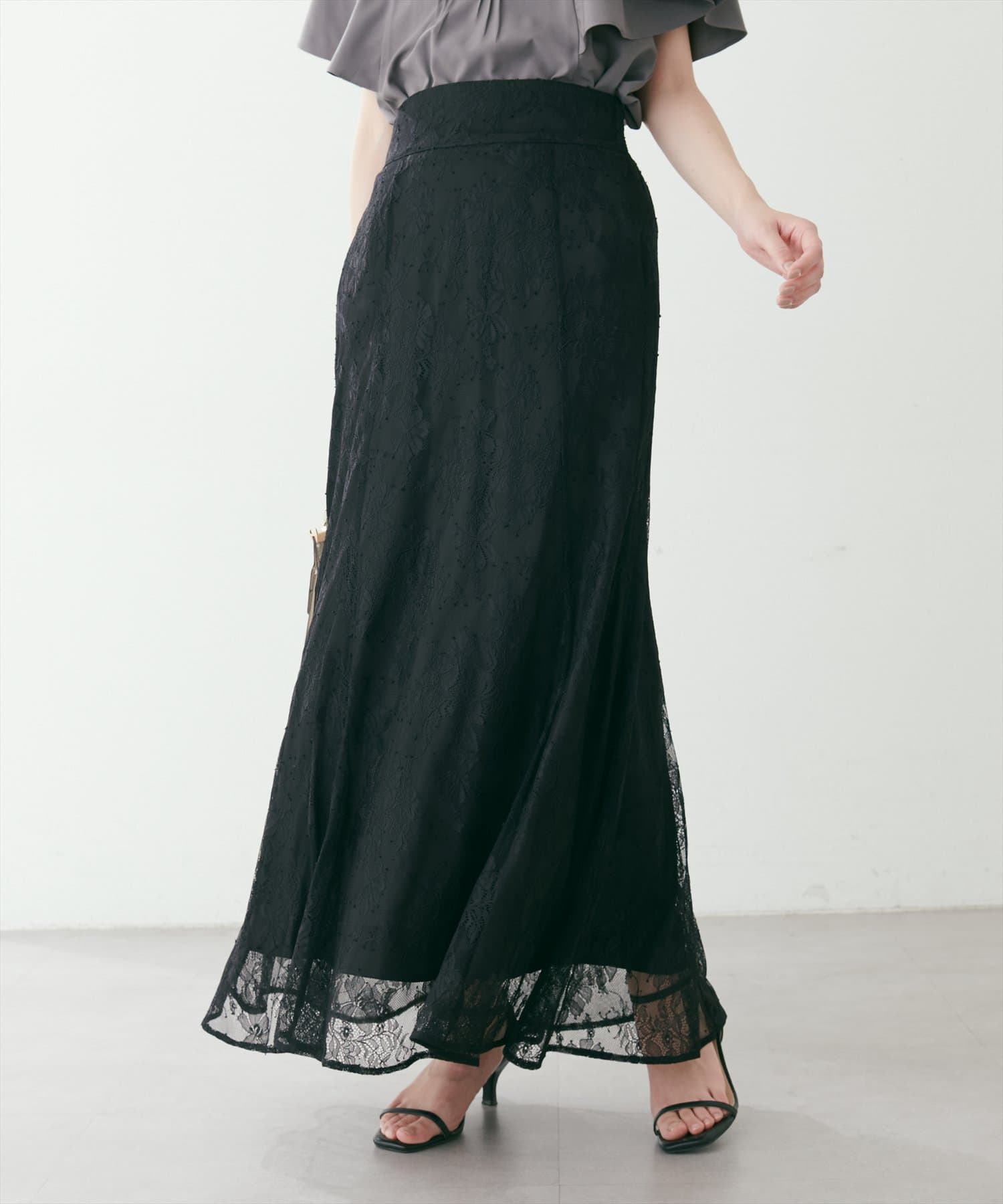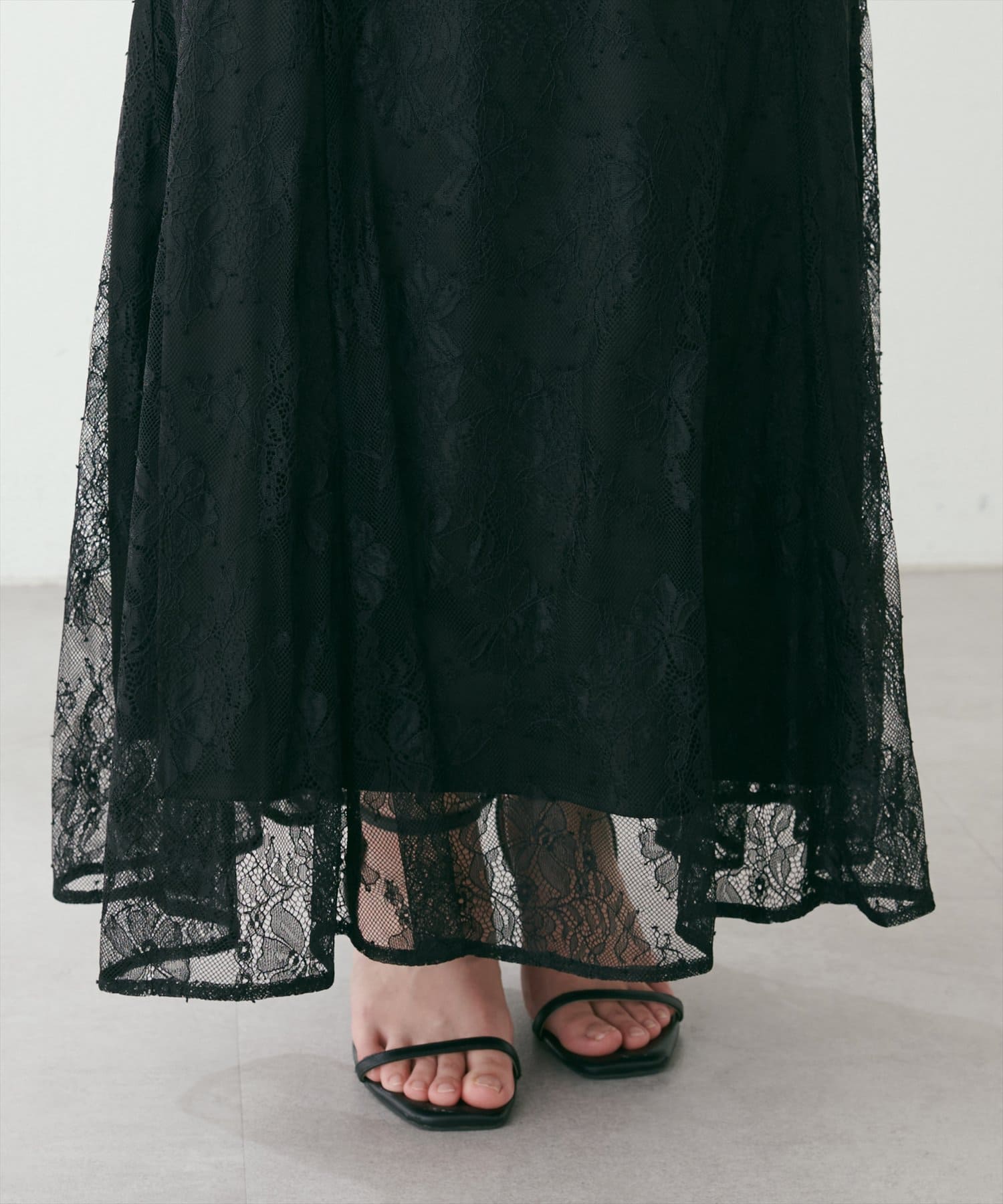 しなやかなスカートの動きと共に裾レースの透け感が上品且つ可愛らしい仕上がりになっています。