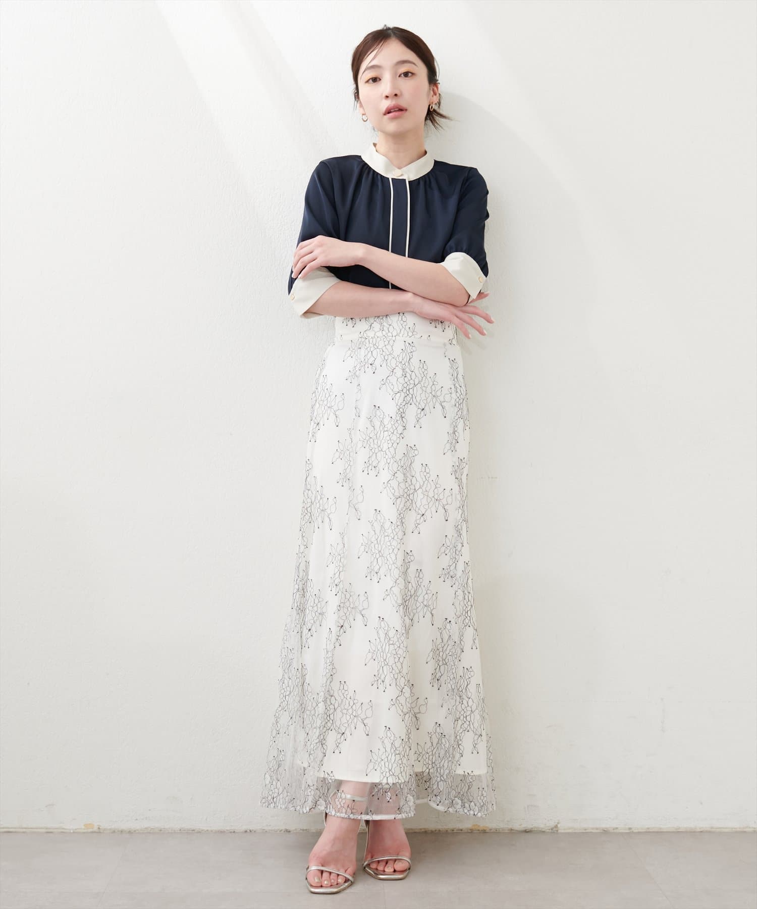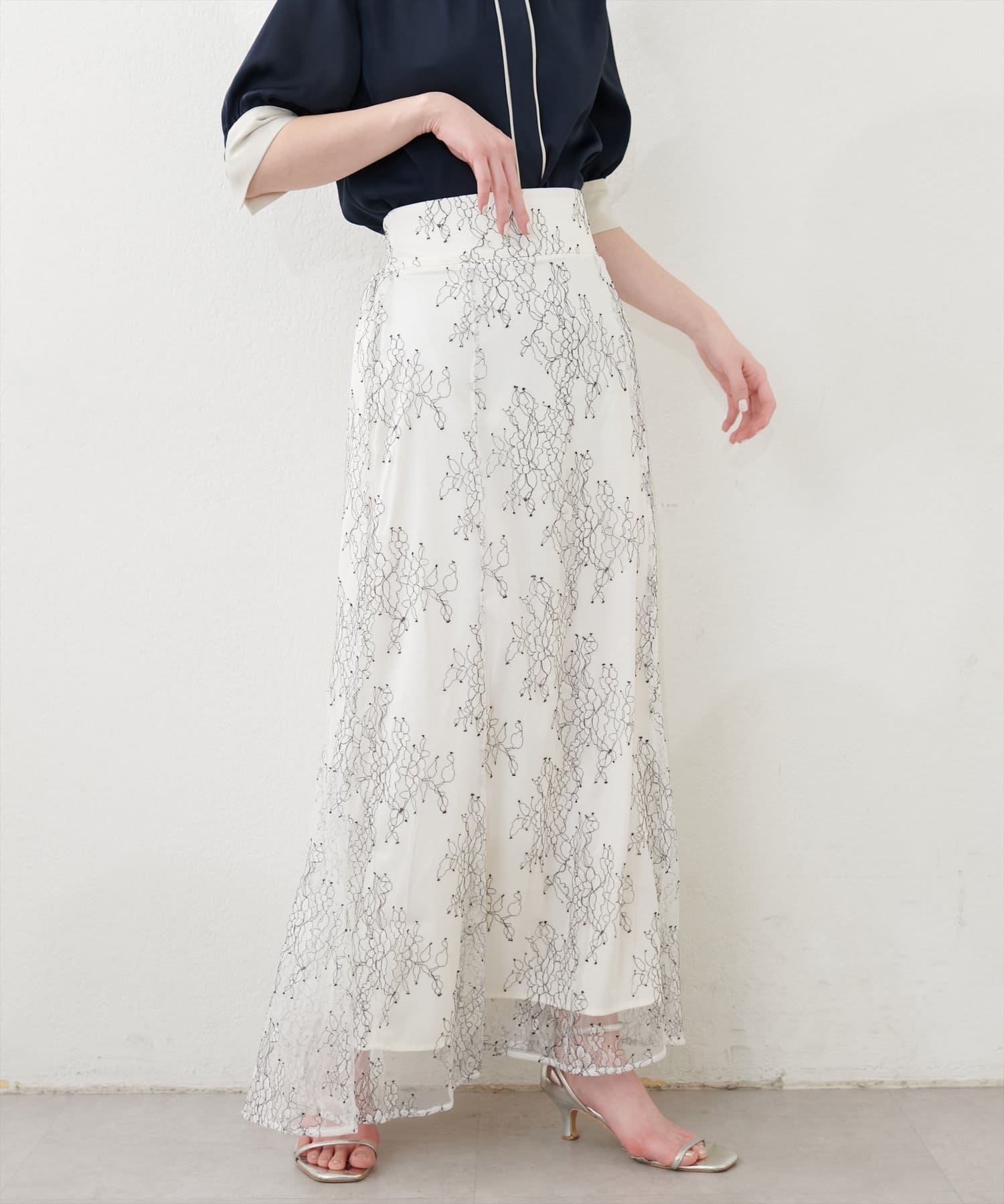 ブラウスなどシンプルなトップスとの相性が抜群です!思わず目を惹くデザインでデートコーデにもオススメの一枚です。