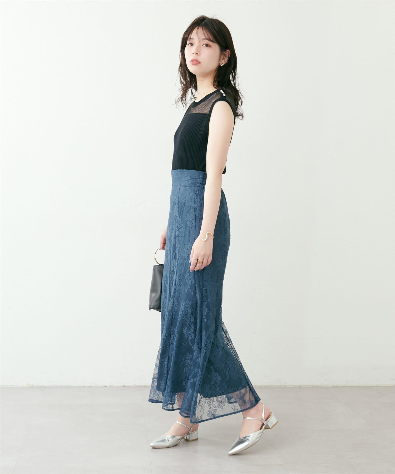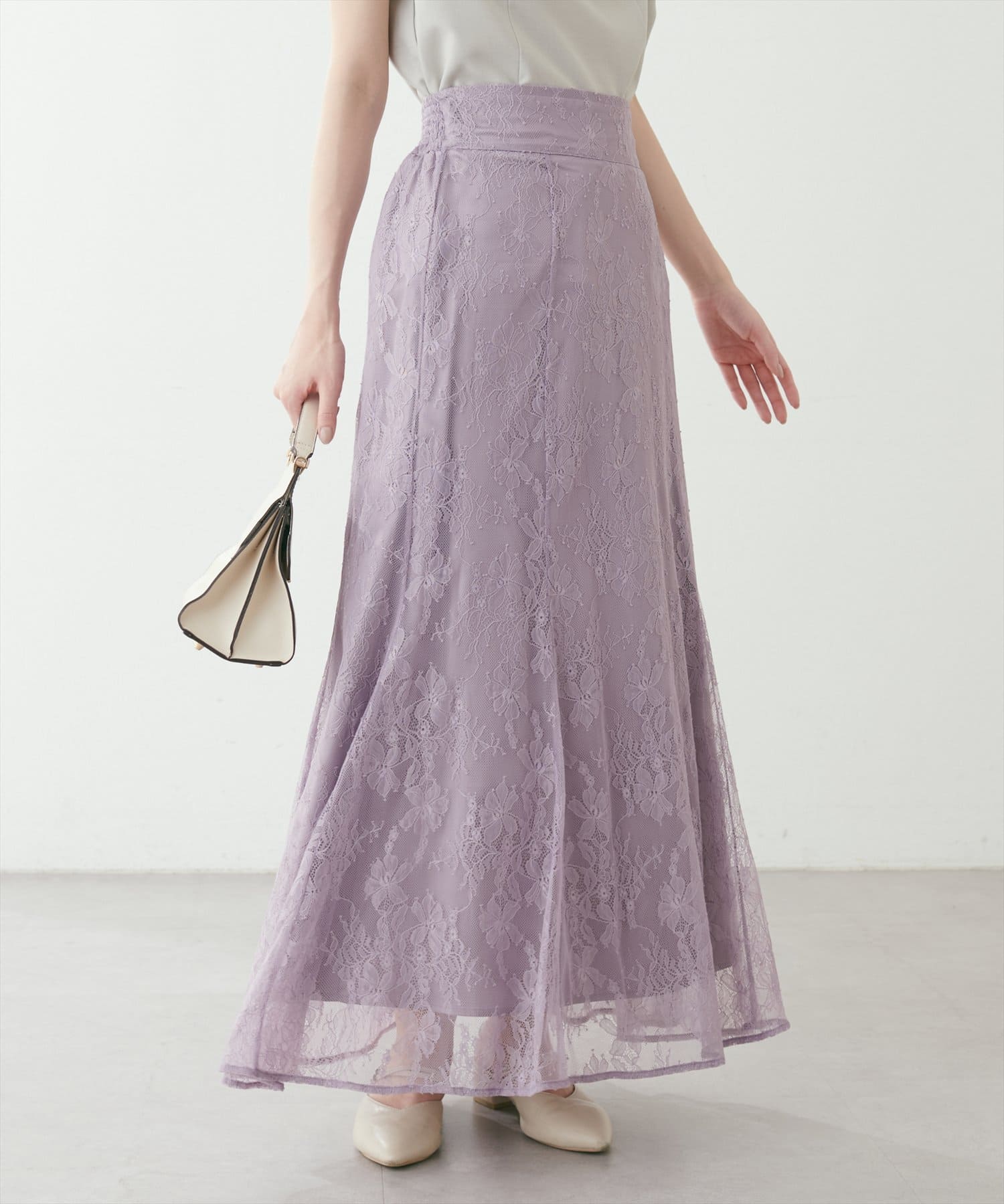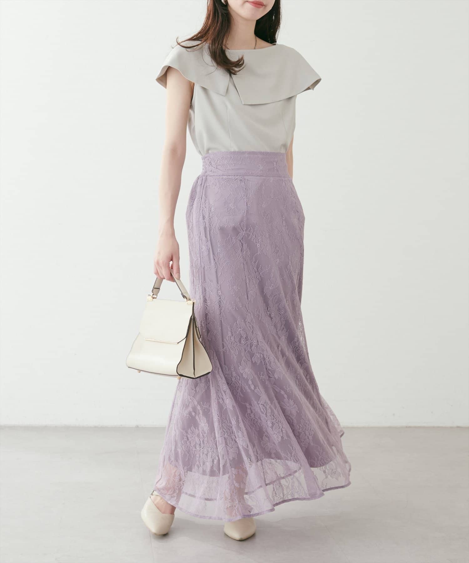 シーズン長く着れるレーススカートとなっており、ゆるめのプルオーバーなどと合わせてカジュアルコーデにも◎