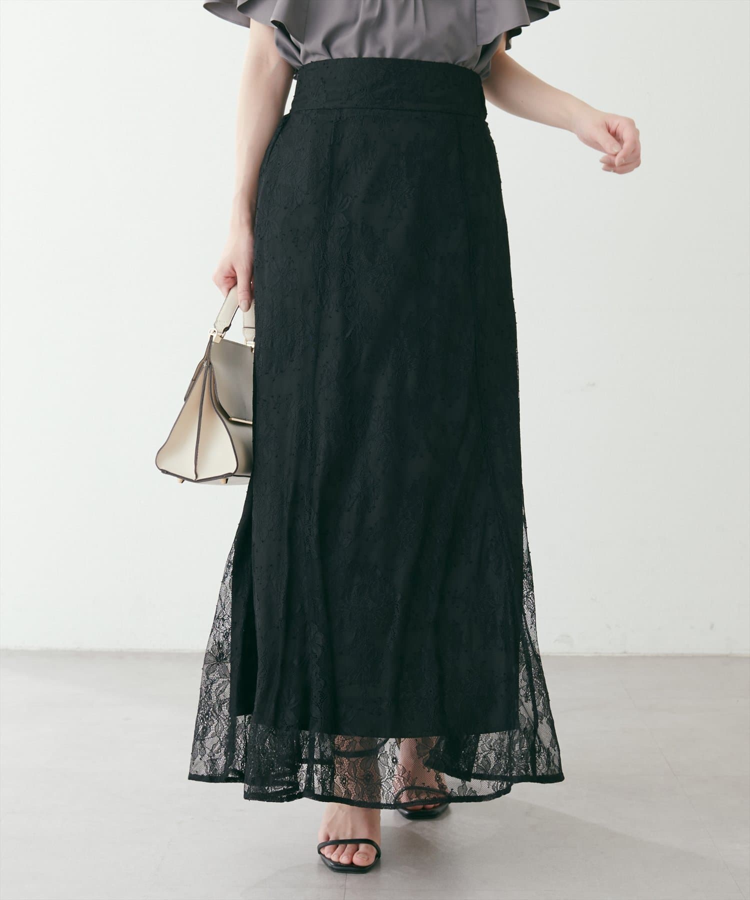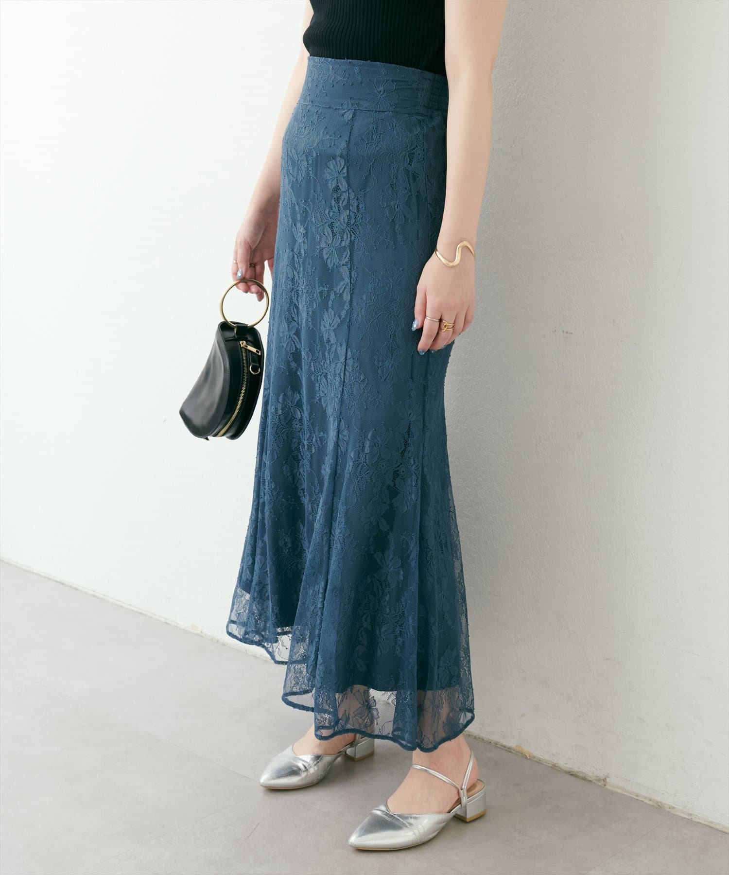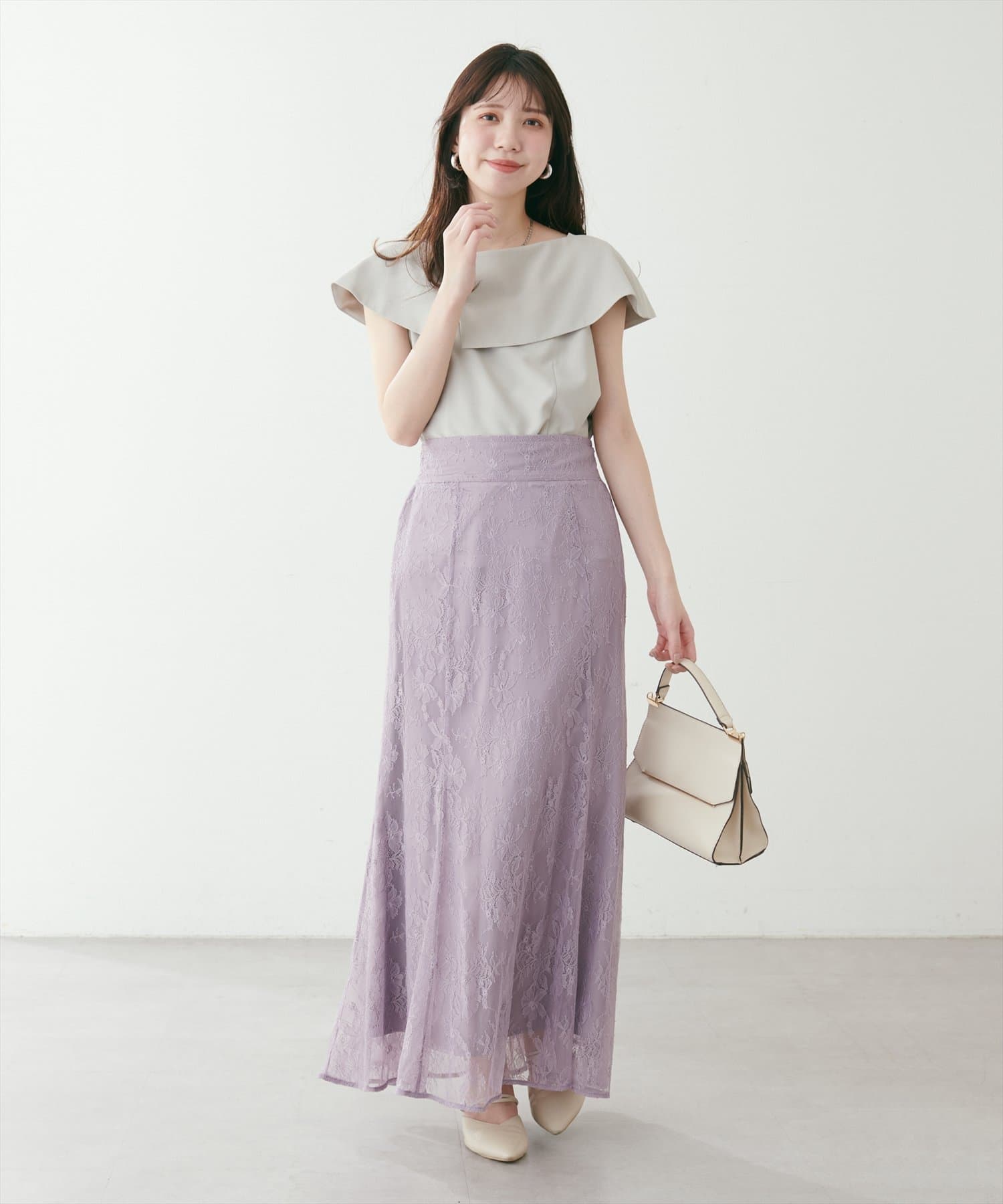 シーズン長く着れるレーススカートとなっており、ゆるめのプルオーバーなどと合わせてカジュアルコーデにも◎
