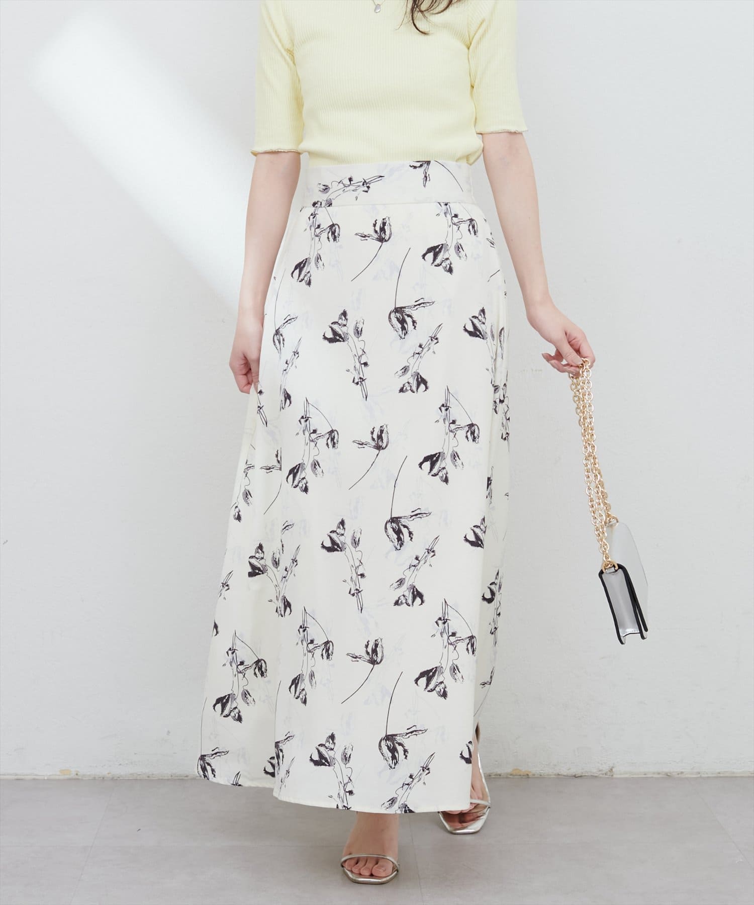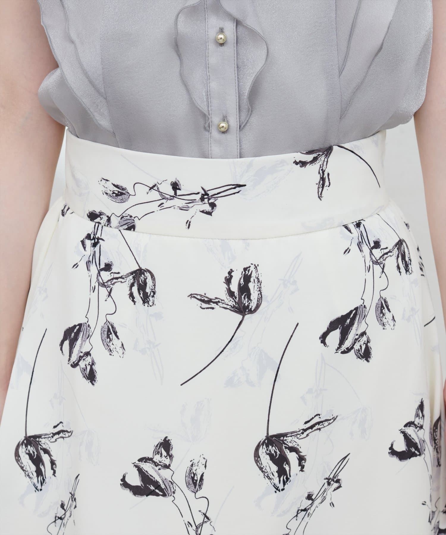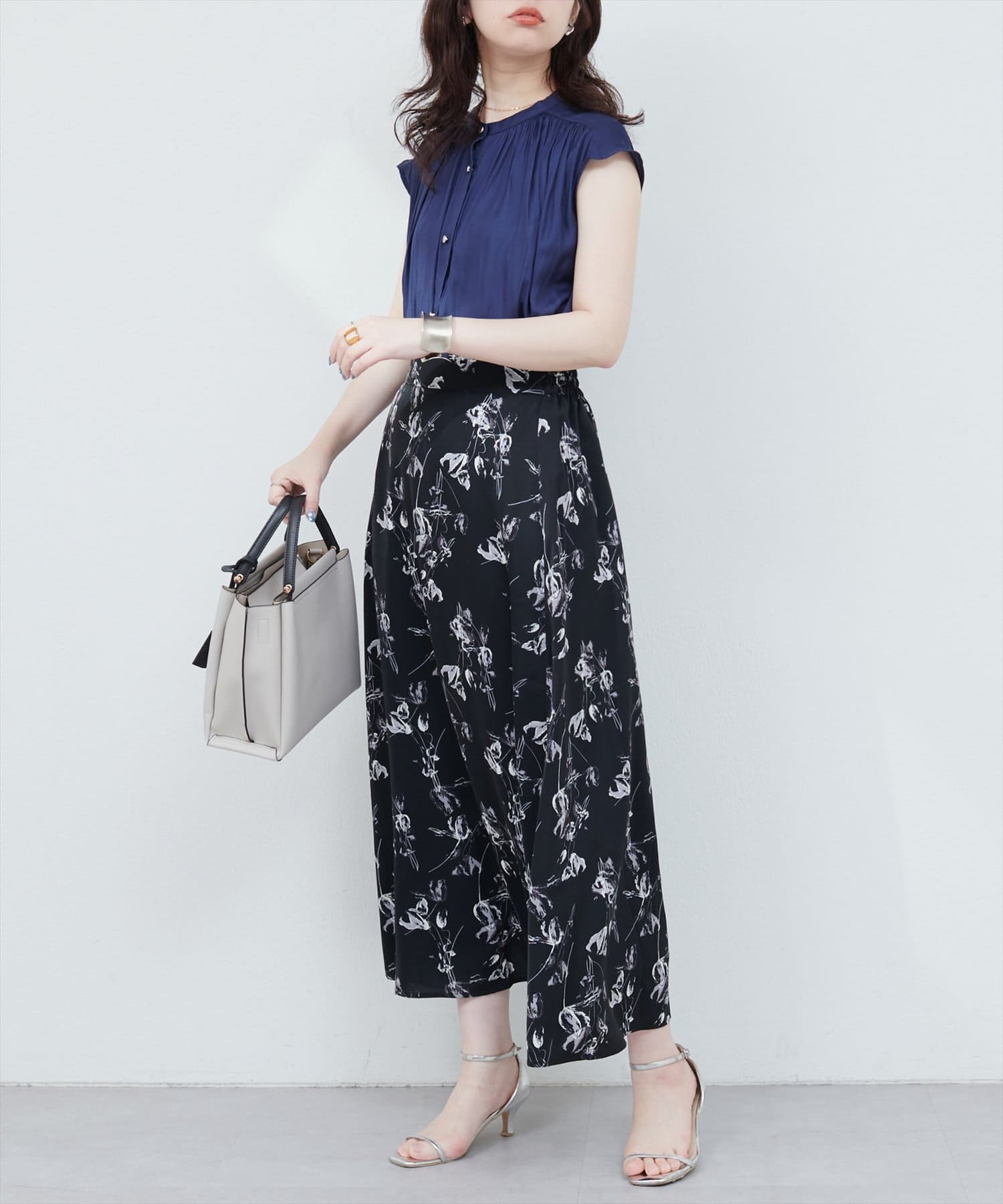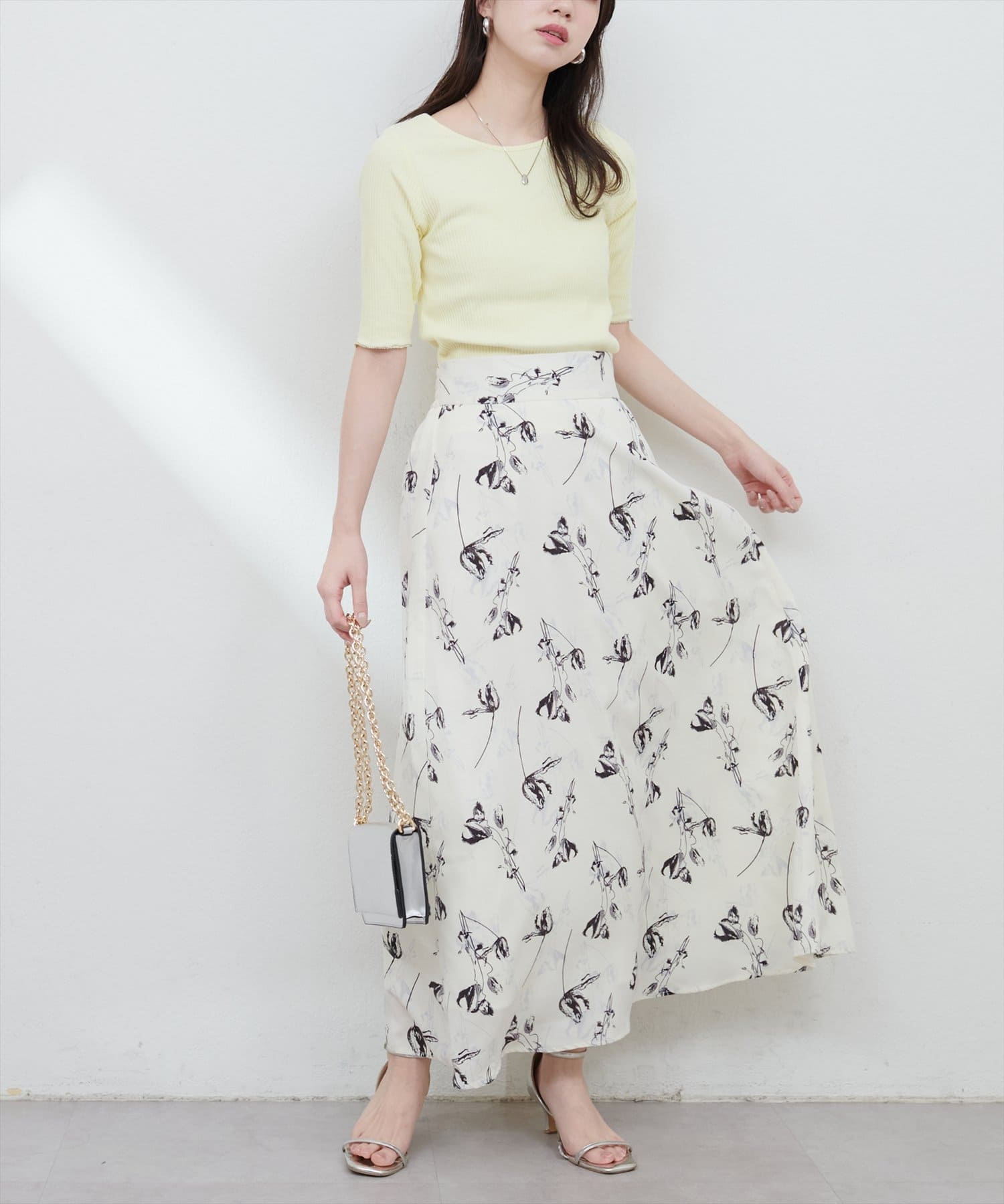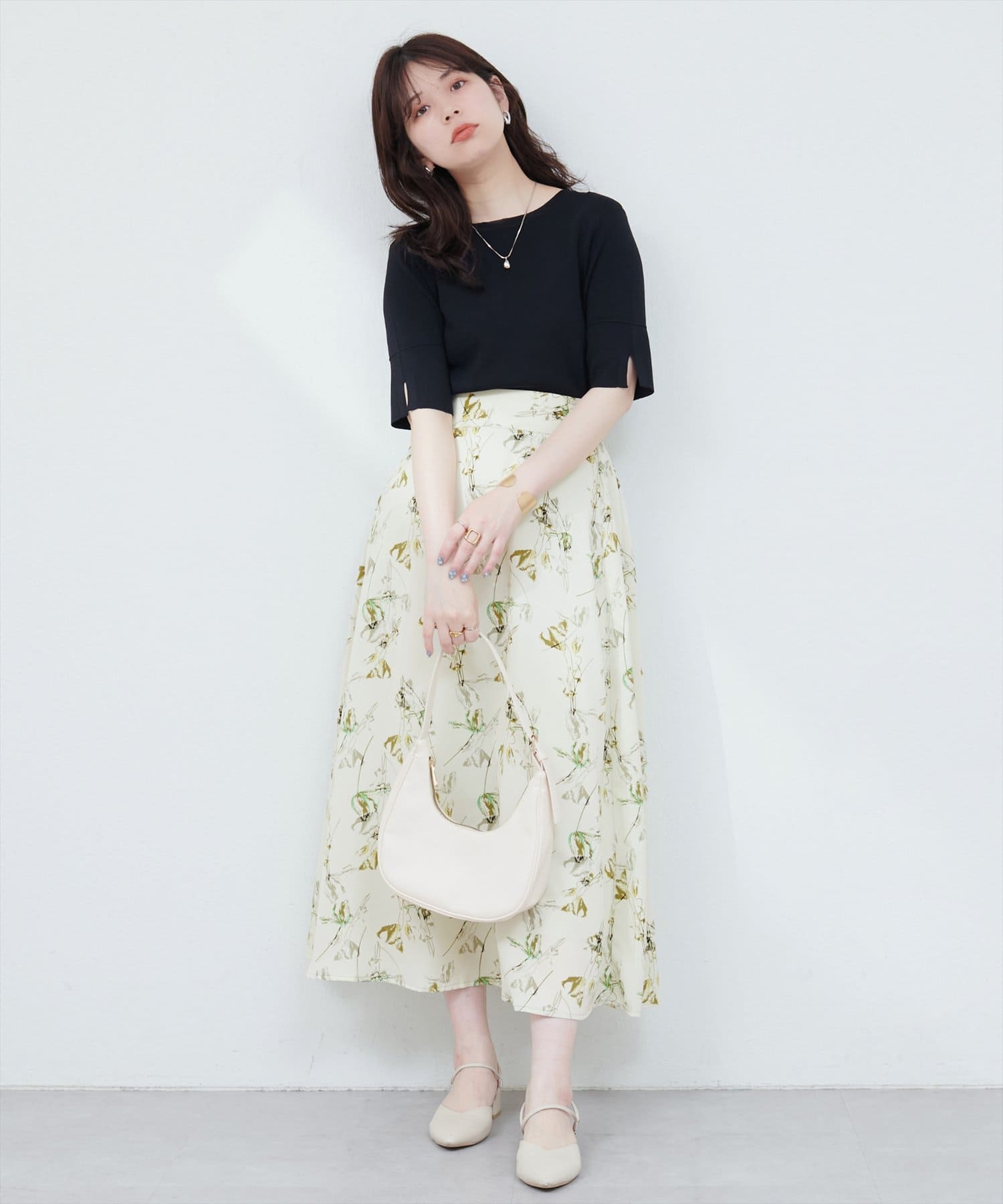 ブラウス合わせで王道フェミニン、オンオフ選ばない合わせやすいスカートです。