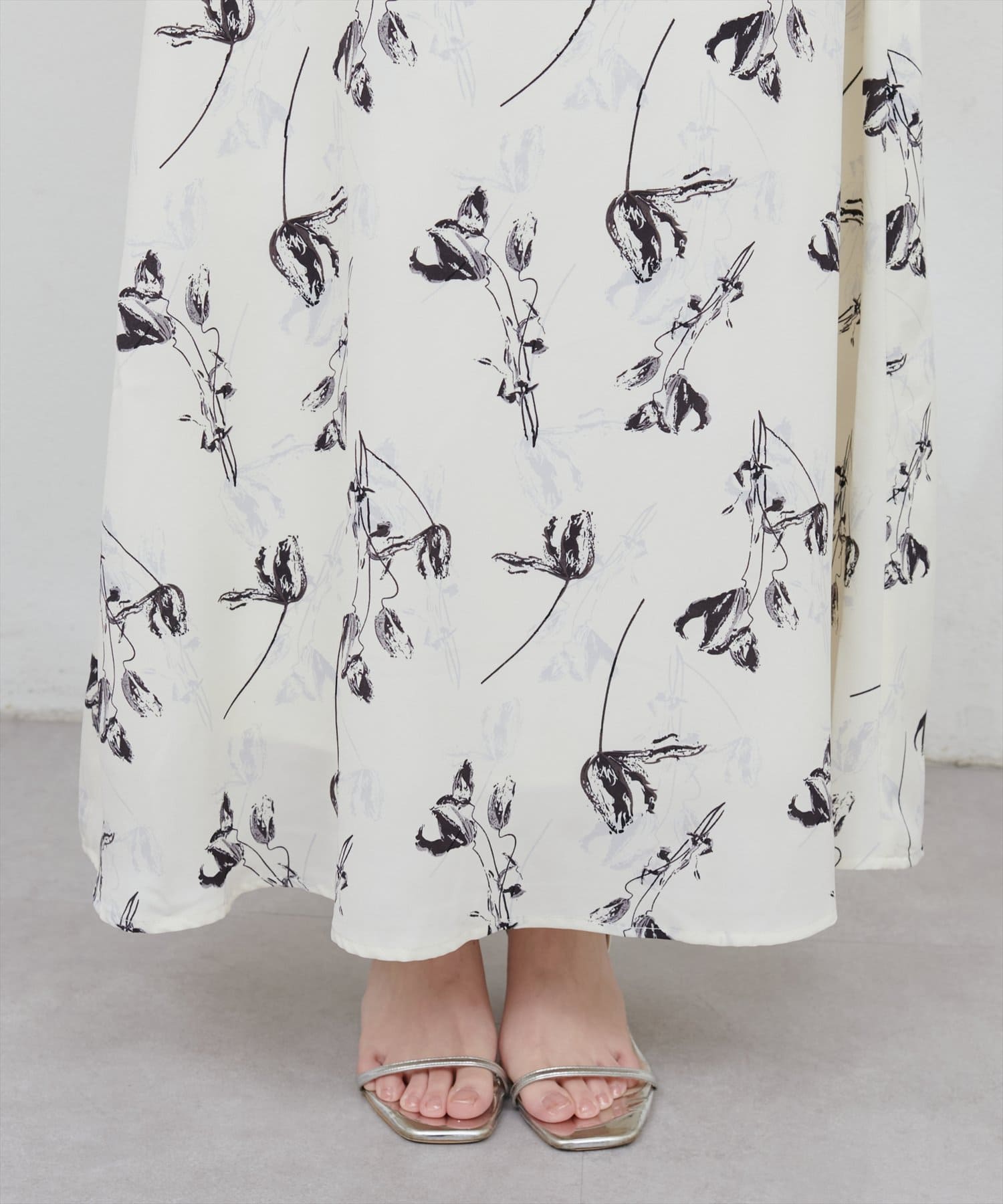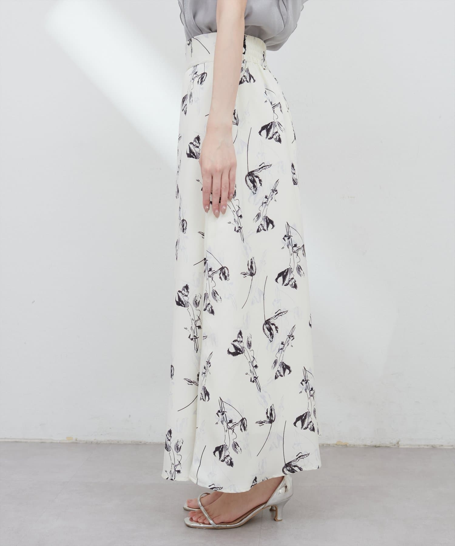 線画のフラワーアートで馴染みやすくフェミニンな印象になり、スタイリングが華やかに。