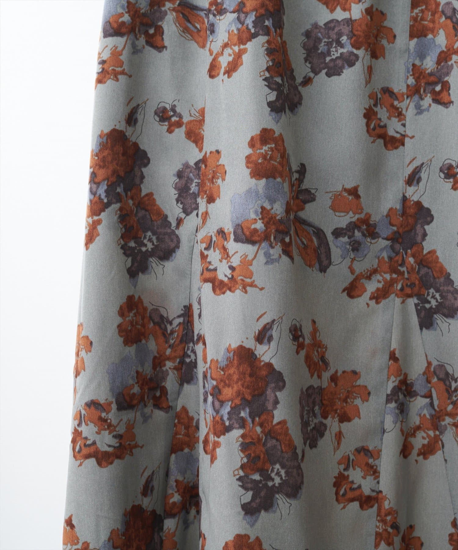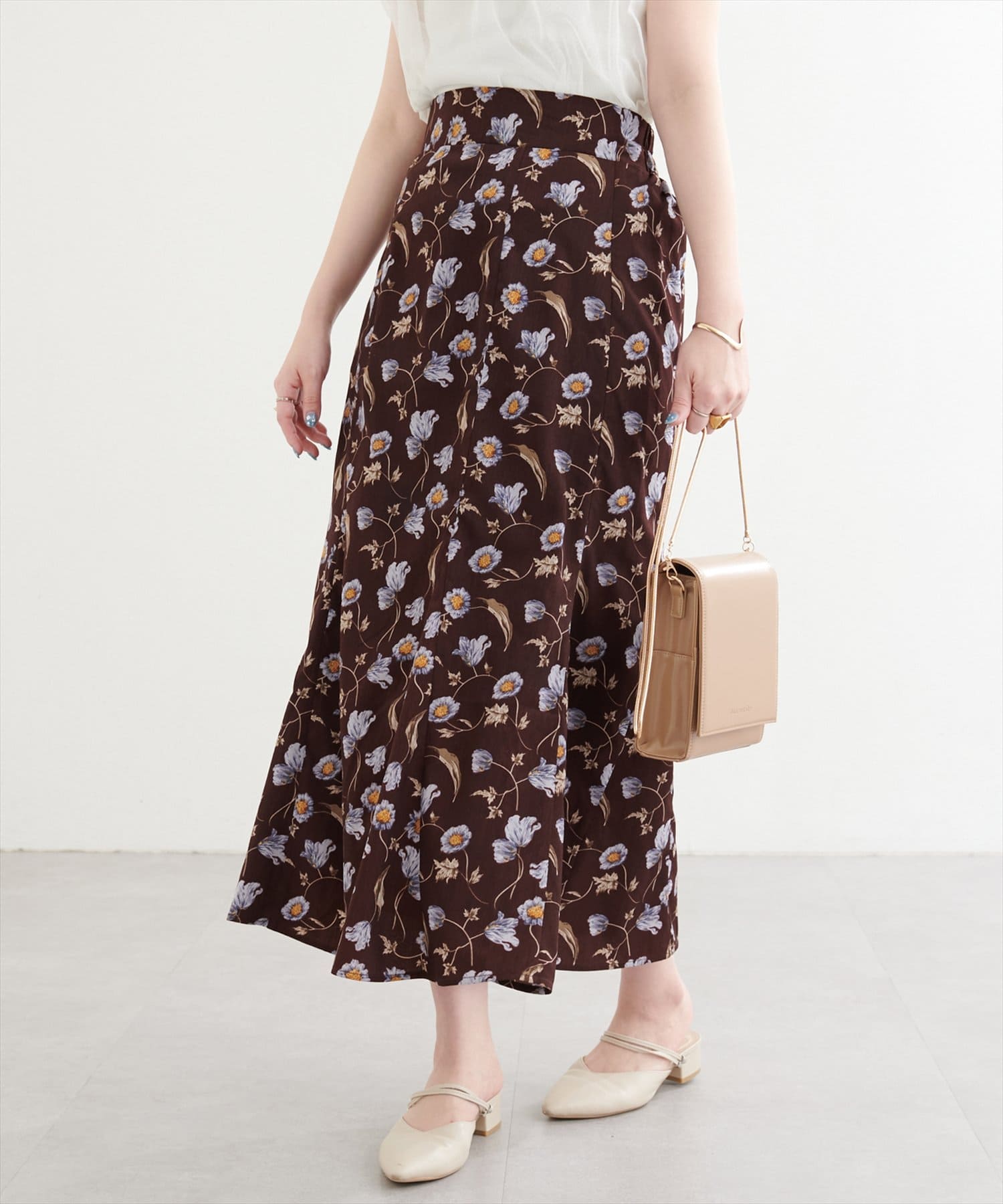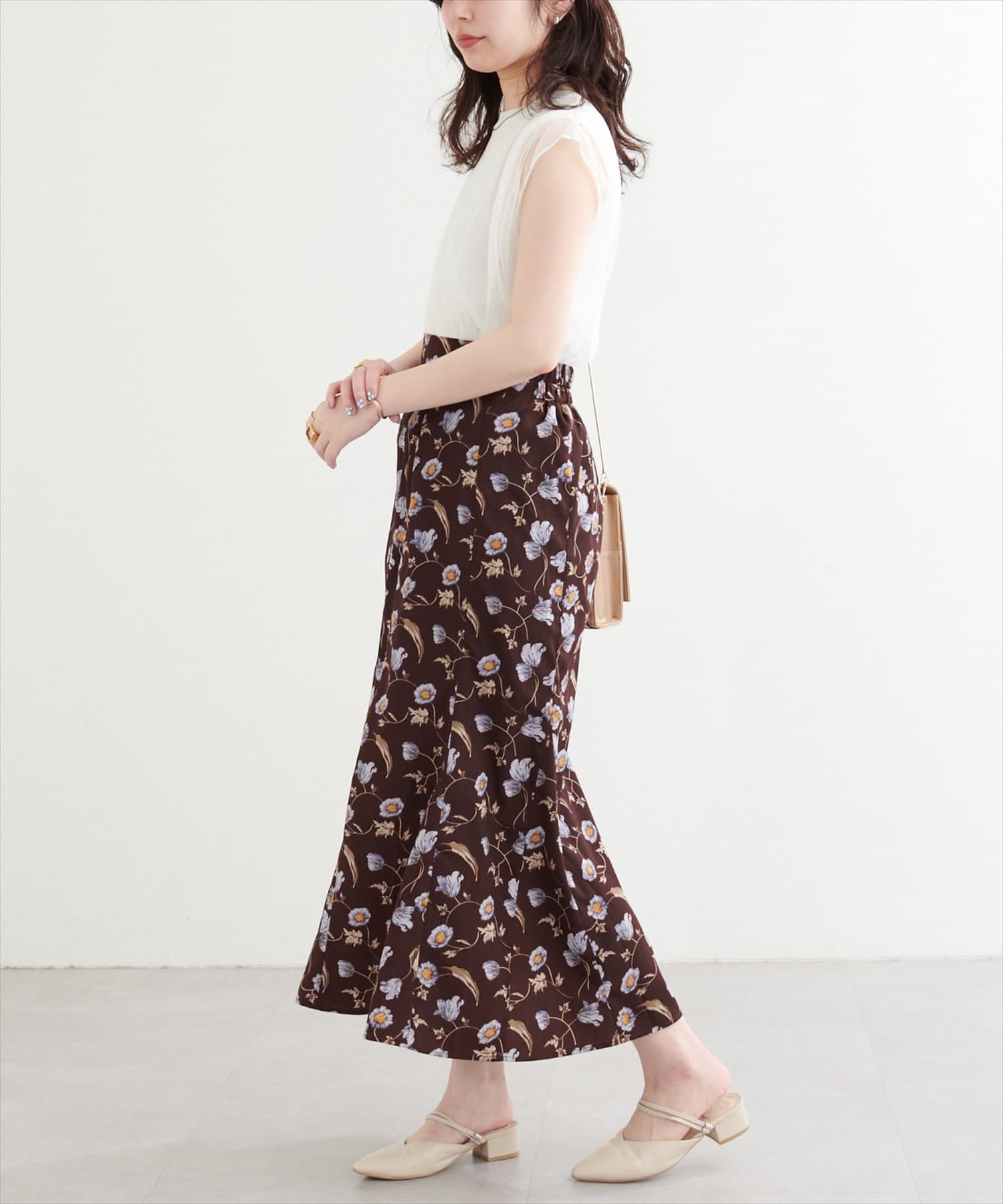 優雅なマーメイドシルエットが叶える、大人の花柄ロングスカート。
