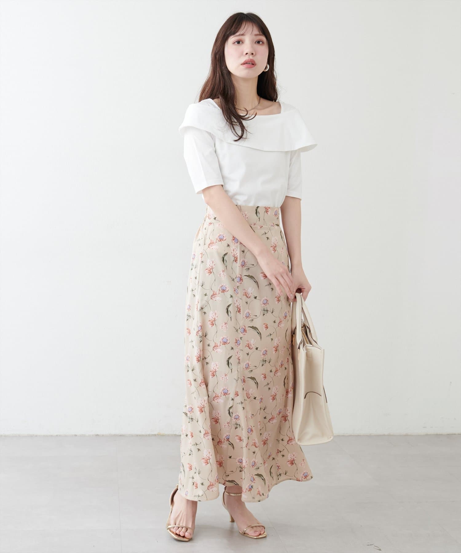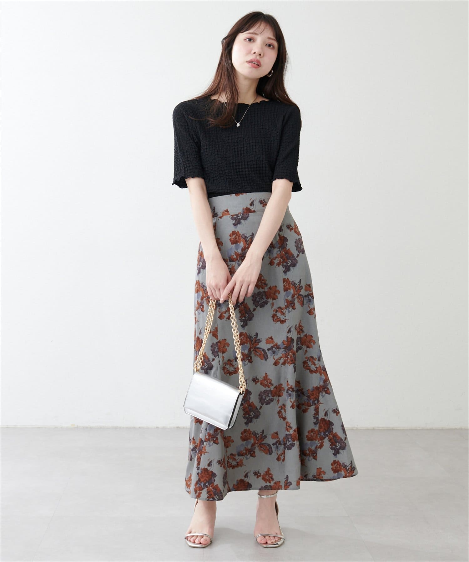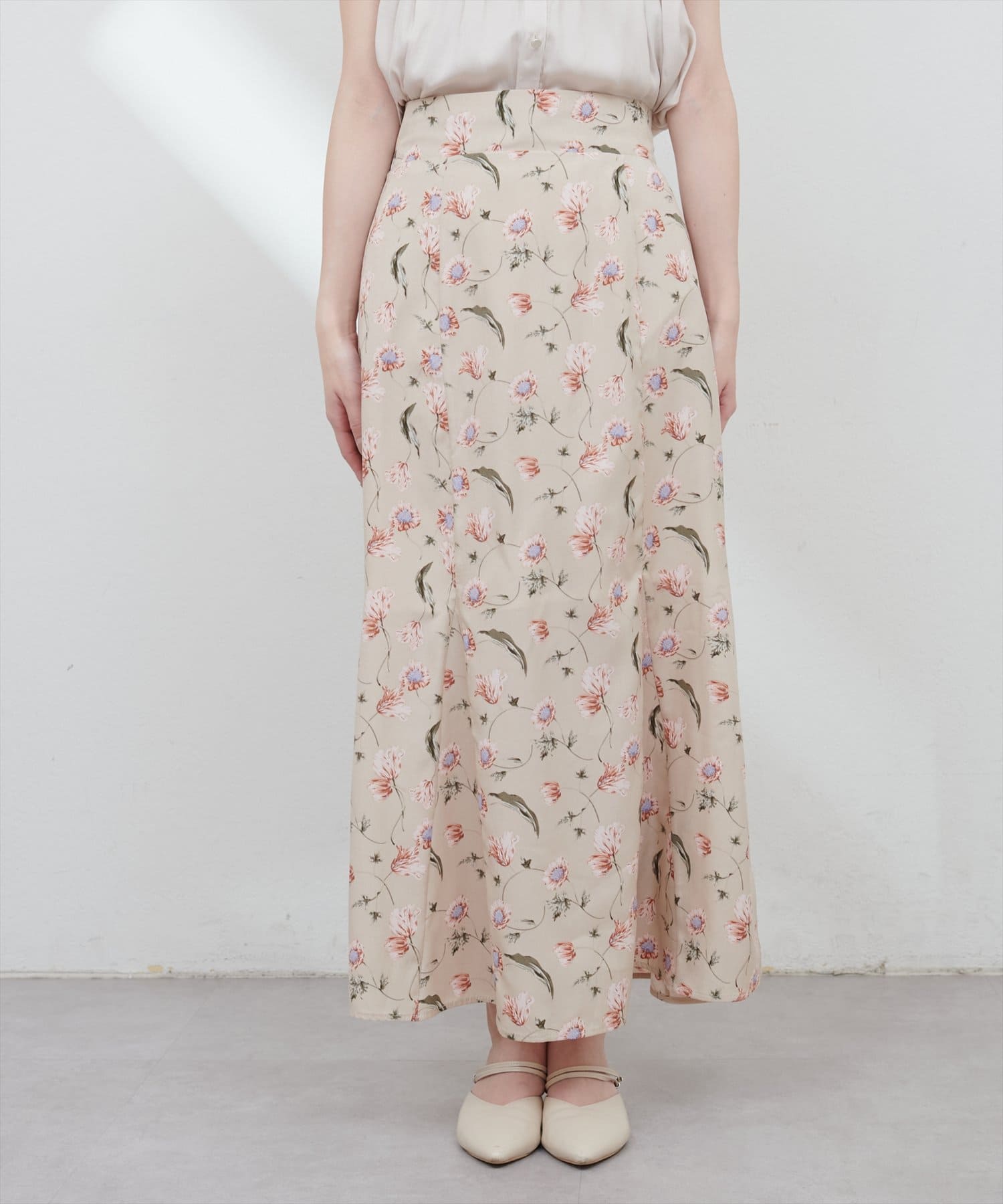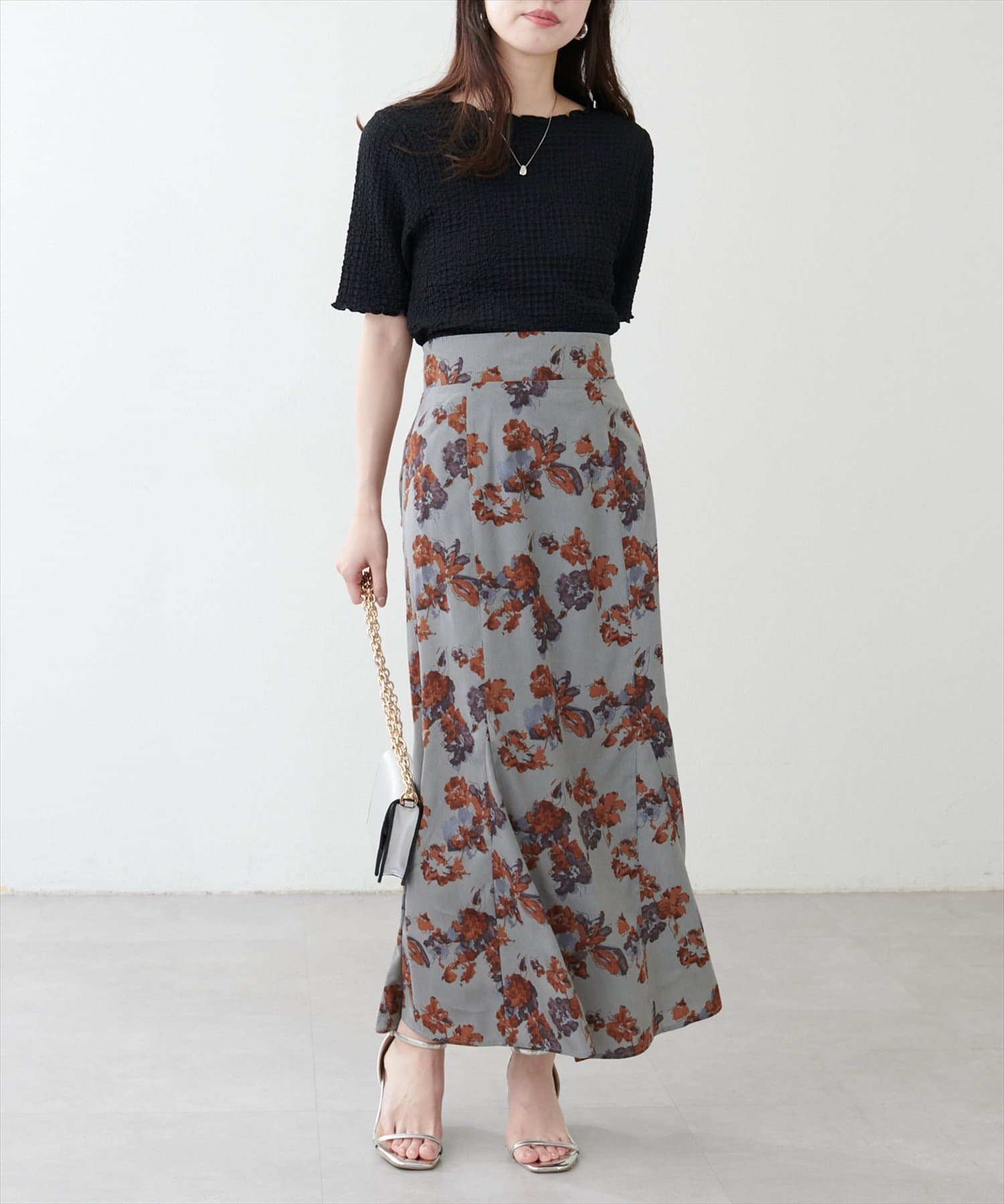 優雅なマーメイドシルエットが叶える、大人の花柄ロングスカート。