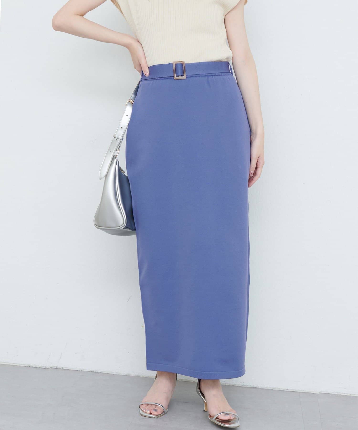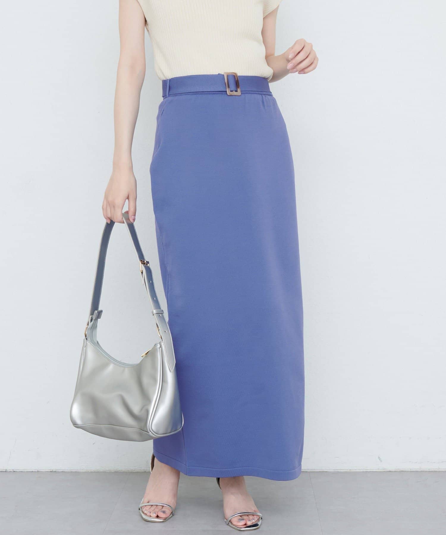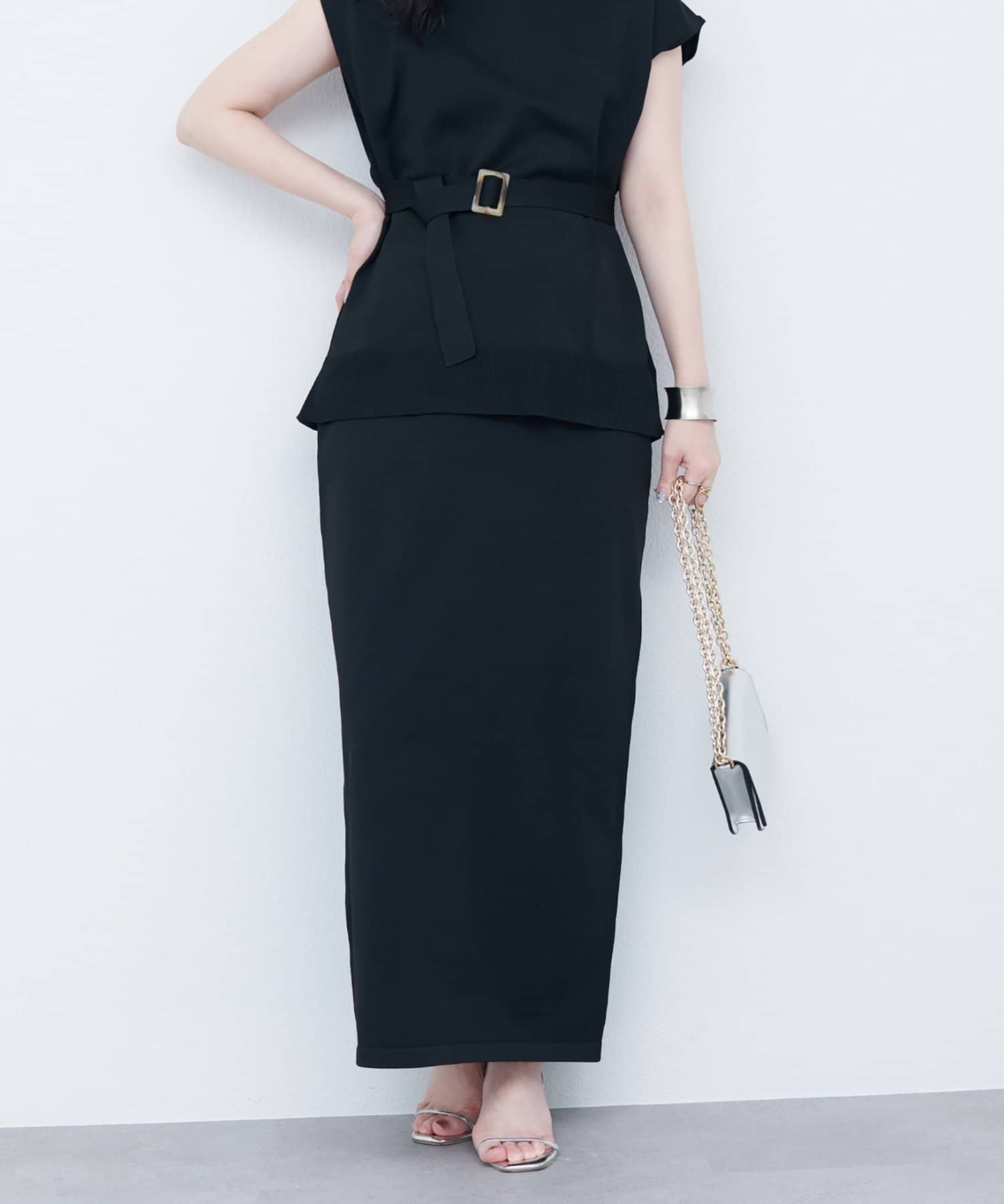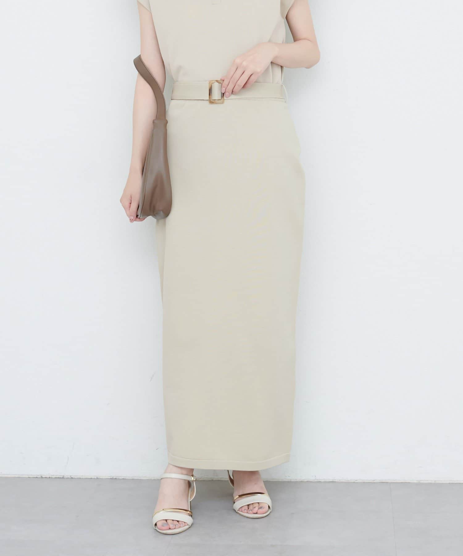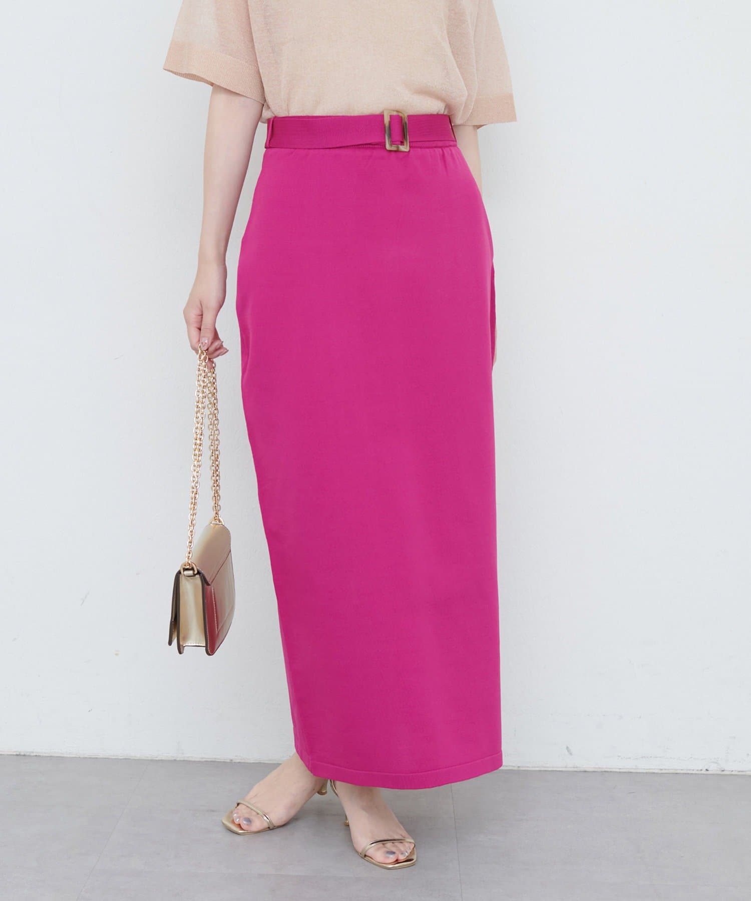 セットアップ対応 べっこうベルト付きニットタイトスカート