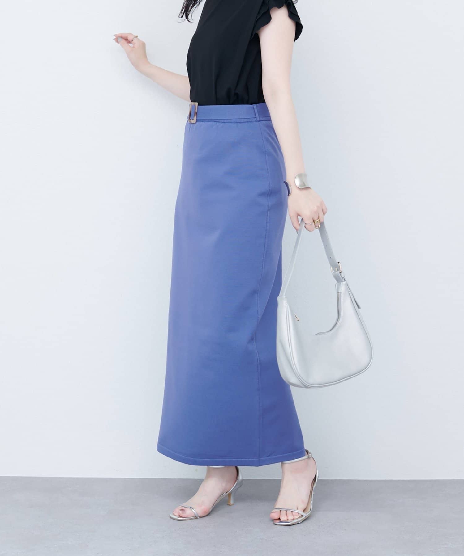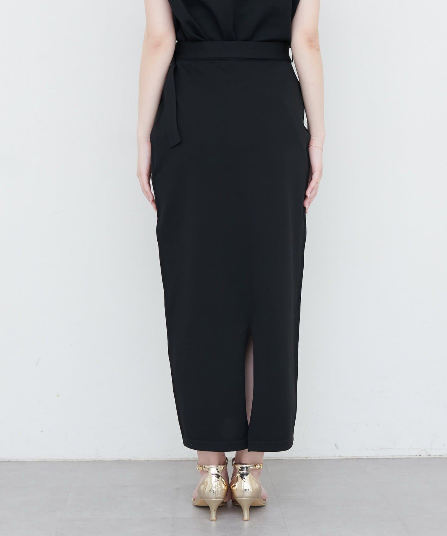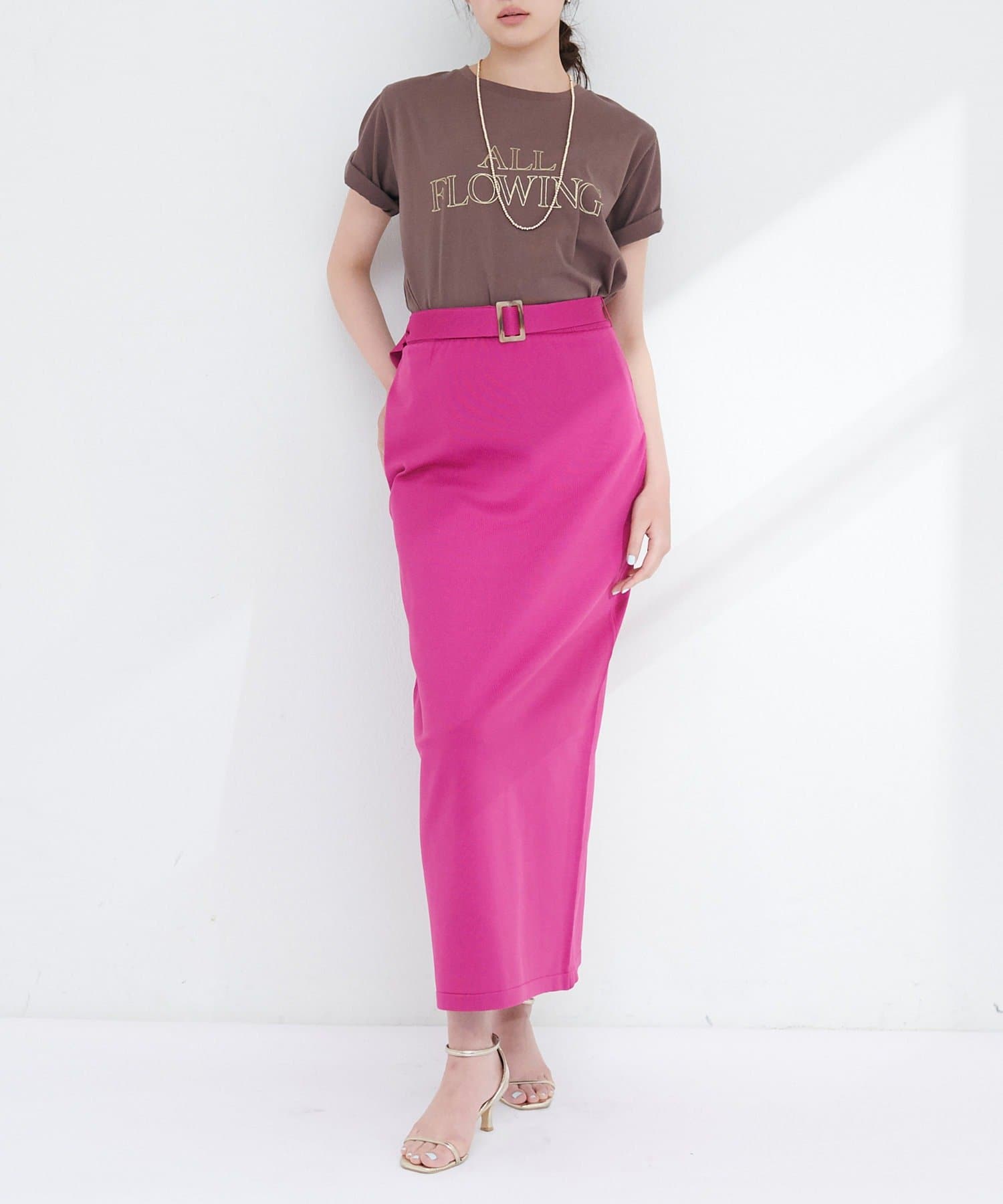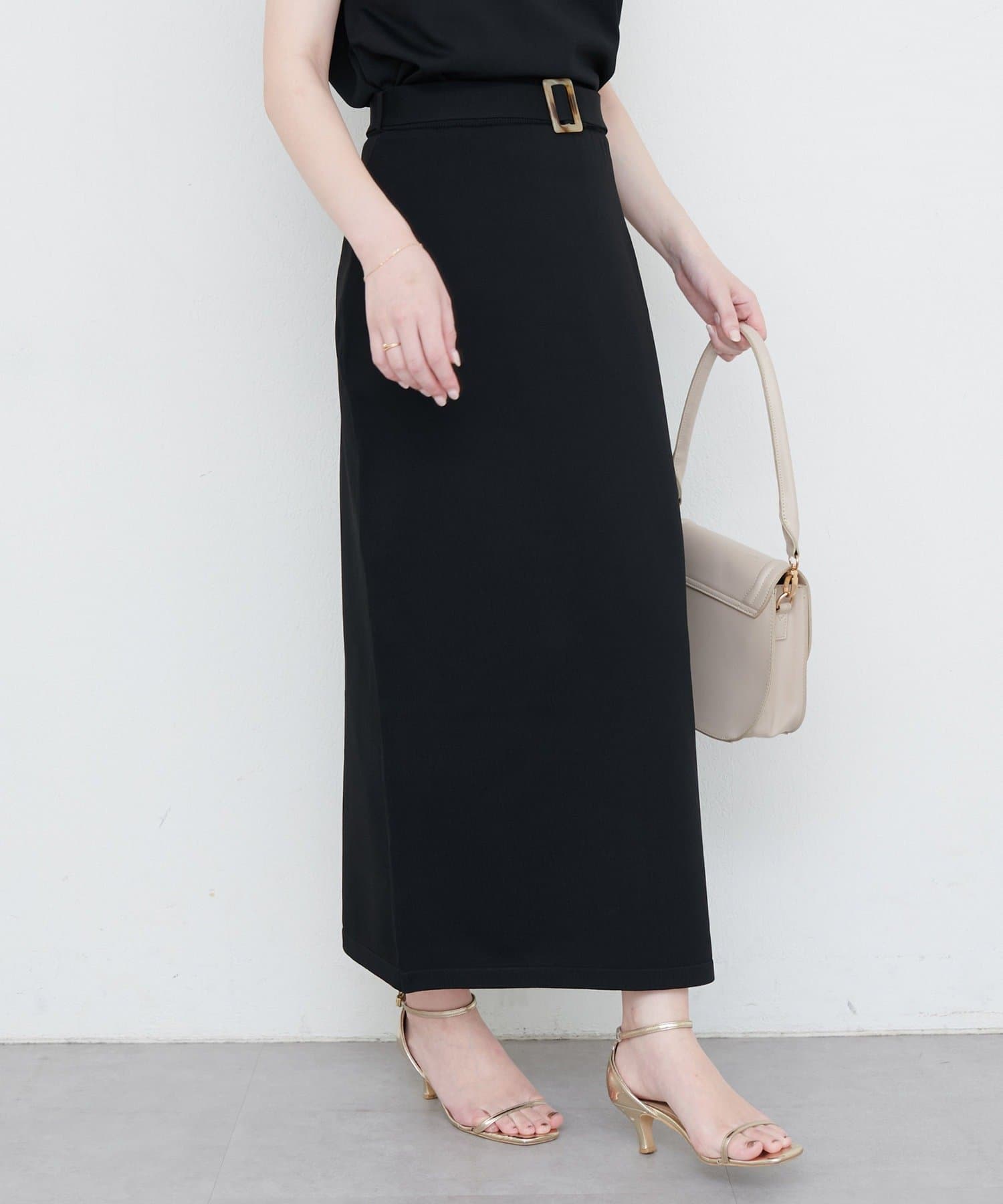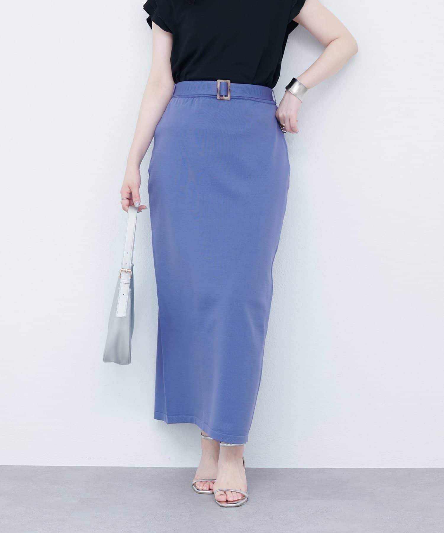 セットアップ対応 べっこうベルト付きニットタイトスカート