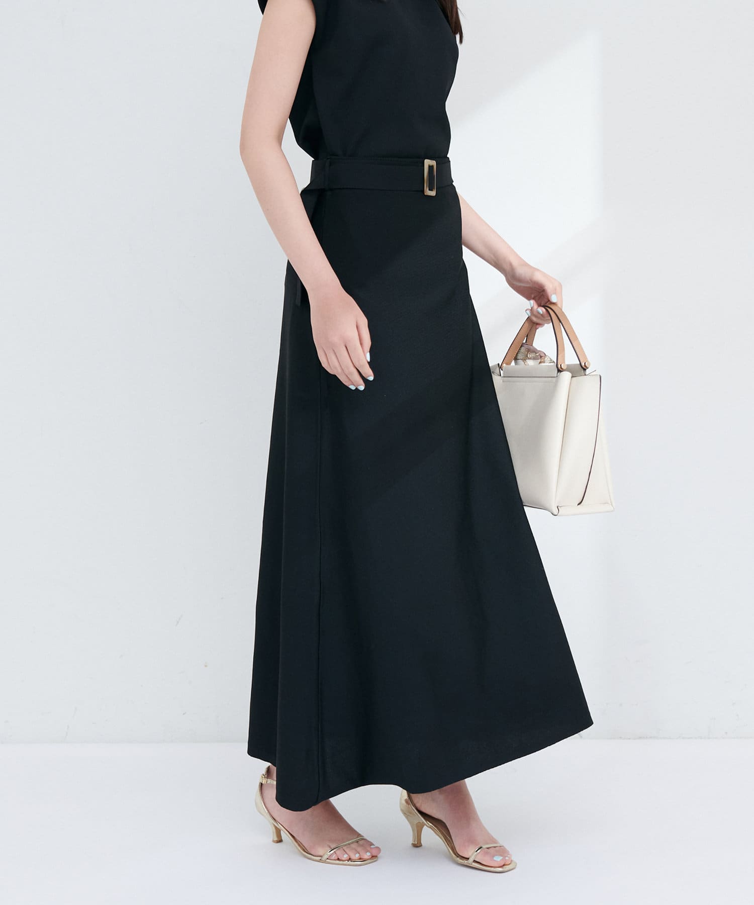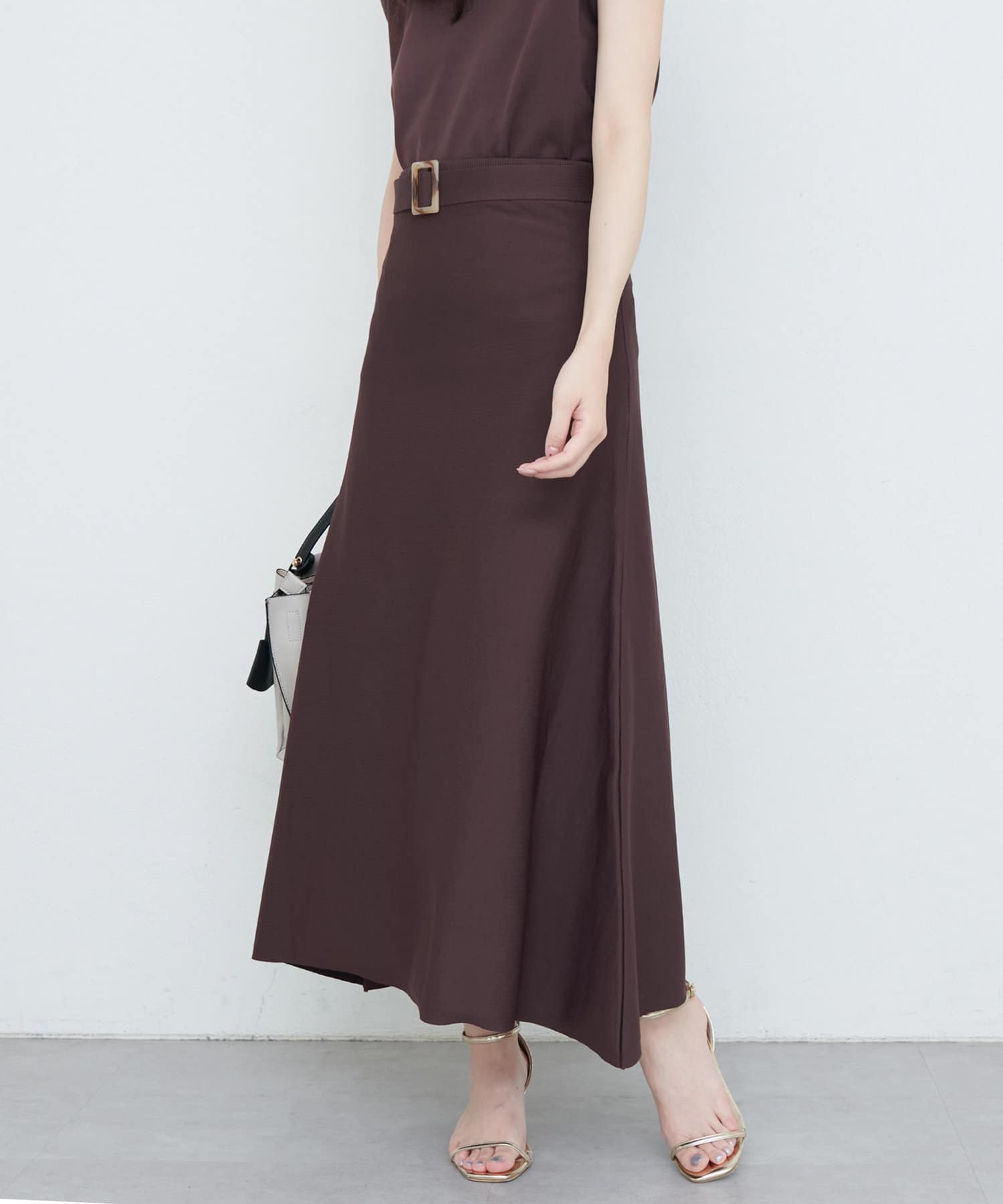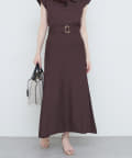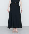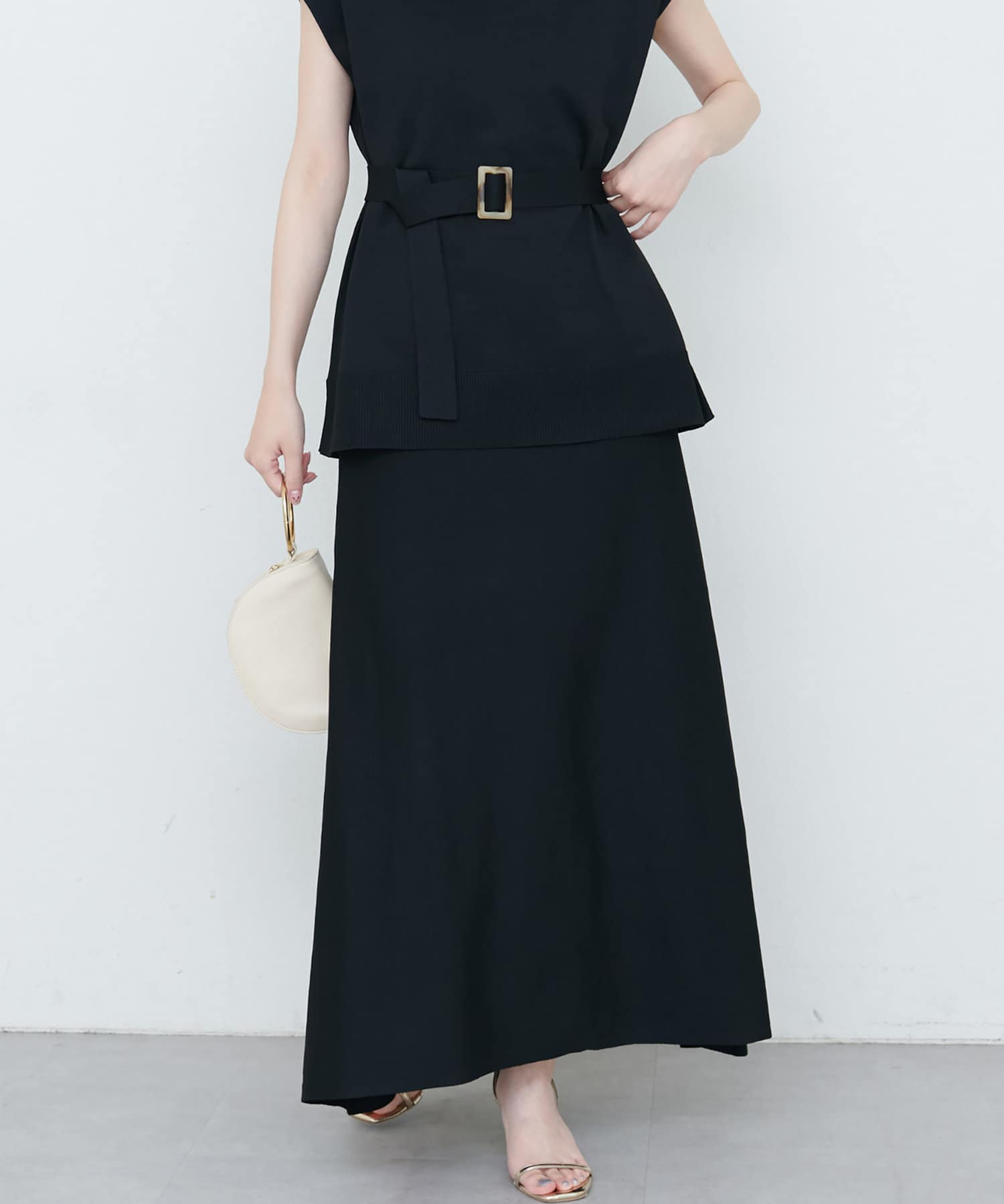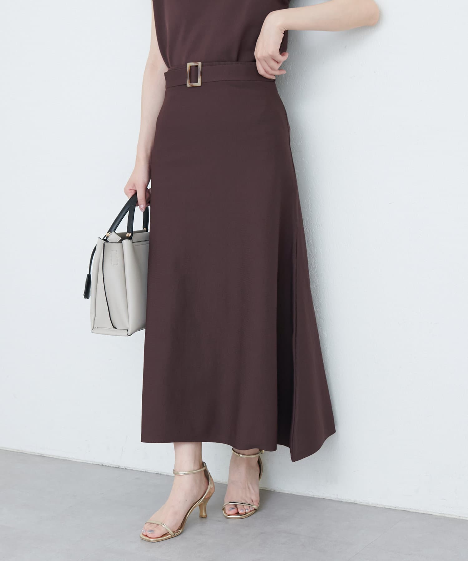 セットアップ対応 べっこうベルト付きニットフレアスカート