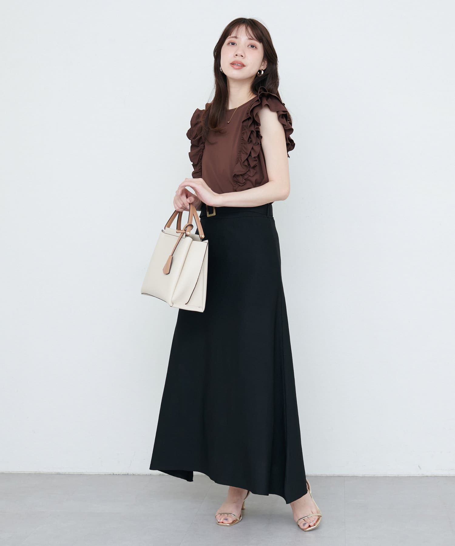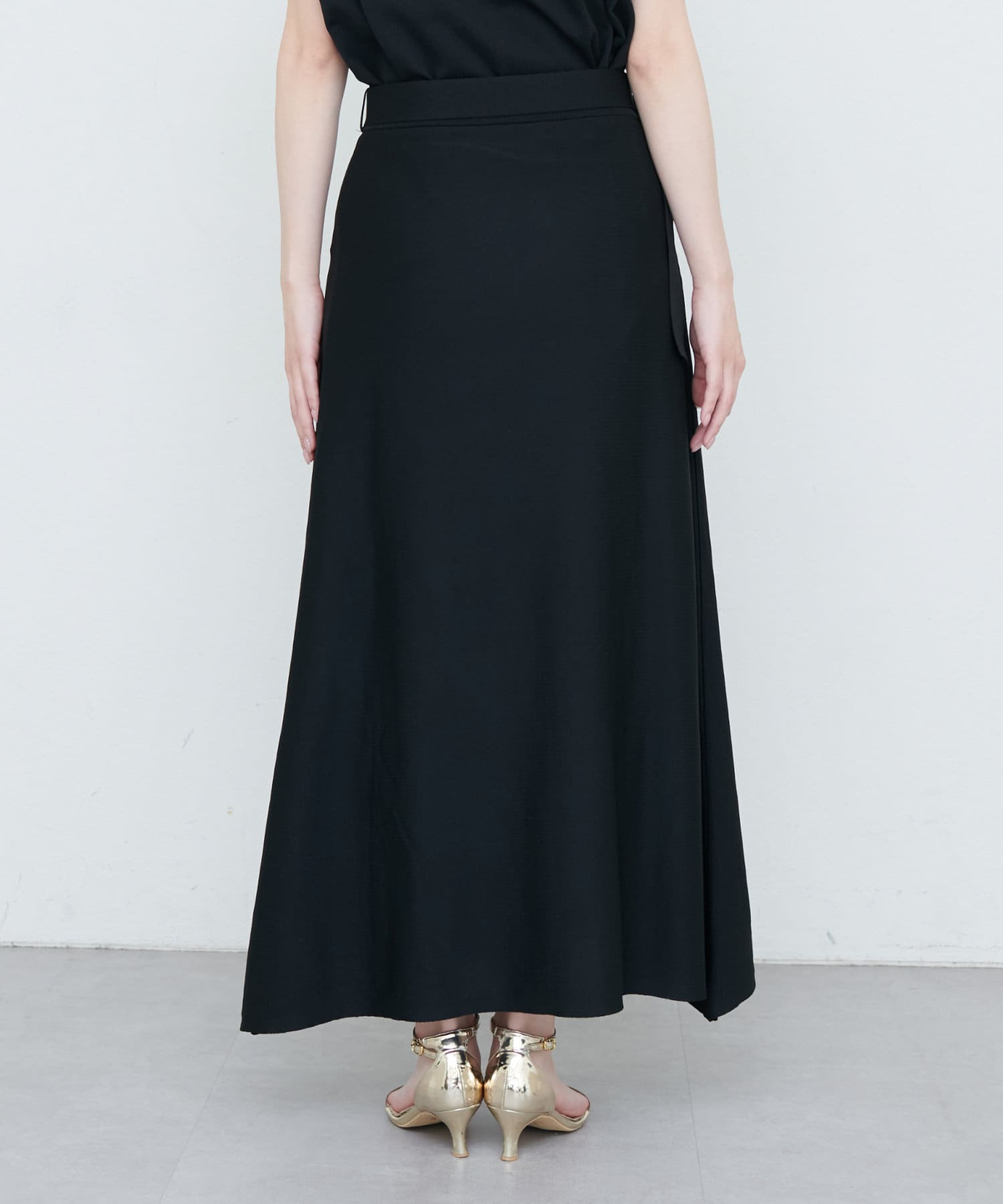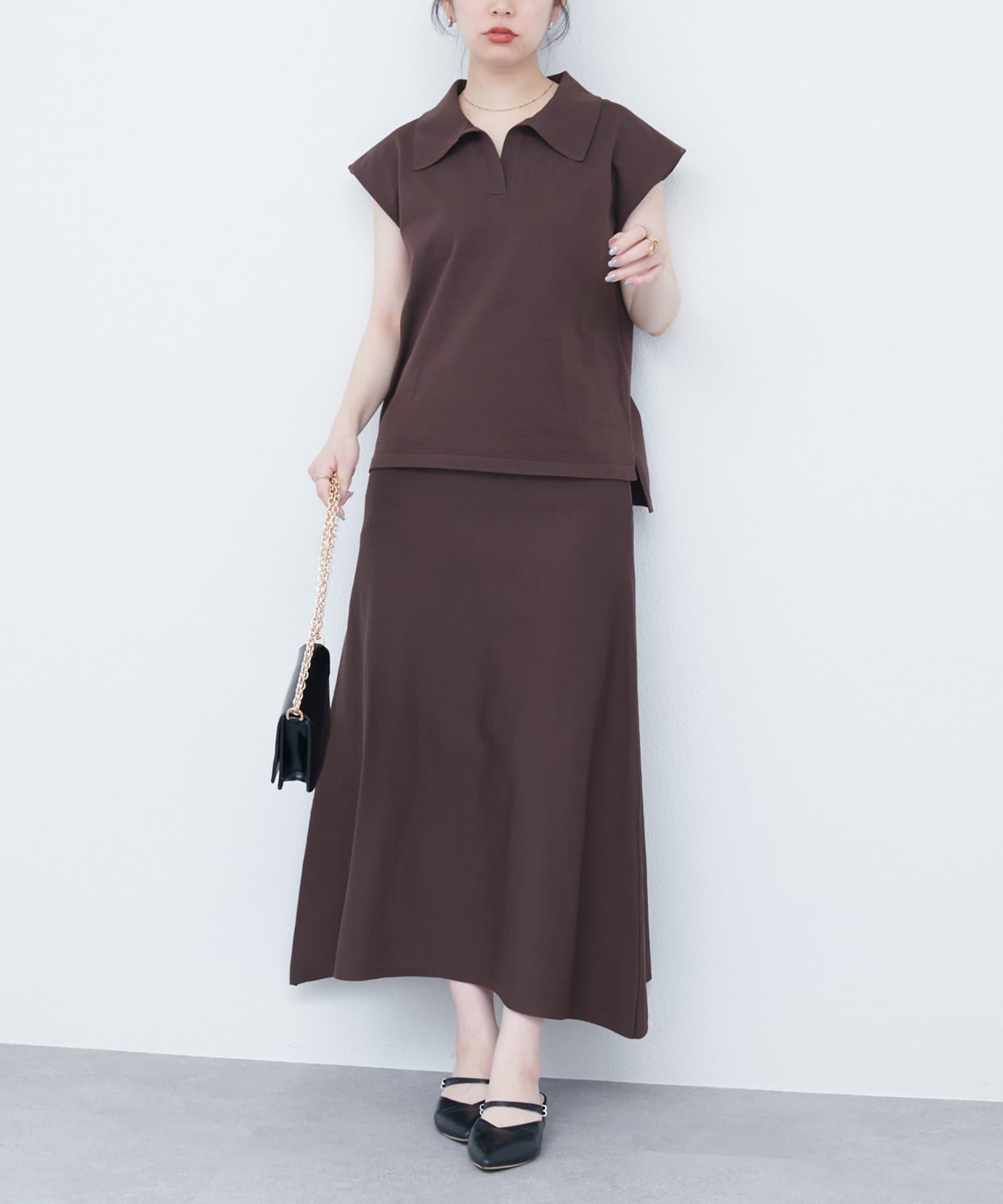 シンプルなデザインの中に程よいフレア感で、洗練された美しさが際立つポリニットスカート。
