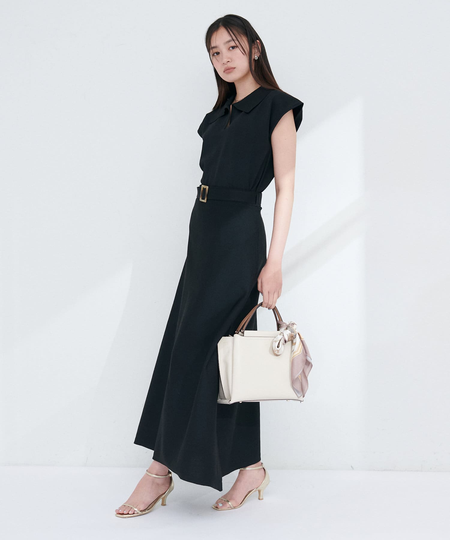 付属のべっこうベルト全体のシルエットを引き締め、コーディネートのアクセントに。