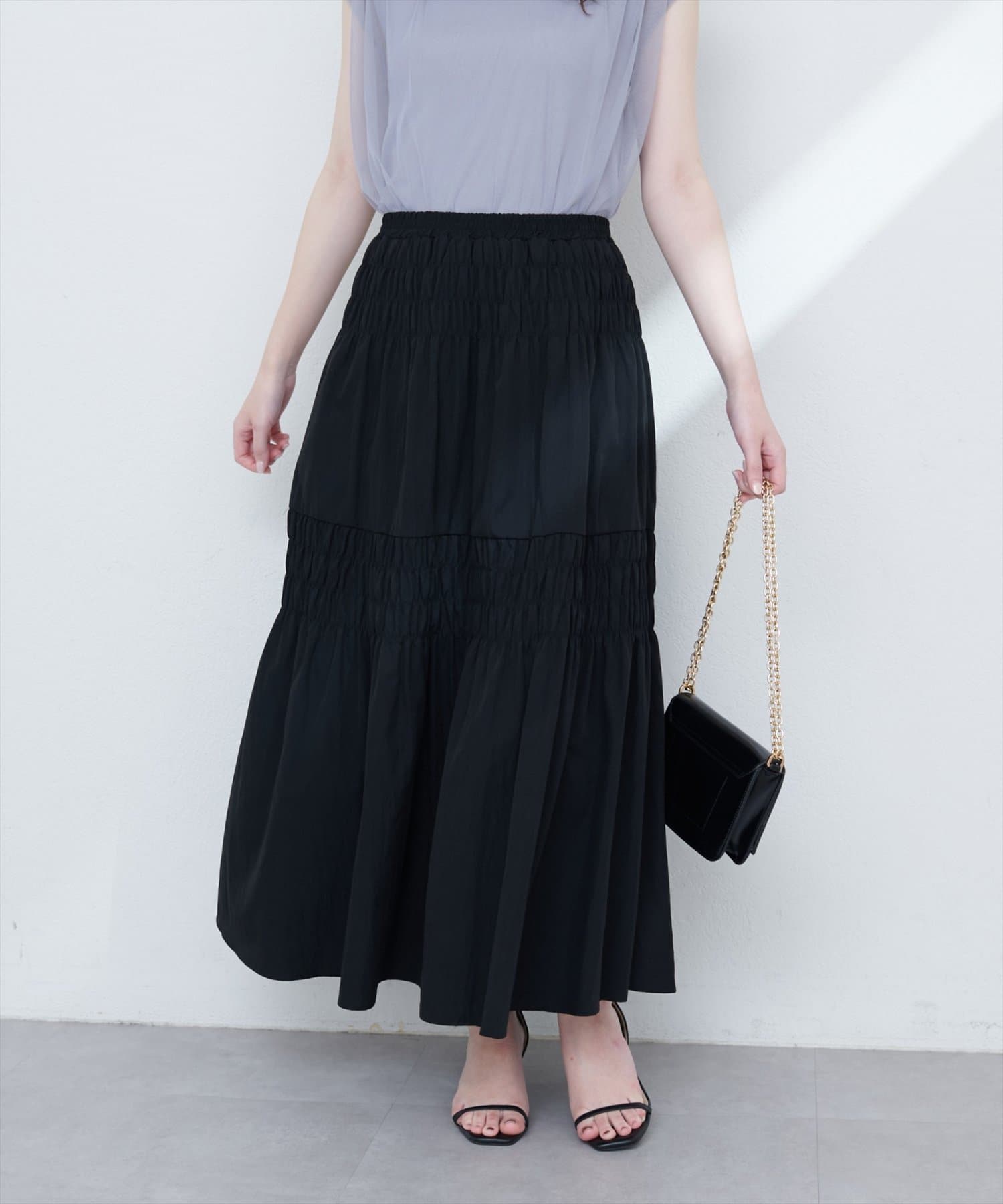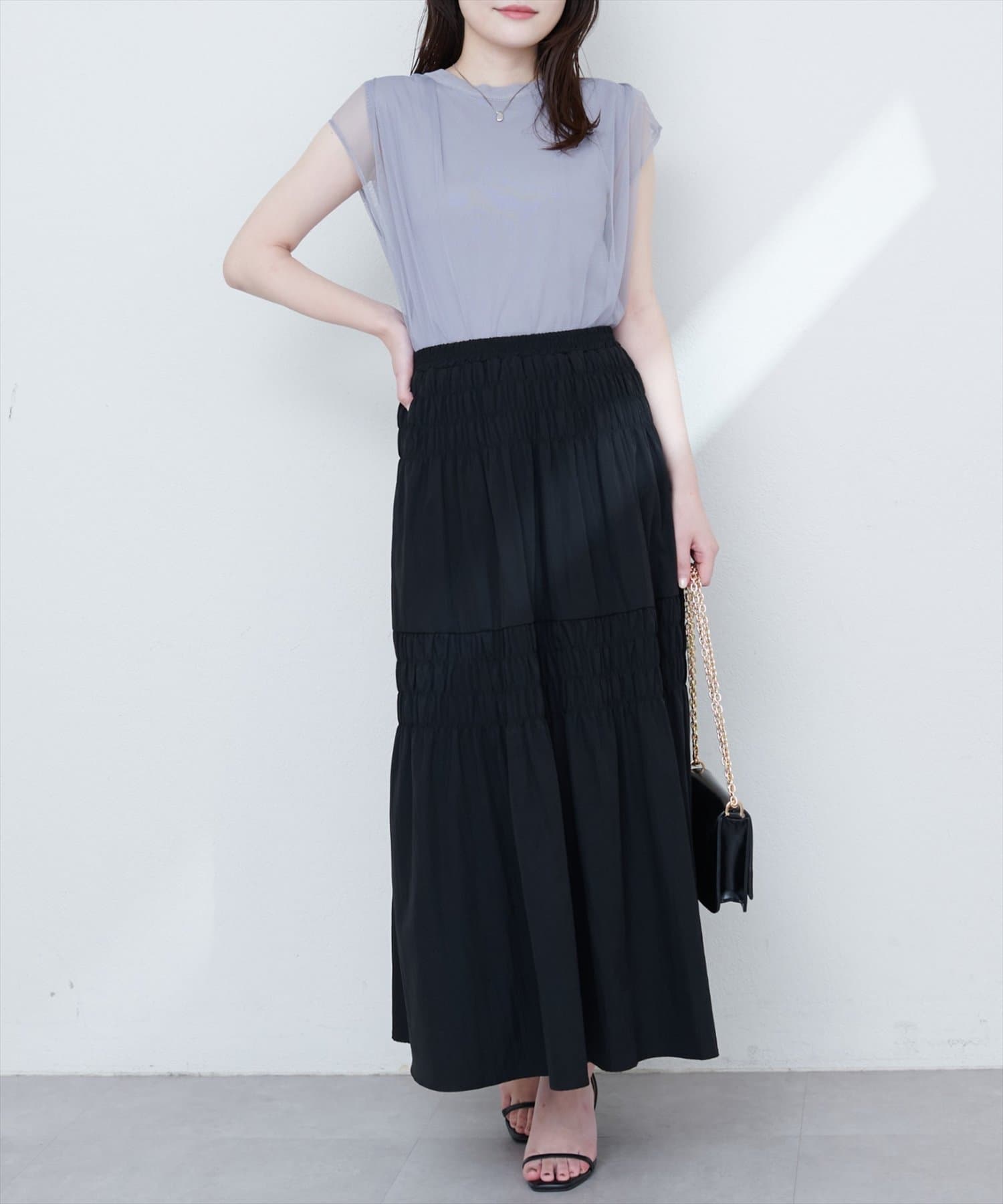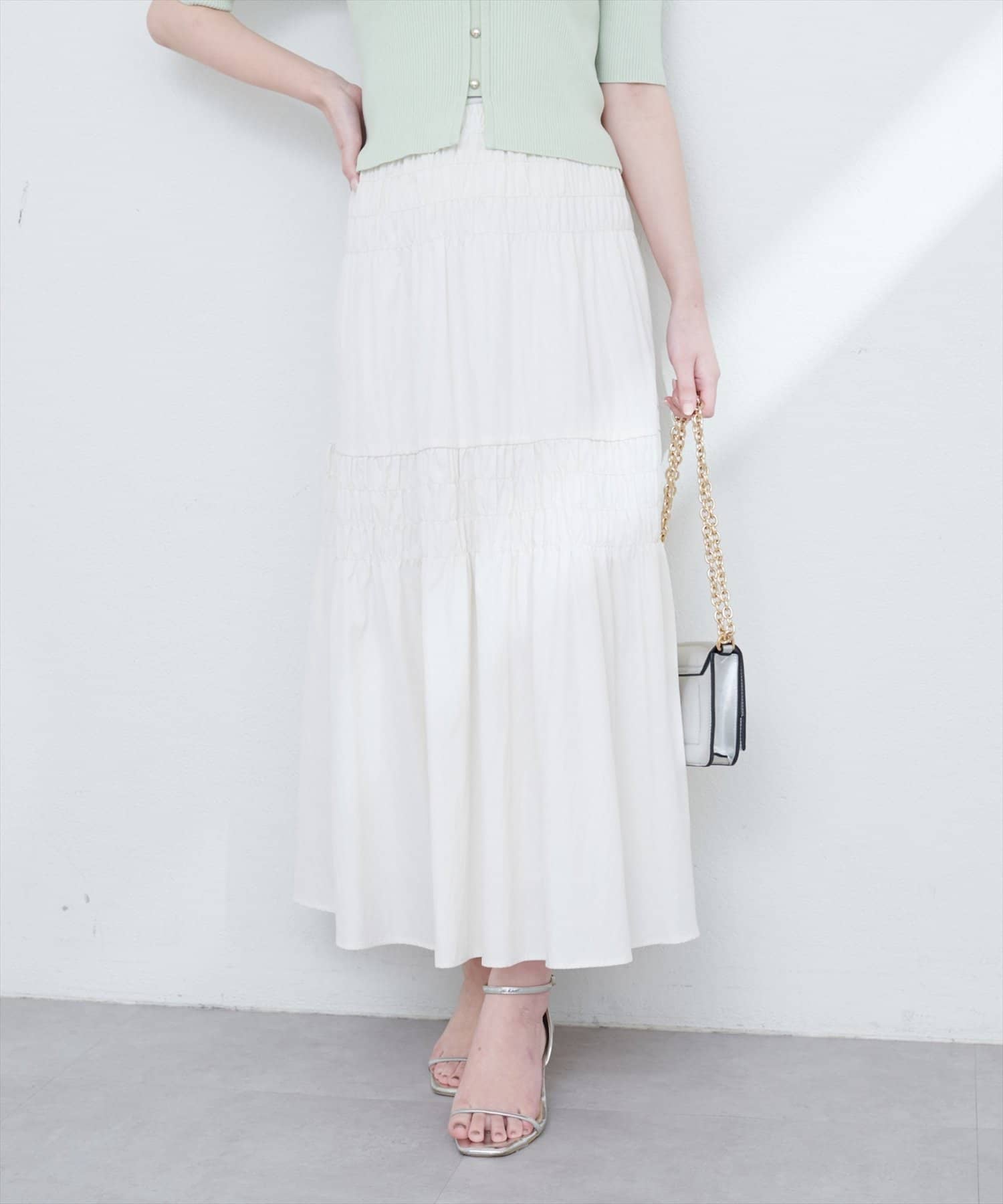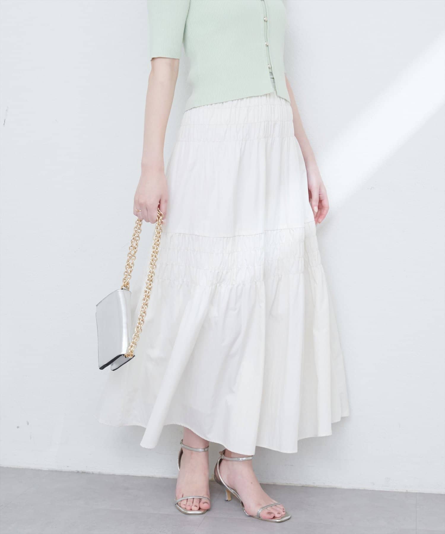 程よいボリューム感のティアードデザインが優雅なシルエットを生み、女性らしさを演出。