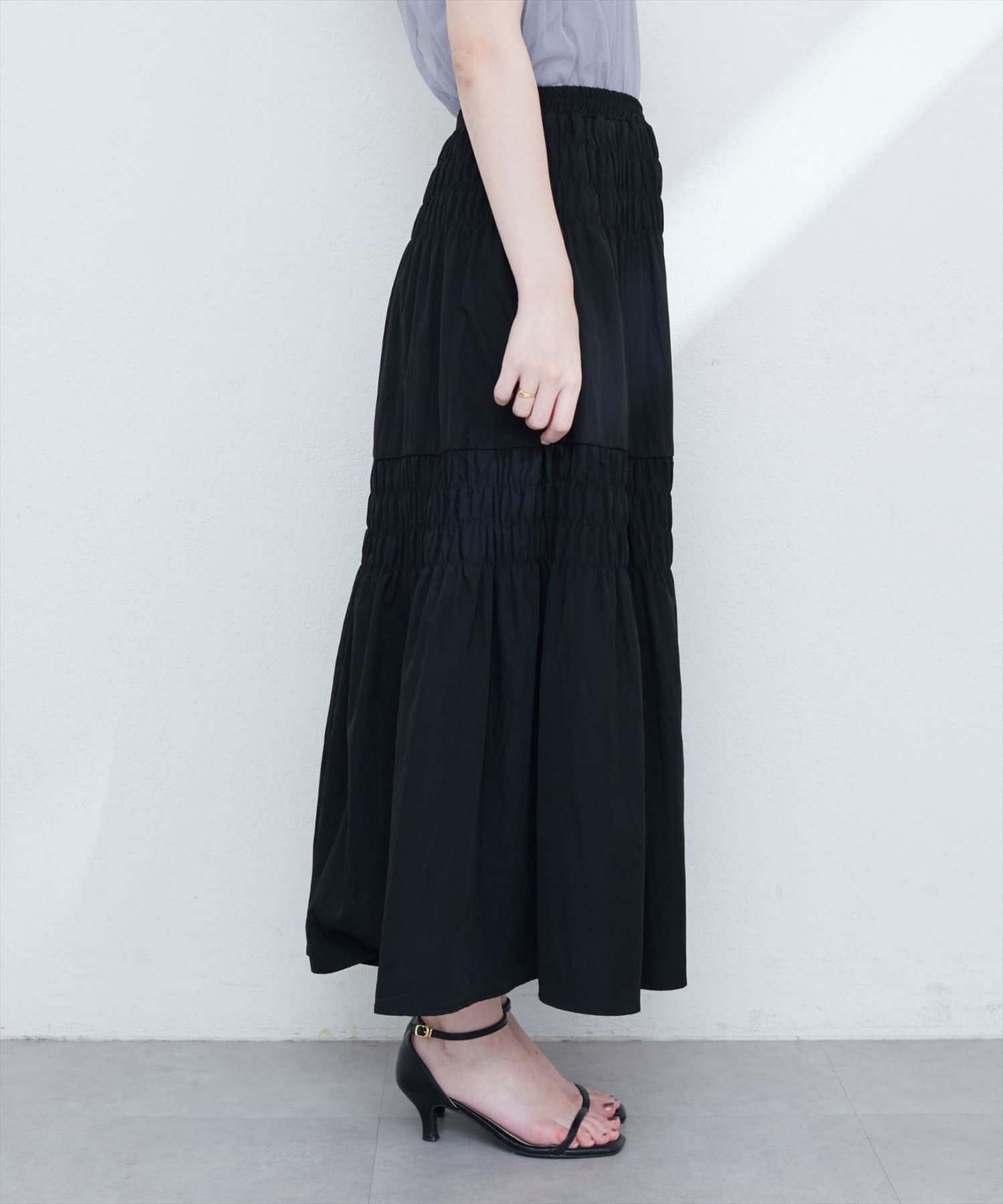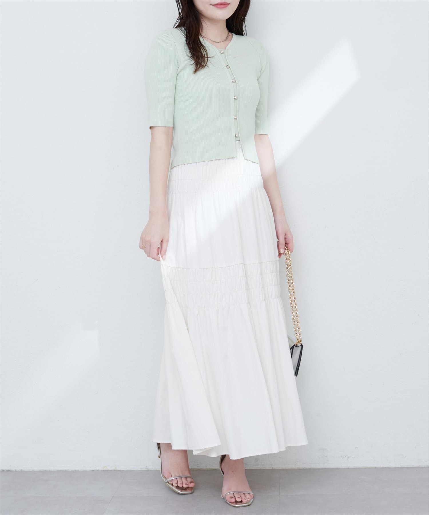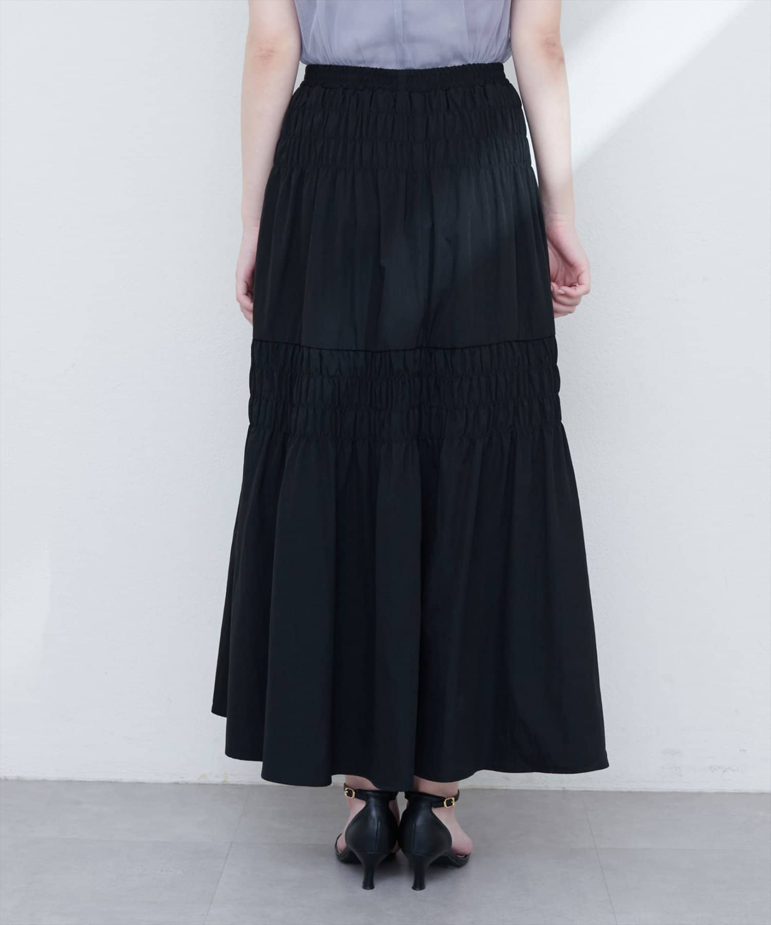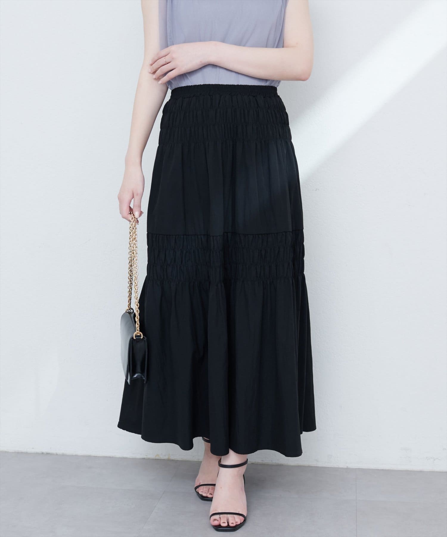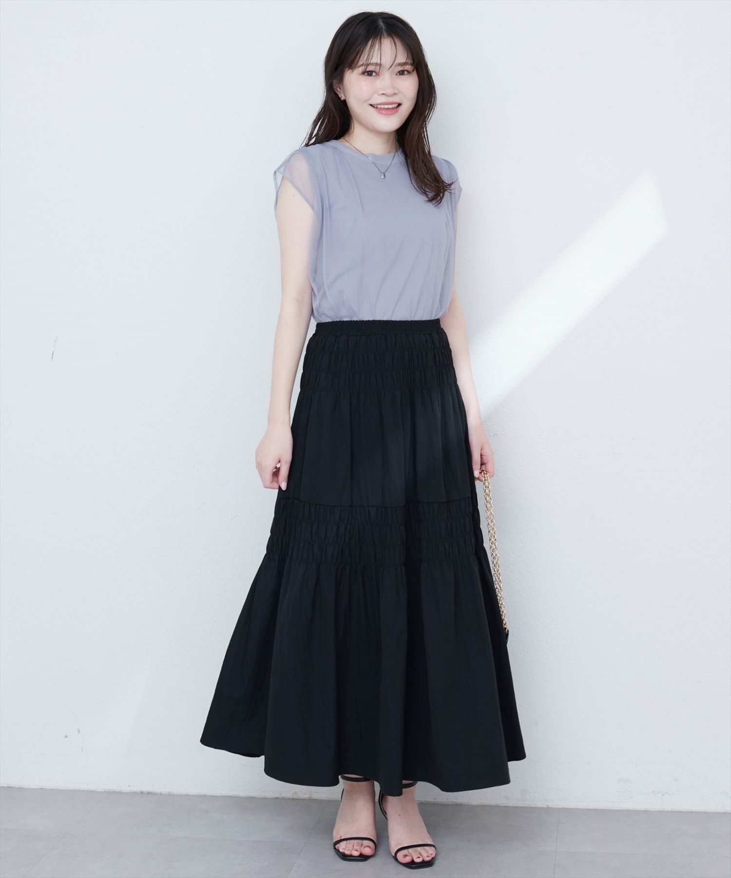 程よいボリューム感のティアードデザインが優雅なシルエットを生み、女性らしさを演出。