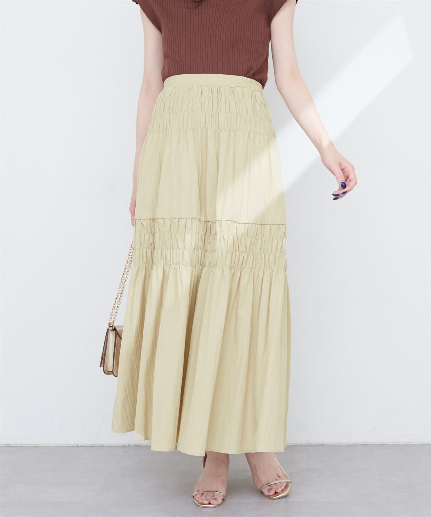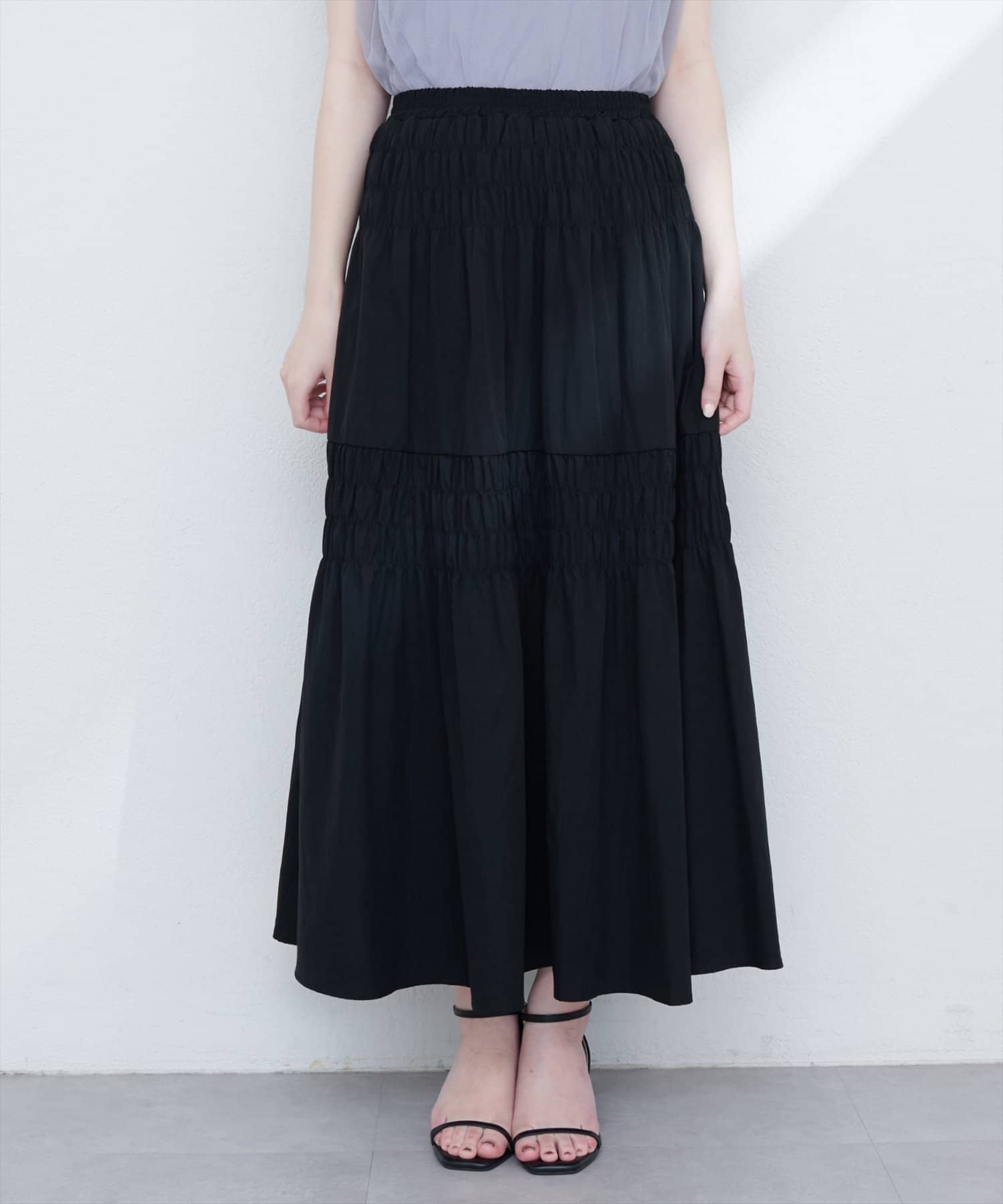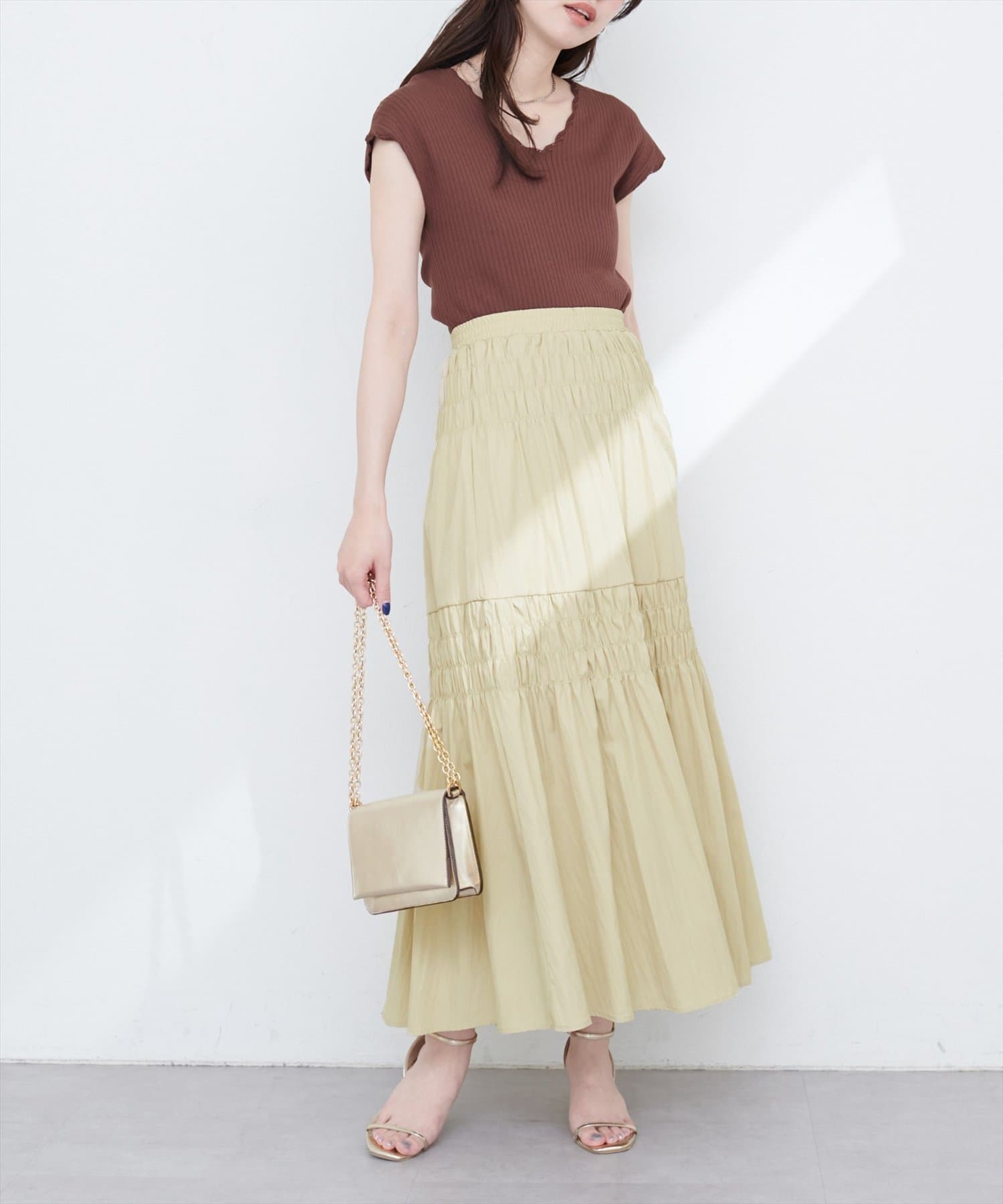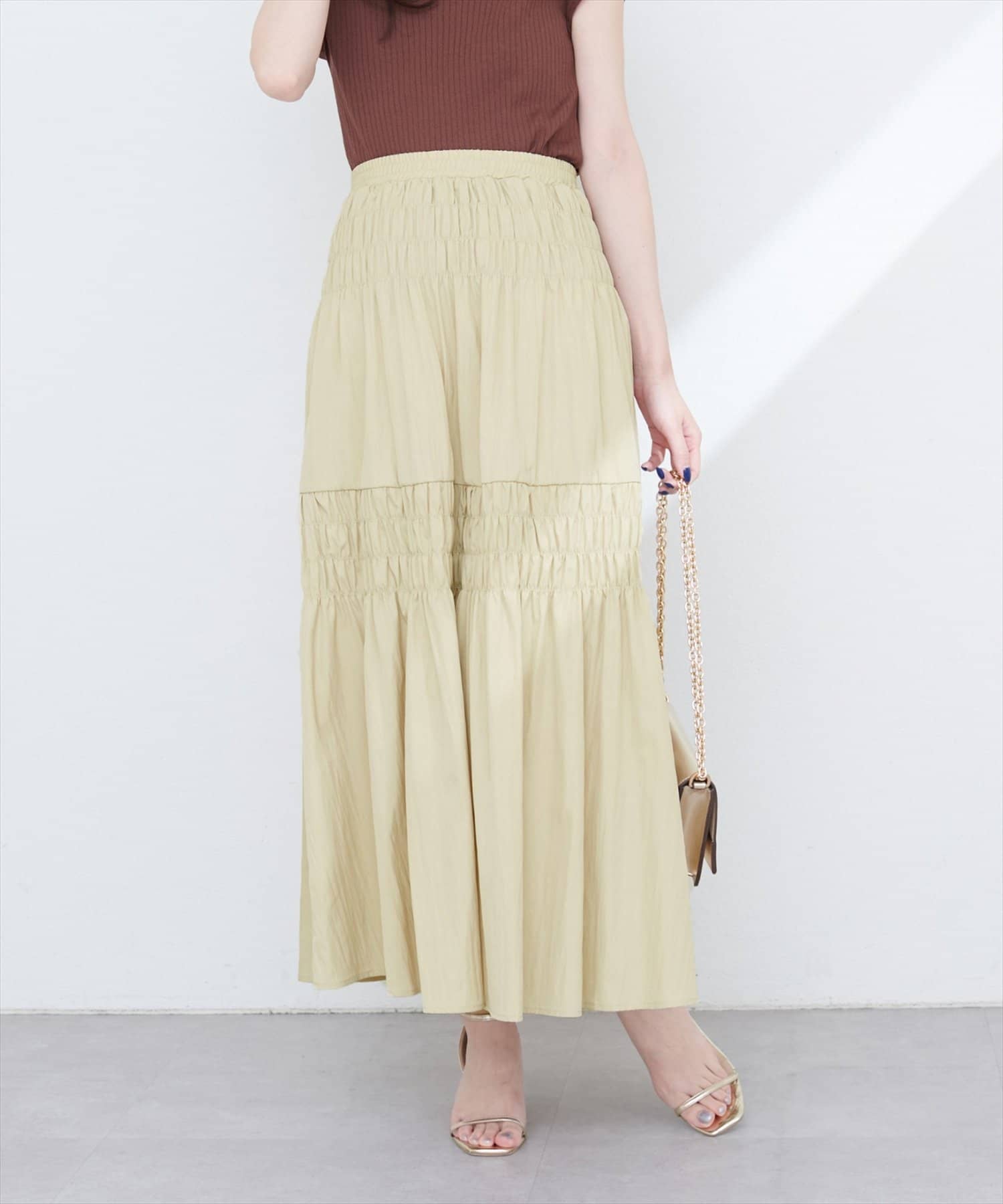 程よいボリューム感のティアードデザインが優雅なシルエットを生み、女性らしさを演出。