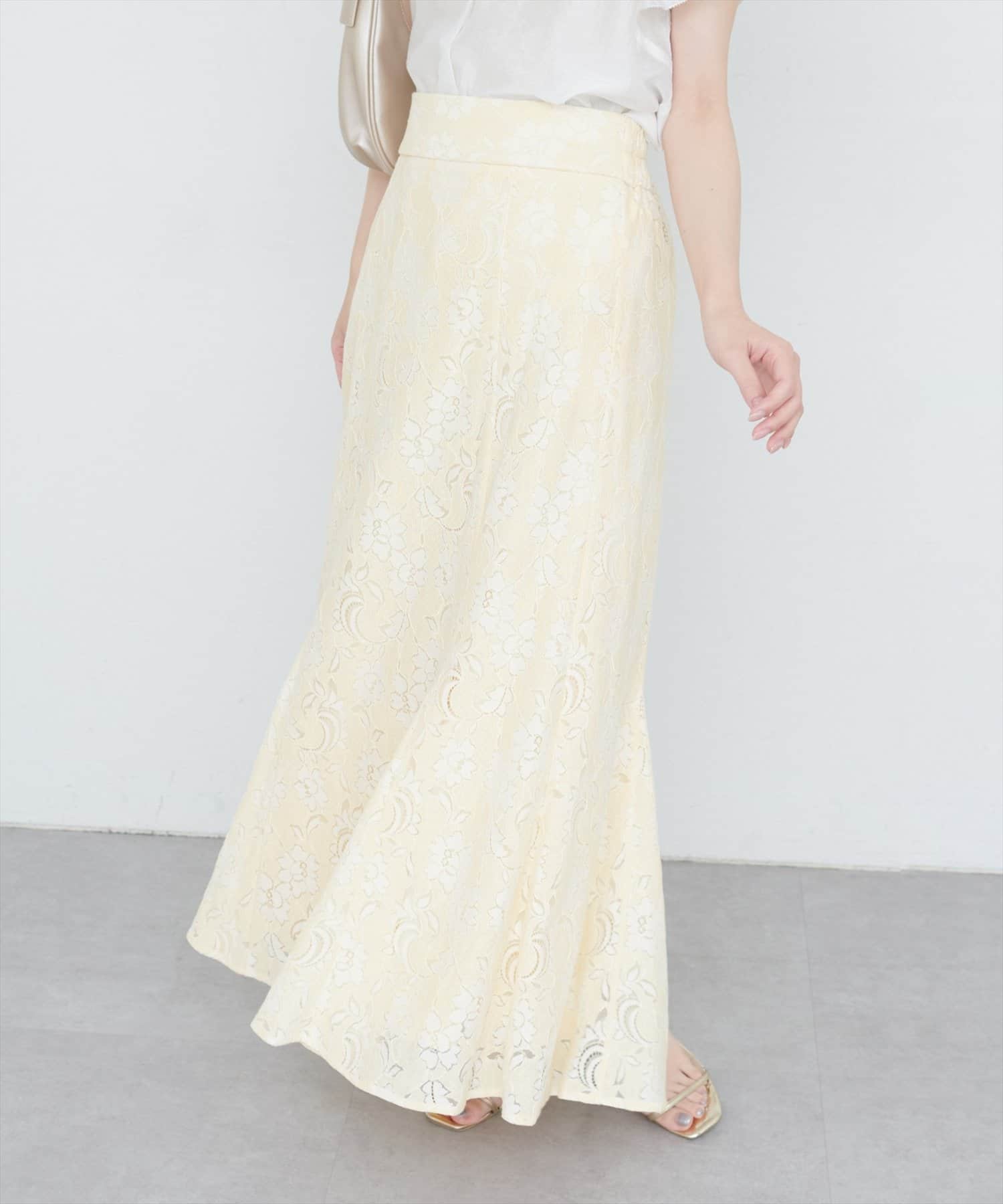 繊細なレースを贅沢に使用した、エレガントな雰囲気漂うスカート。