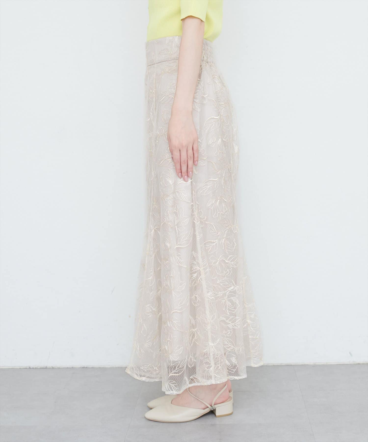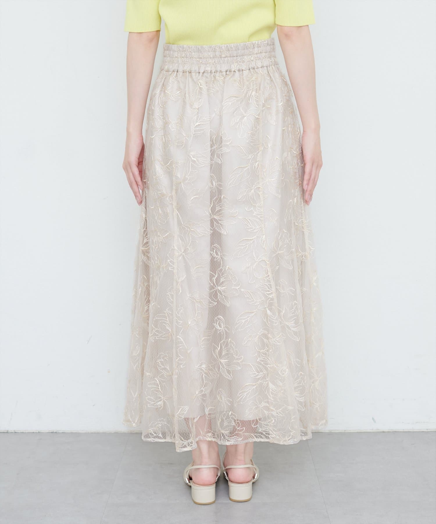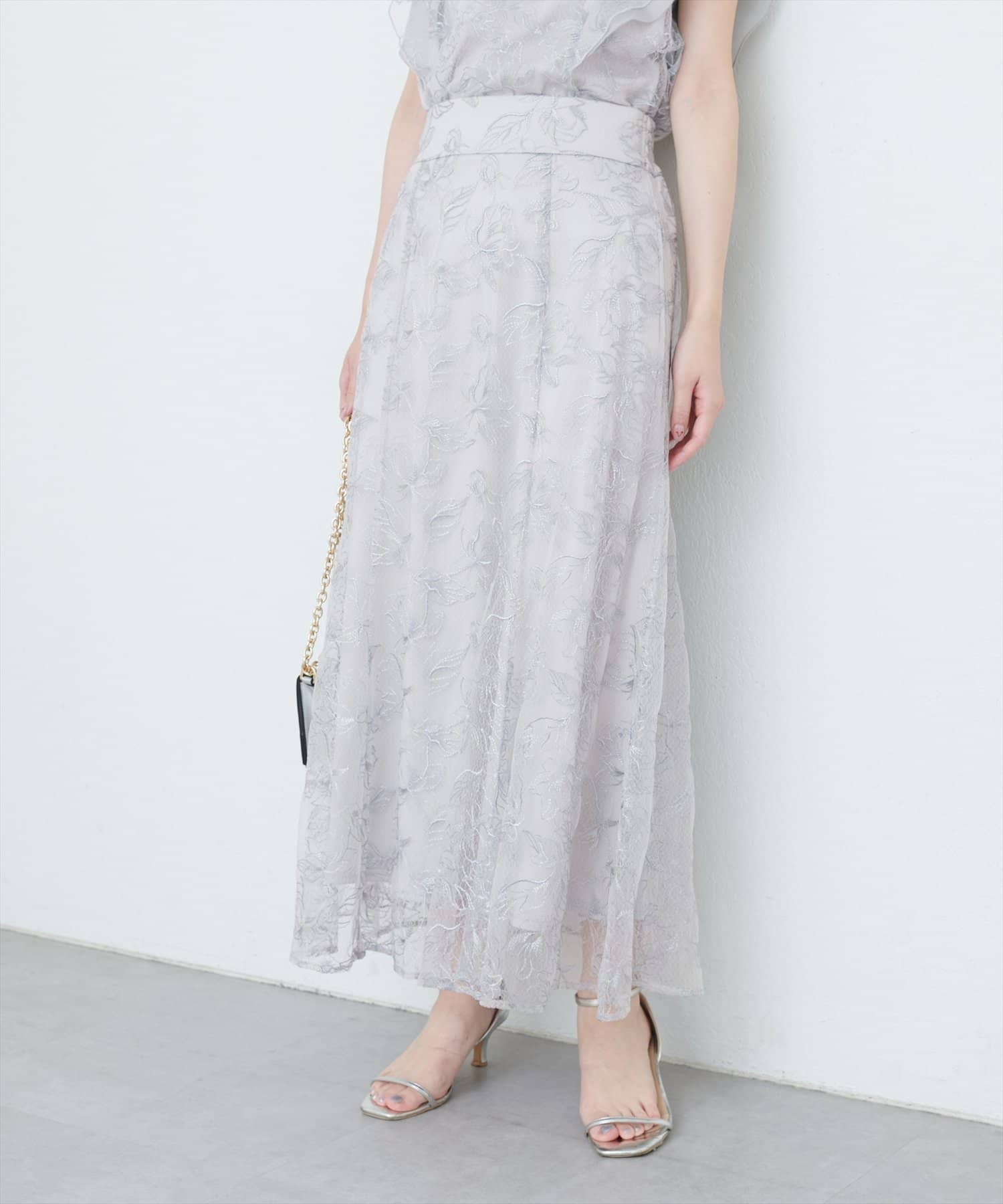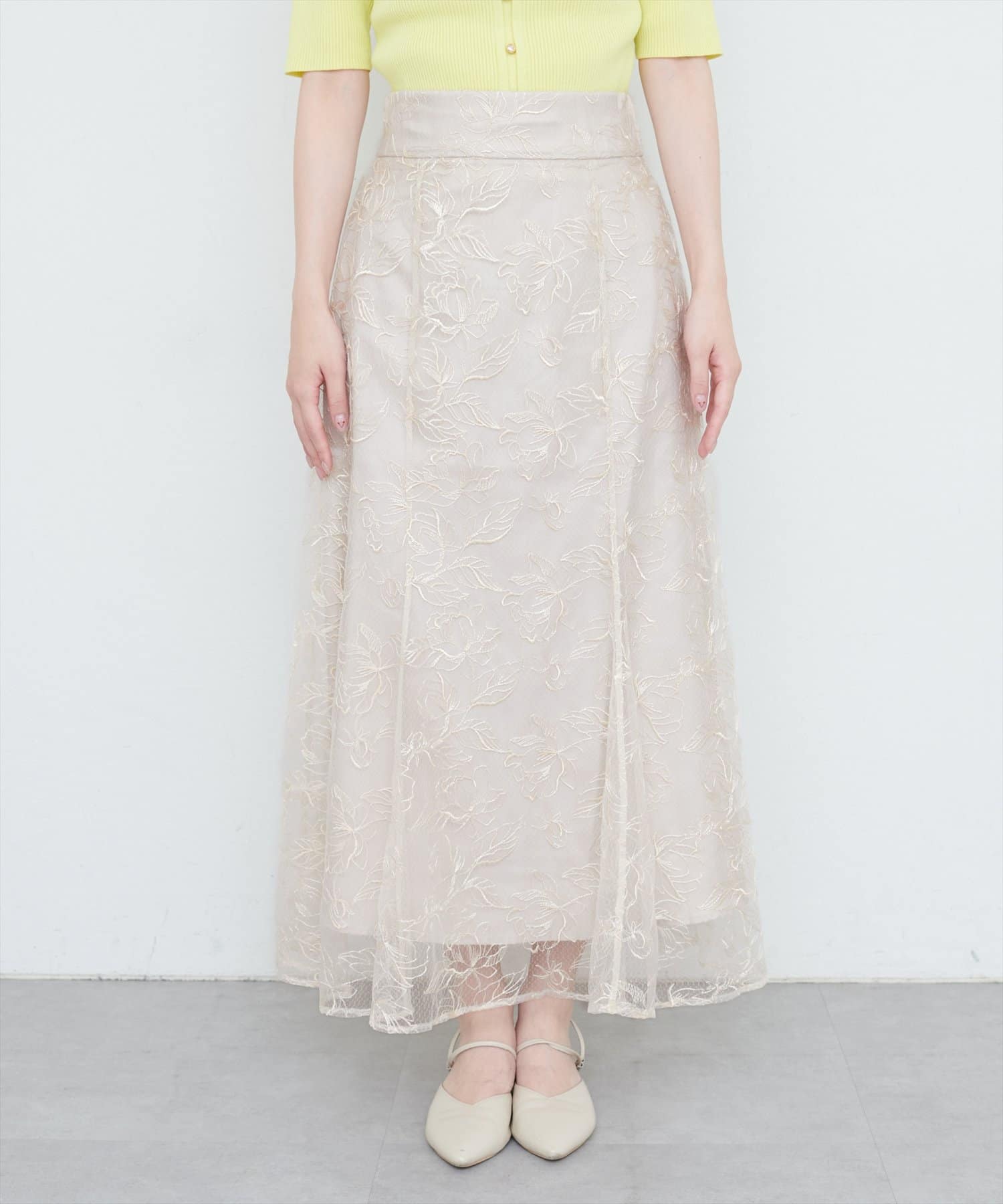 軽やかな透け感が魅力的な、花柄レーススカート。