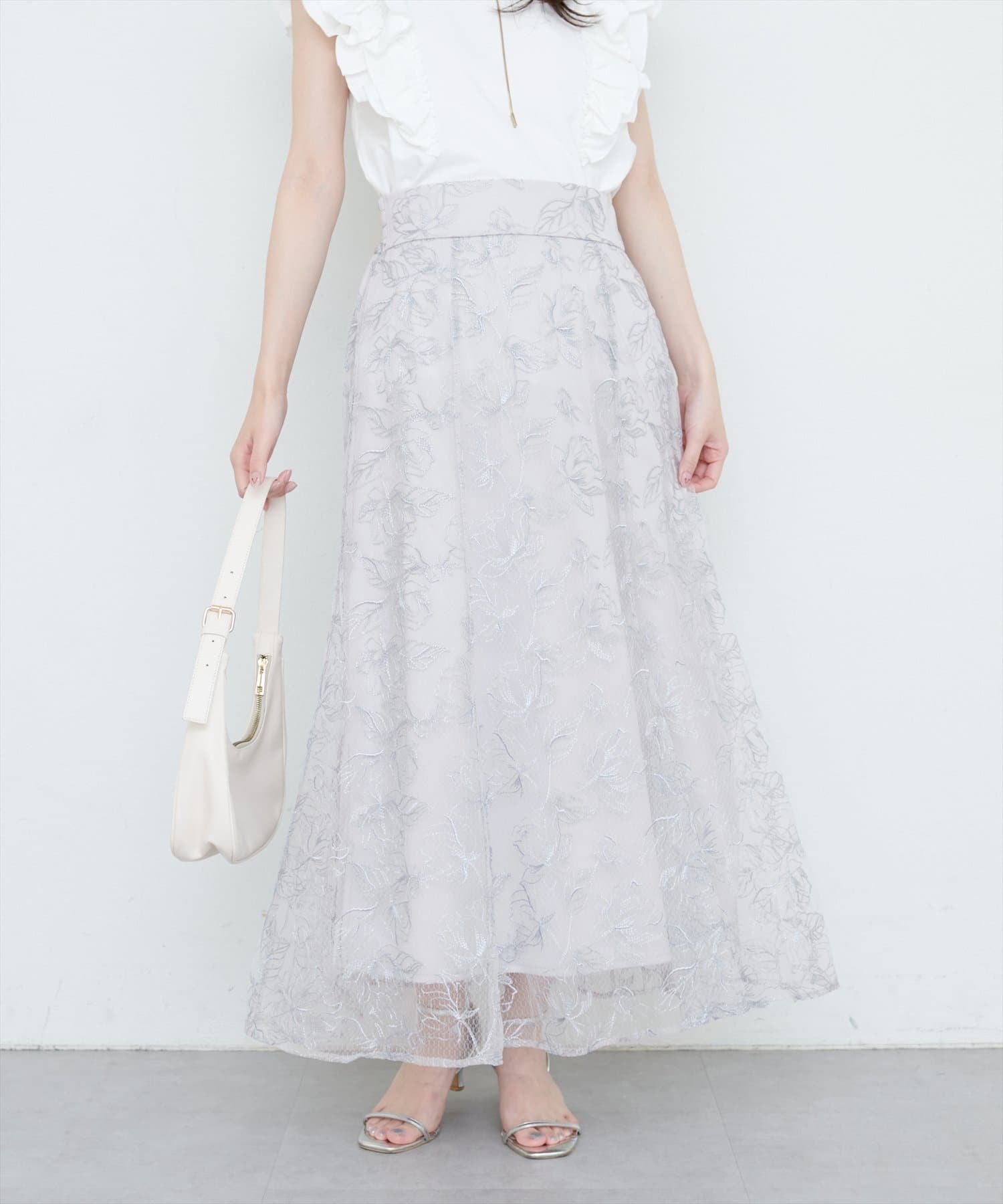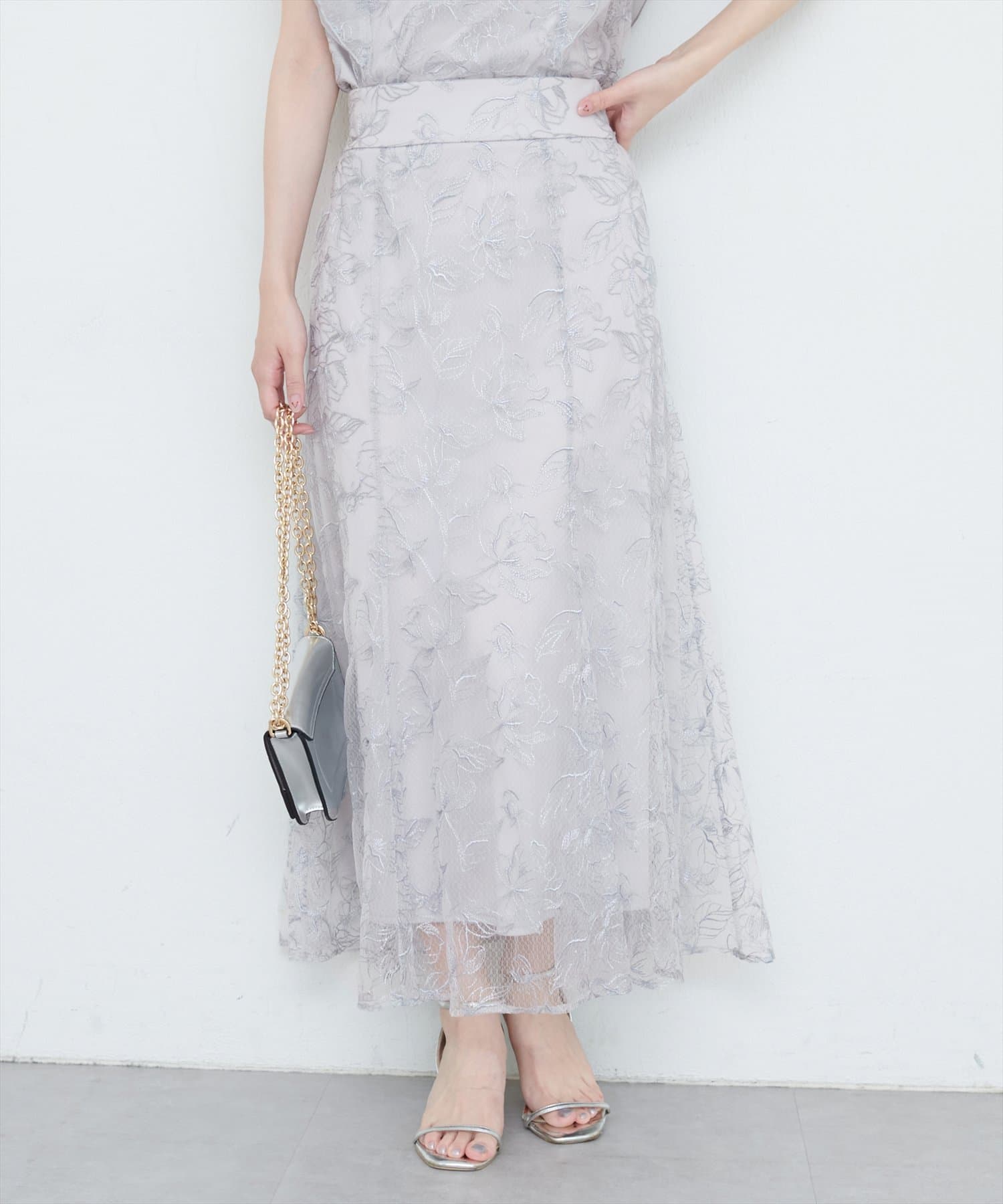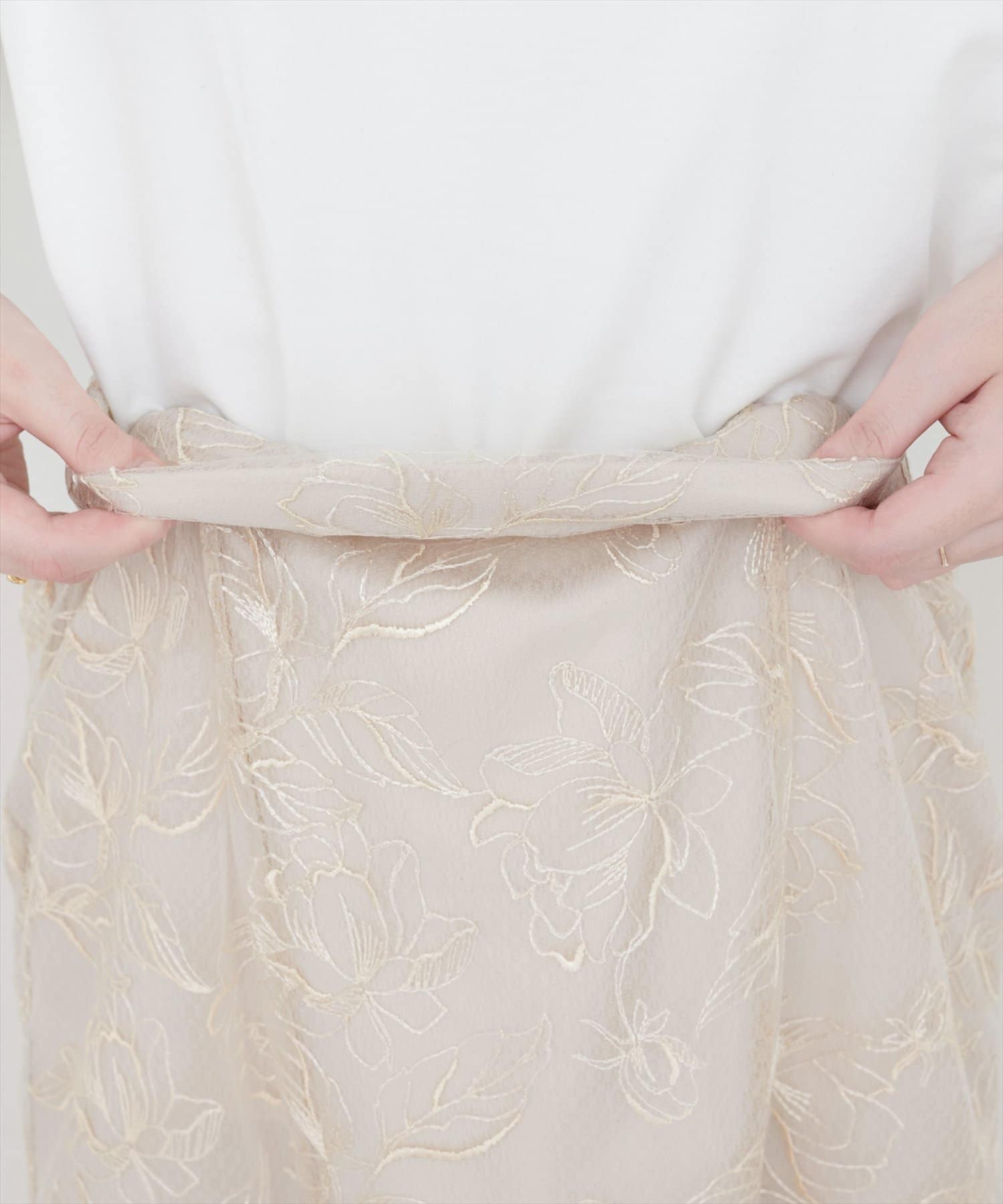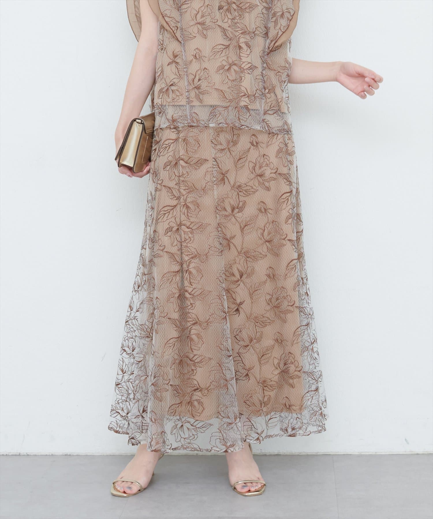 軽やかな透け感が魅力的な、花柄レーススカート。