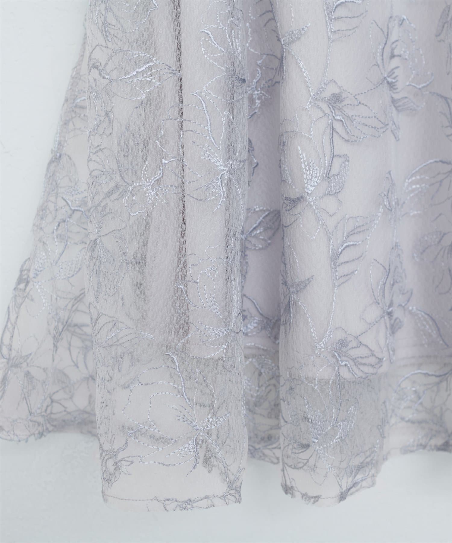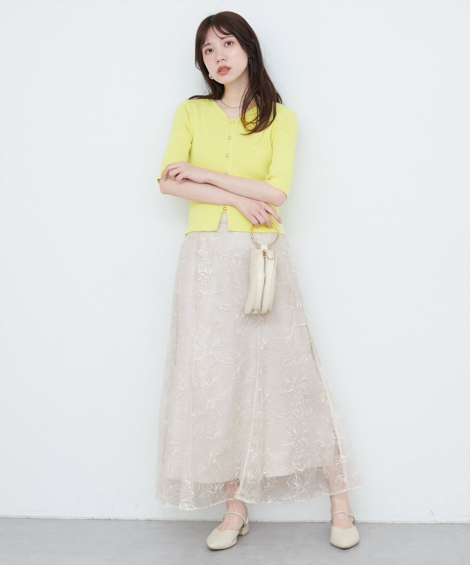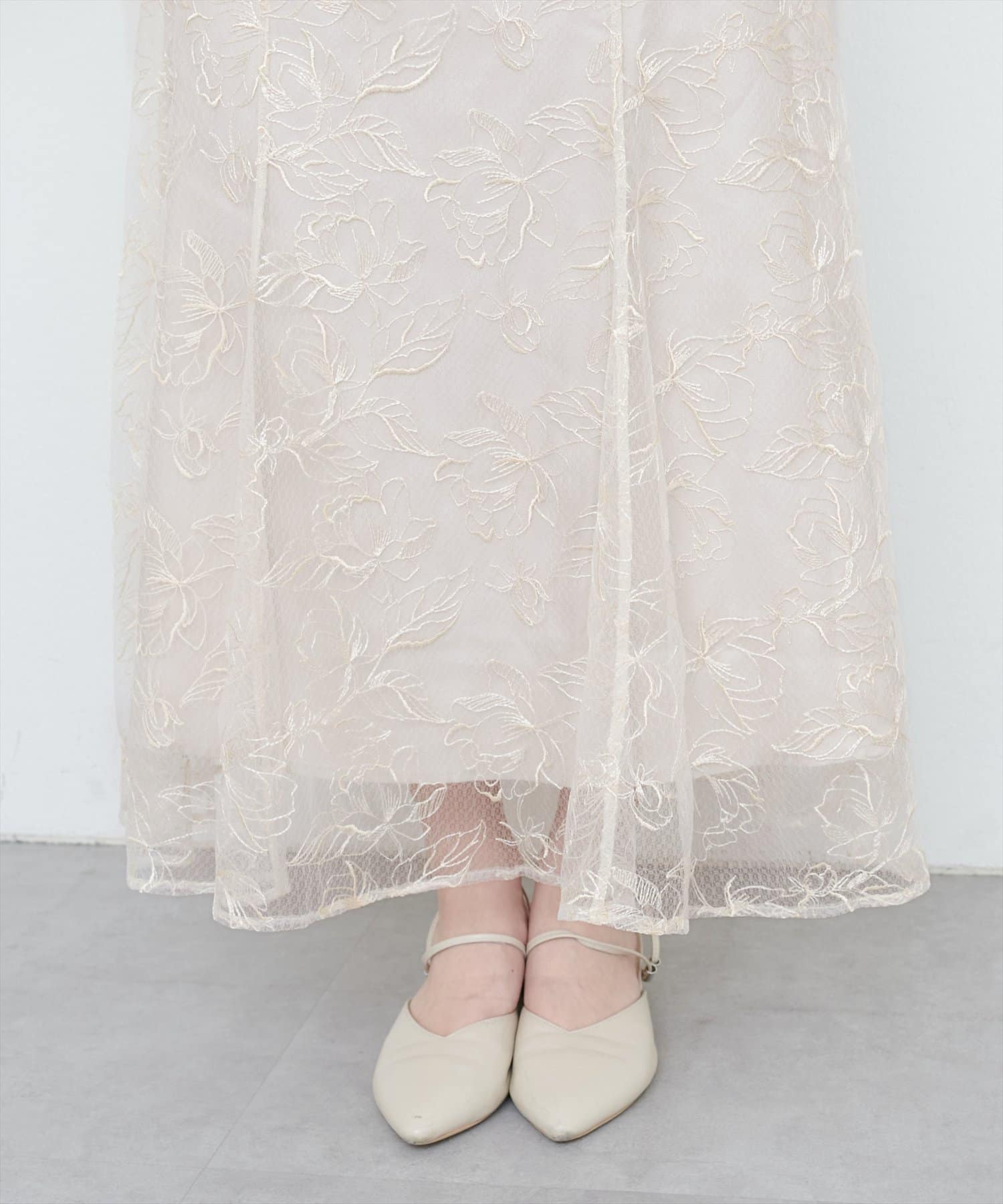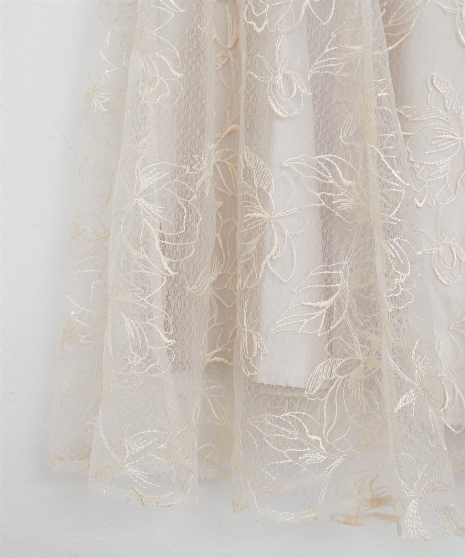 軽やかな透け感が魅力的な、花柄レーススカート。