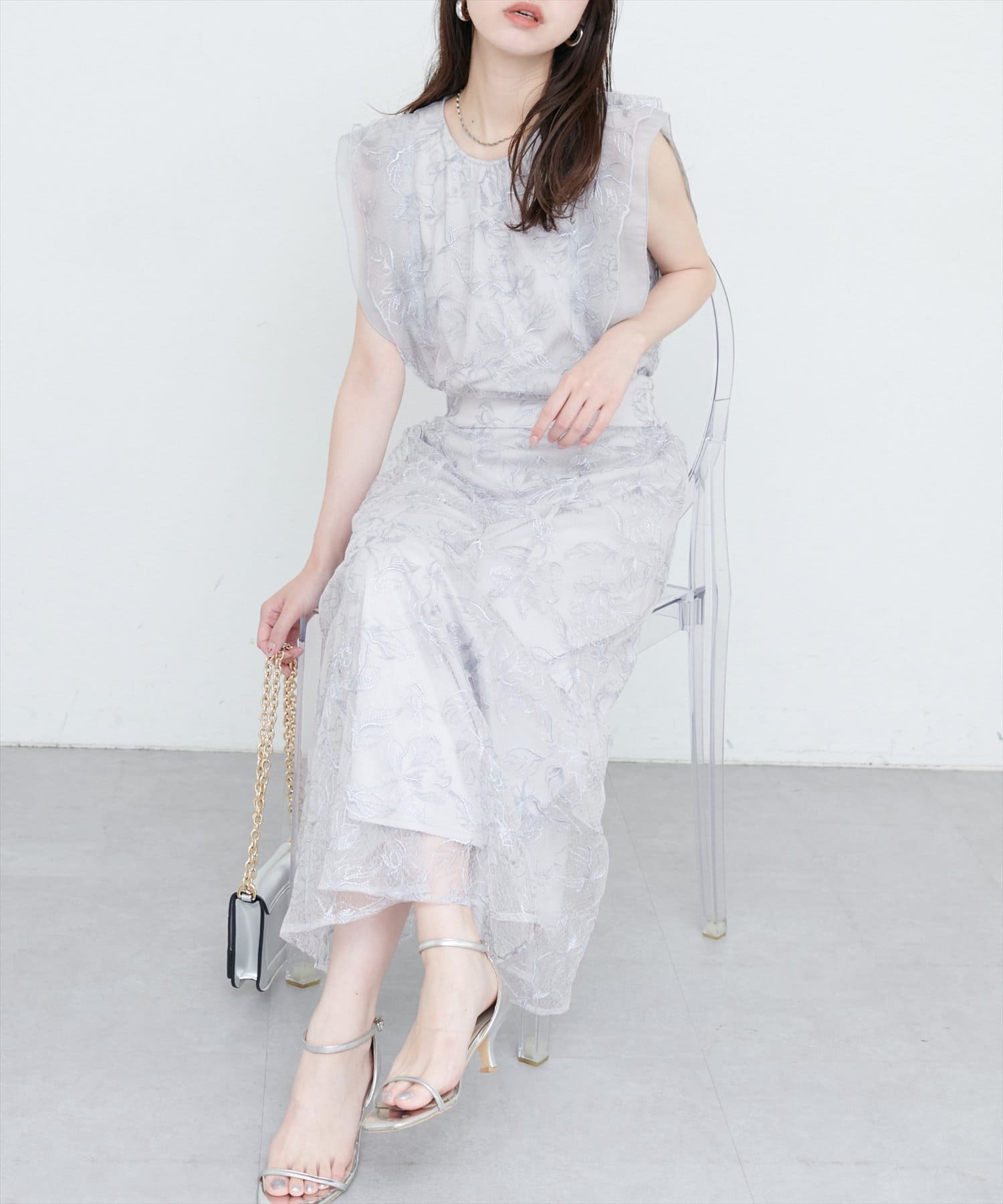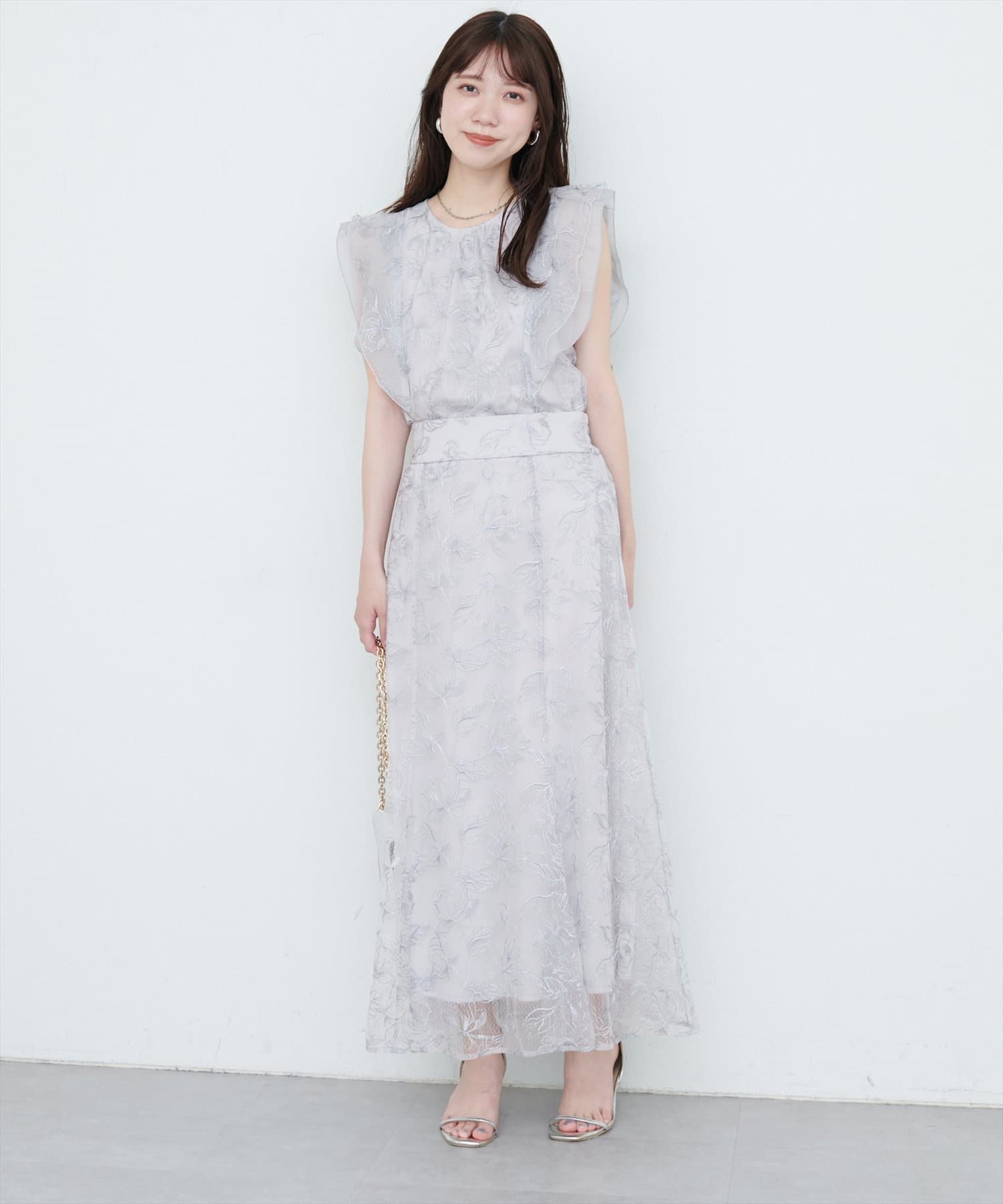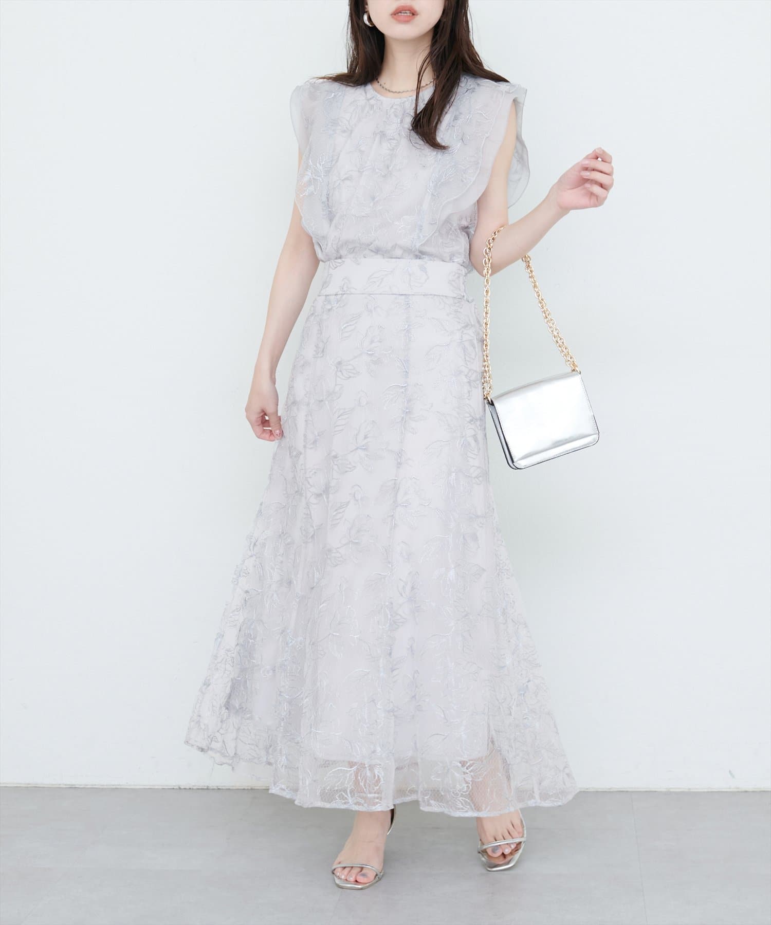 軽やかなオーガンジー素材でエレガントで女性らしい雰囲気を演出。