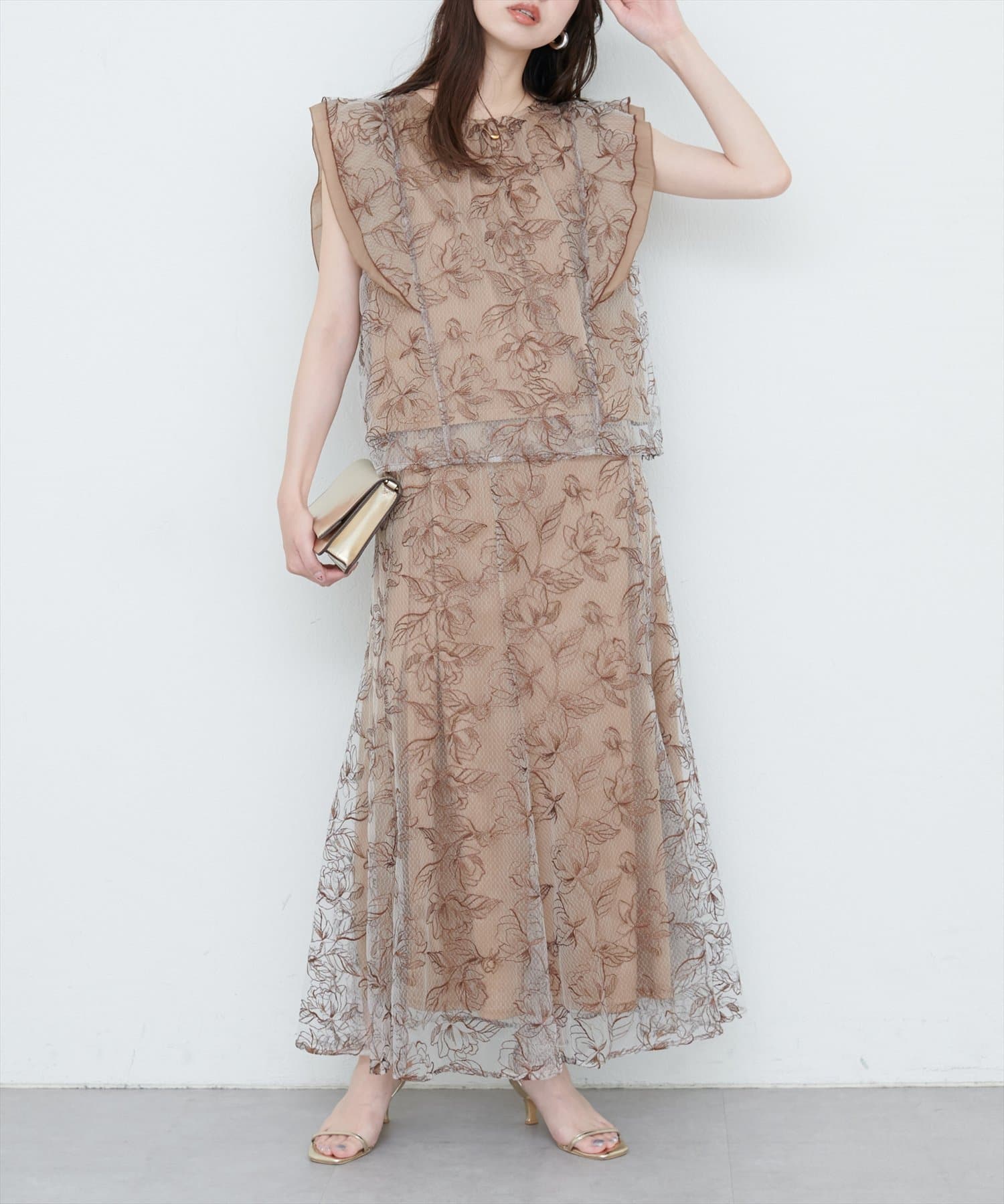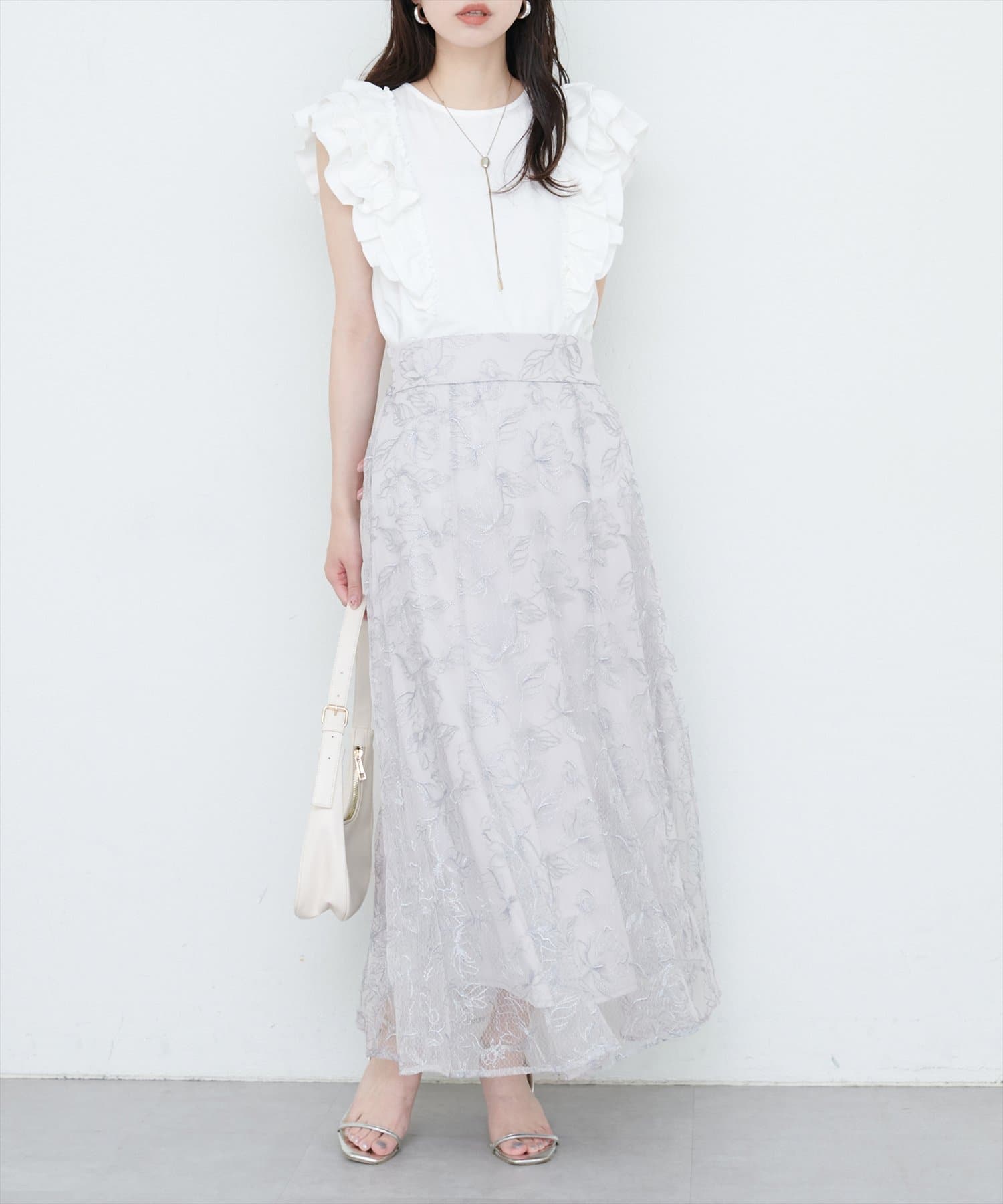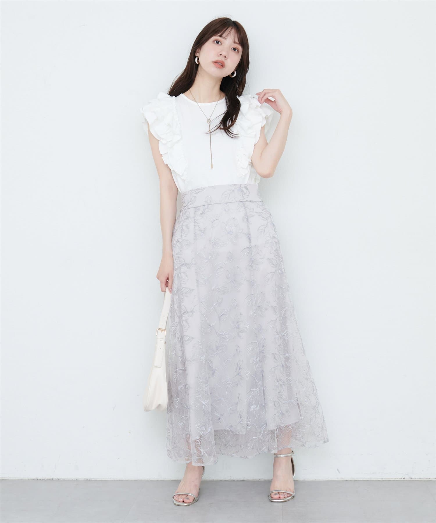 同素材の(0351041240 刺繍レースラッフルスリーブブラウス)とセットで着用可能。