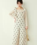 肩ヒモのフリルが印象的なので、インナーはシンプルなアイテムを選ぶだけできまります。