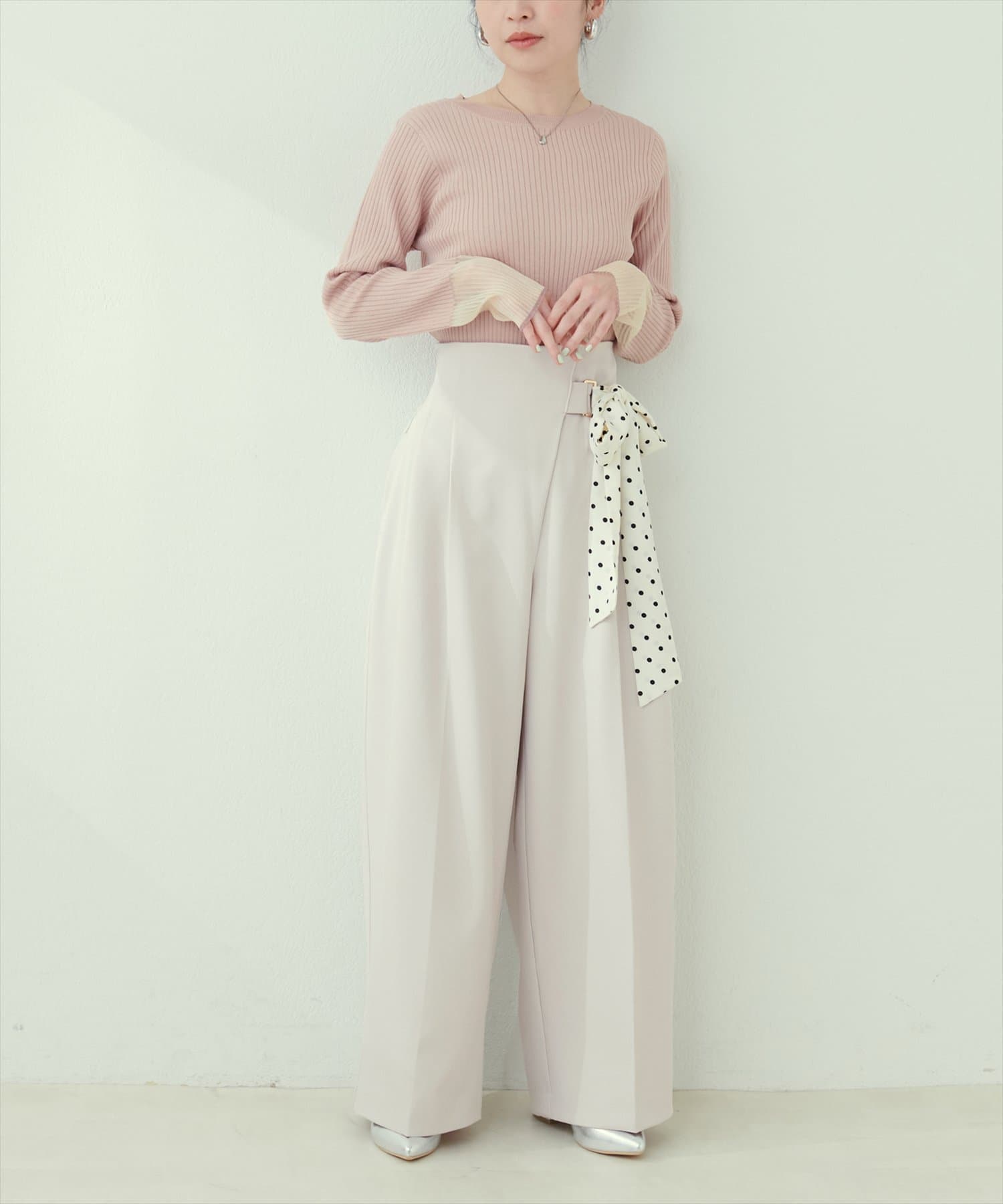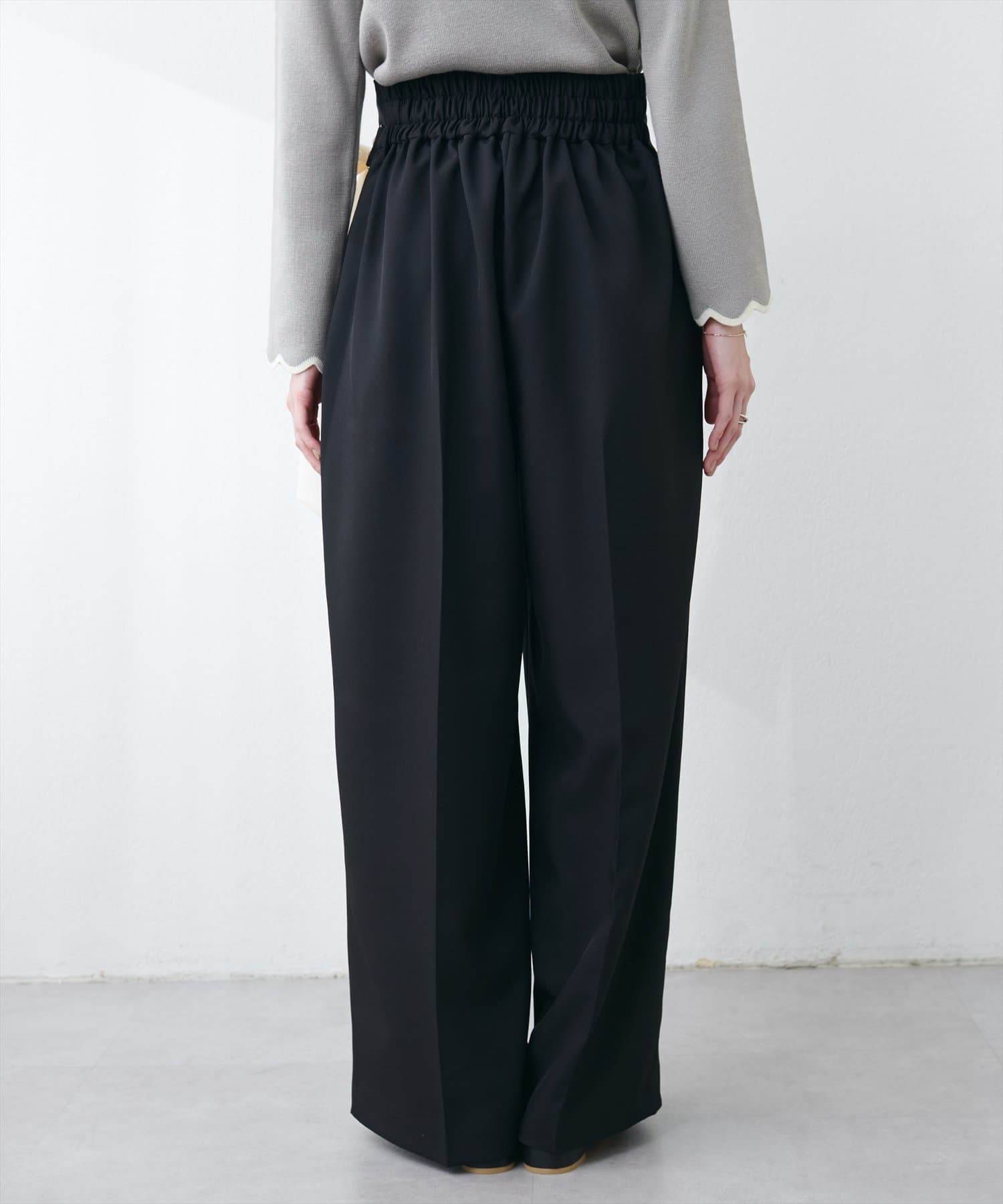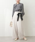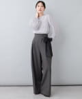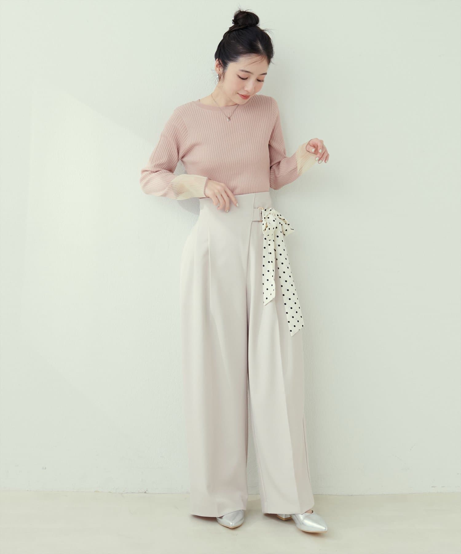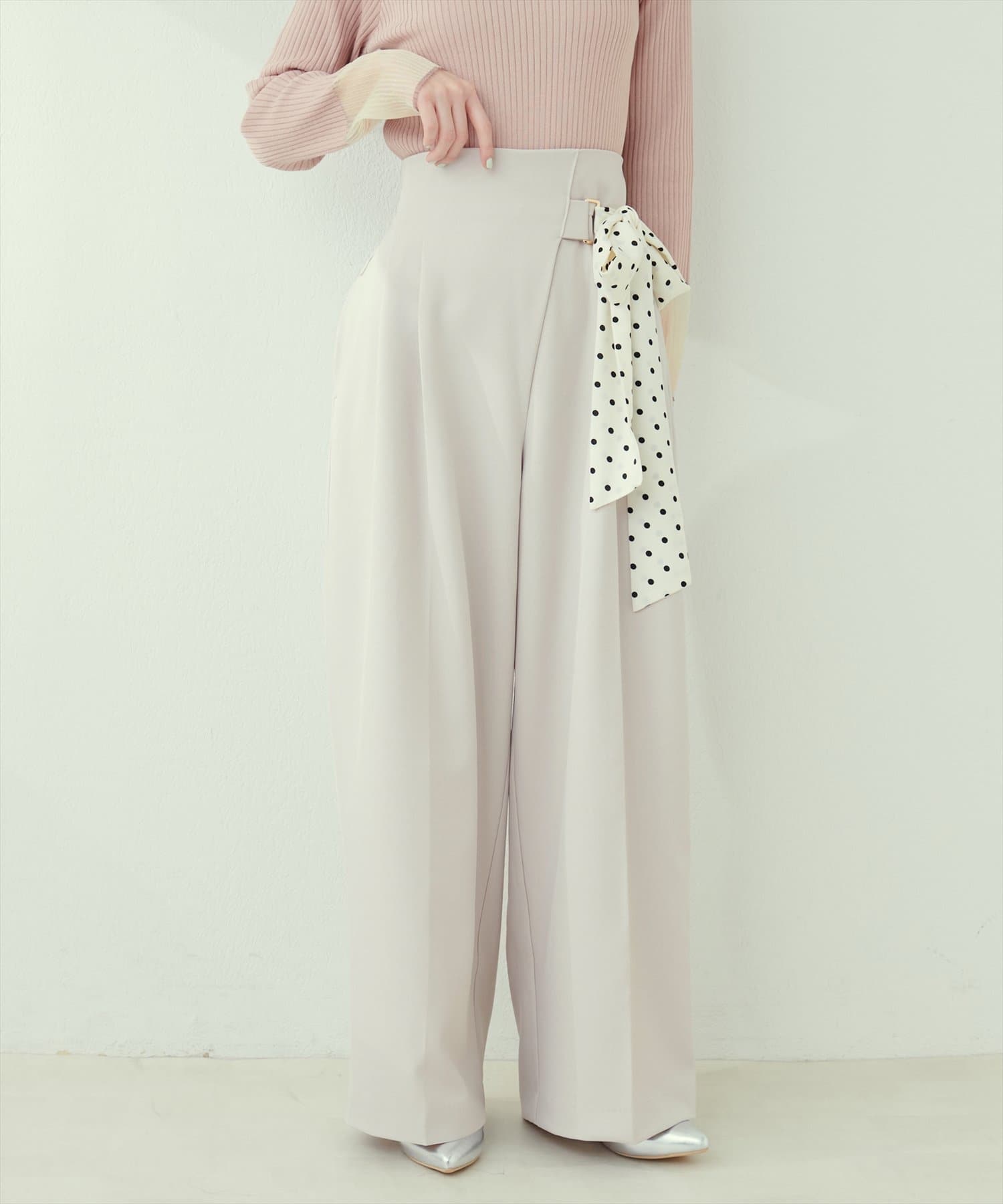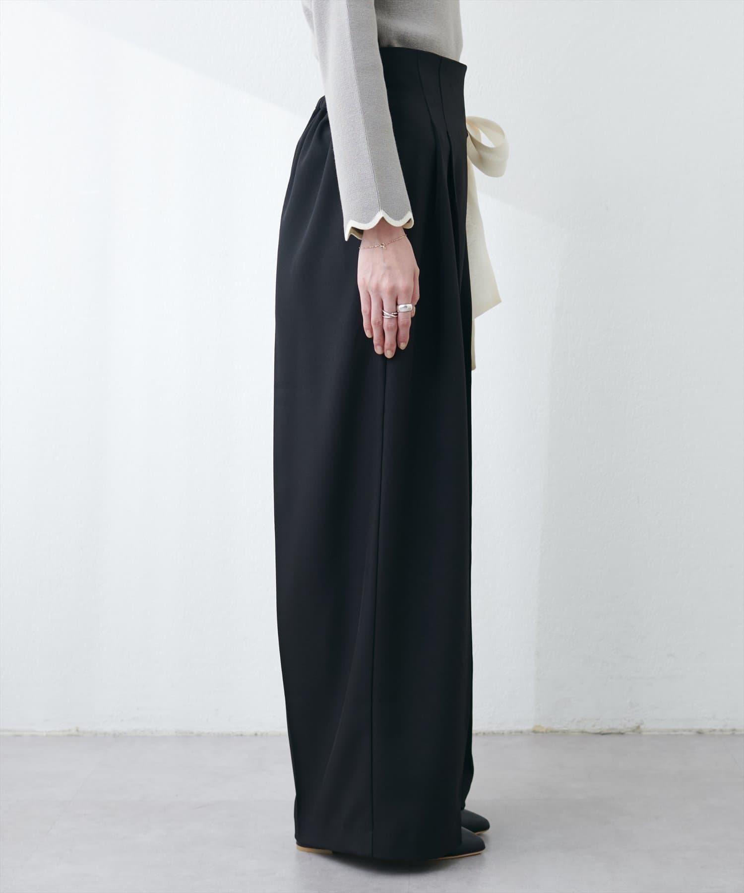 ウエストリボンでスタイリングに華やかさをプラスしてくれるタックパンツ。