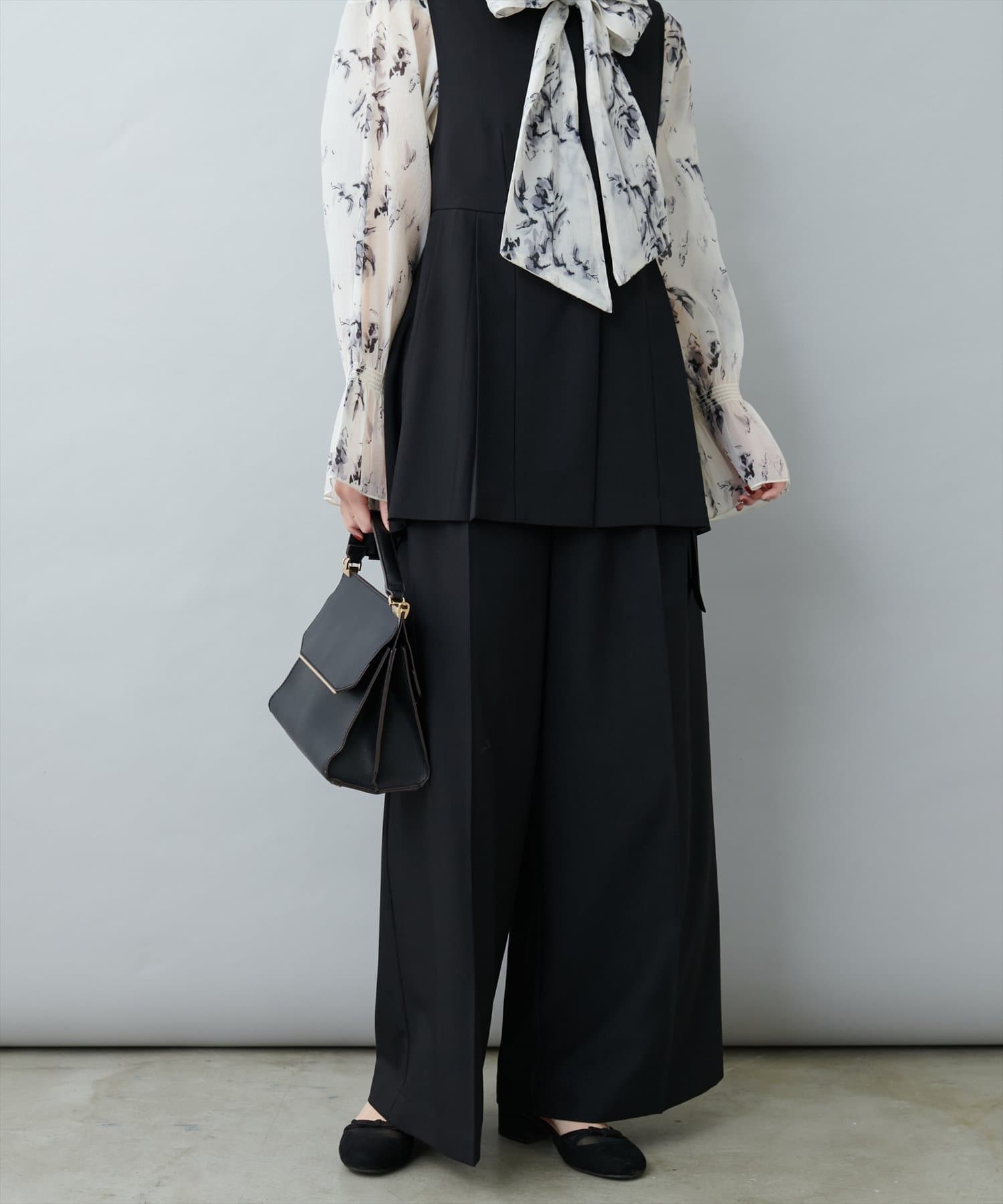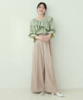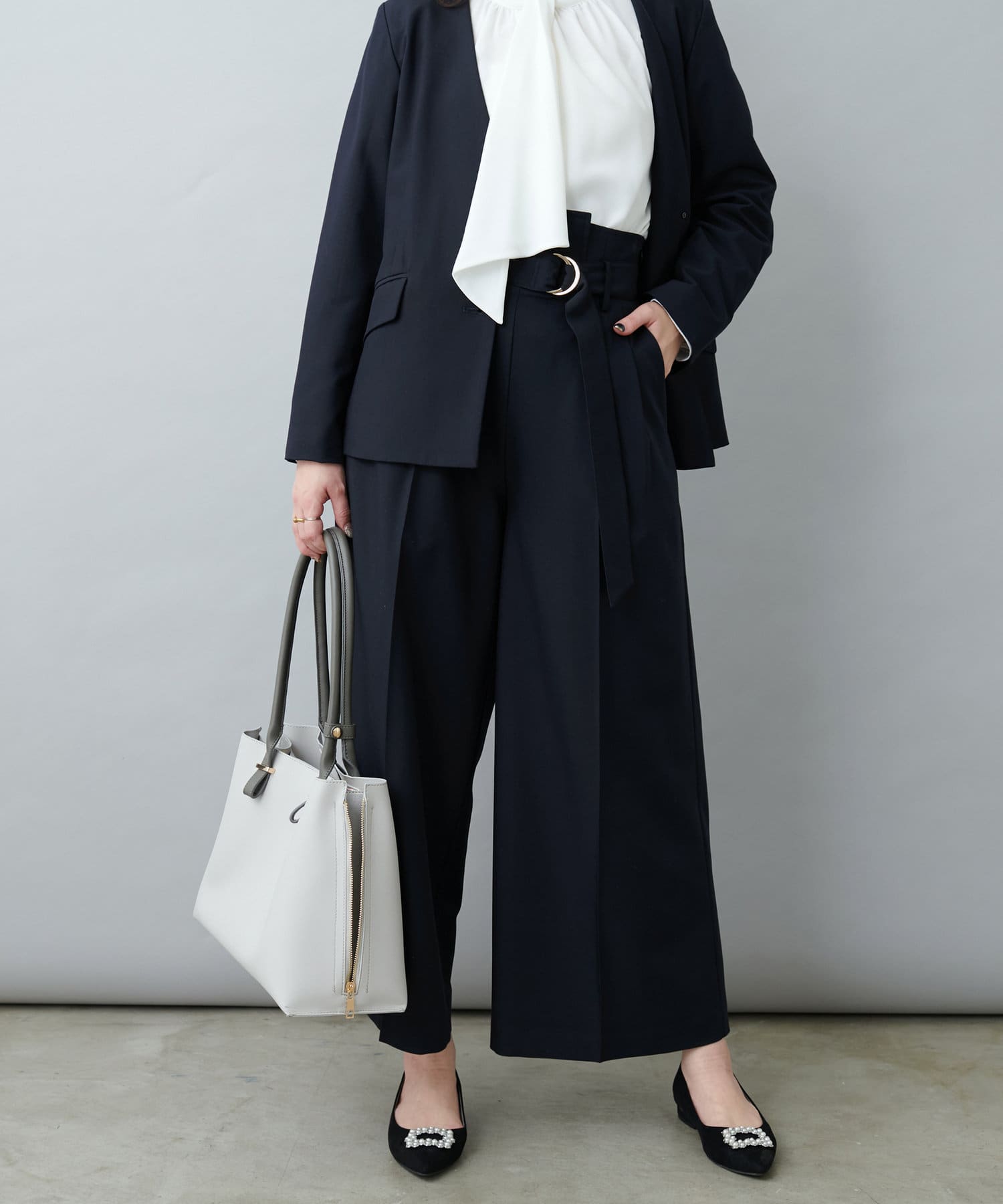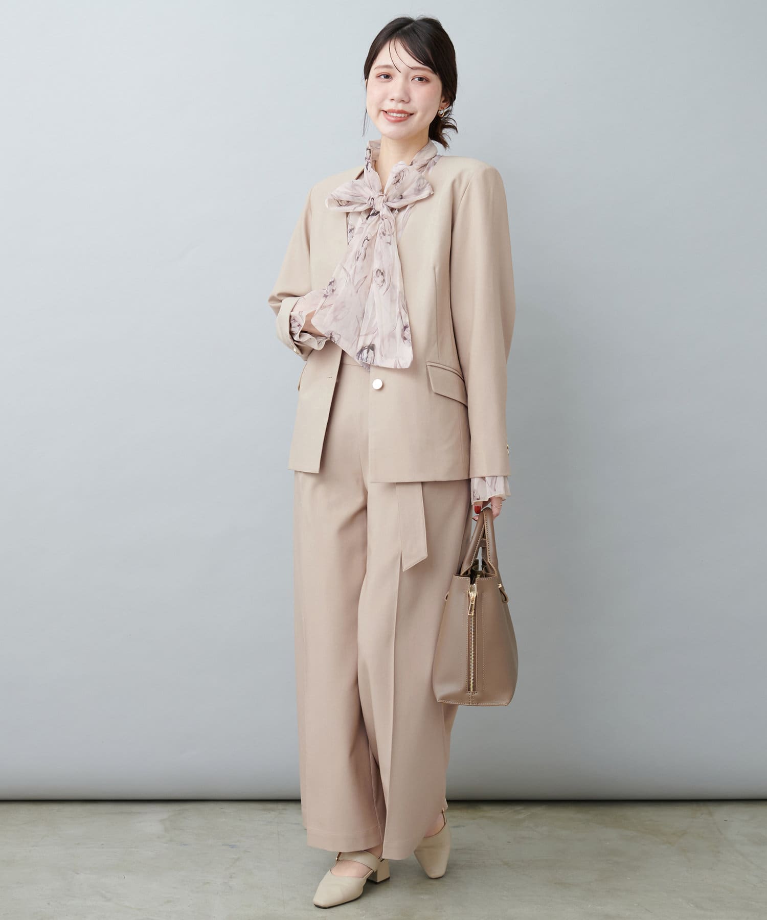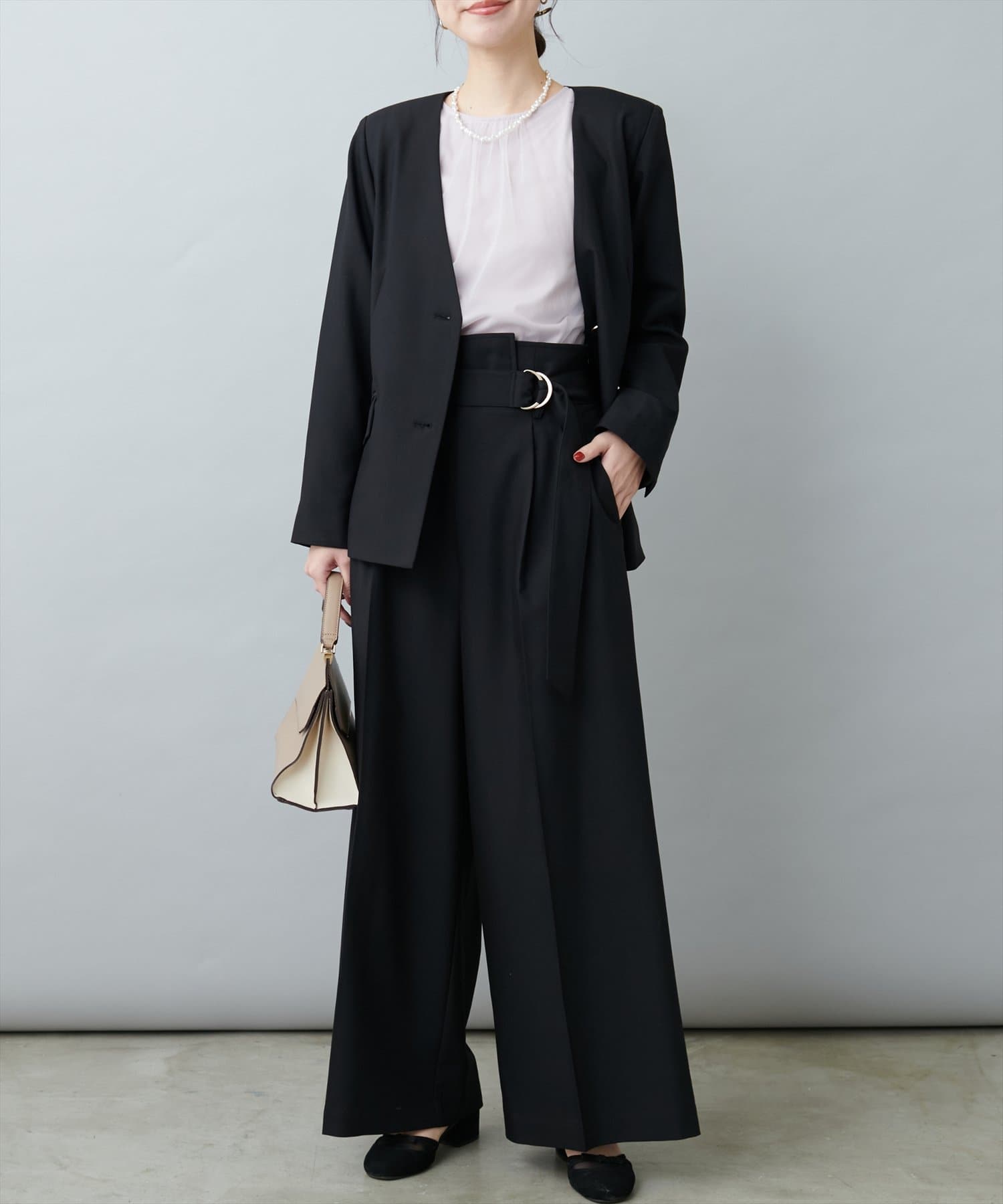 0351070080 薄金釦ノーカラージャケットとのセットアップ着用がおすすめ。