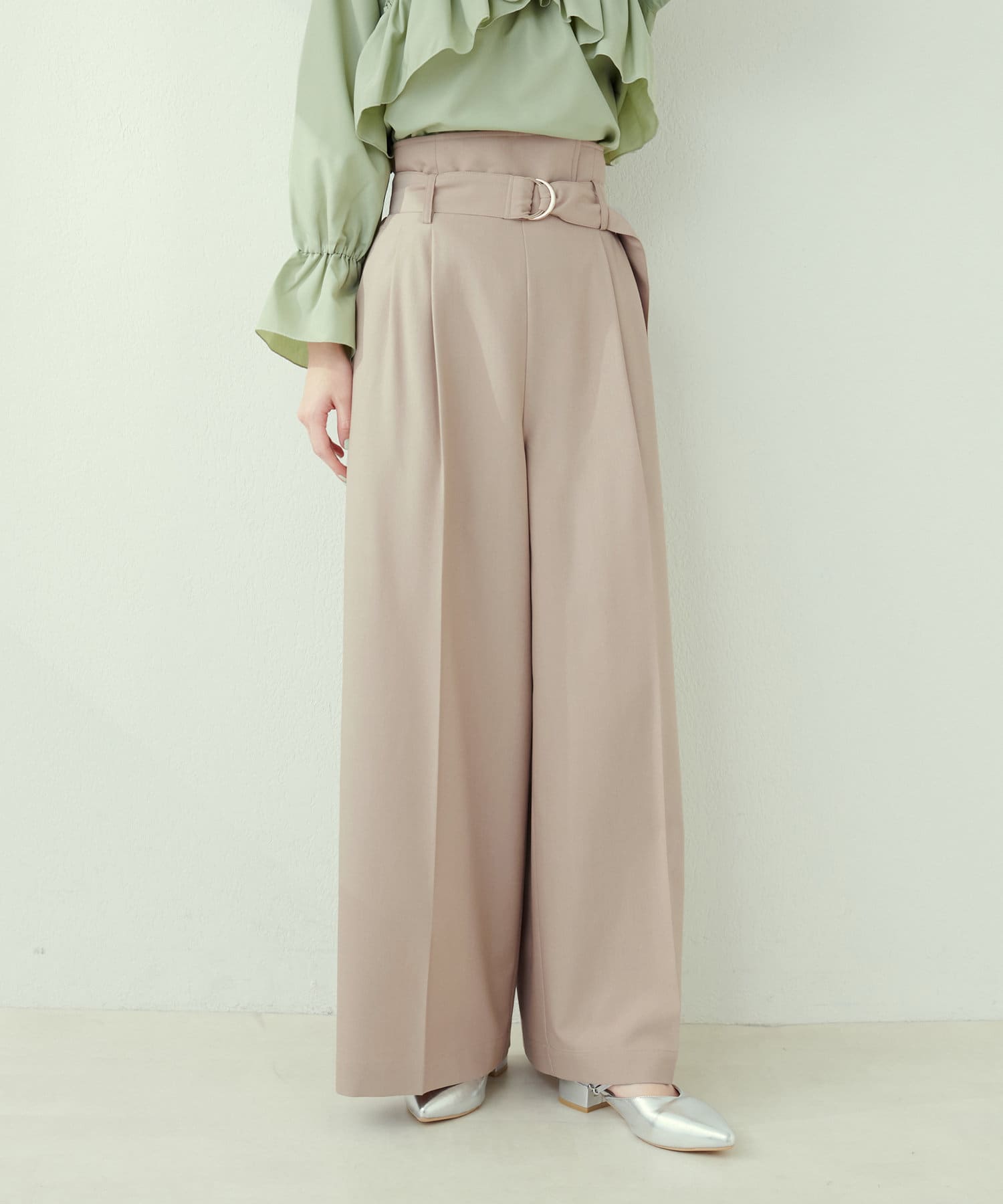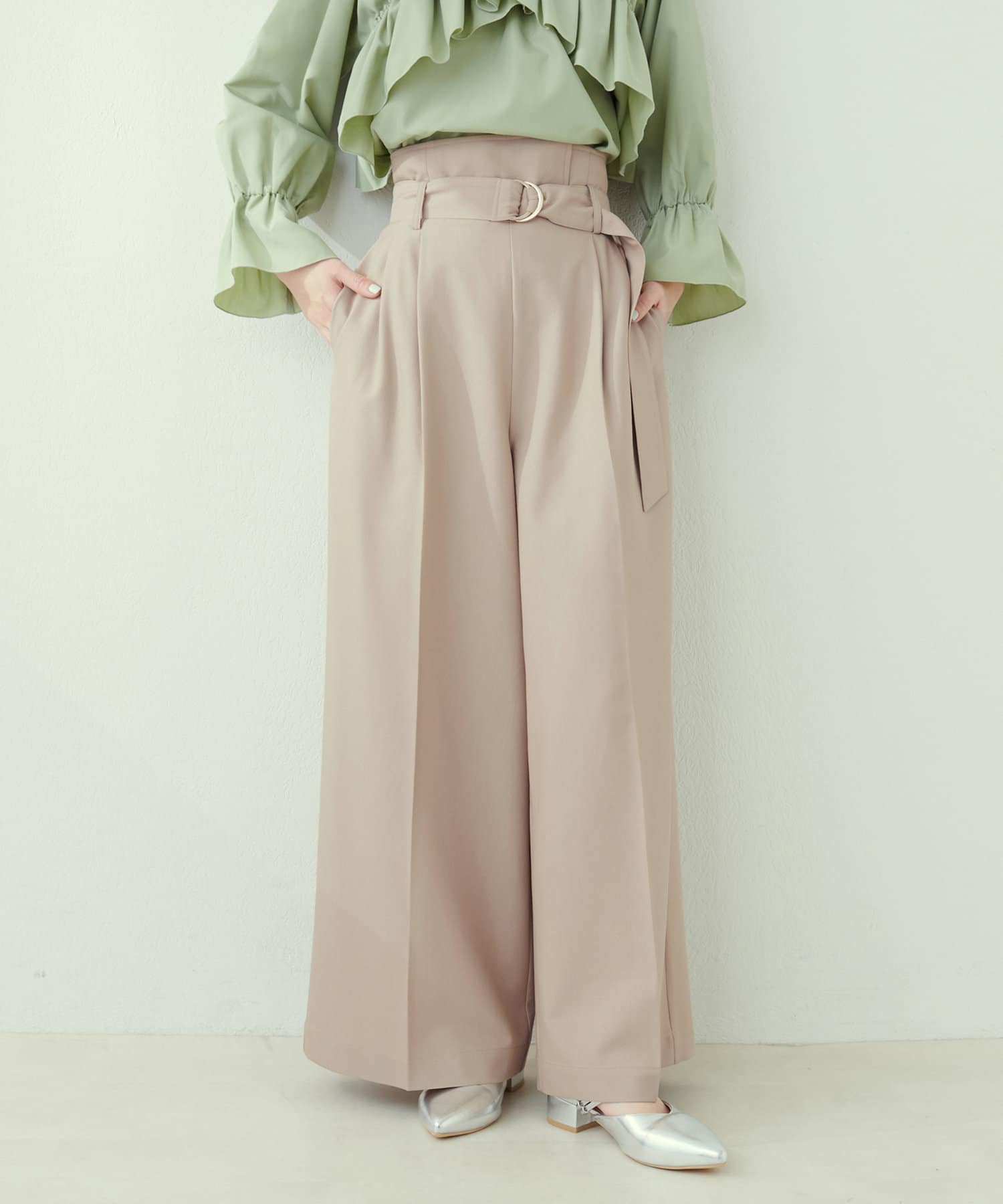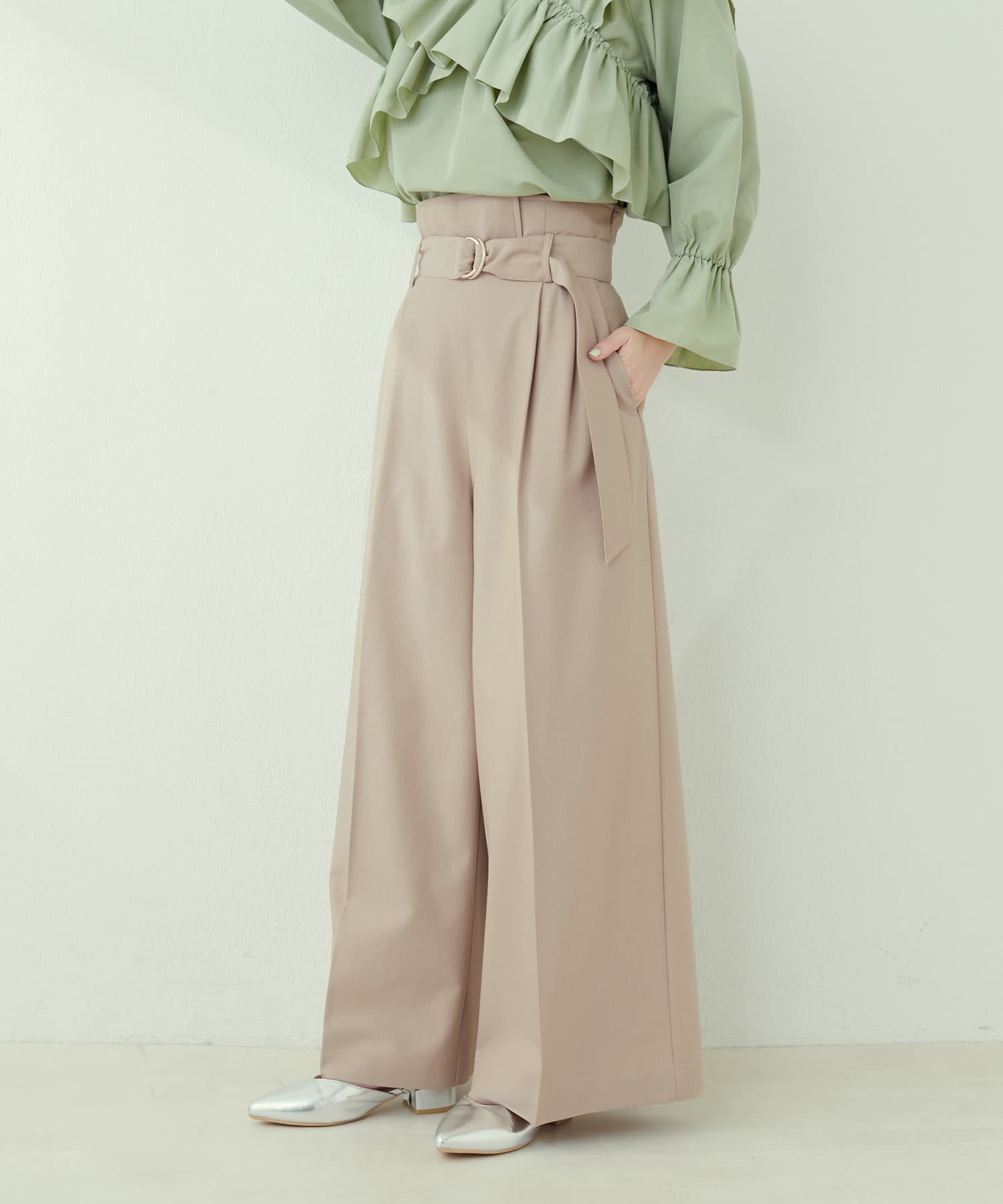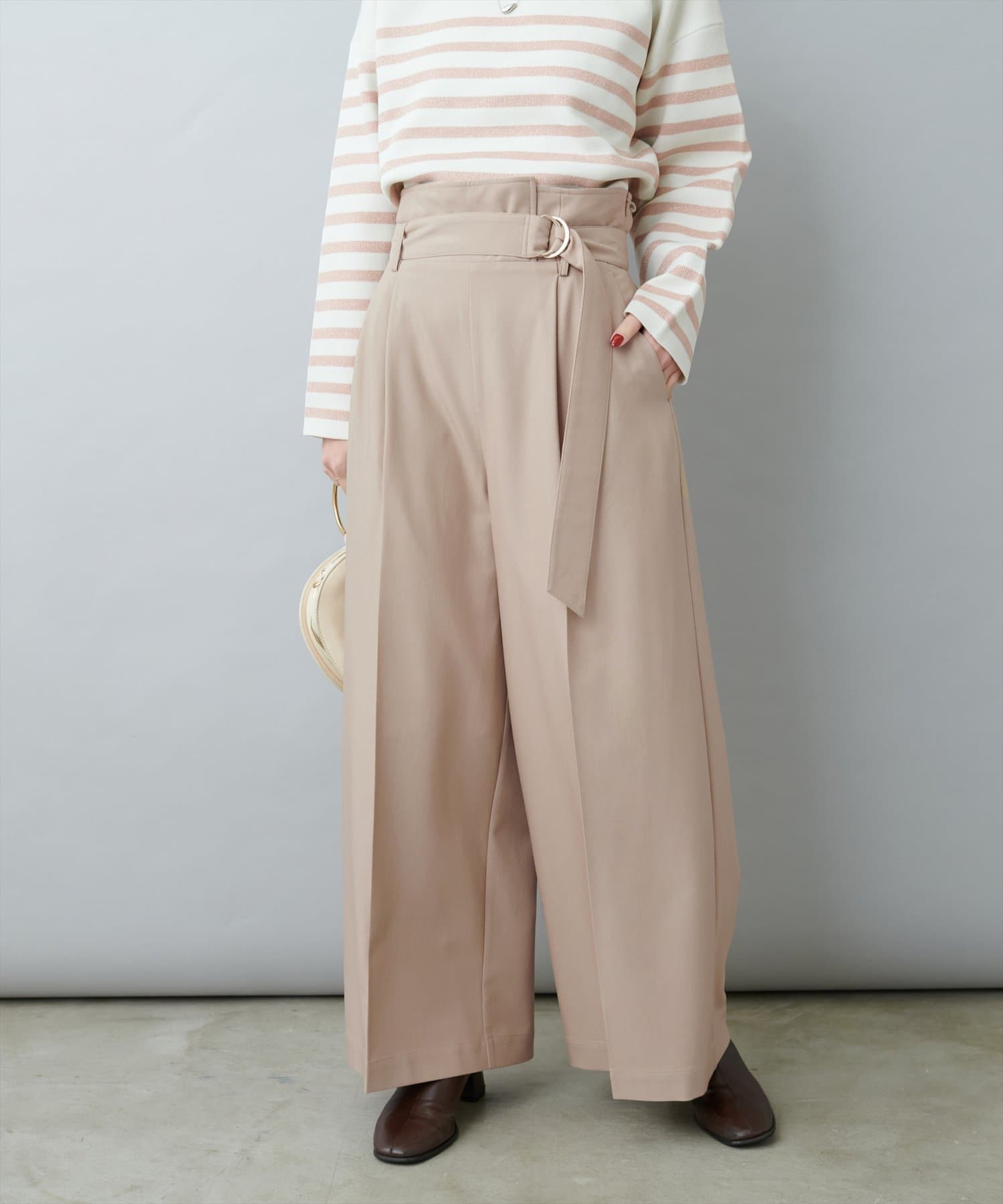 オケージョン対応可 / Dカンベルト付きアシメハイウエストパンツ
