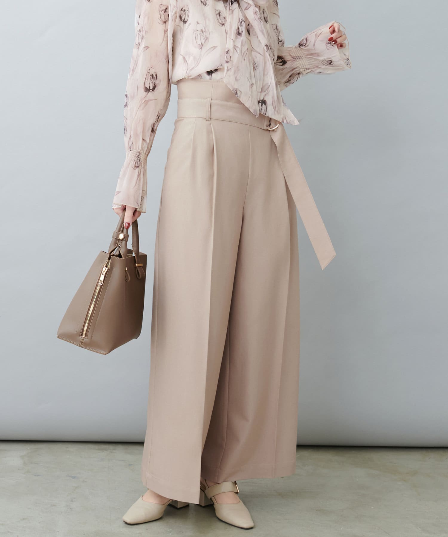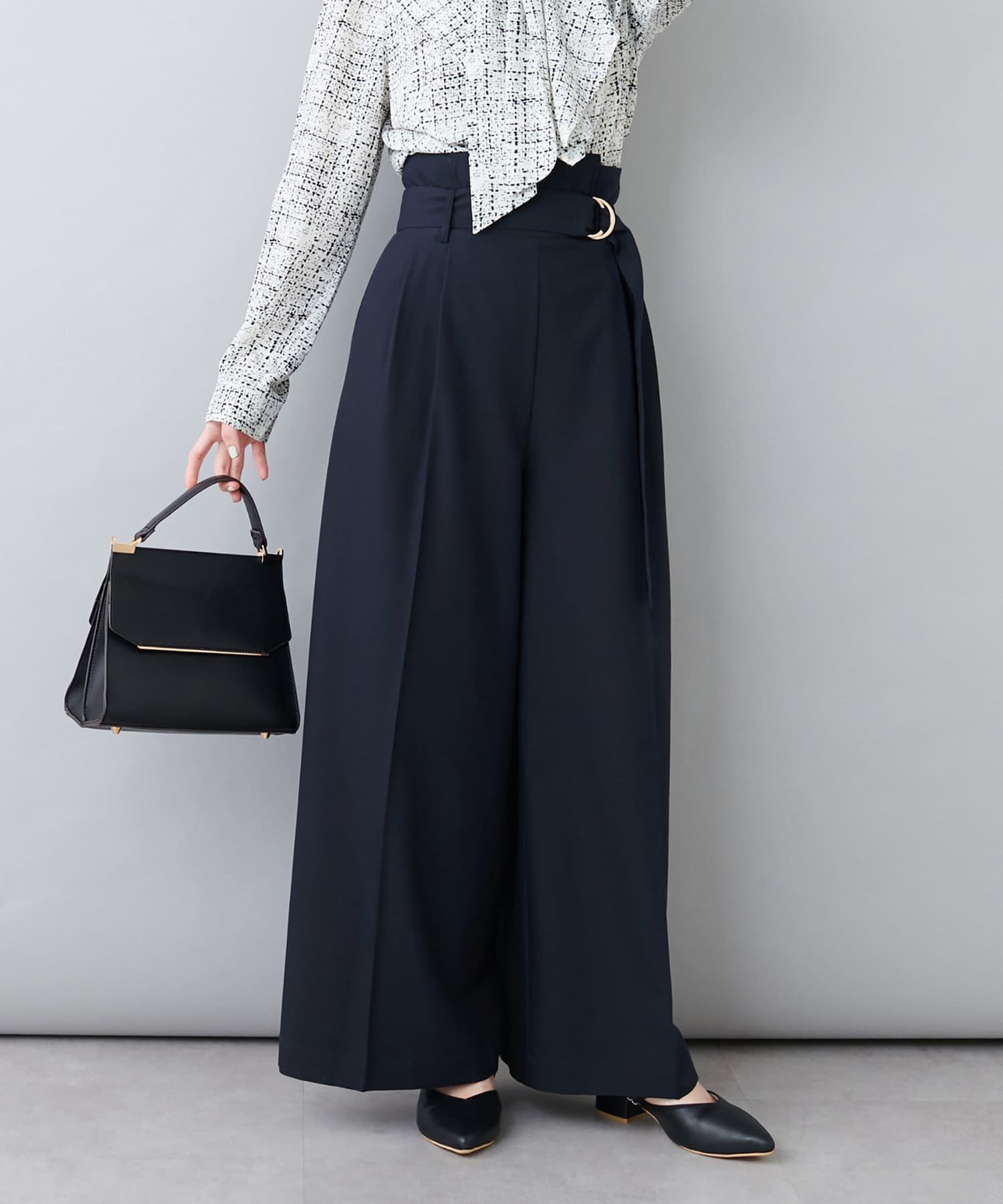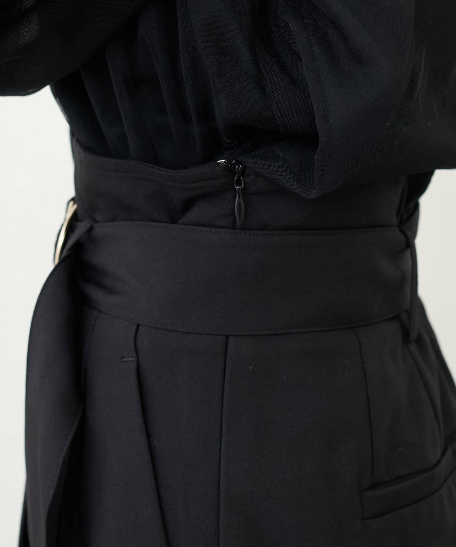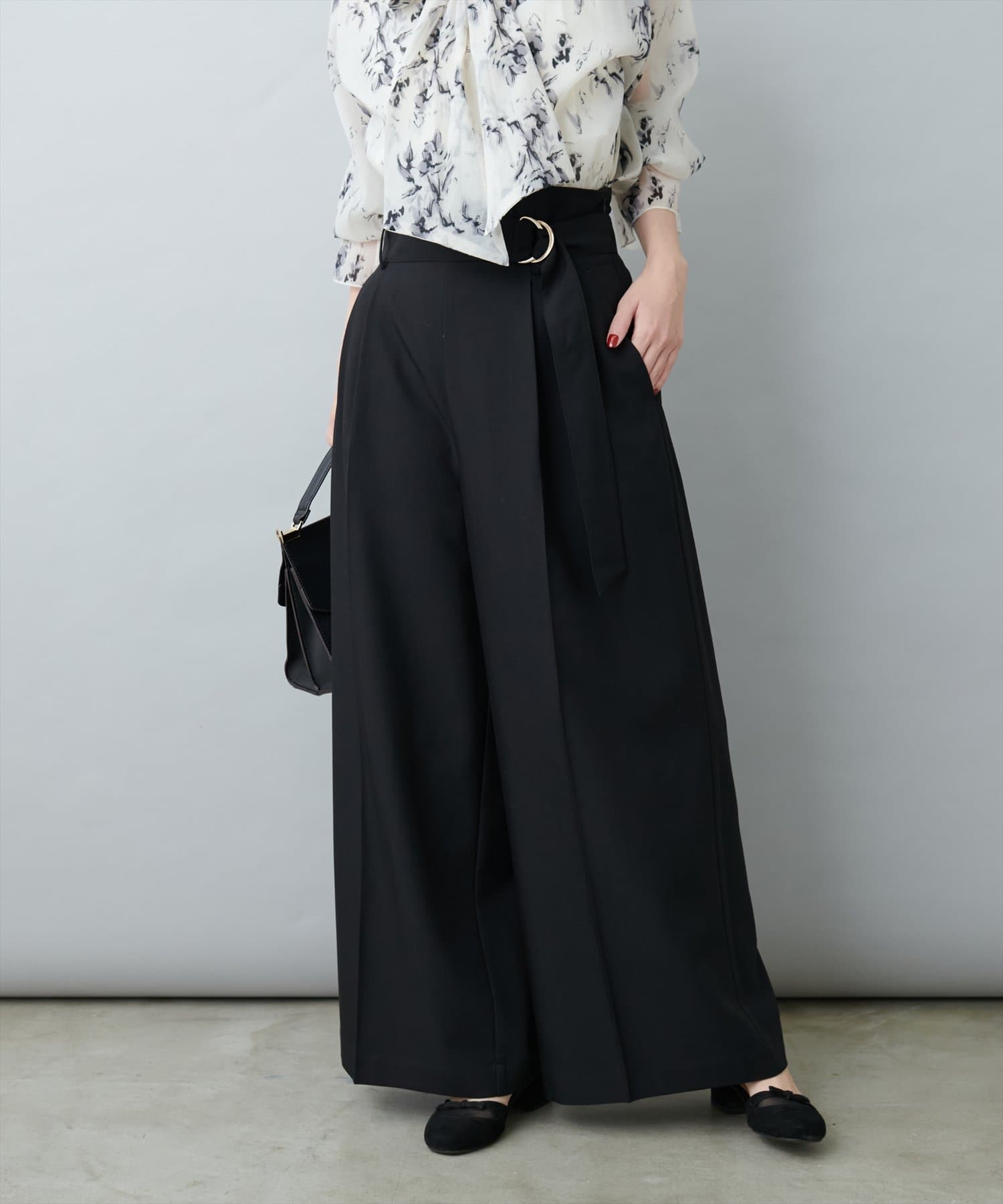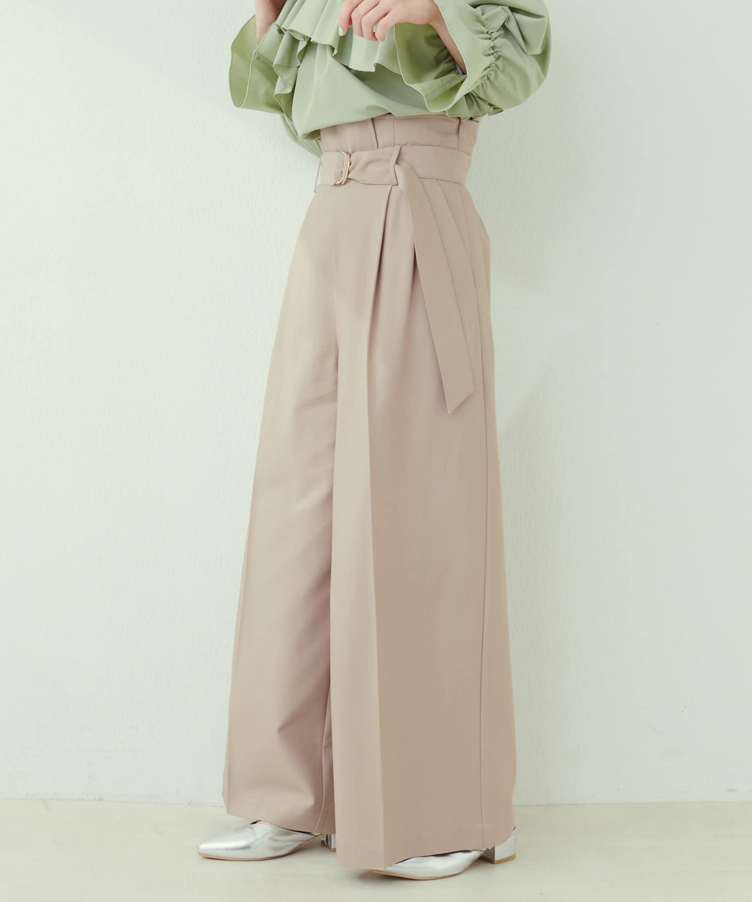 オケージョン対応可 / Dカンベルト付きアシメハイウエストパンツ