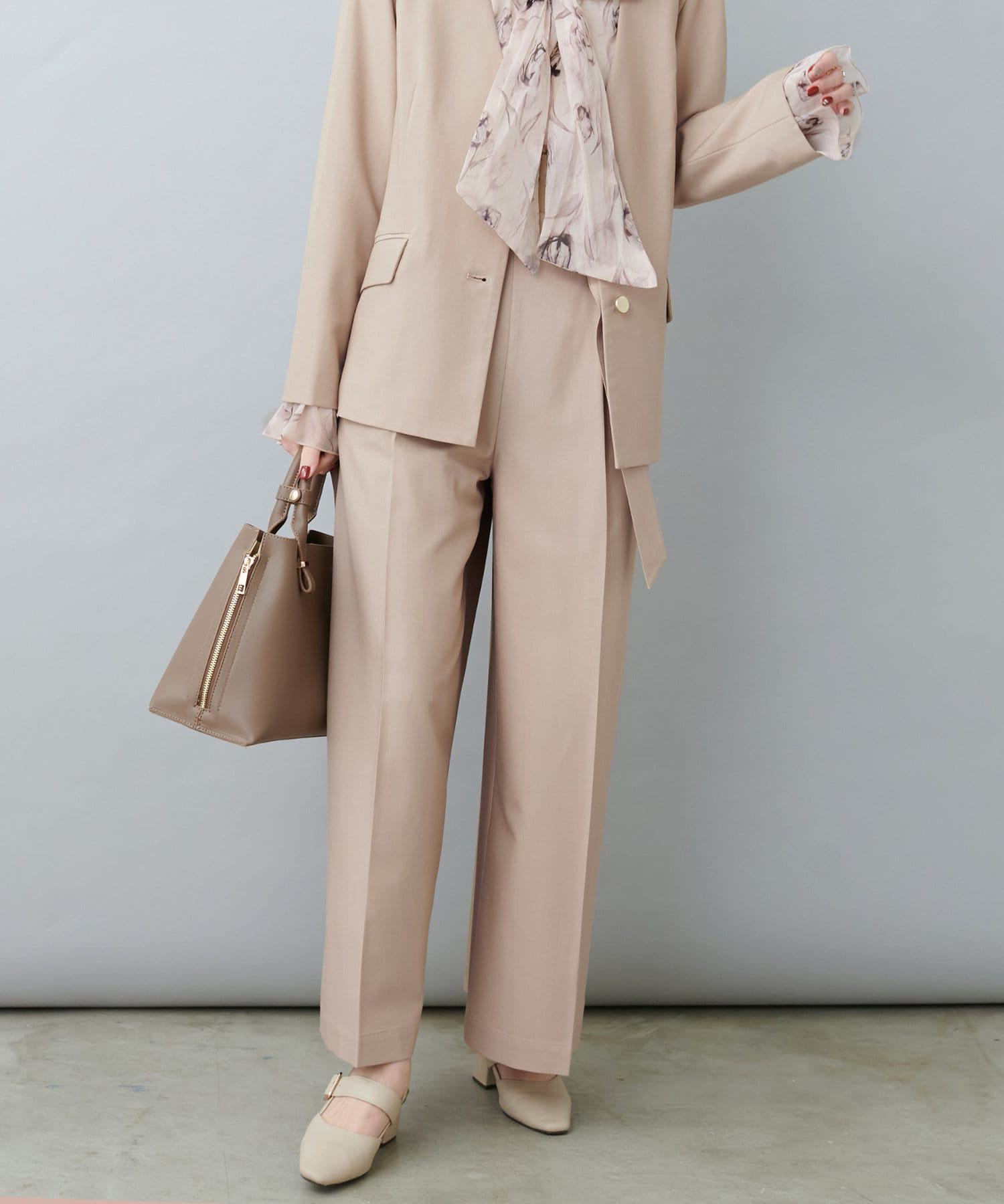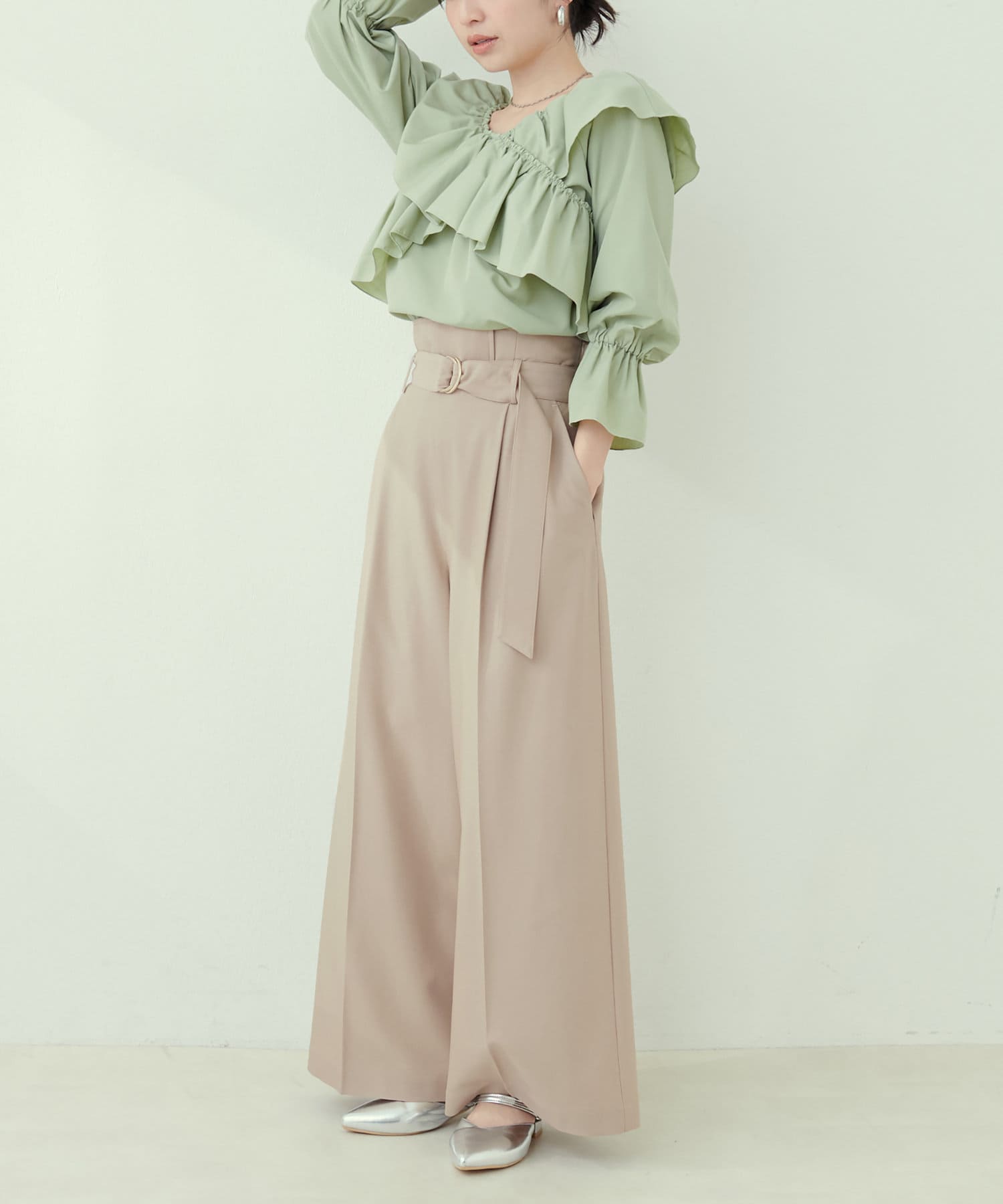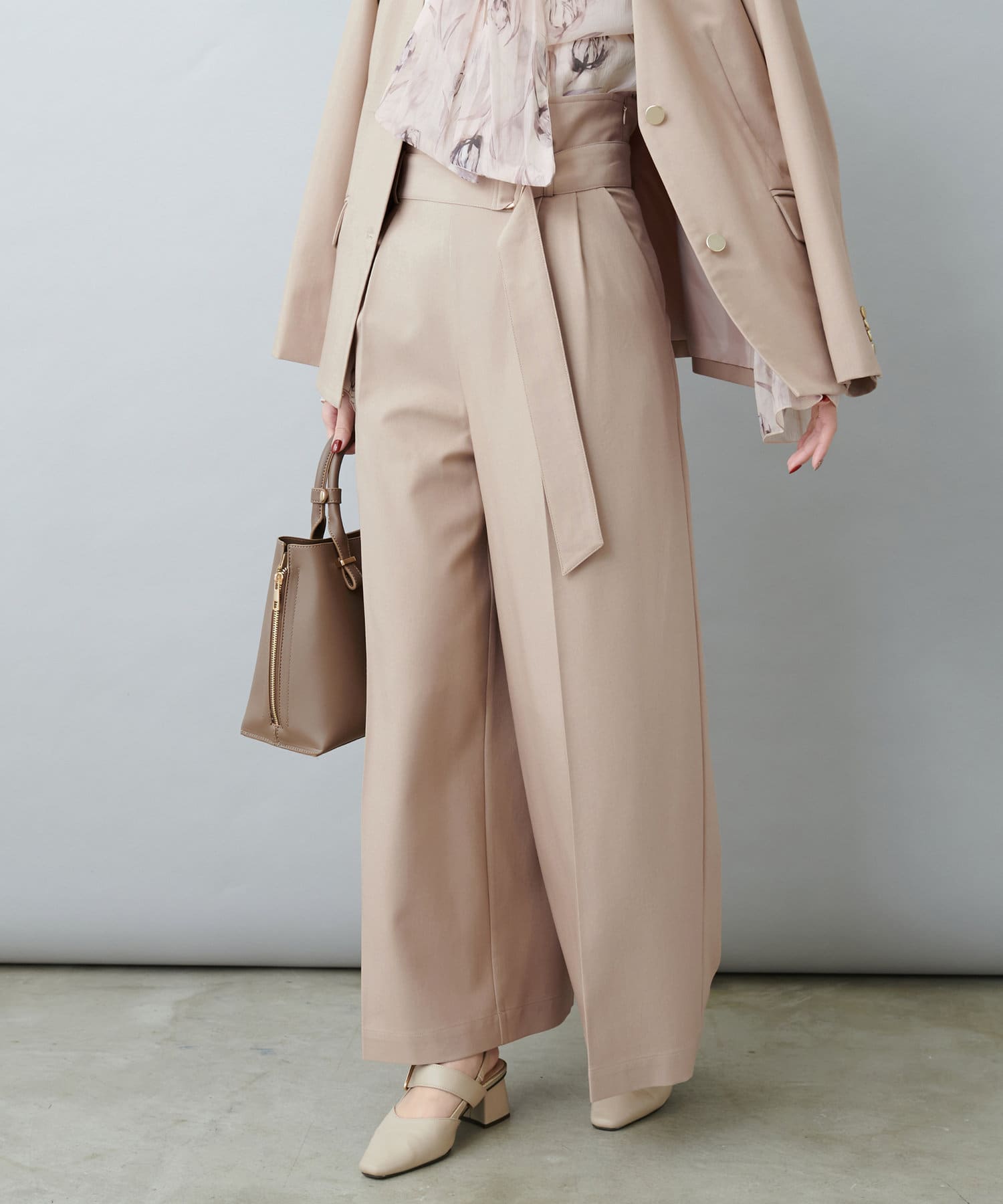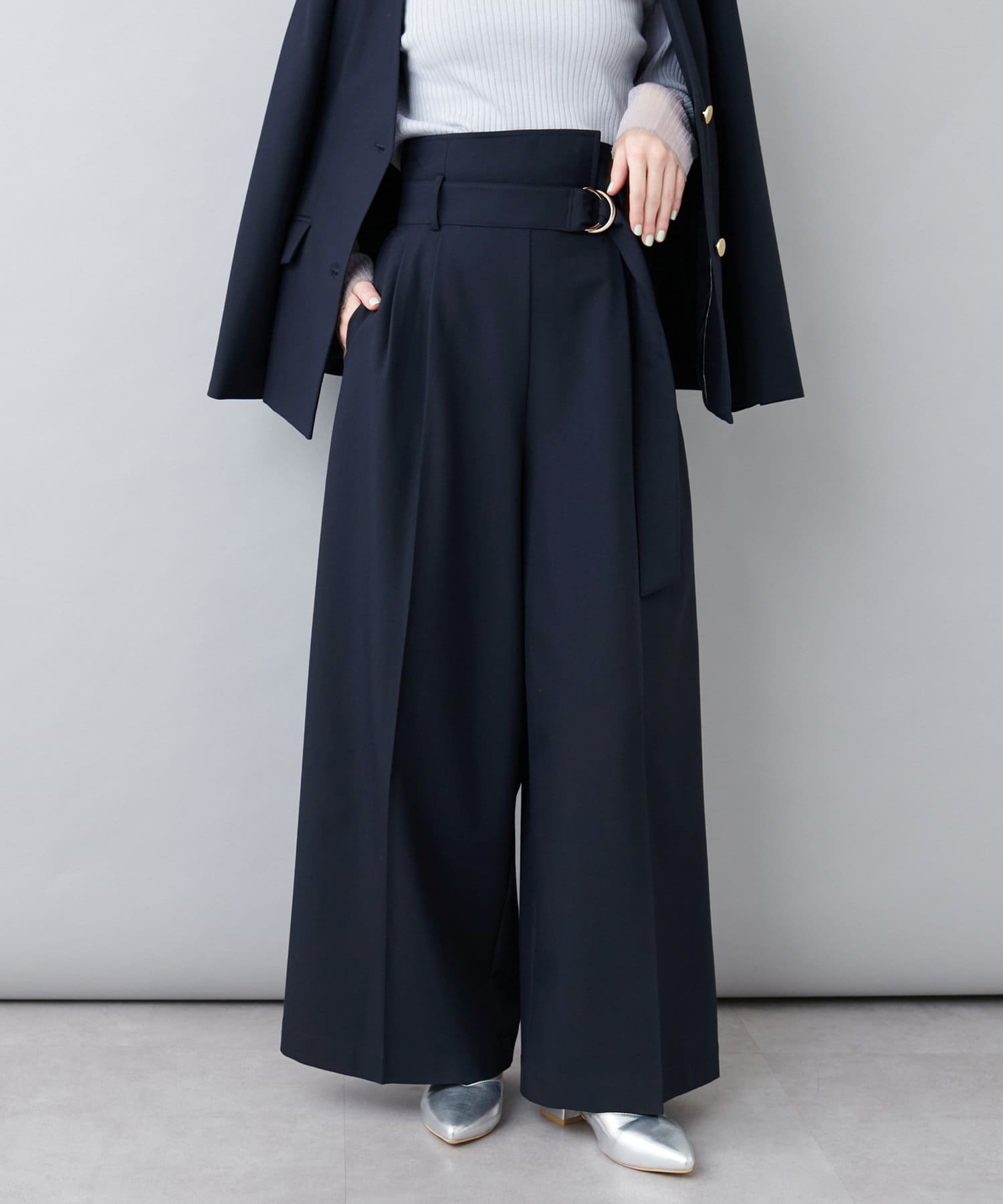 オケージョン対応可 / Dカンベルト付きアシメハイウエストパンツ