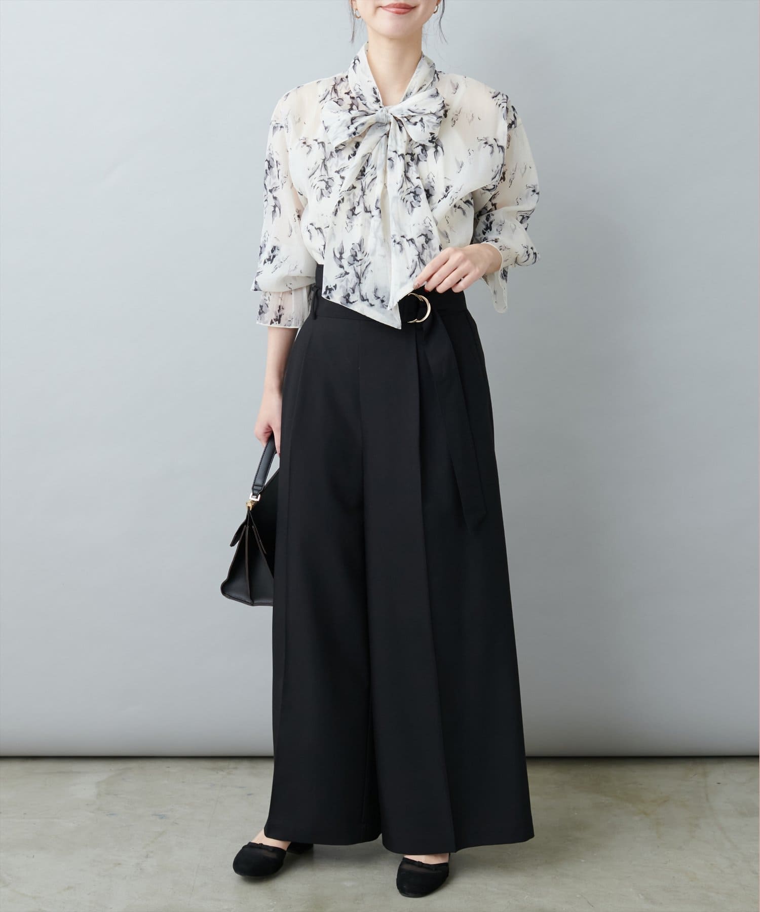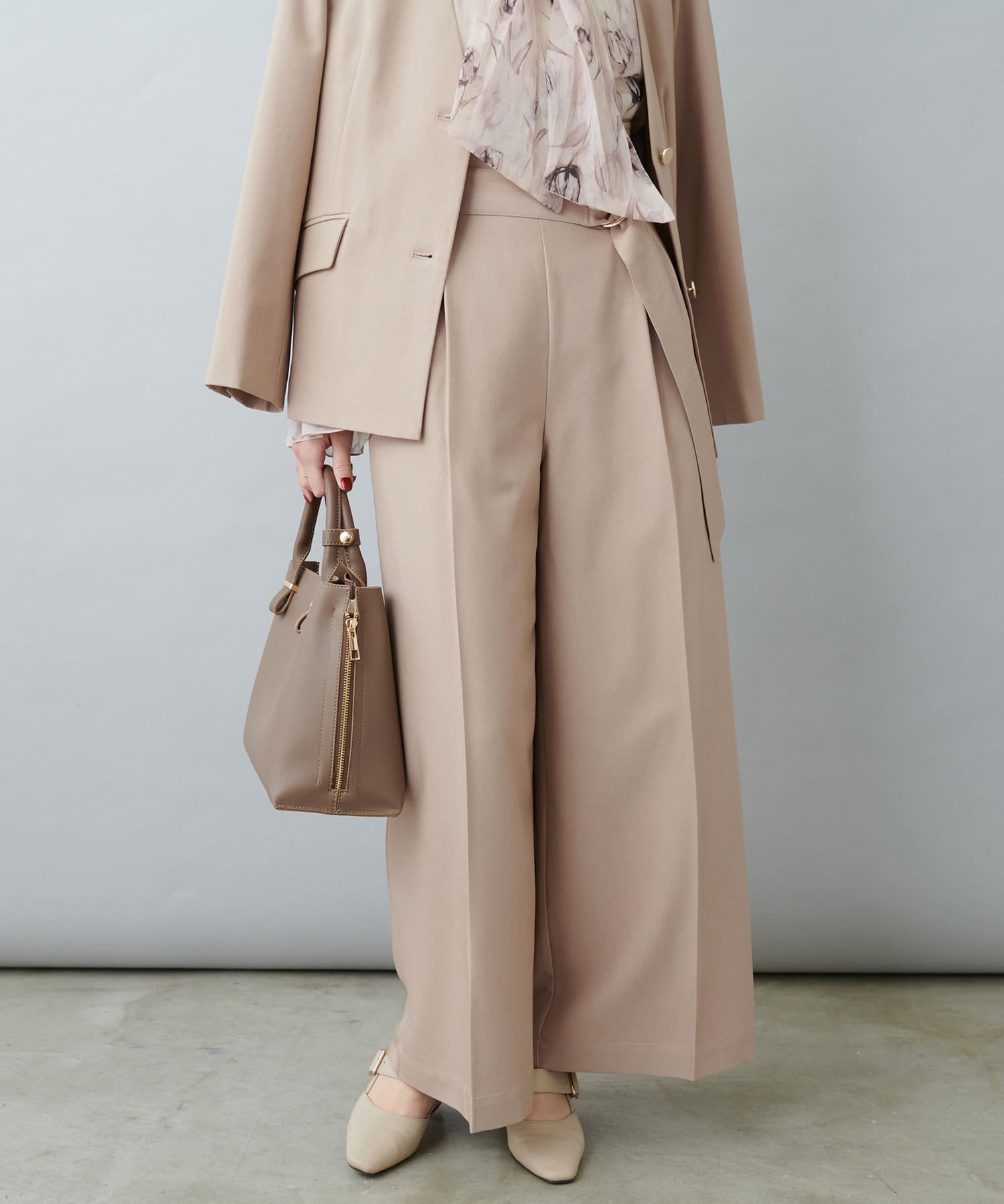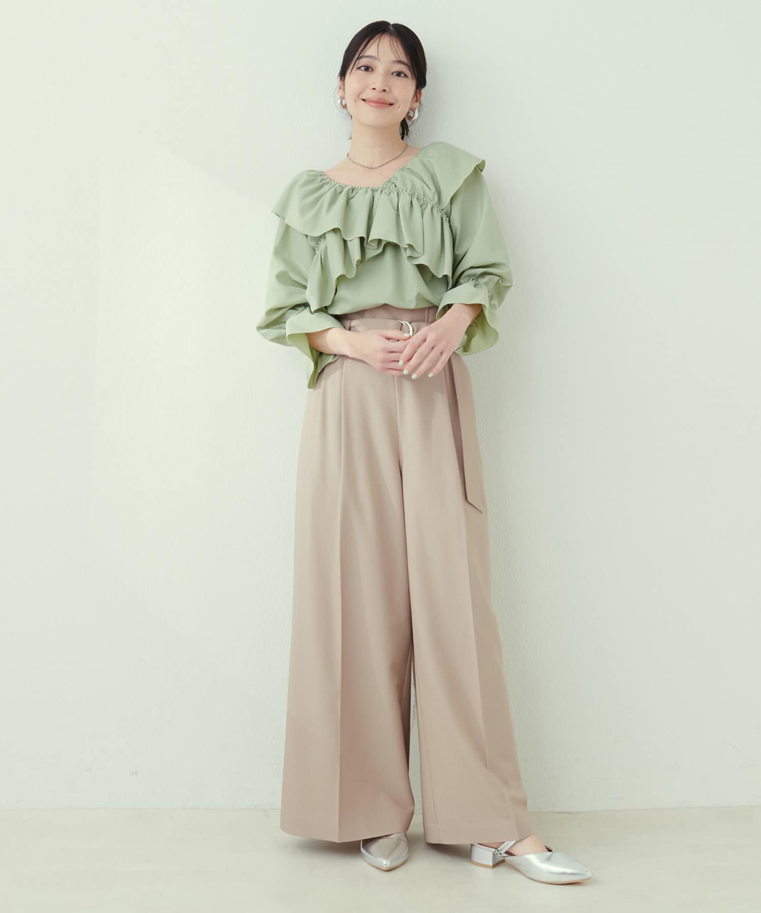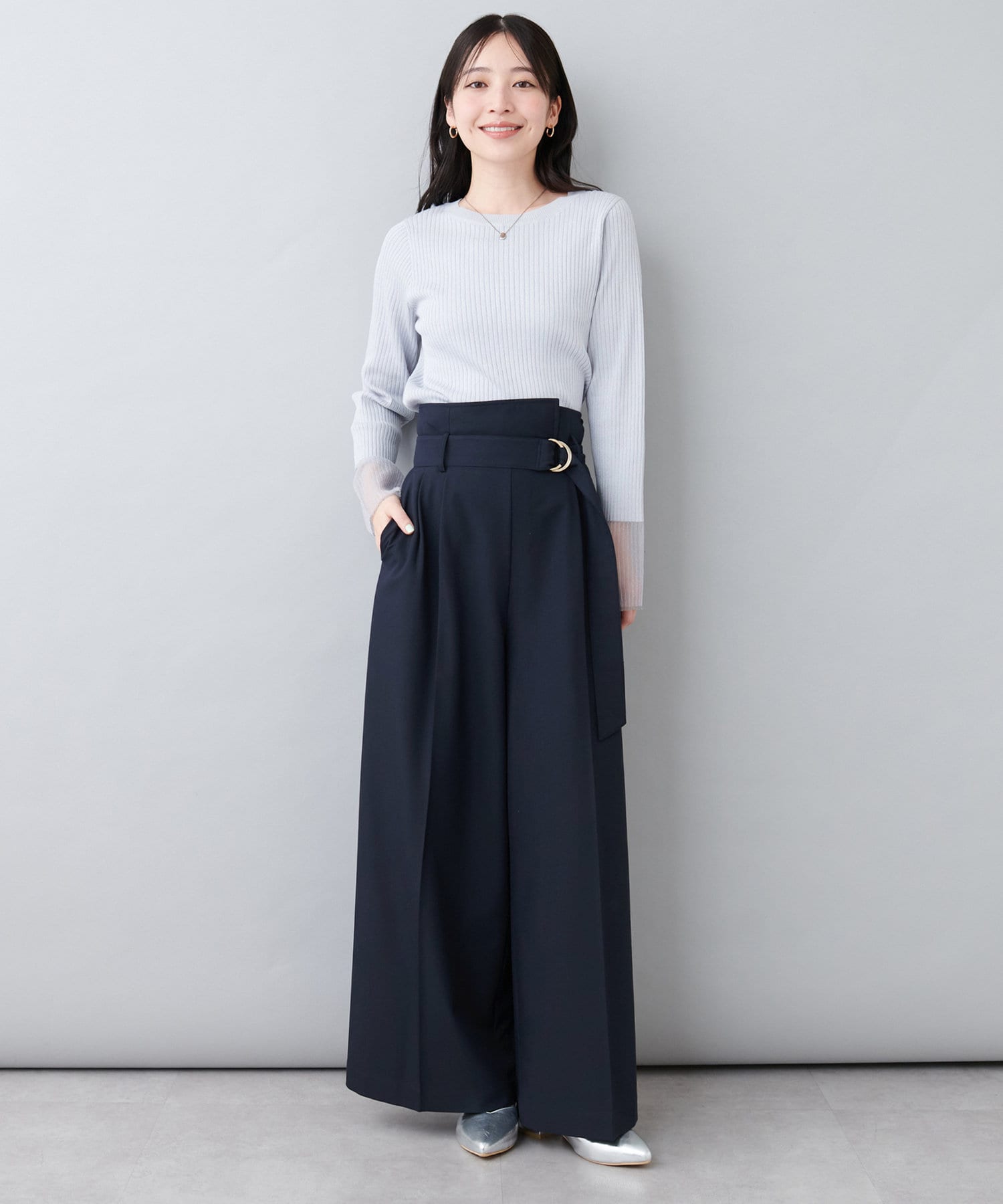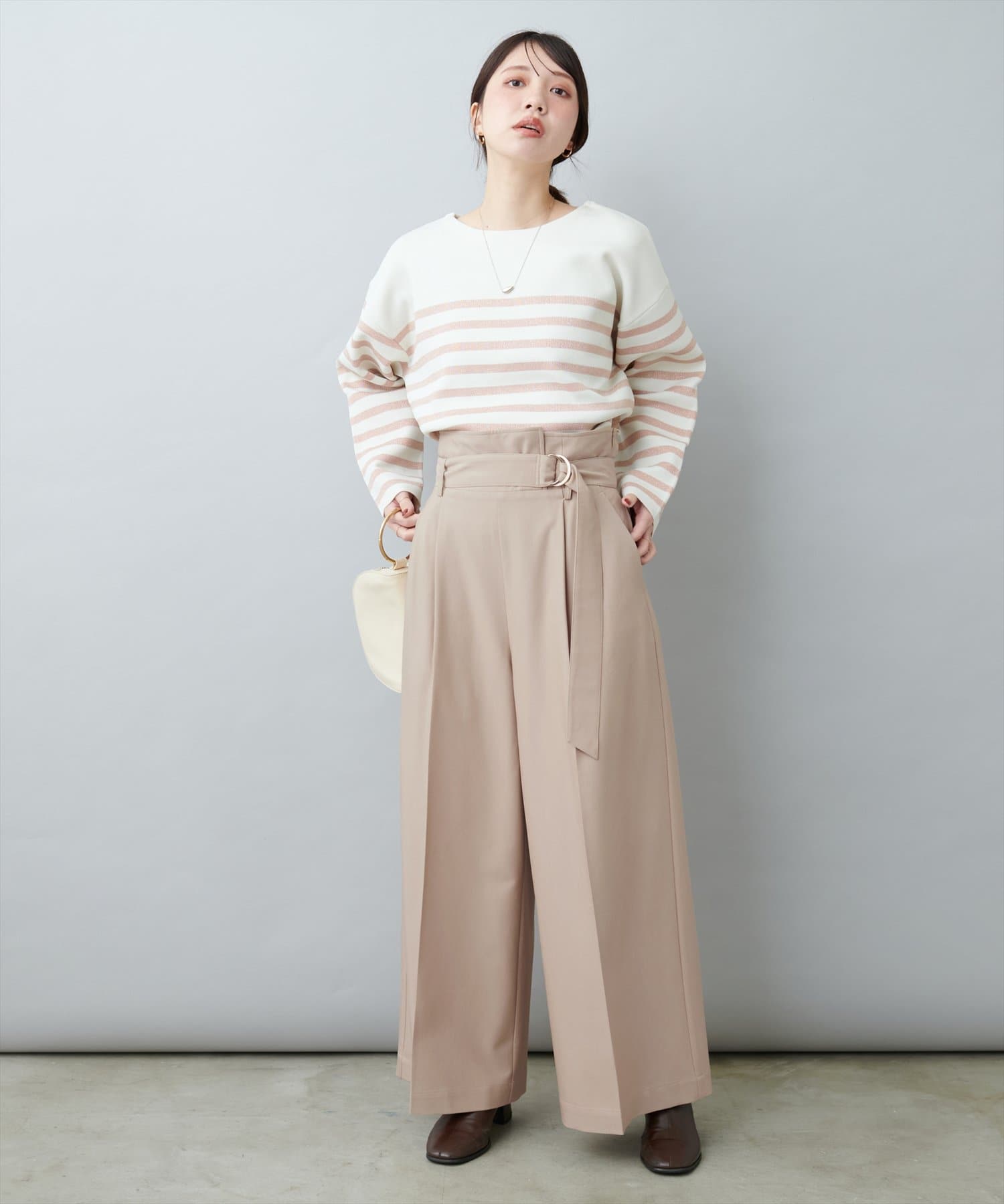 オケージョン対応可 / Dカンベルト付きアシメハイウエストパンツ