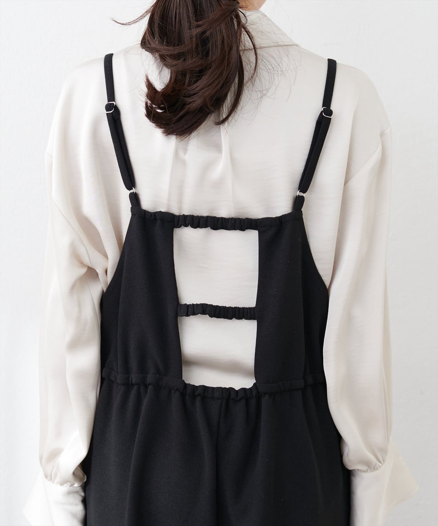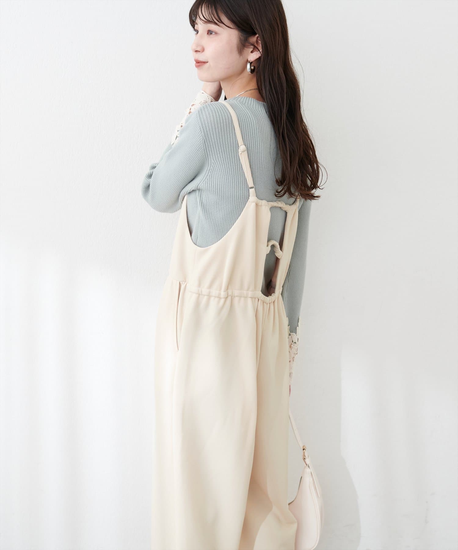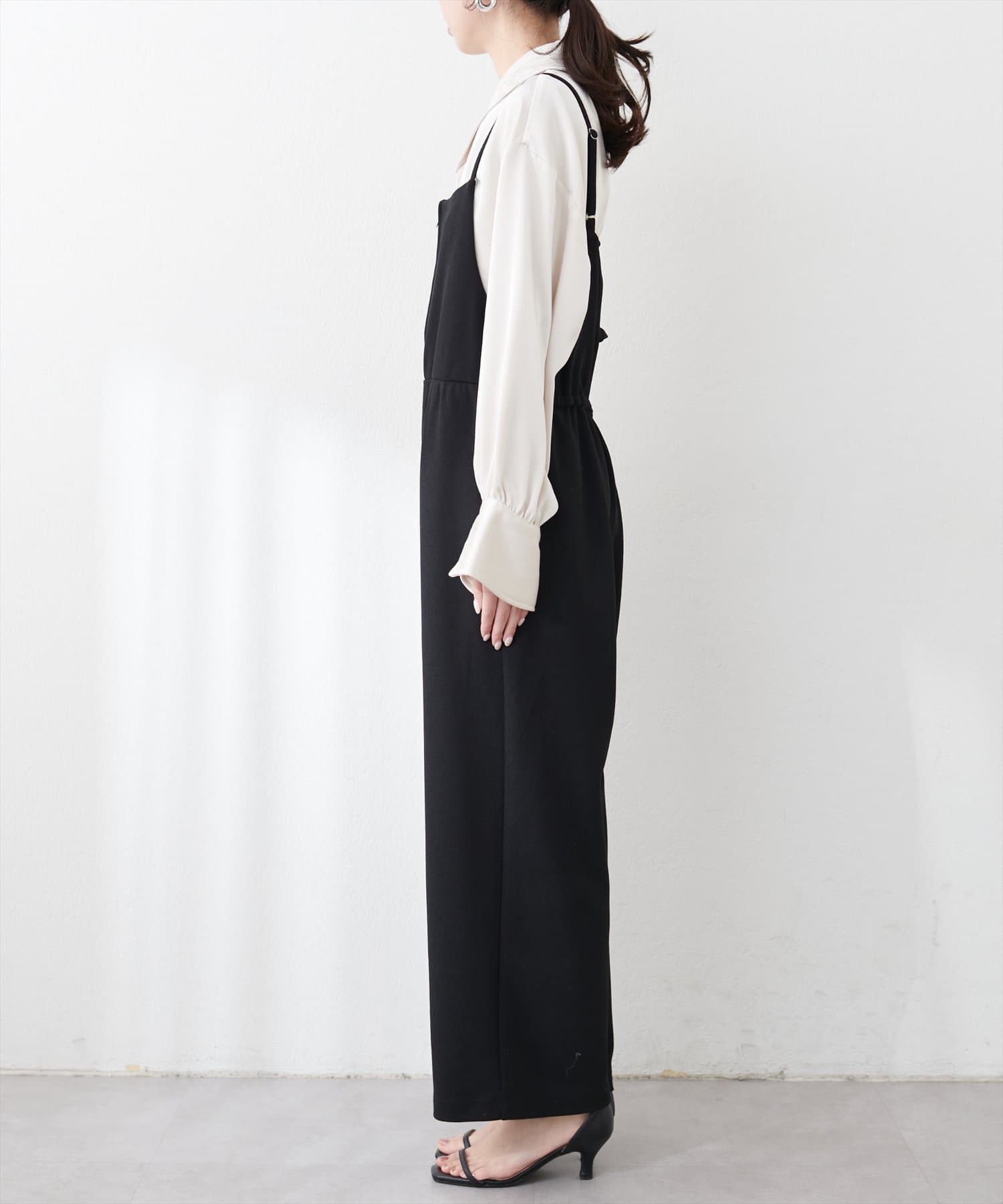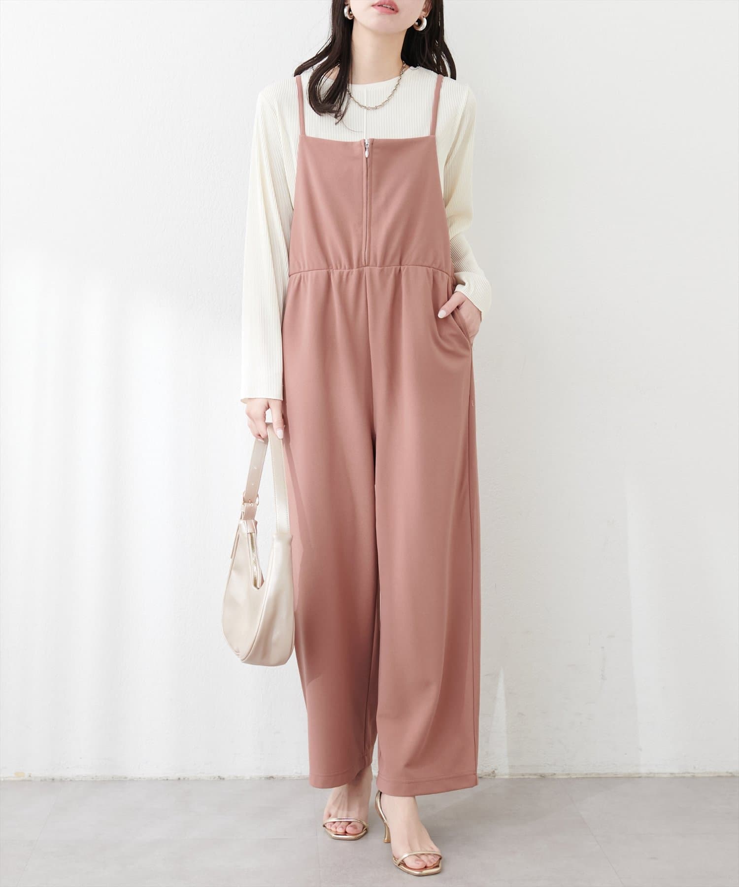 カットソーのような柔らかい素材感と風合いのサロペット。