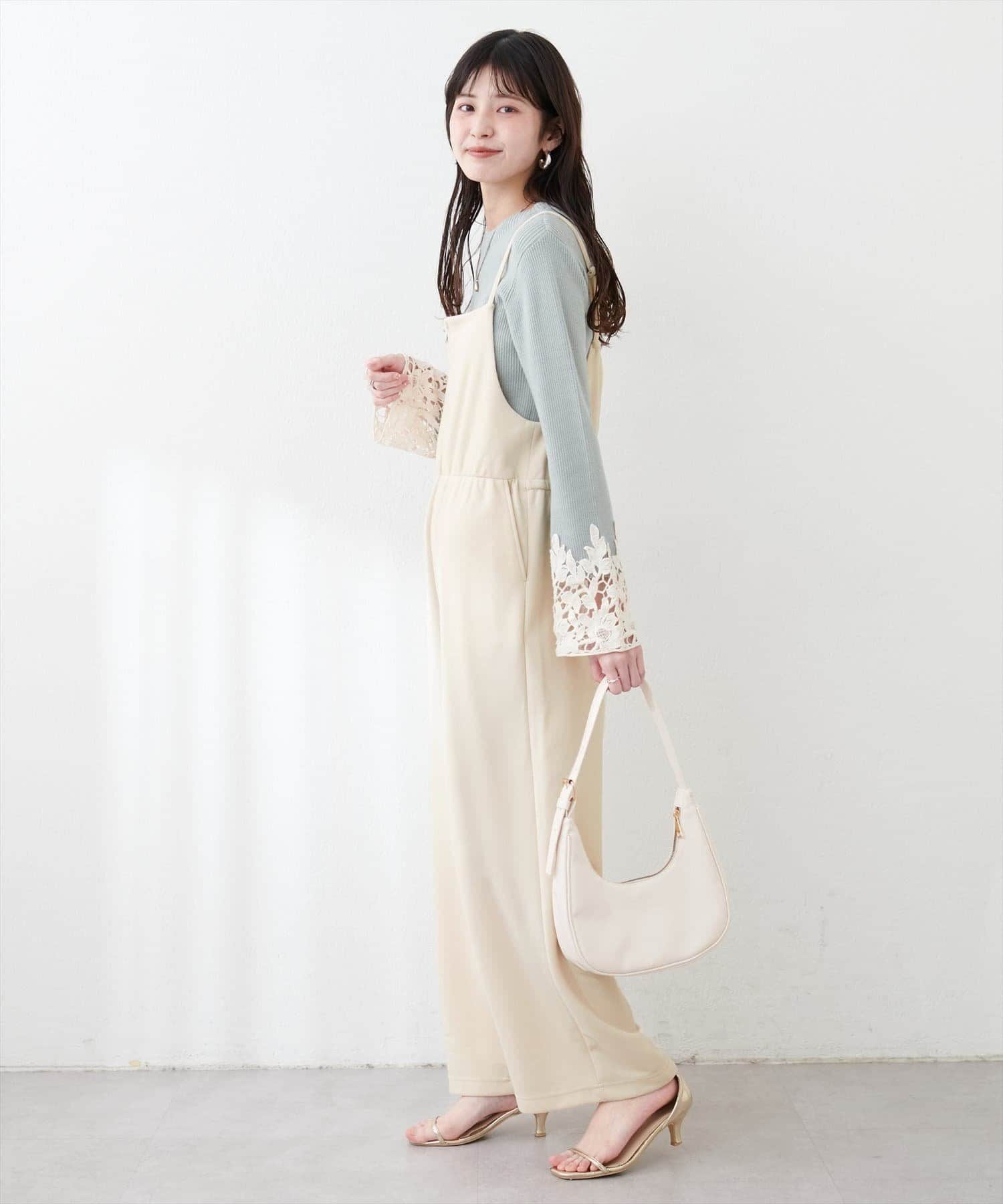 カットソーのような柔らかい素材感と風合いのサロペット。