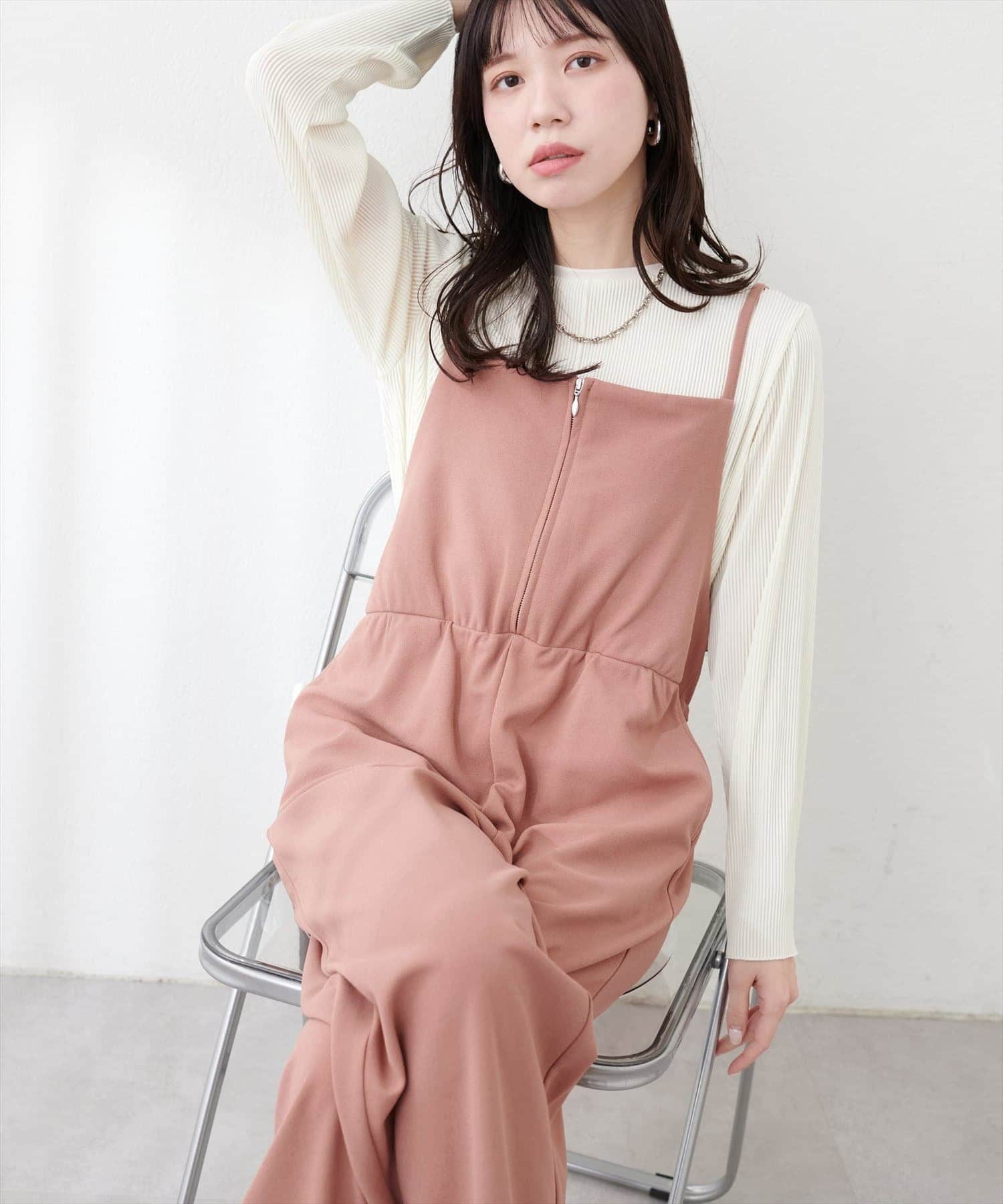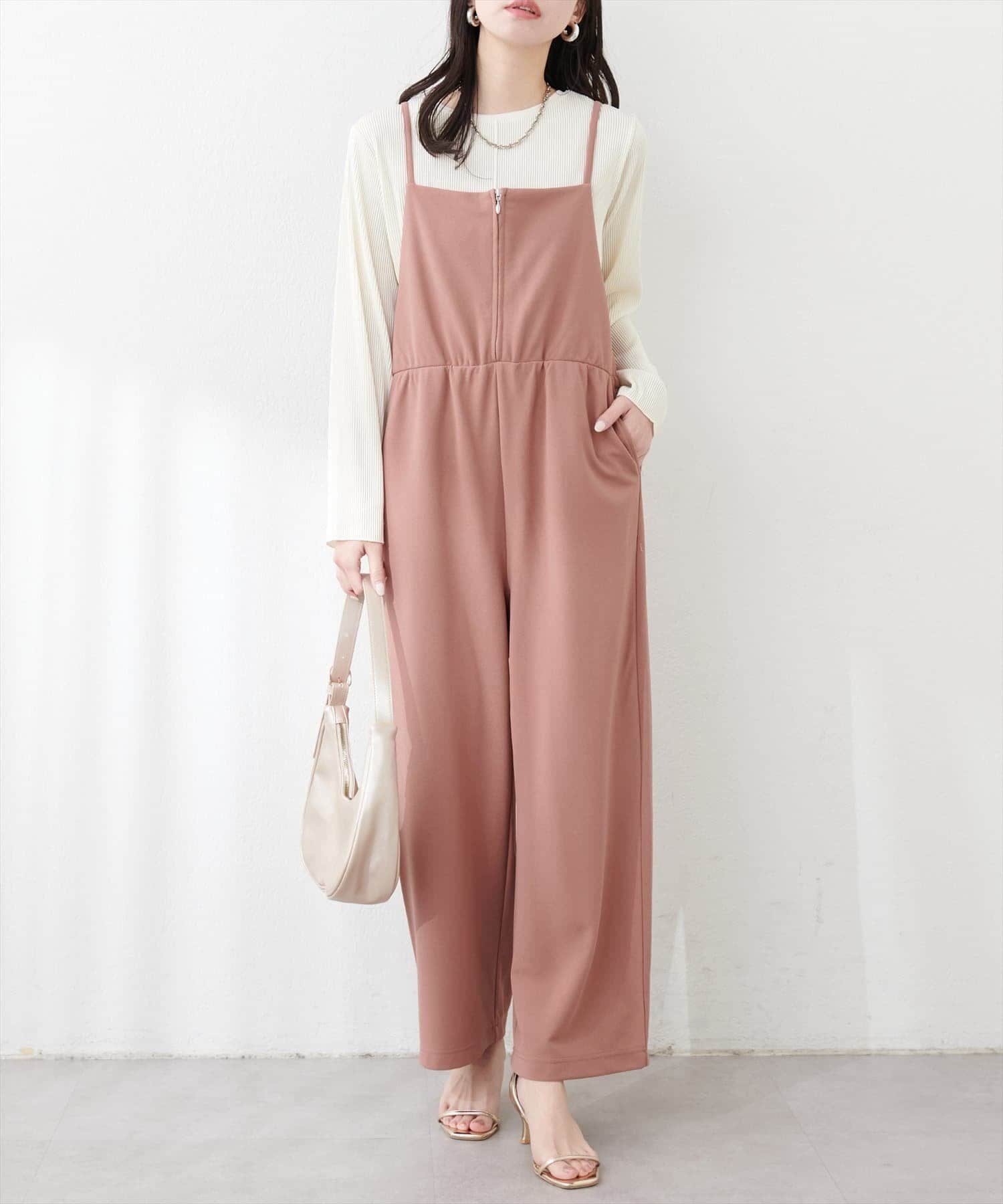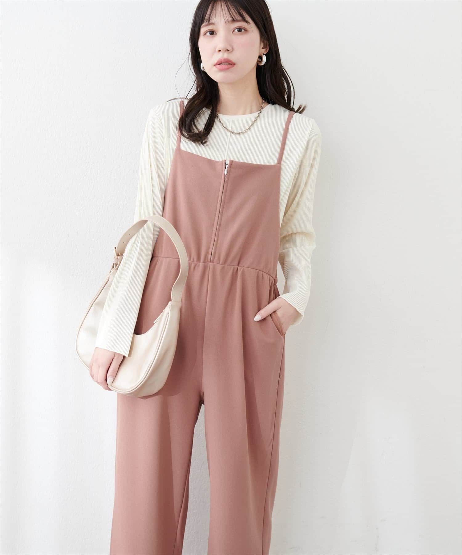 【natural couture】カットソーフロントZIPサロペ