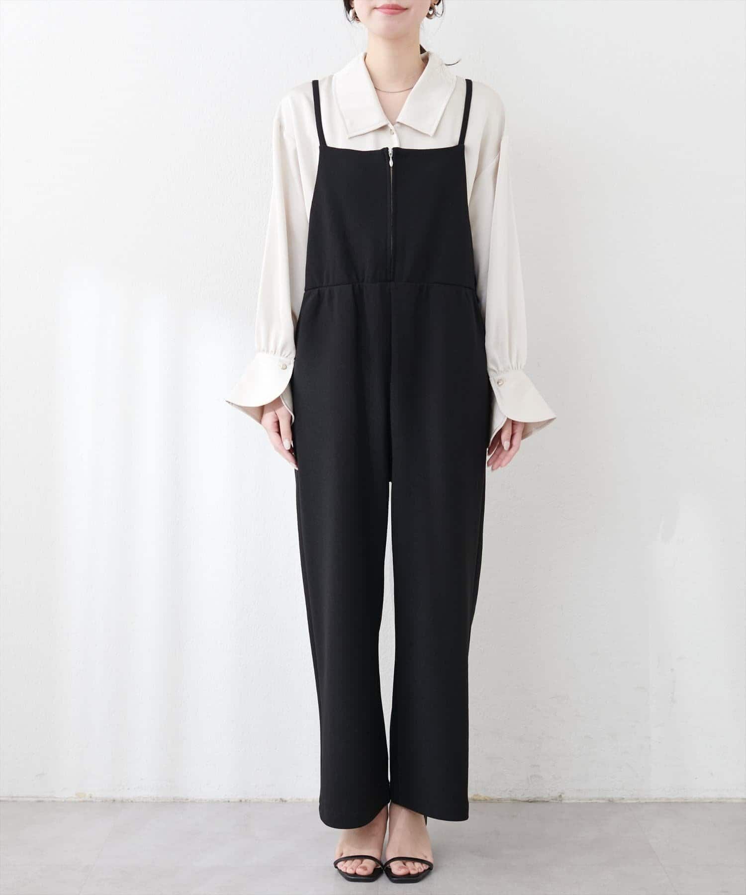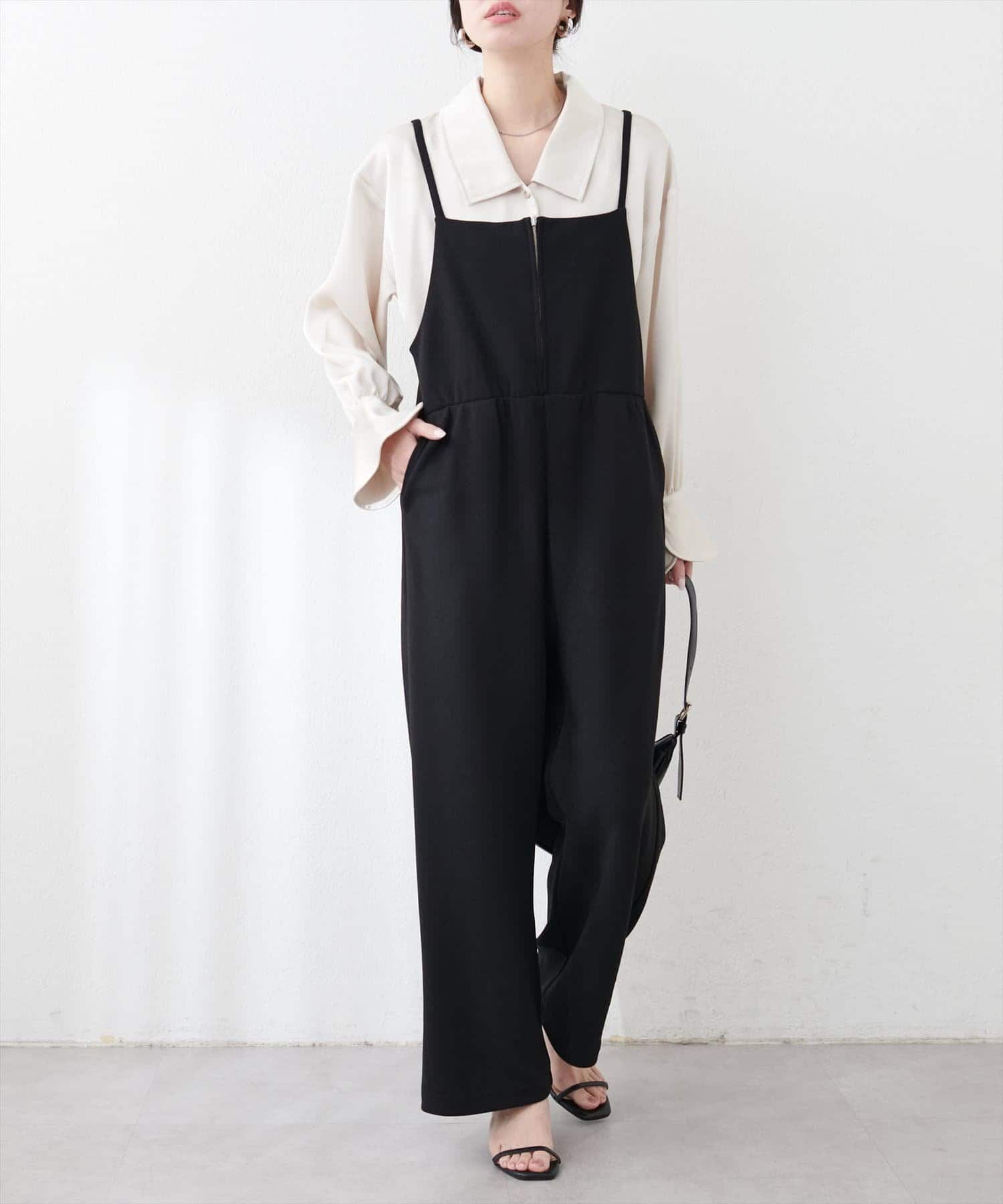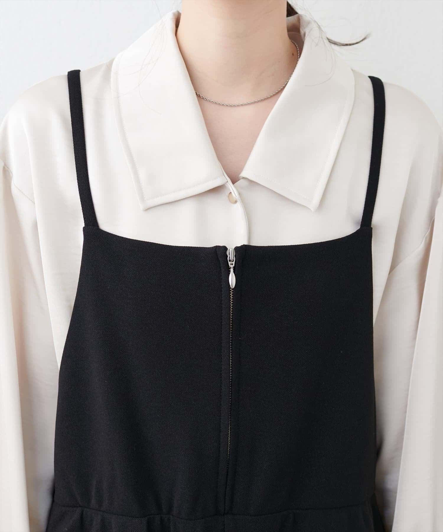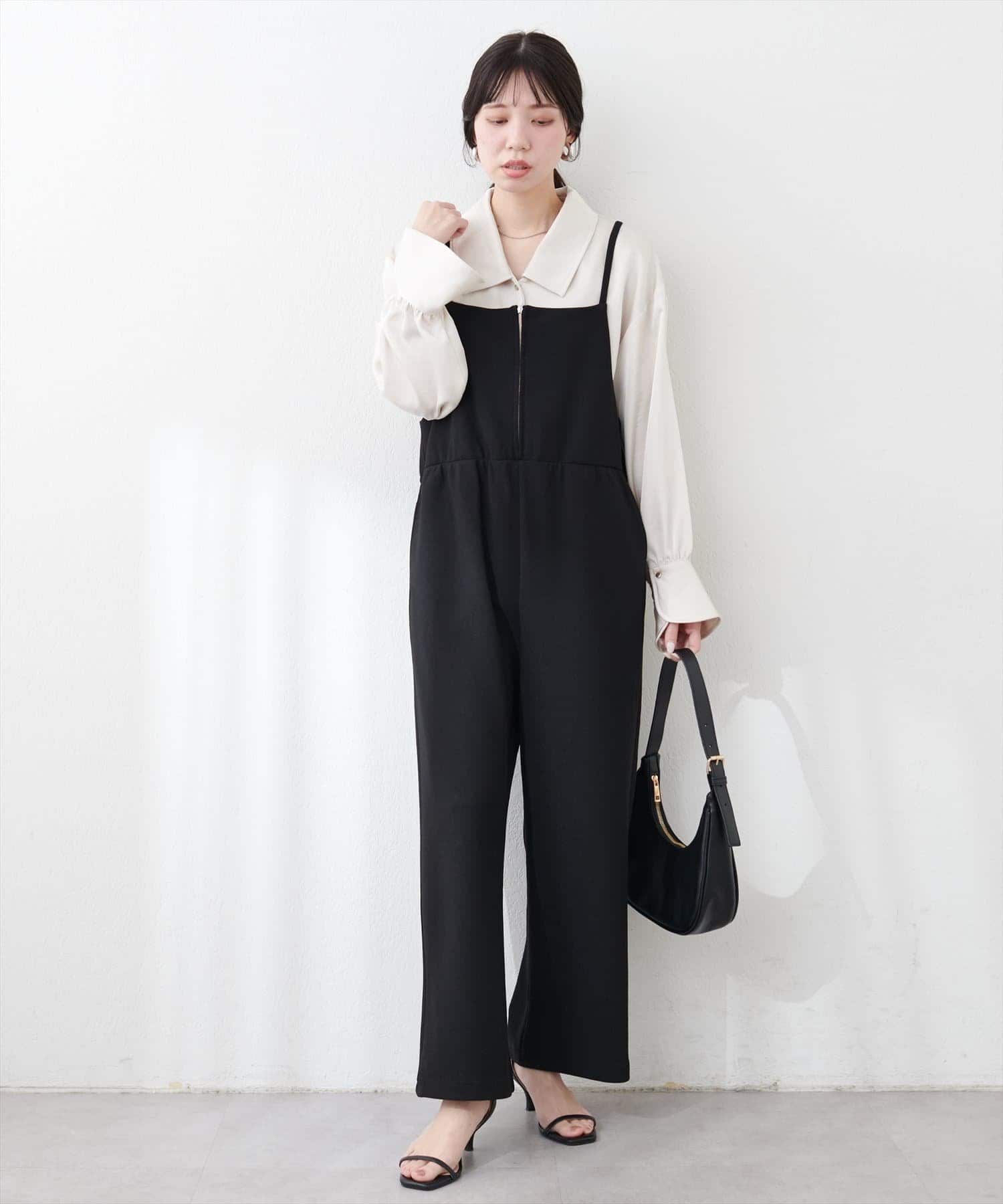 【natural couture】カットソーフロントZIPサロペ