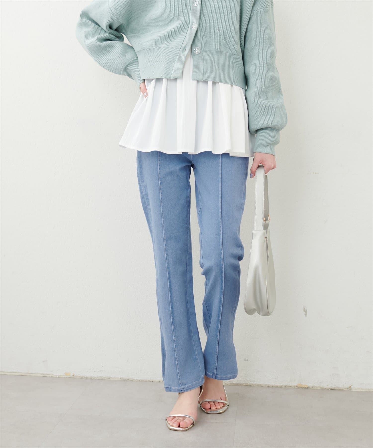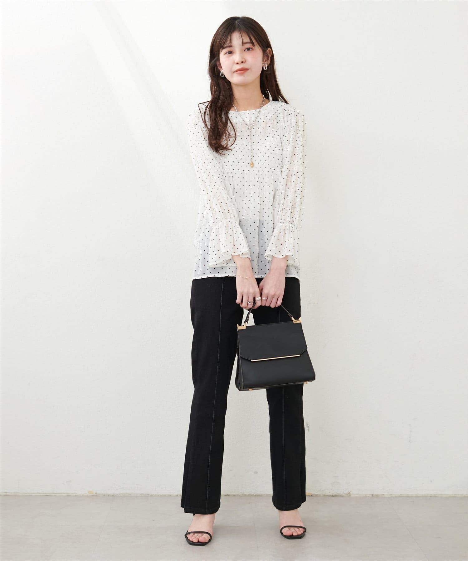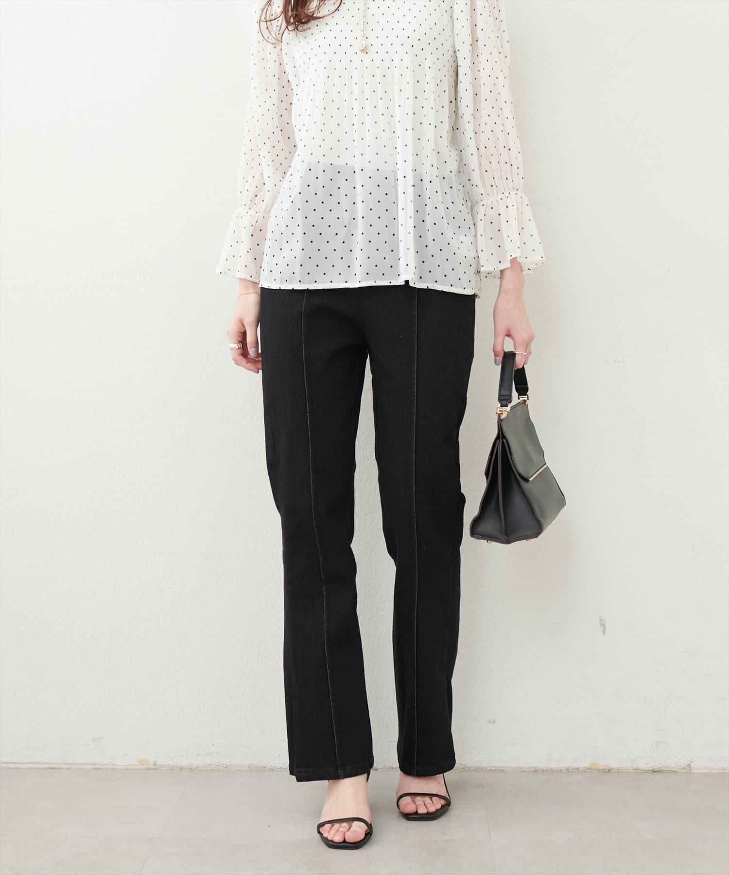 シャツやブラウス、ジャケットと合わせればオフィスシーンでも活躍するパンツ。